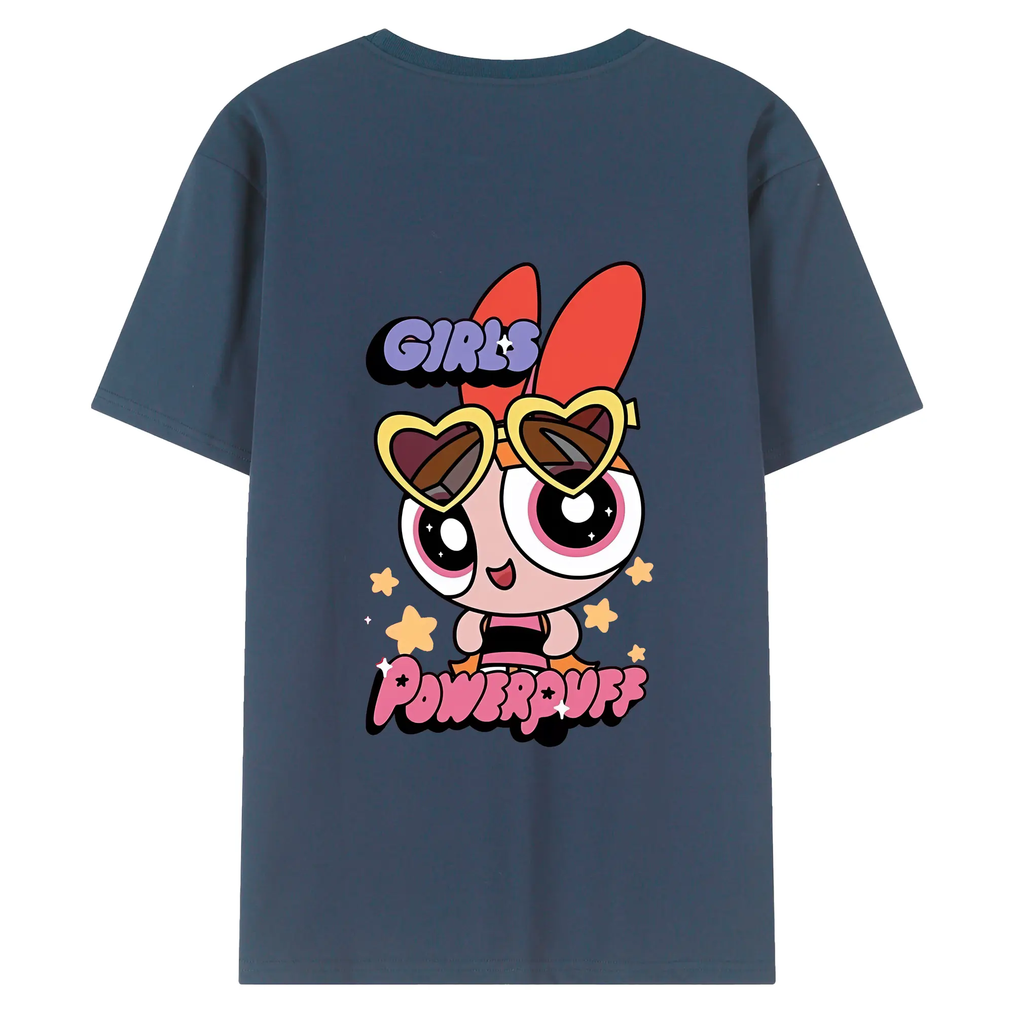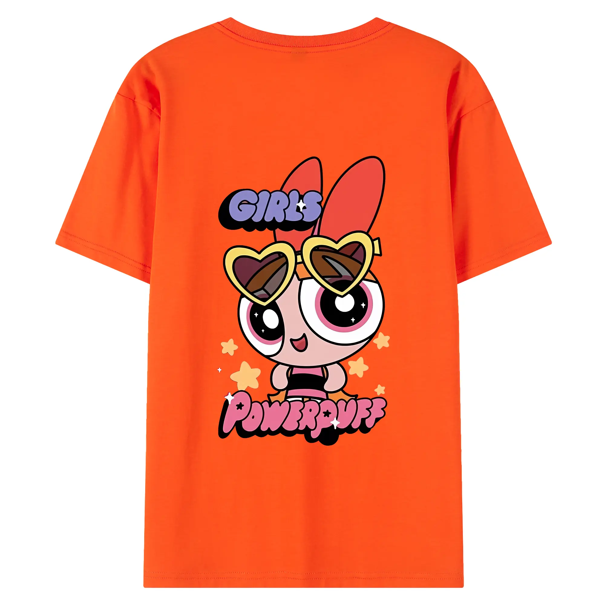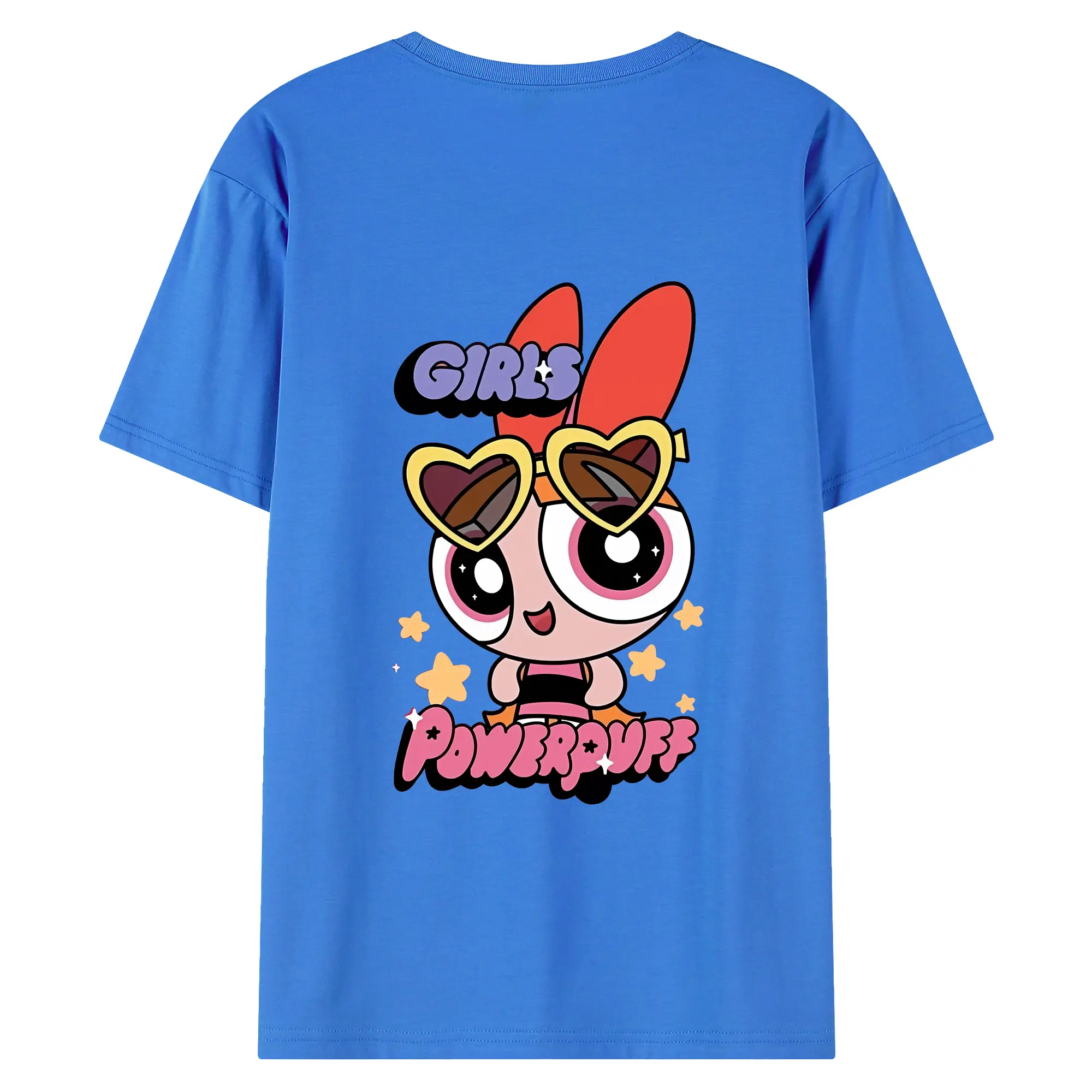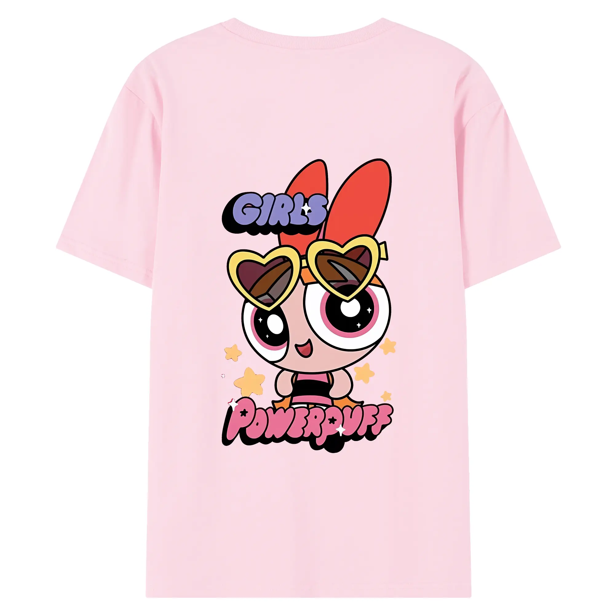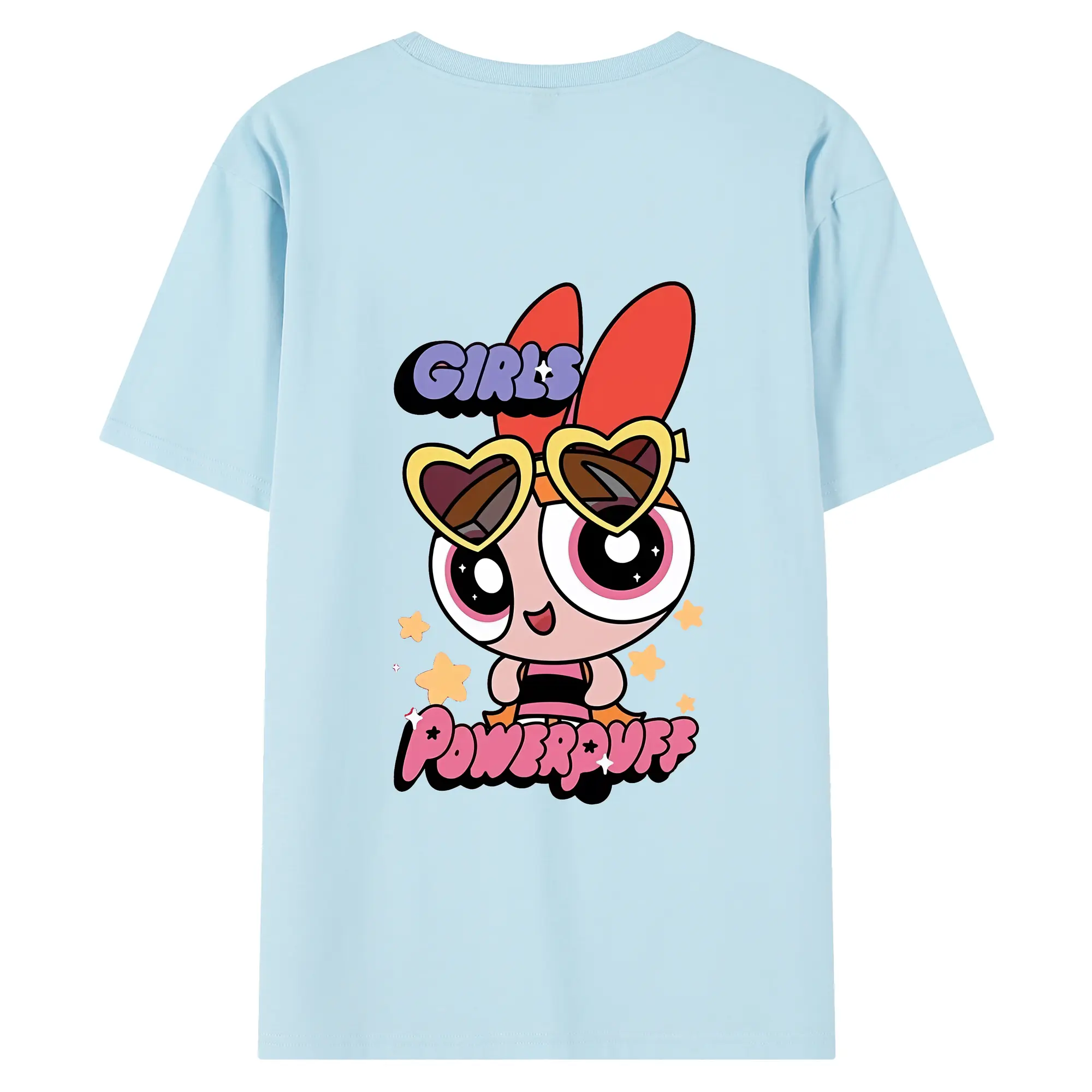 パワパフガールズ グッズ ブロッサム - 綿100% 半袖Tシャツ ・ フロントプリント ・ 快適 通気性 ・ 日常使い 散歩 スポーツ用