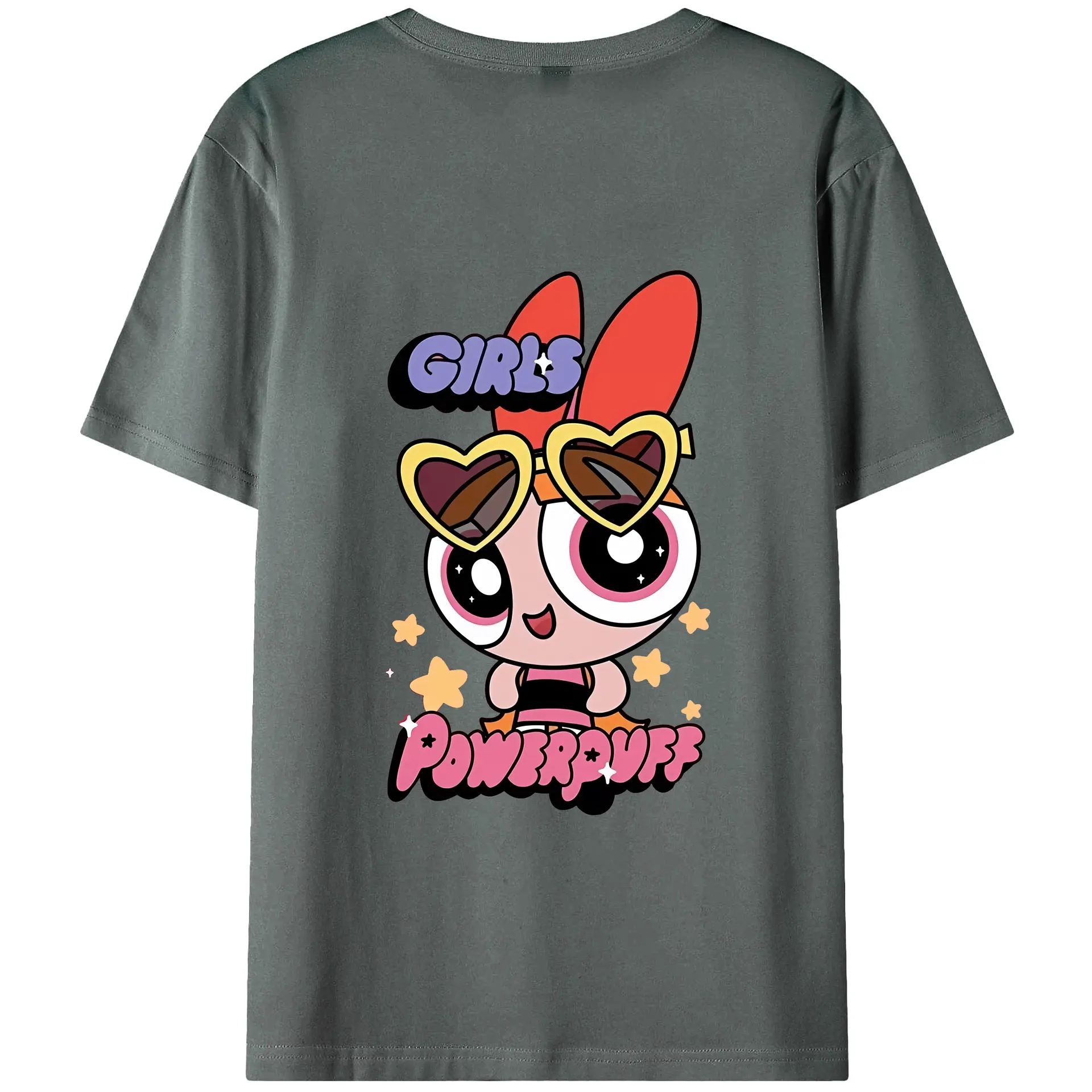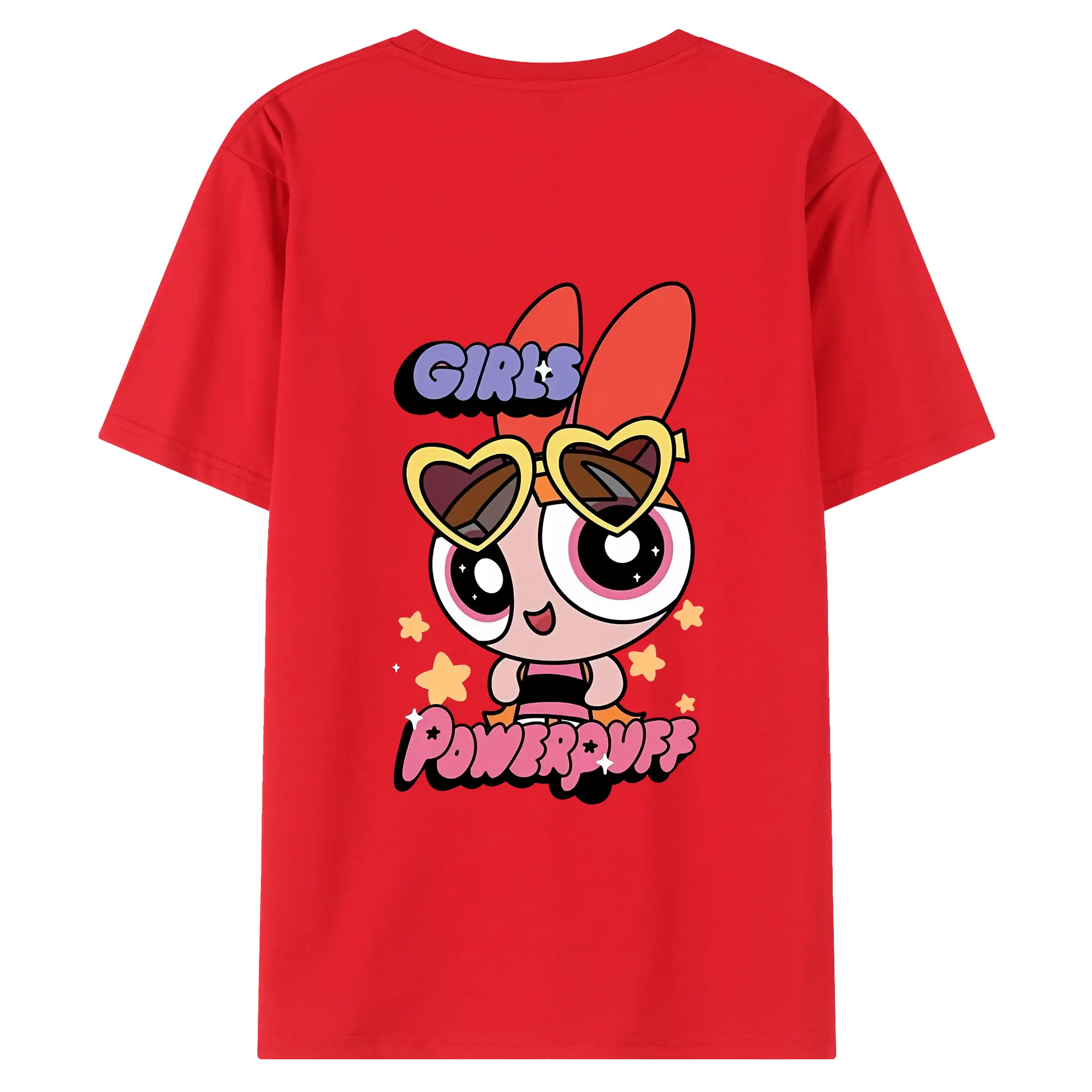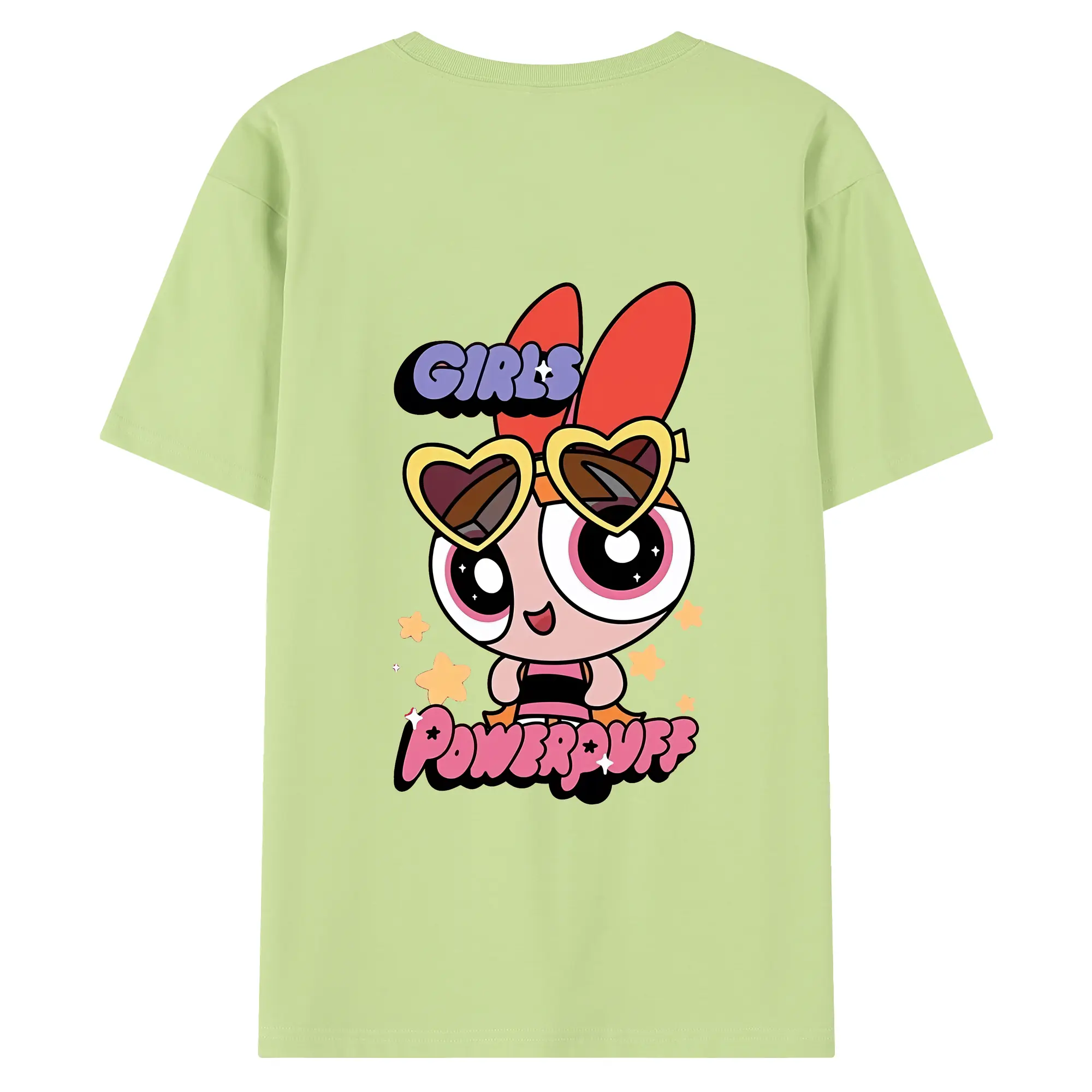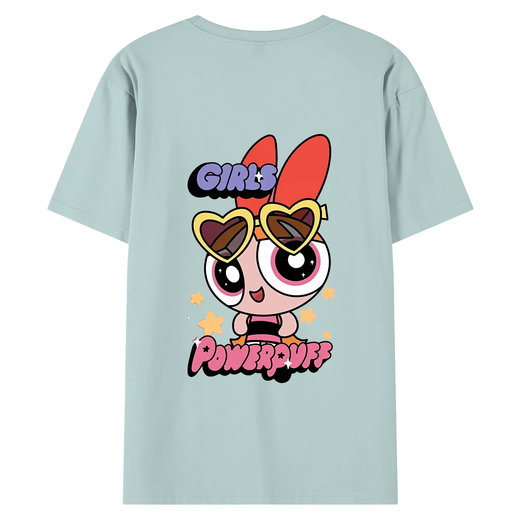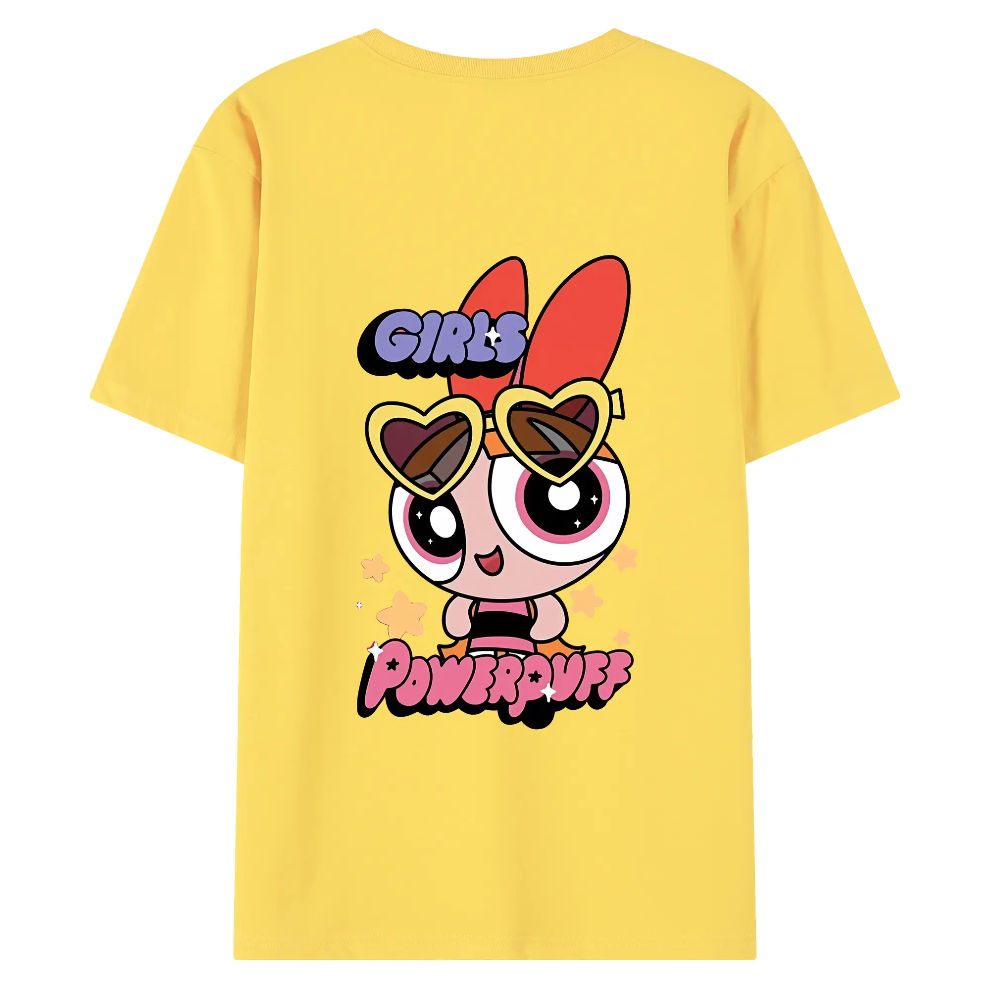 パワパフガールズ グッズ ブロッサム - 綿100% 半袖Tシャツ ・ フロントプリント ・ 快適 通気性 ・ 日常使い 散歩 スポーツ用