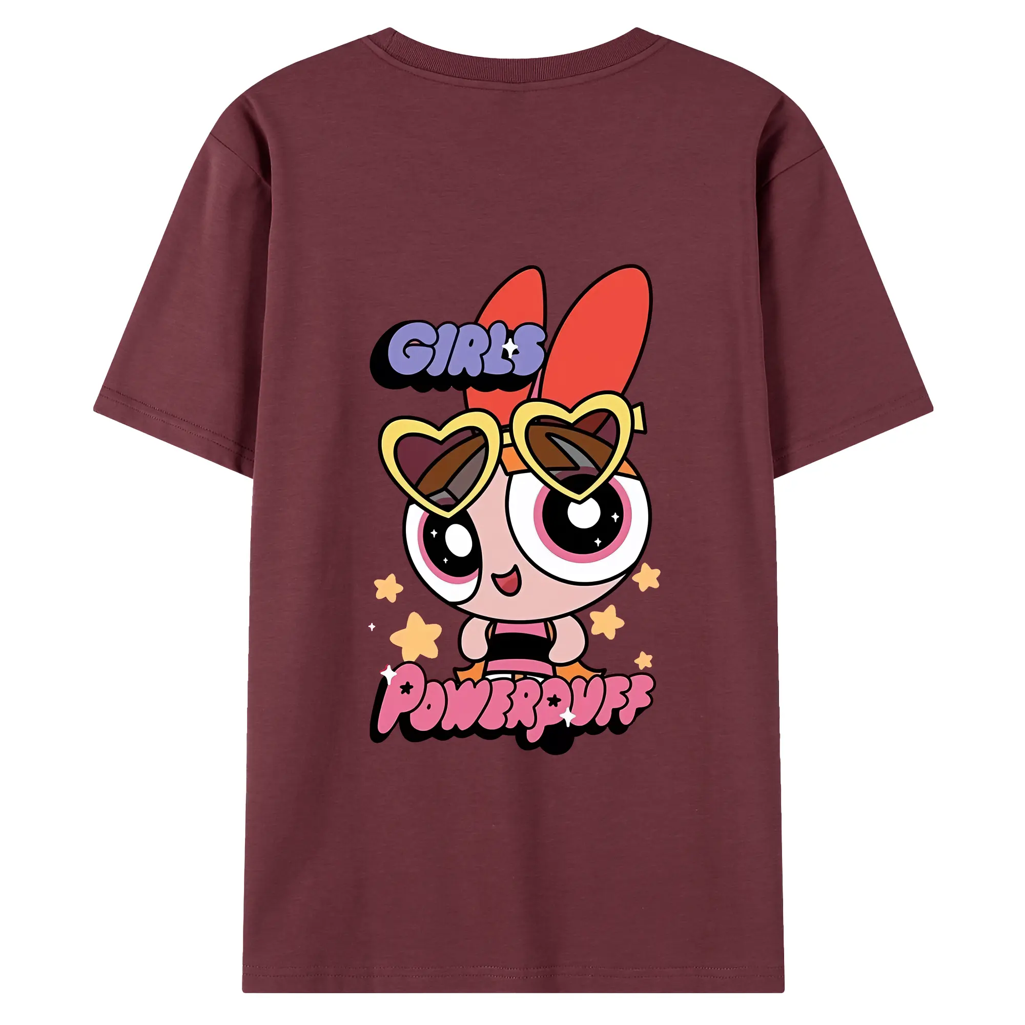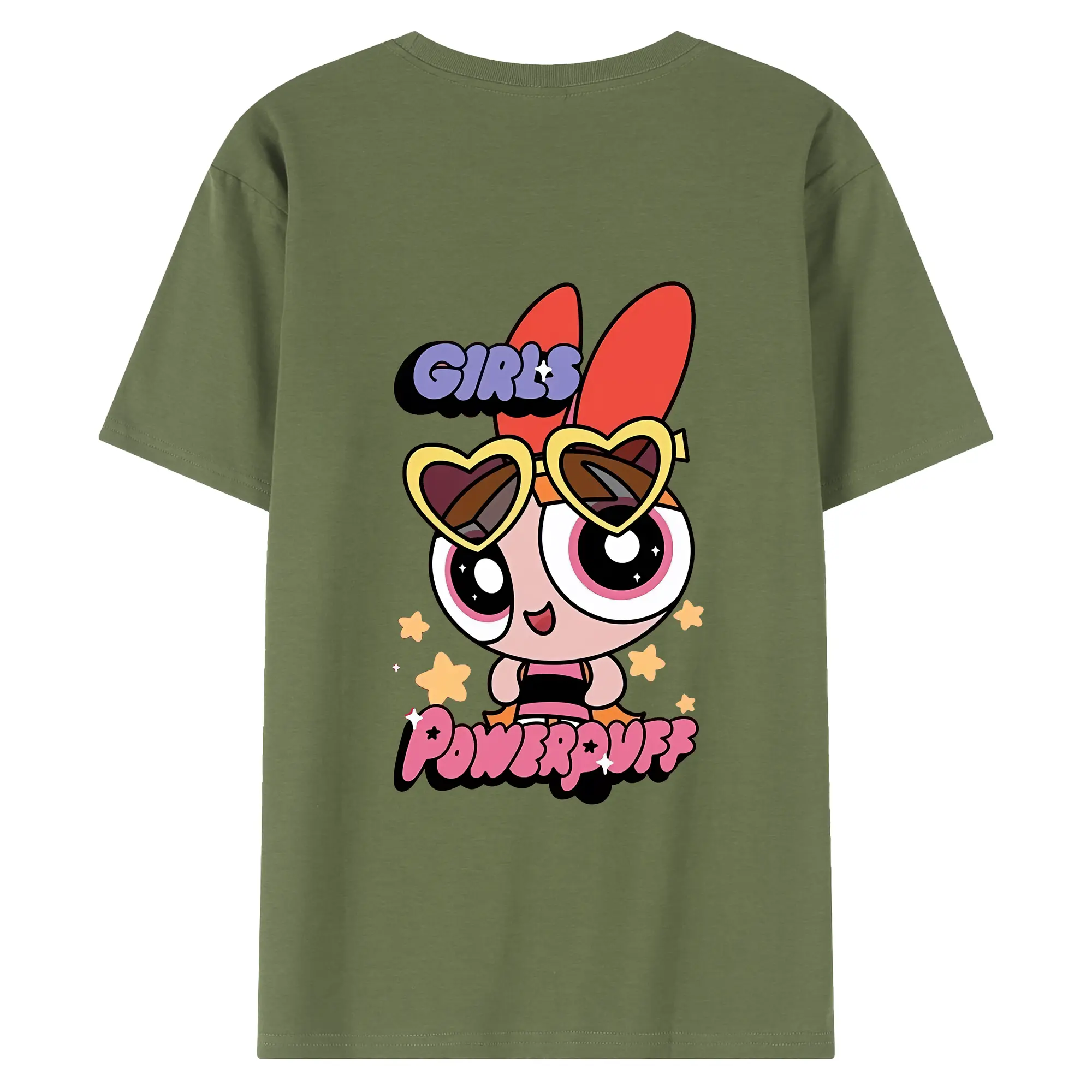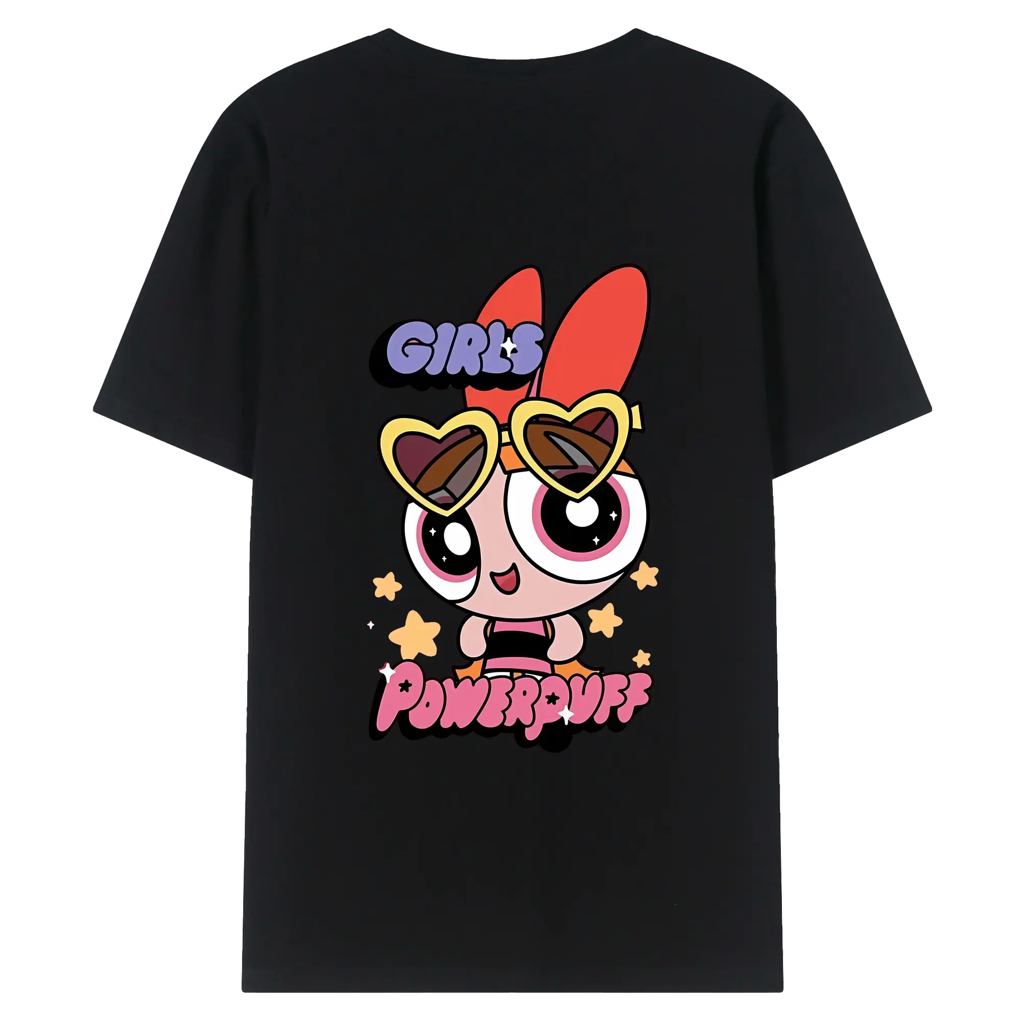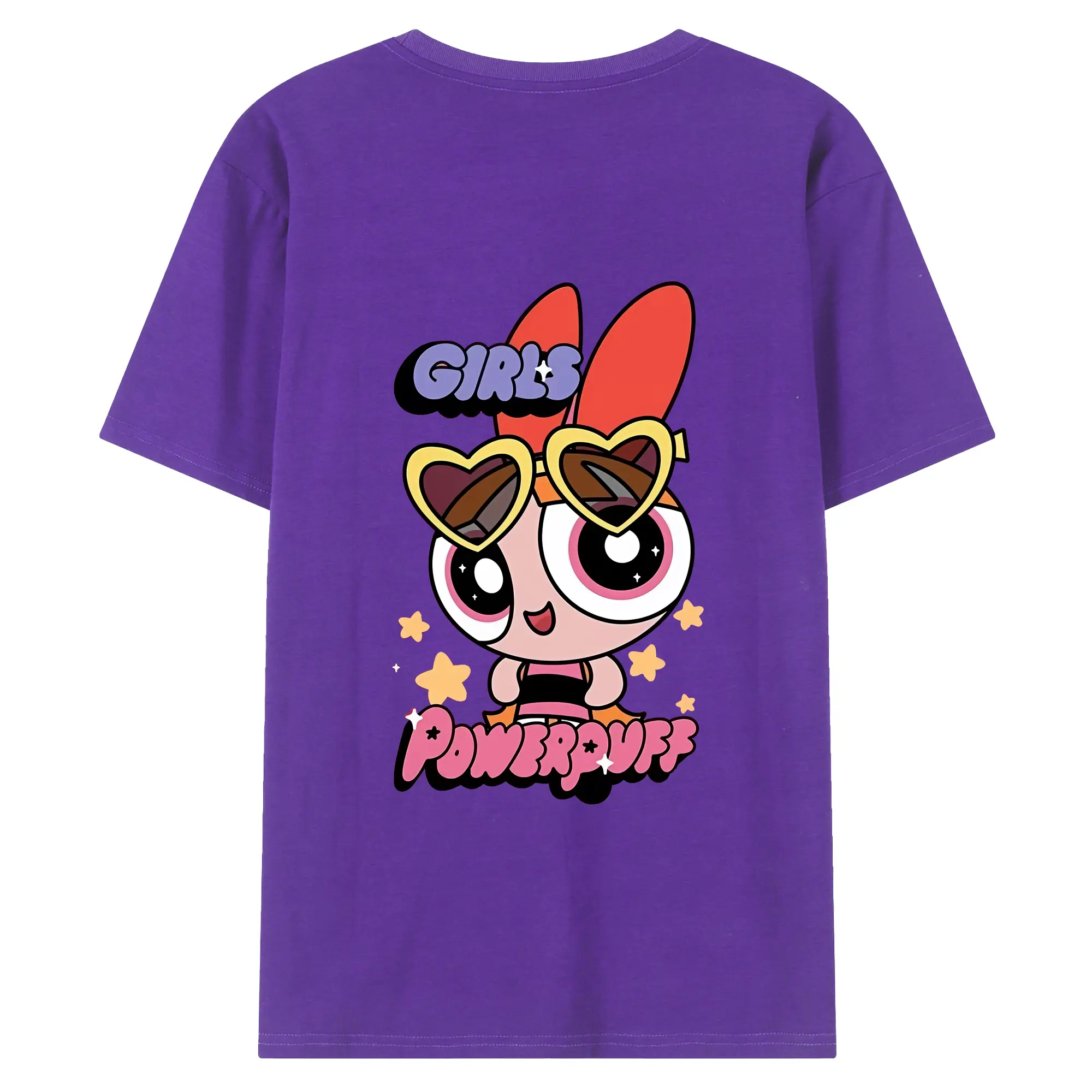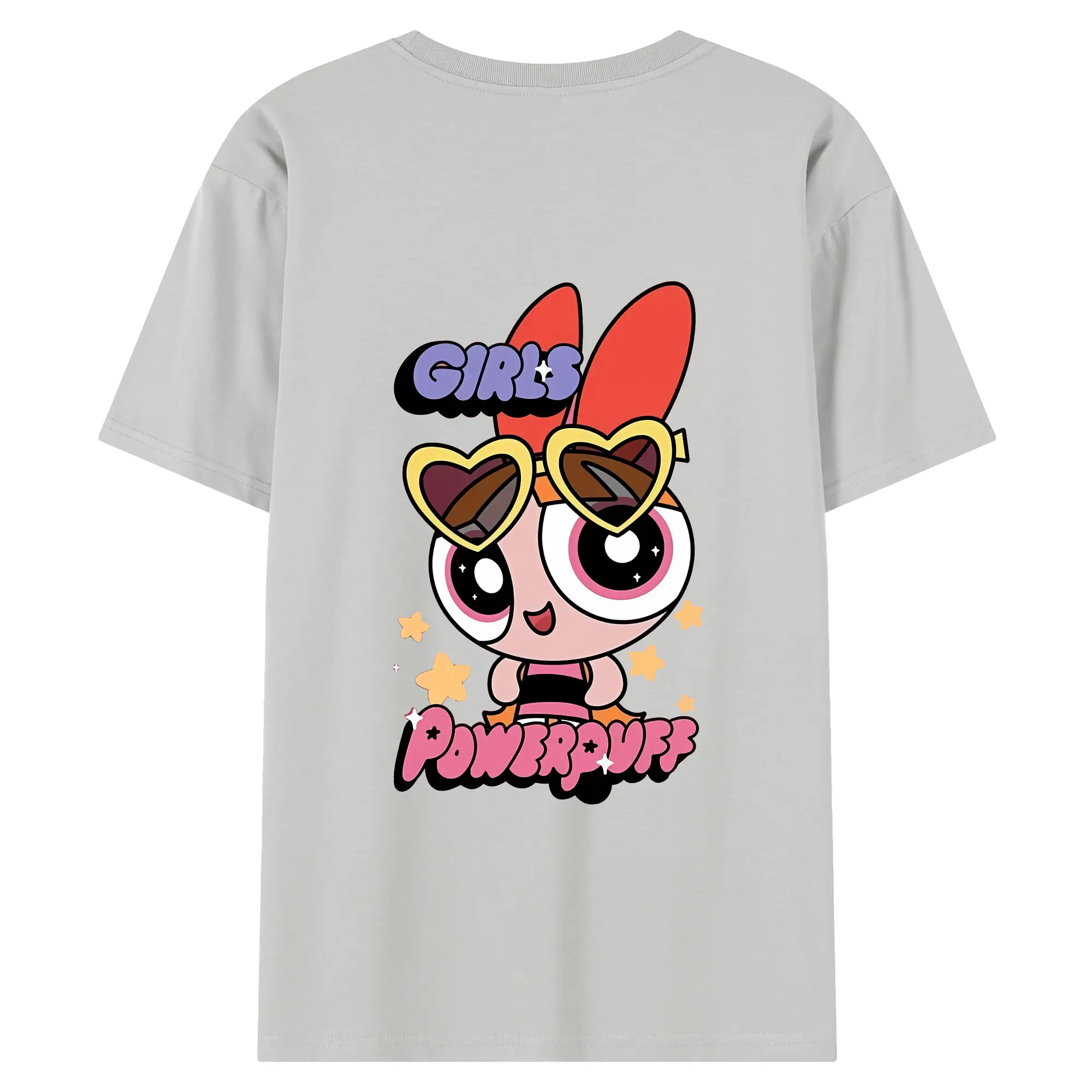 パワパフガールズ グッズ ブロッサム - 綿100% 半袖Tシャツ ・ フロントプリント ・ 快適 通気性 ・ 日常使い 散歩 スポーツ用