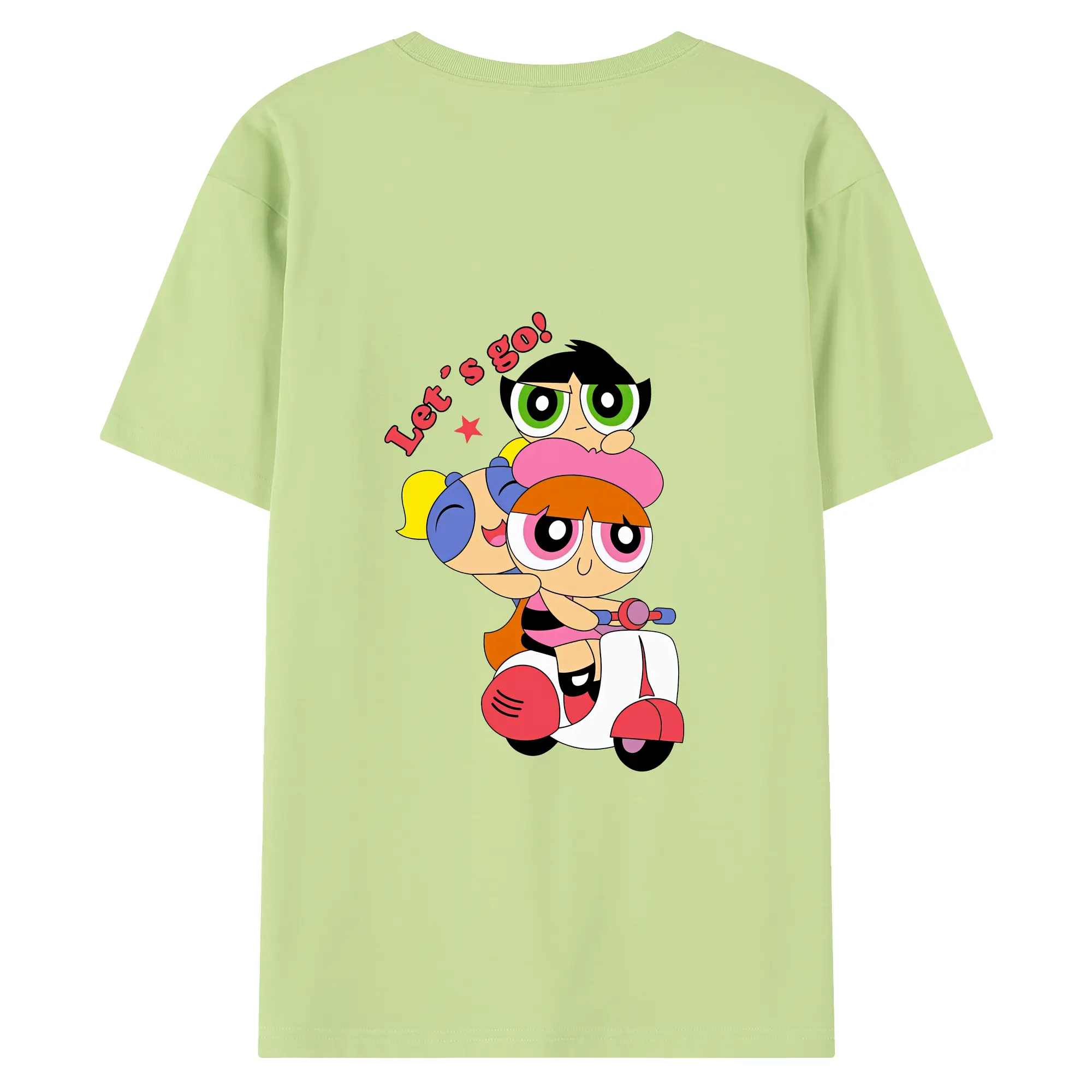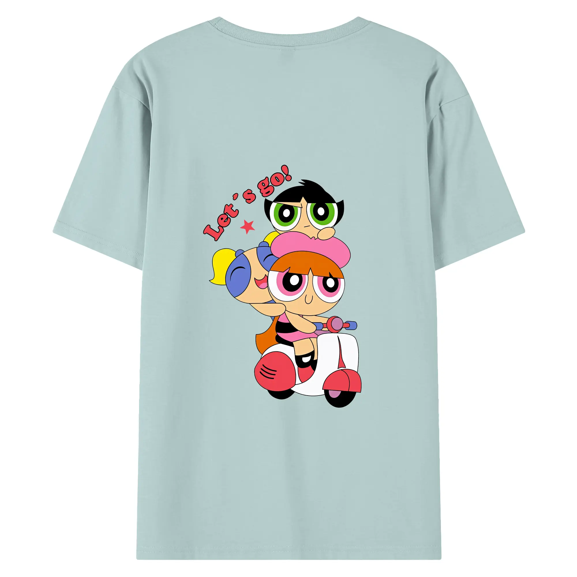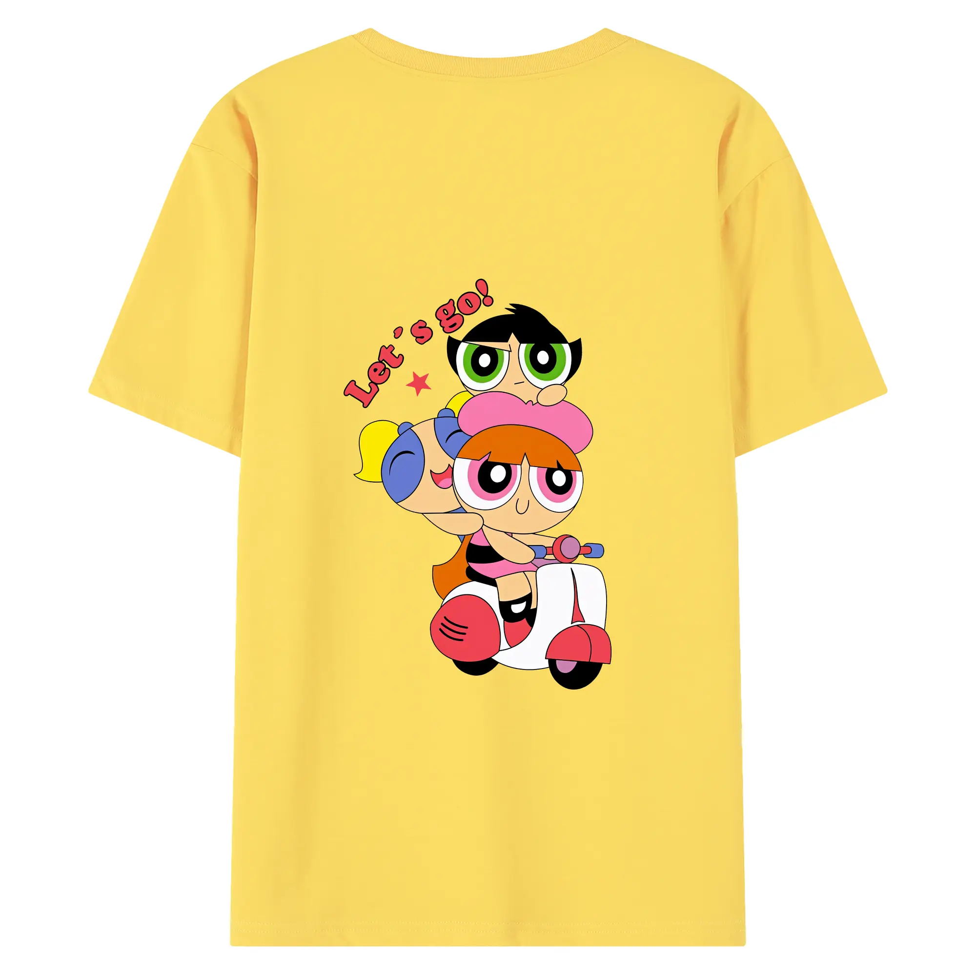 パワパフガールズ グッズ ブロッサム - 綿100% ヴィンテージ風 半袖Tシャツ ・ 背面プリント ・ 柔らか肌触り ・ 通気性 快適 ・ スポーツ カジュアル 外出用