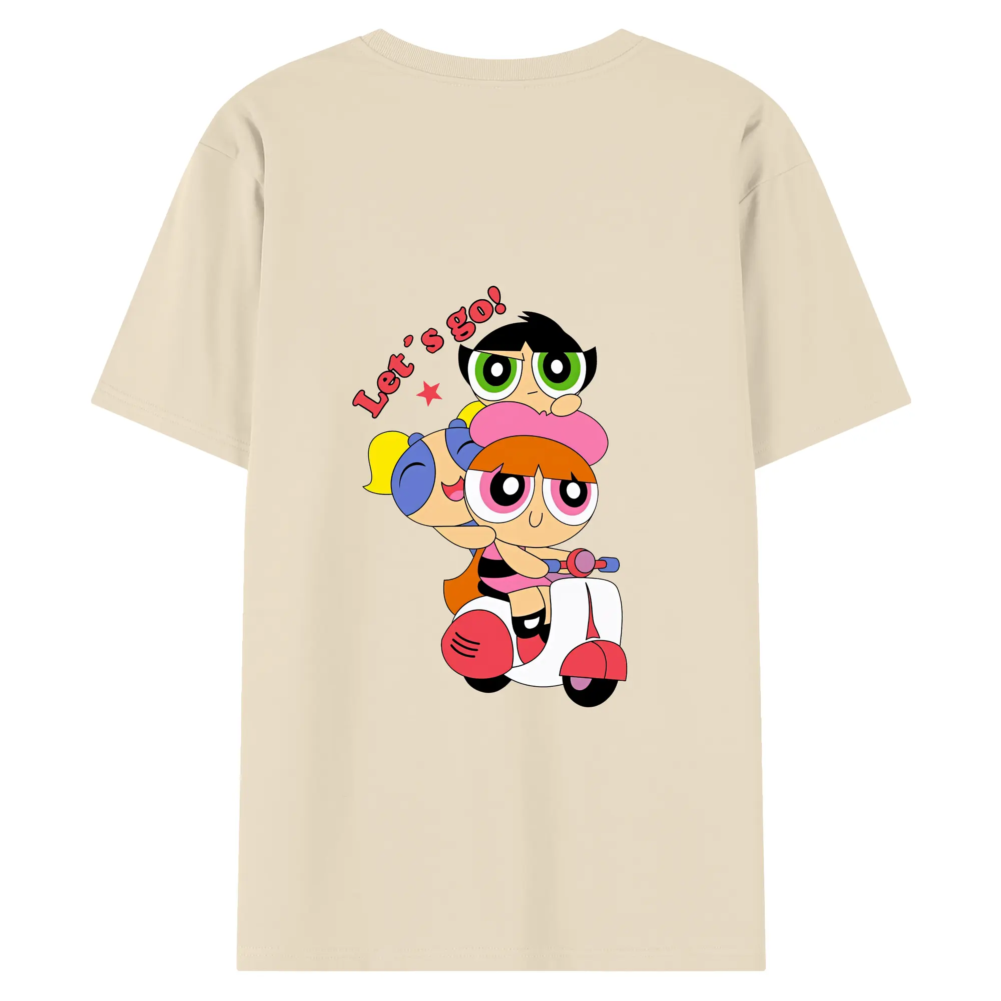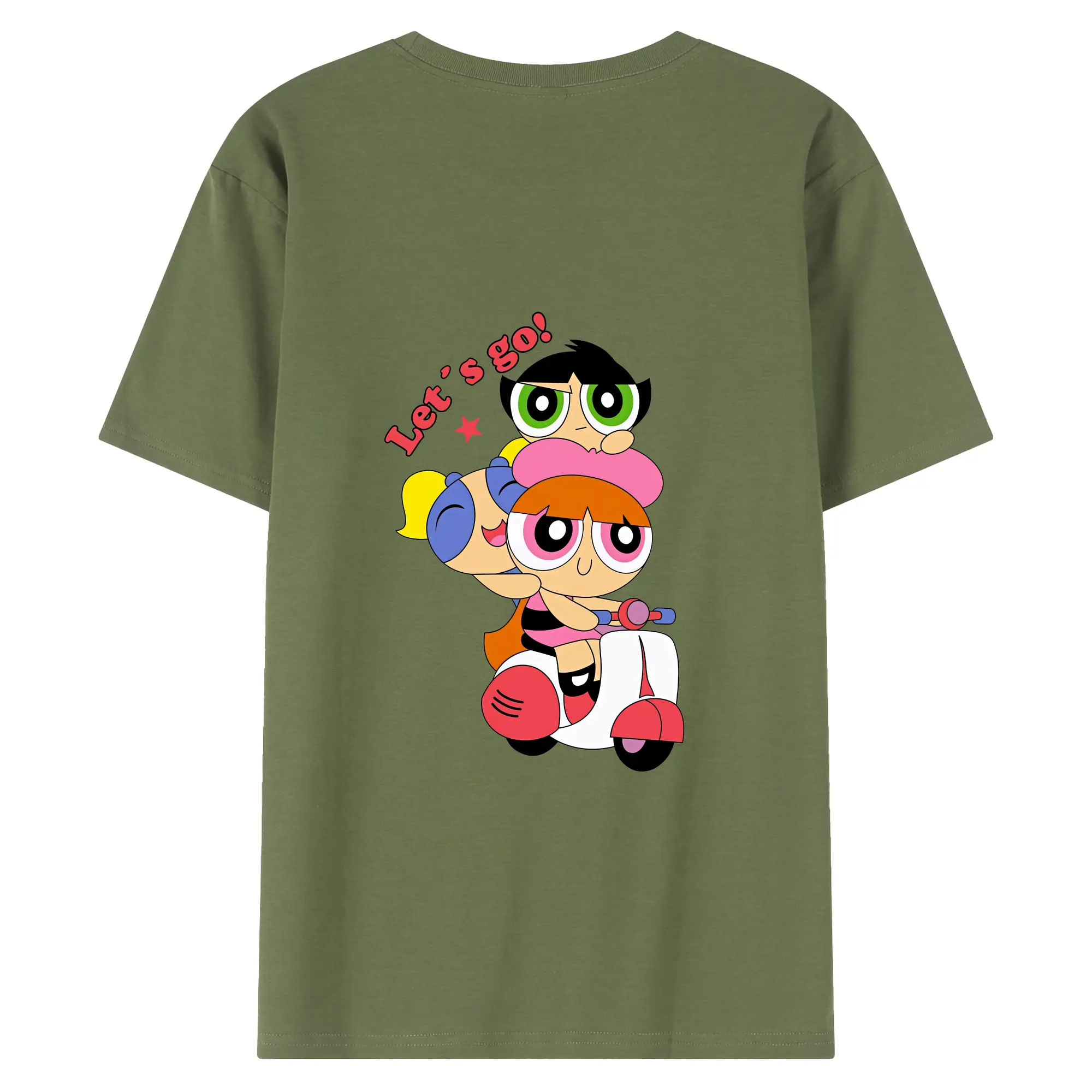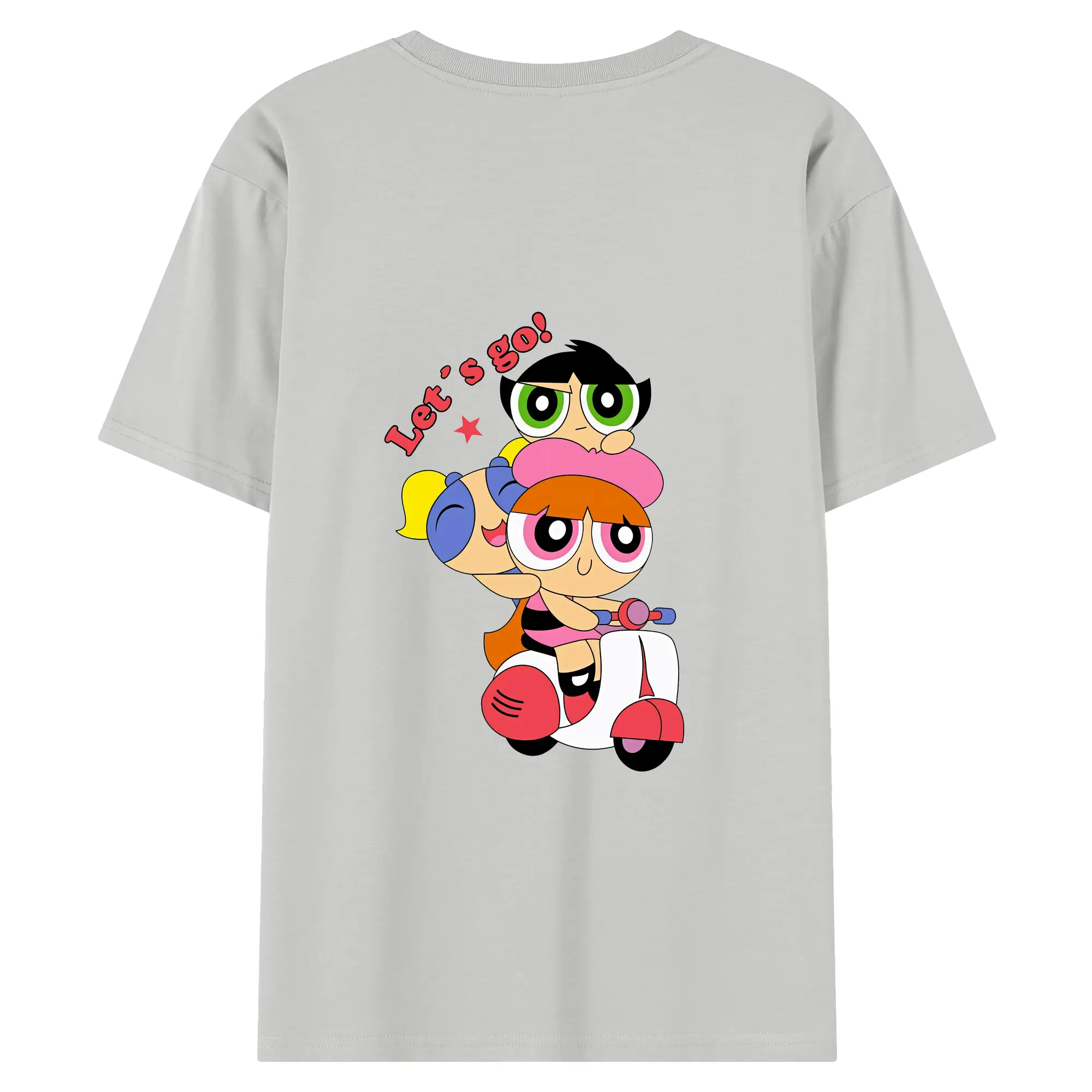 パワパフガールズ グッズ ブロッサム - 綿100% ヴィンテージ風 半袖Tシャツ ・ 背面プリント ・ 柔らか肌触り ・ 通気性 快適 ・ スポーツ カジュアル 外出用