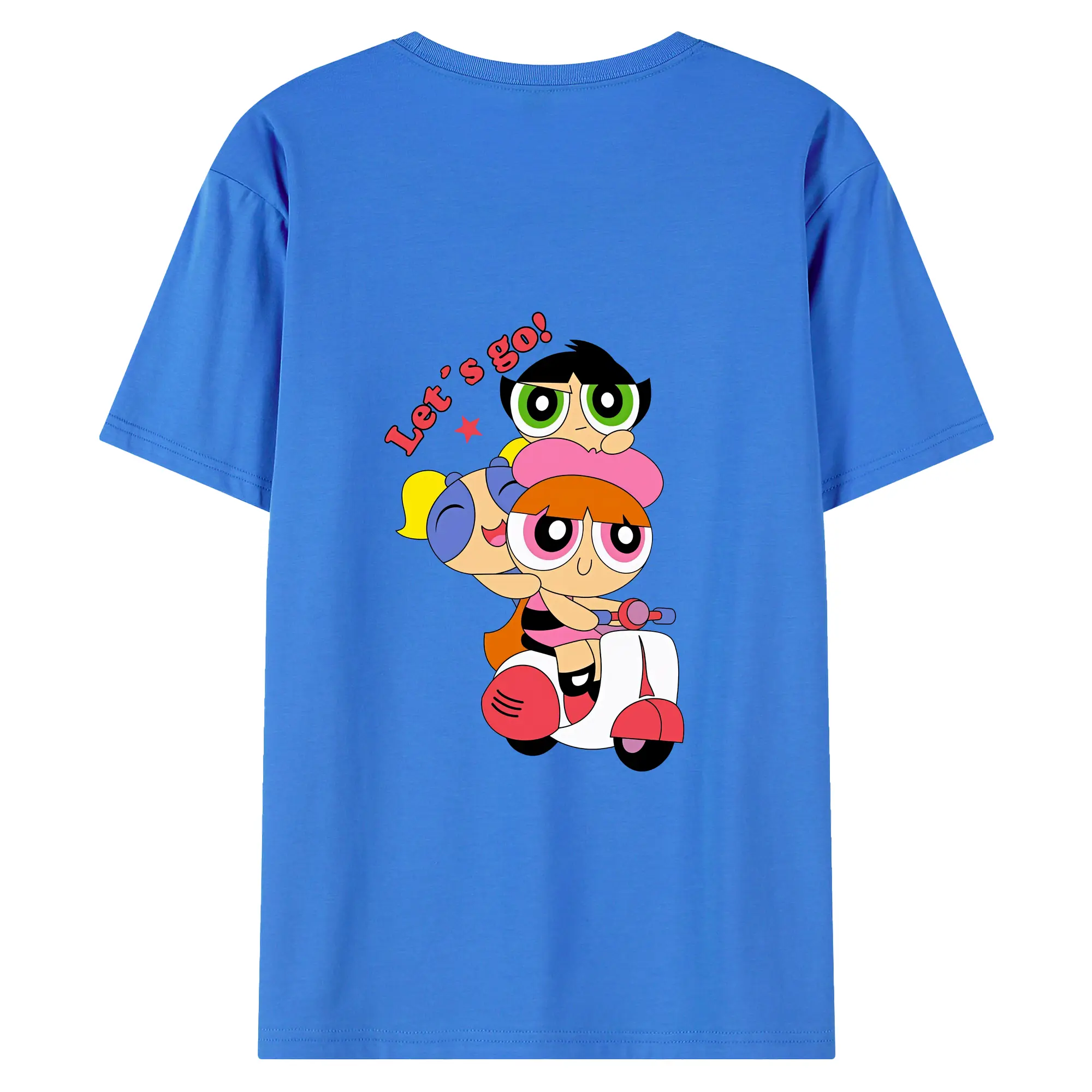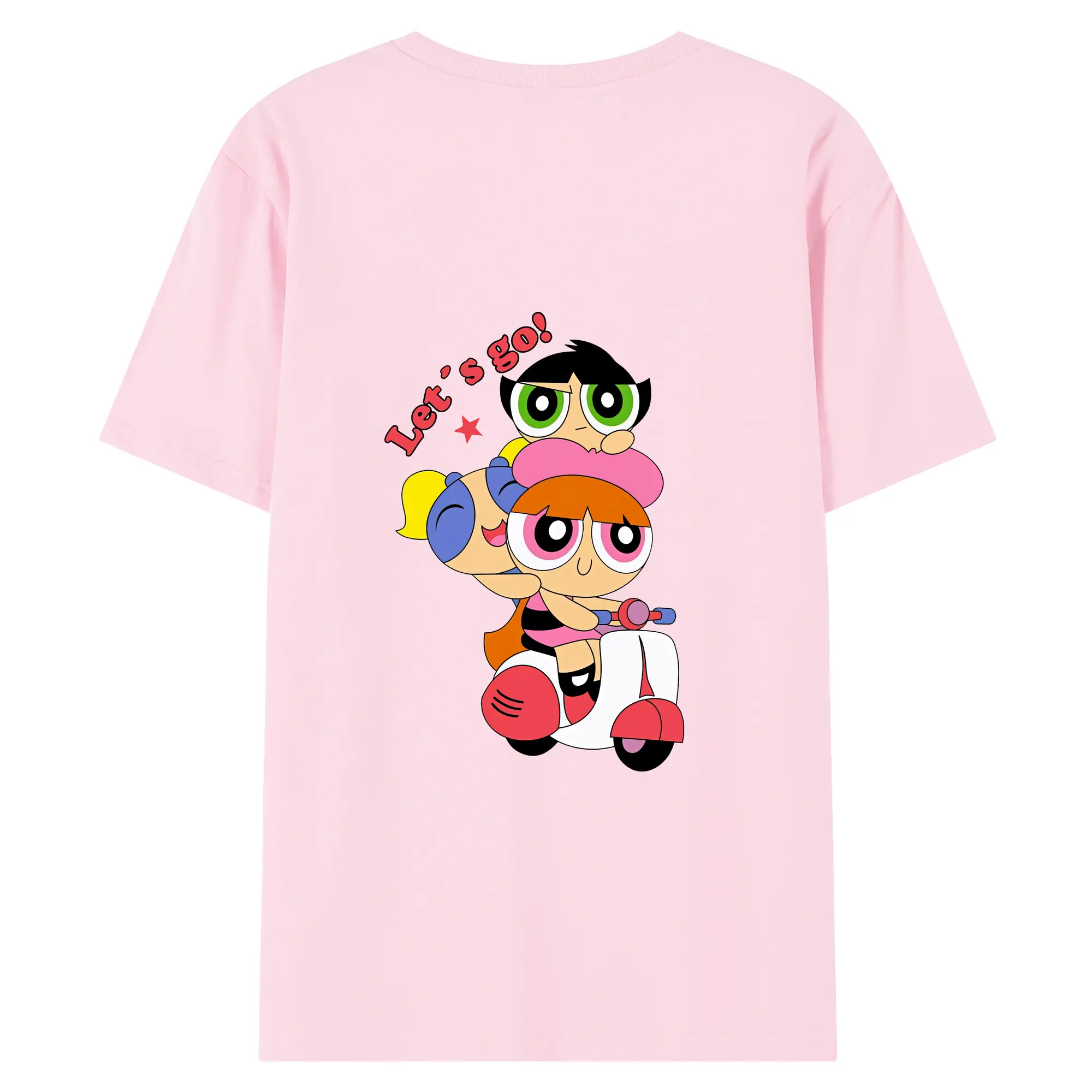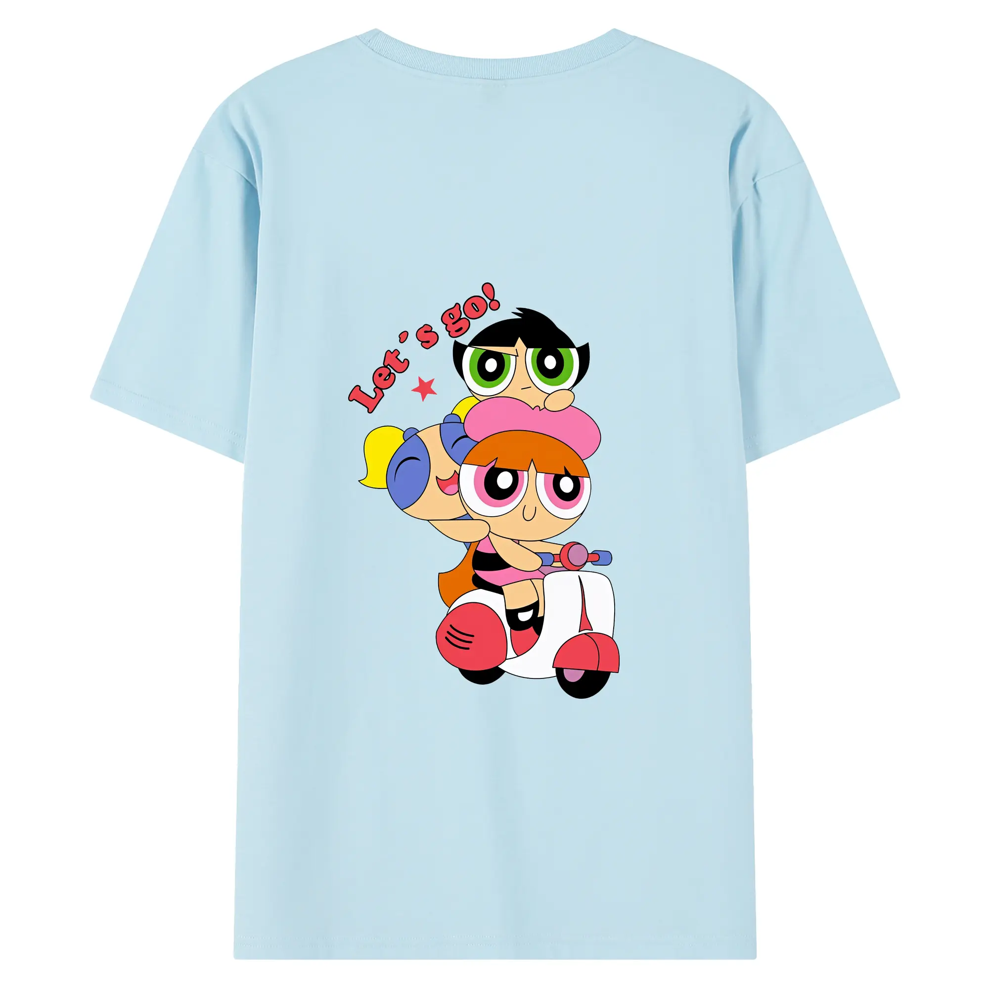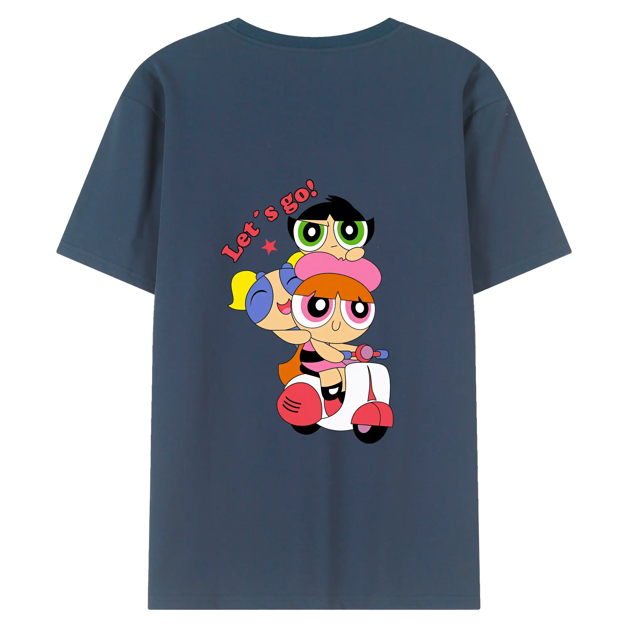 パワパフガールズ グッズ ブロッサム - 綿100% 半袖Tシャツ ・ フロントプリント ・ 快適 通気性 ・ 日常使い 散歩 スポーツ用