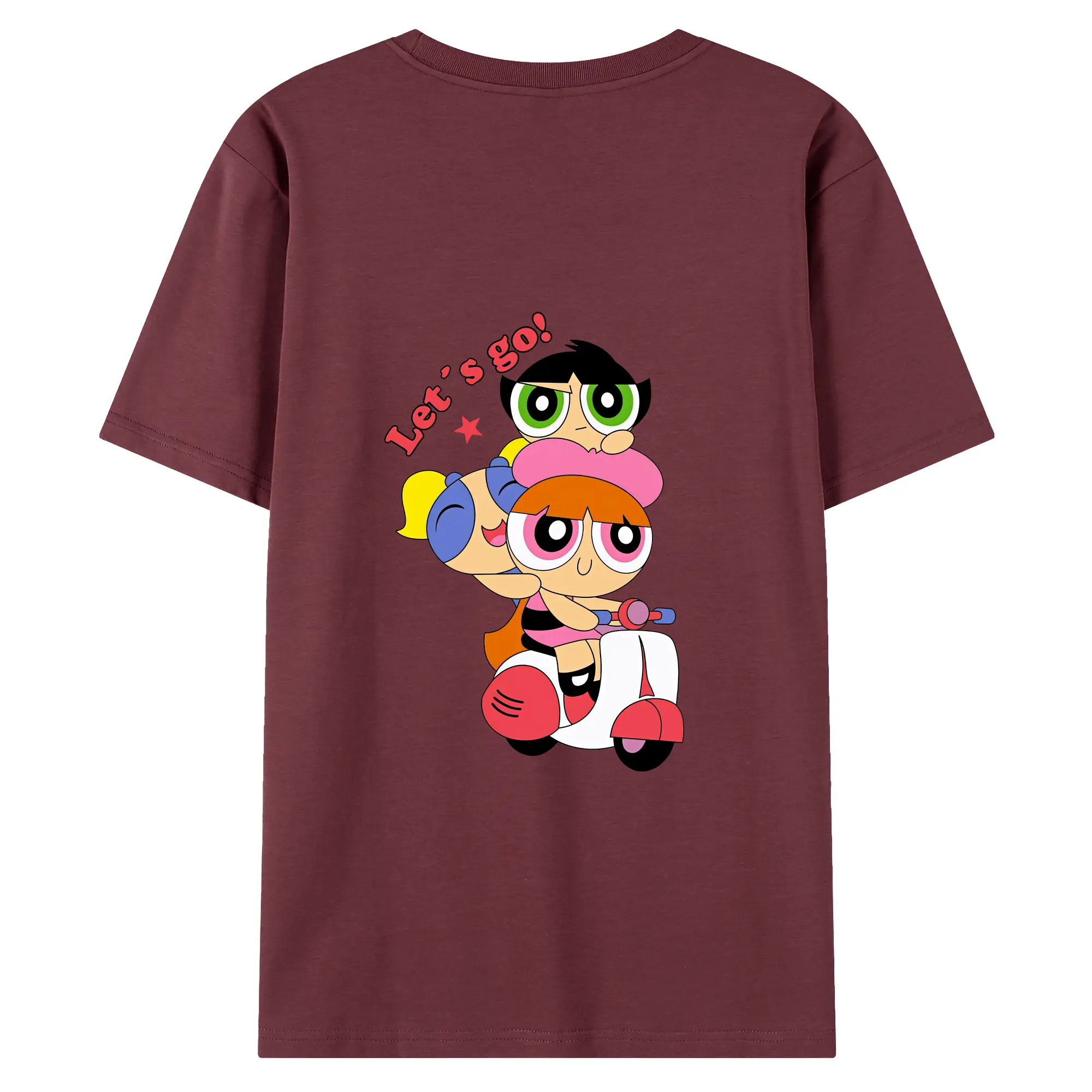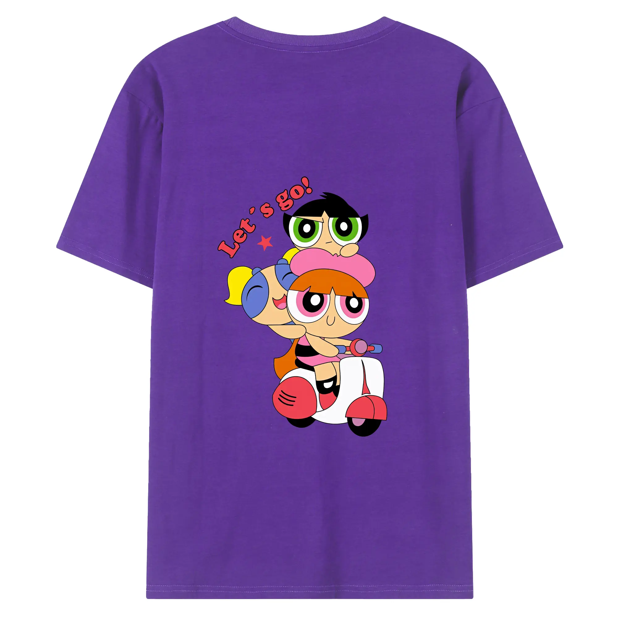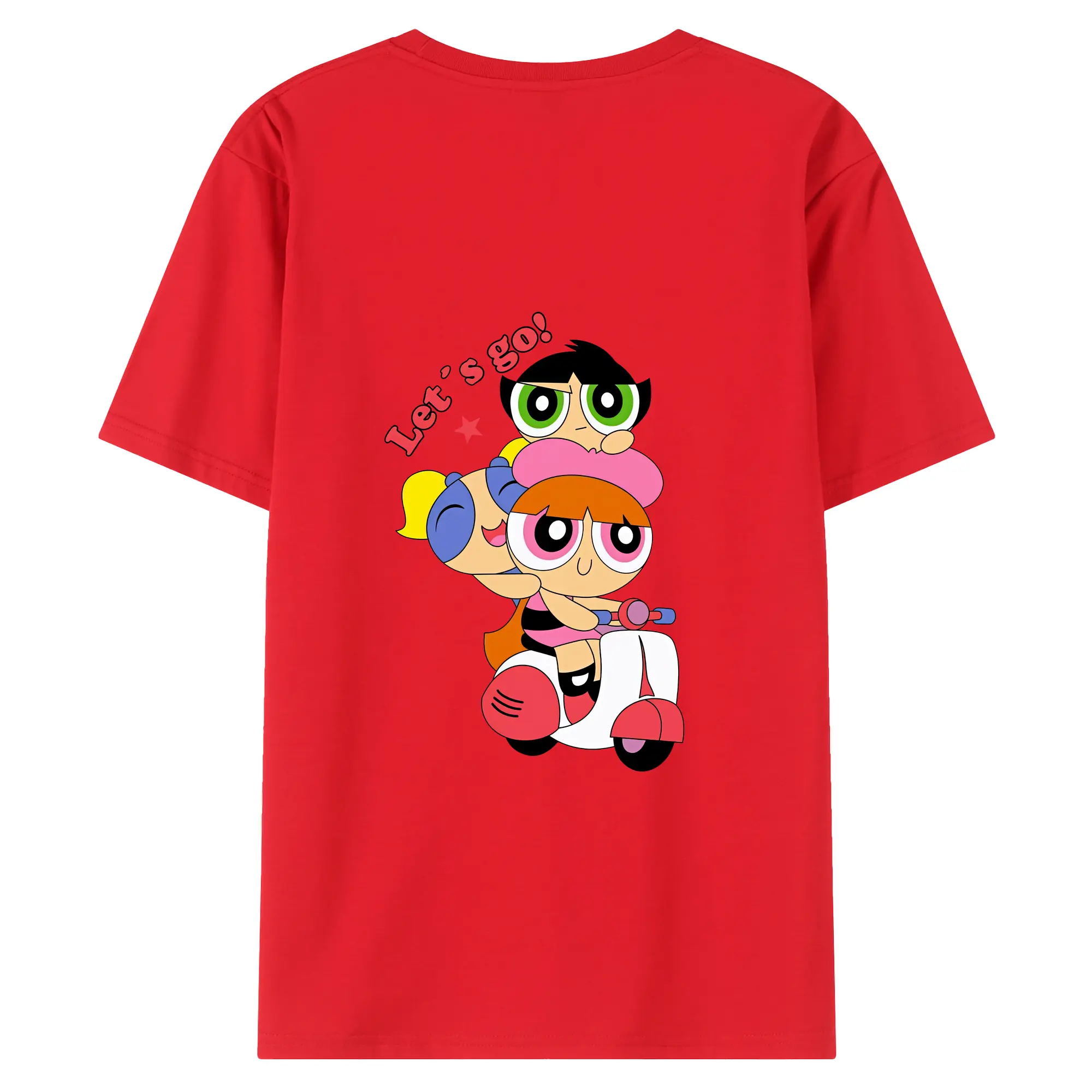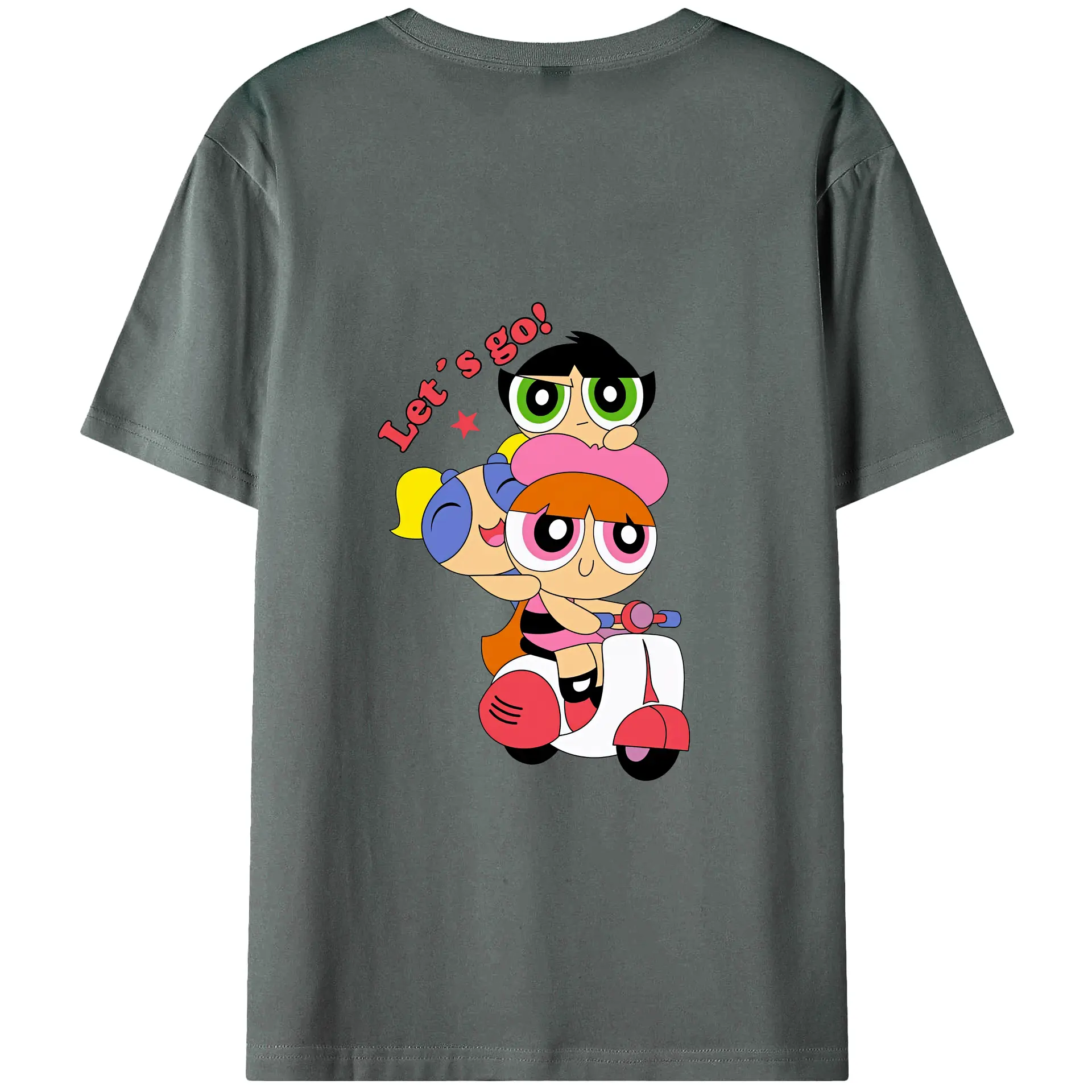 パワパフガールズ グッズ ブロッサム - 綿100% 半袖Tシャツ ・ フロントプリント ・ 快適 通気性 ・ 日常使い 散歩 スポーツ用