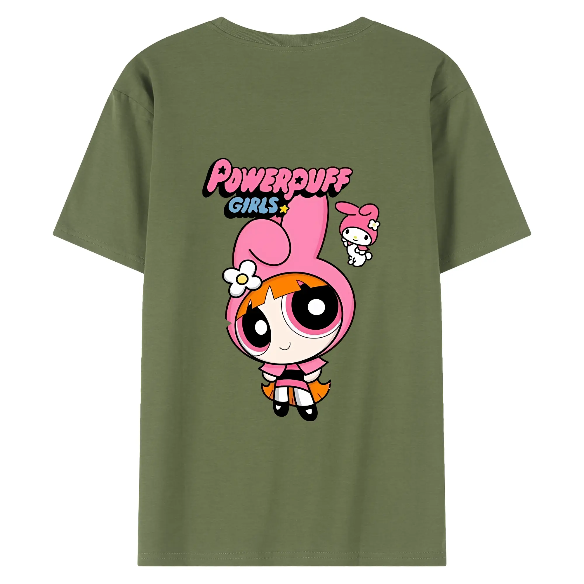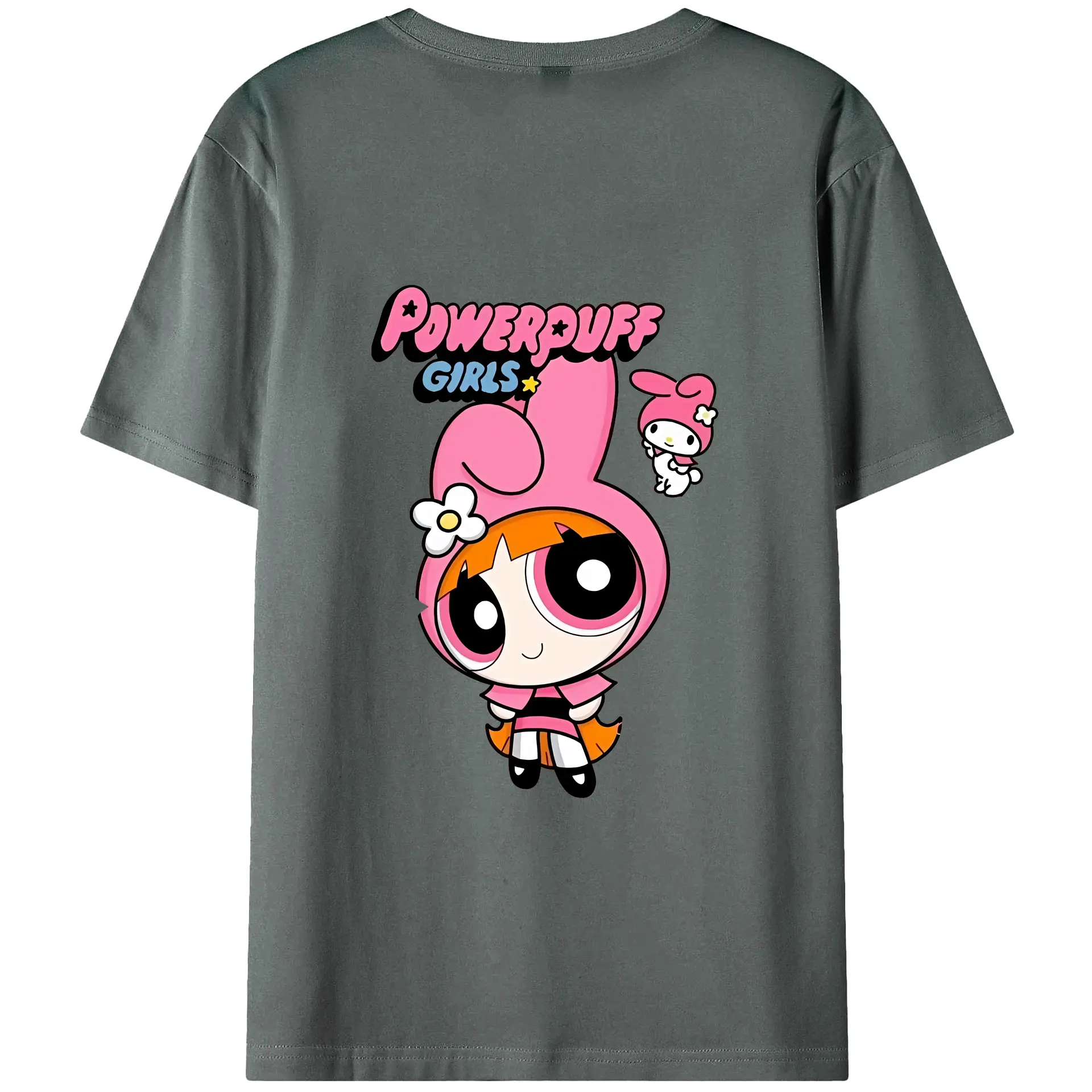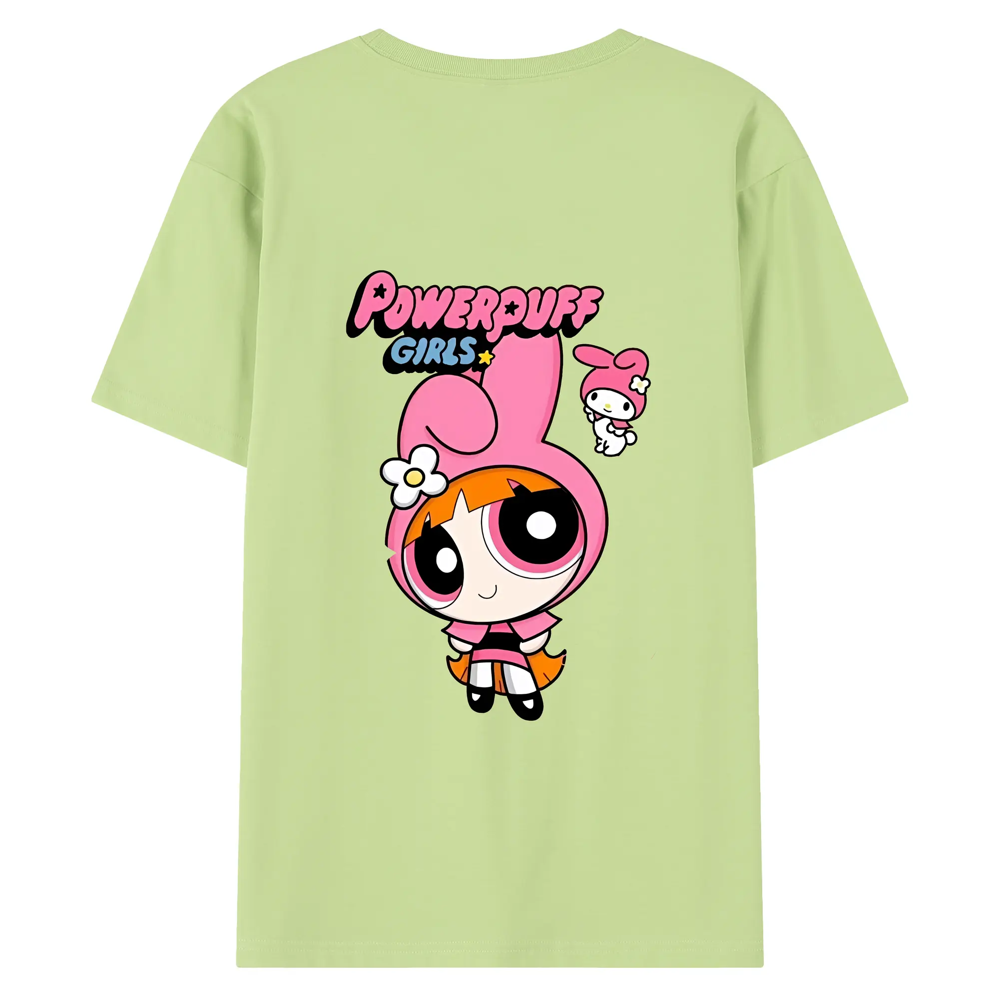 パワパフガールズ グッズ ブロッサム - 綿100% ヴィンテージ風 半袖Tシャツ ・ 背面プリント ・ 柔らか肌触り ・ 通気性 快適 ・ スポーツ カジュアル 外出用