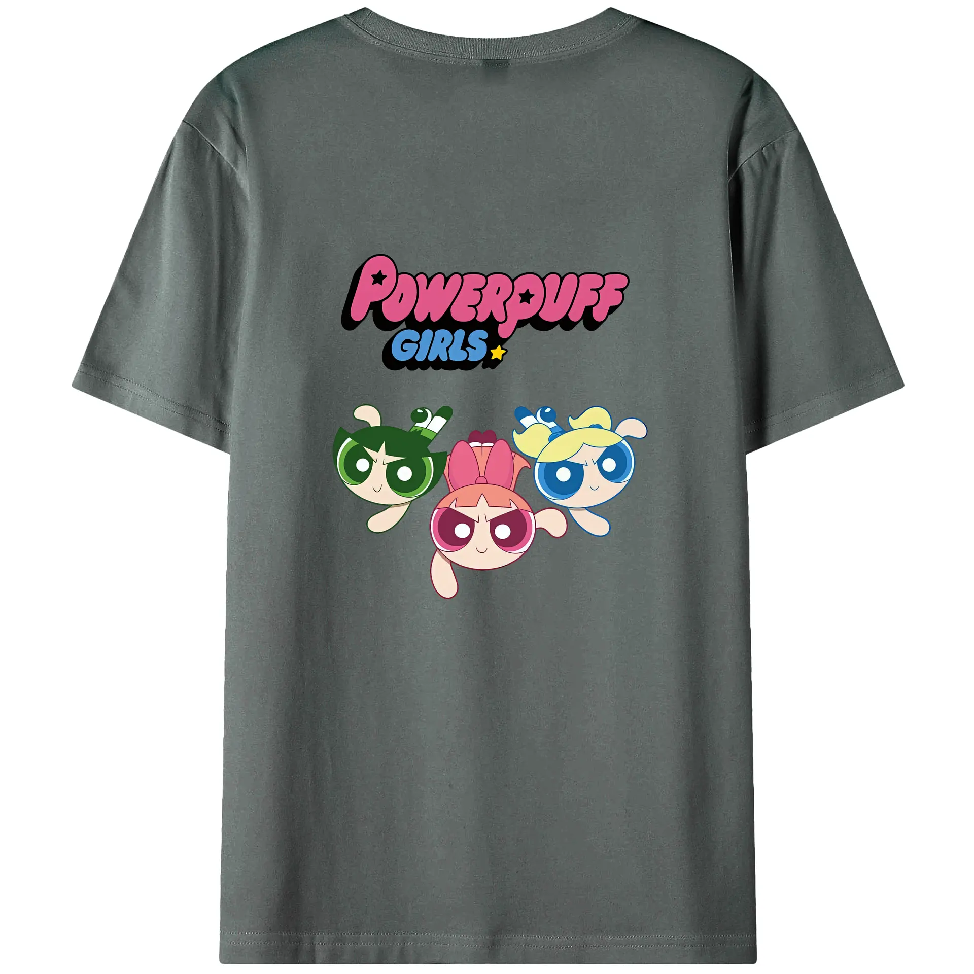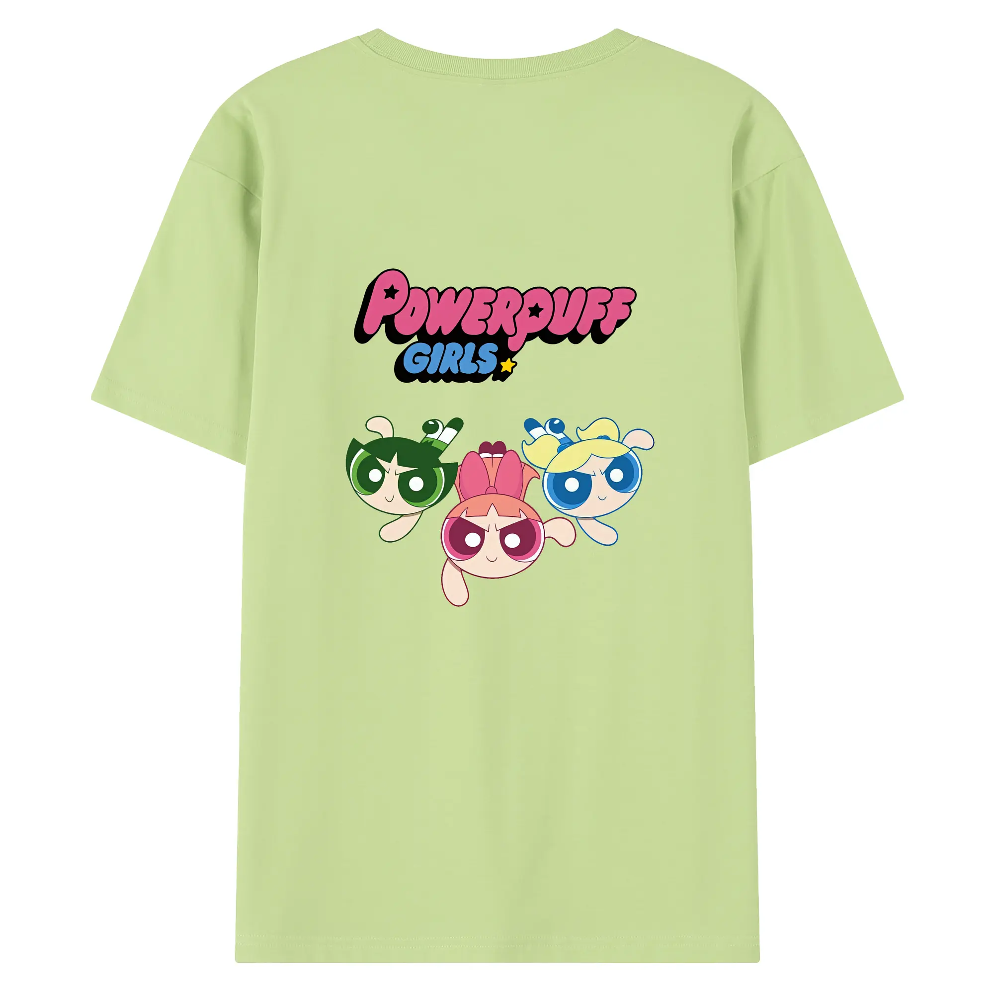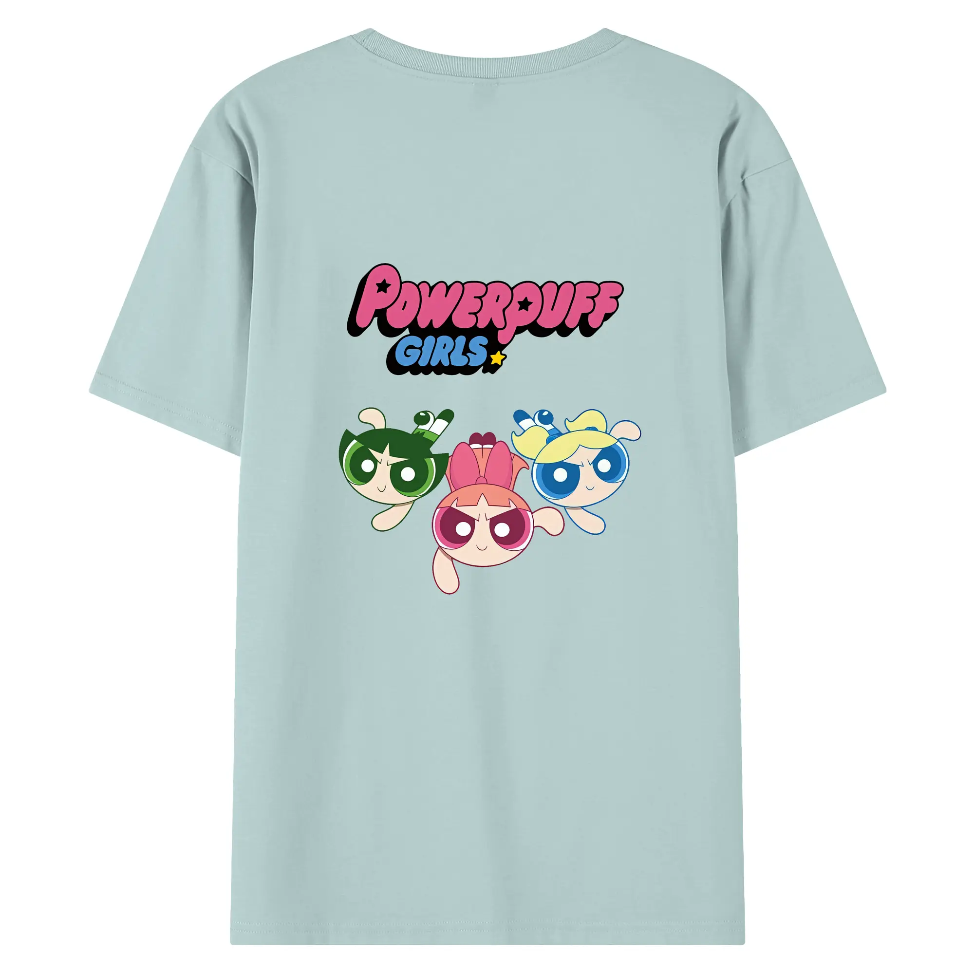 パワパフガールズ グッズ ブロッサム - 綿100% ヴィンテージ風 半袖Tシャツ ・ 背面プリント ・ 柔らか肌触り ・ 通気性 快適 ・ スポーツ カジュアル 外出用