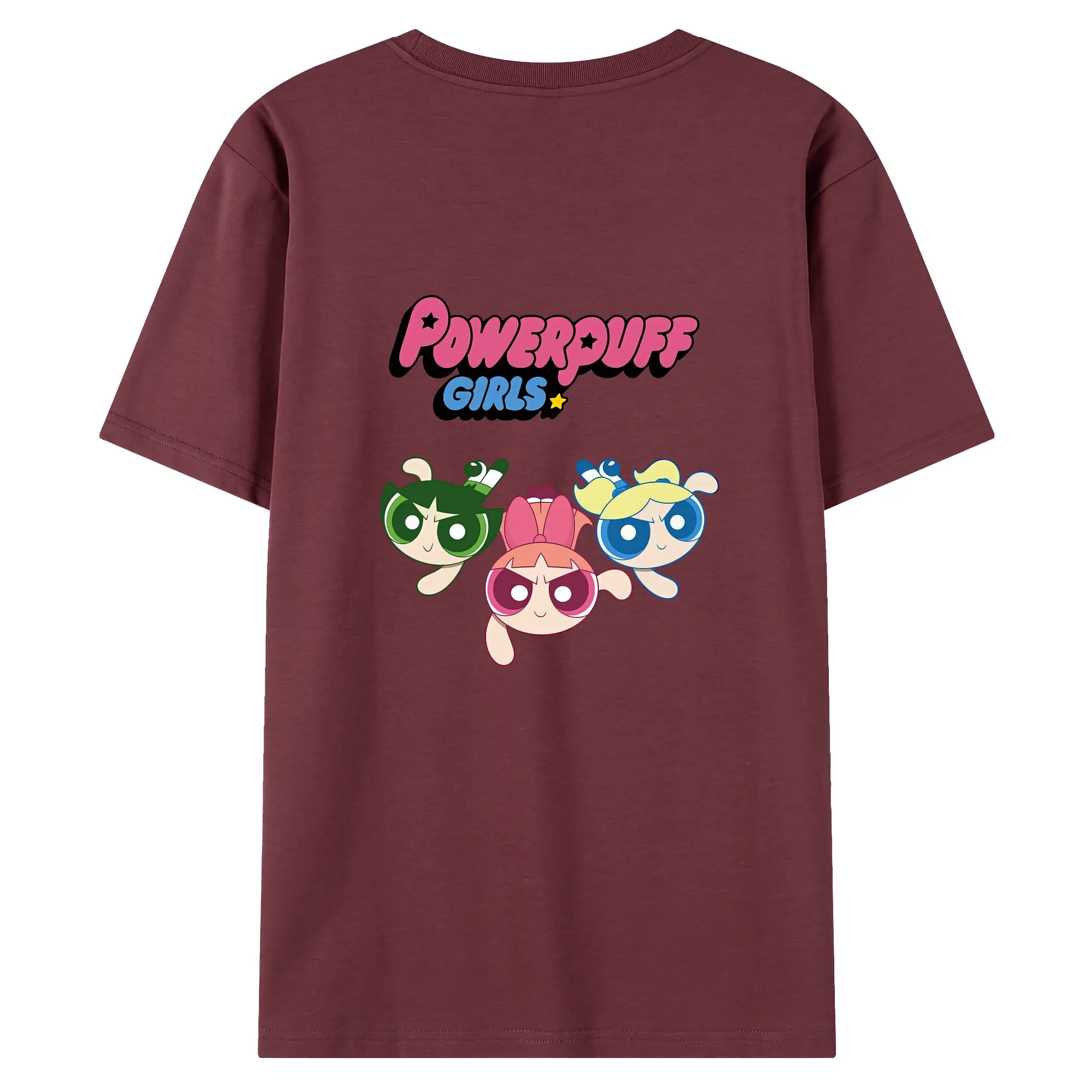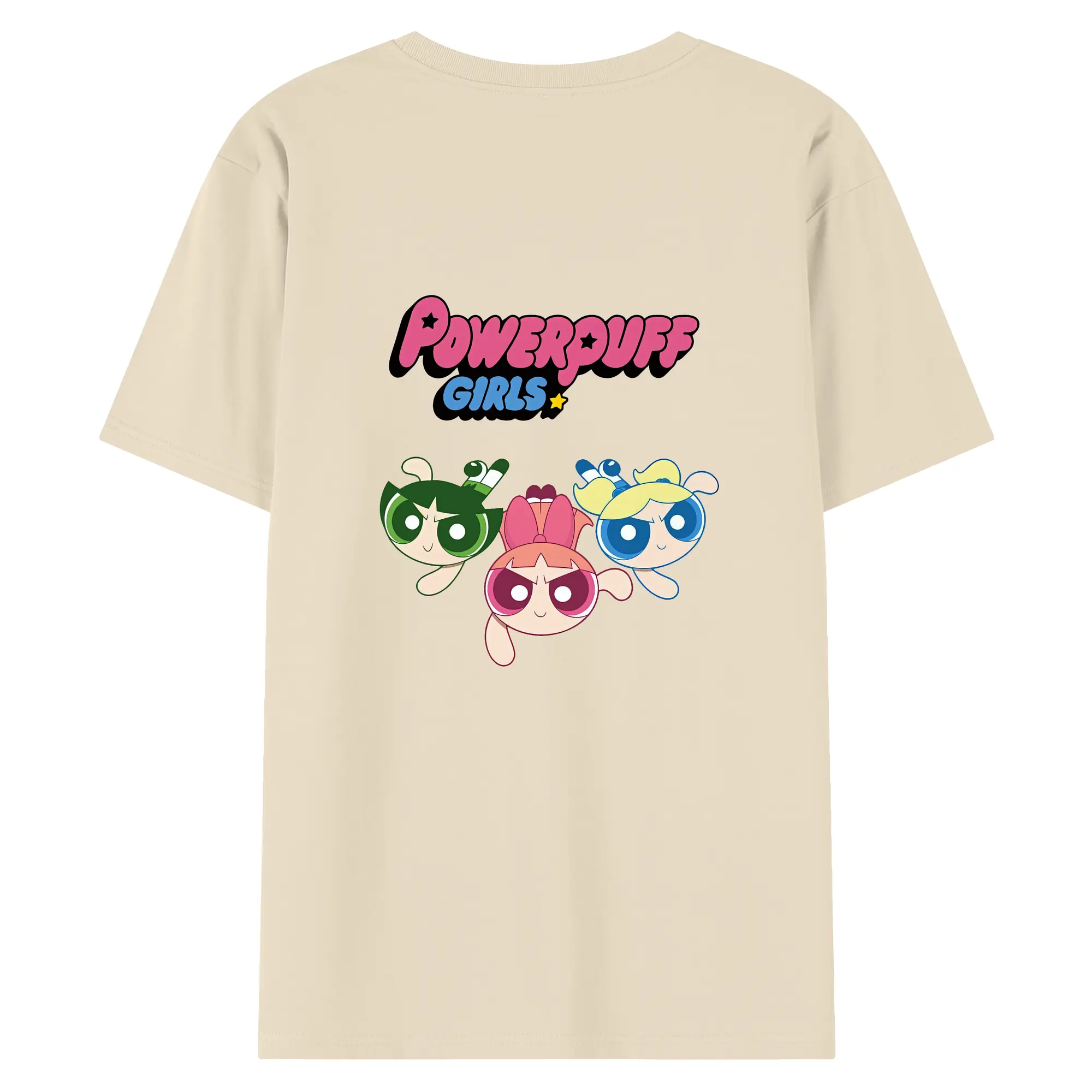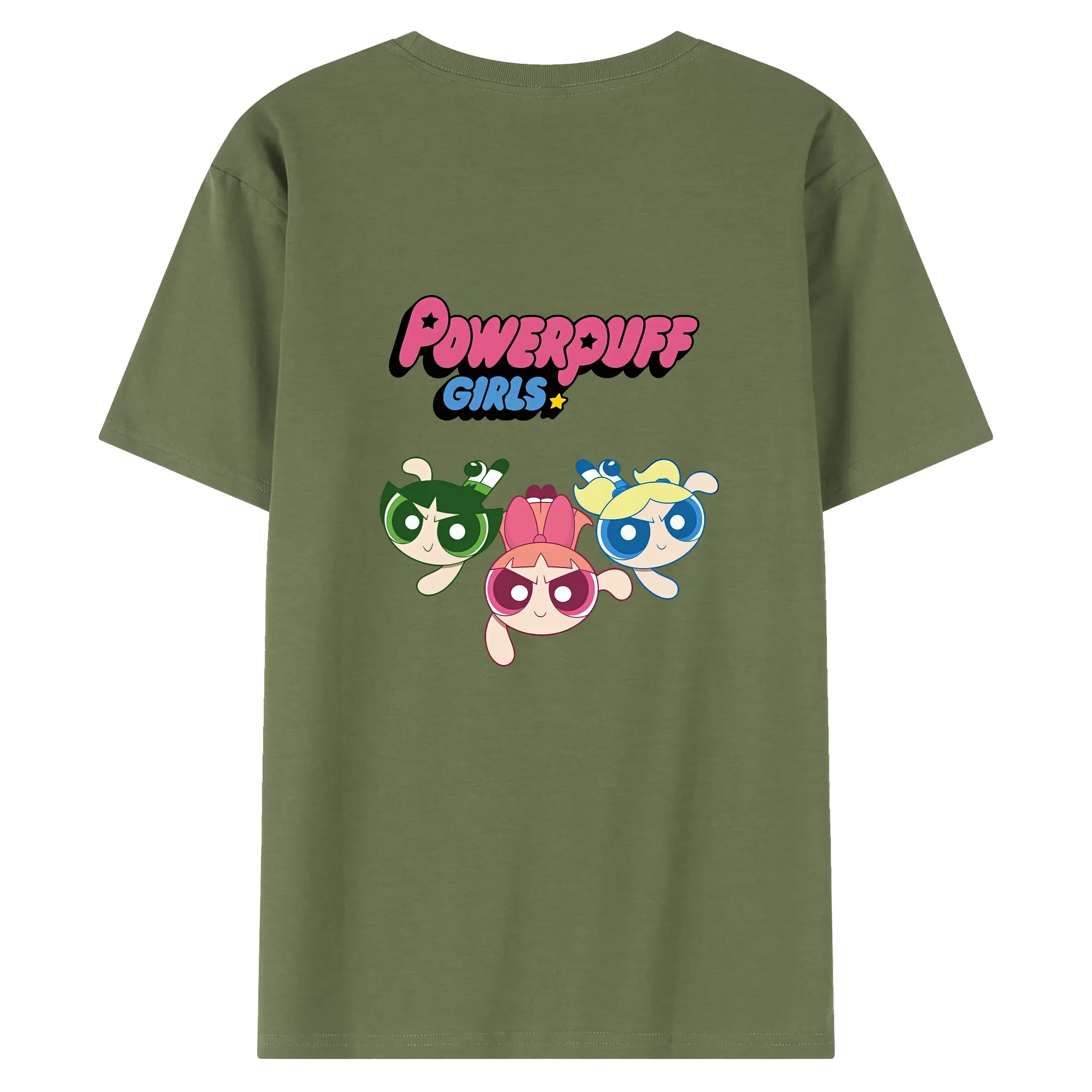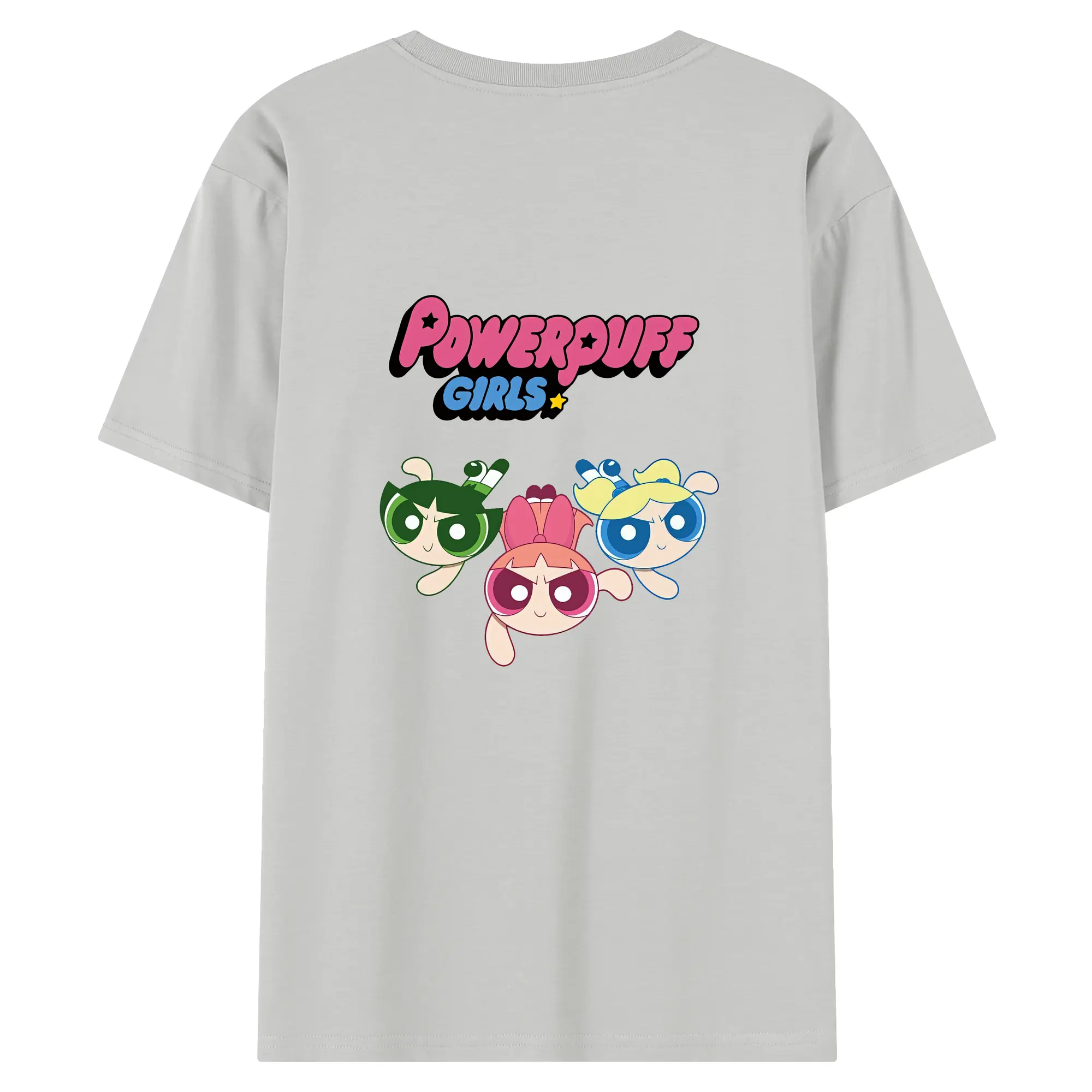 パワパフガールズ グッズ ブロッサム - 綿100% ヴィンテージ風 半袖Tシャツ ・ 背面プリント ・ 柔らか肌触り ・ 通気性 快適 ・ スポーツ カジュアル 外出用