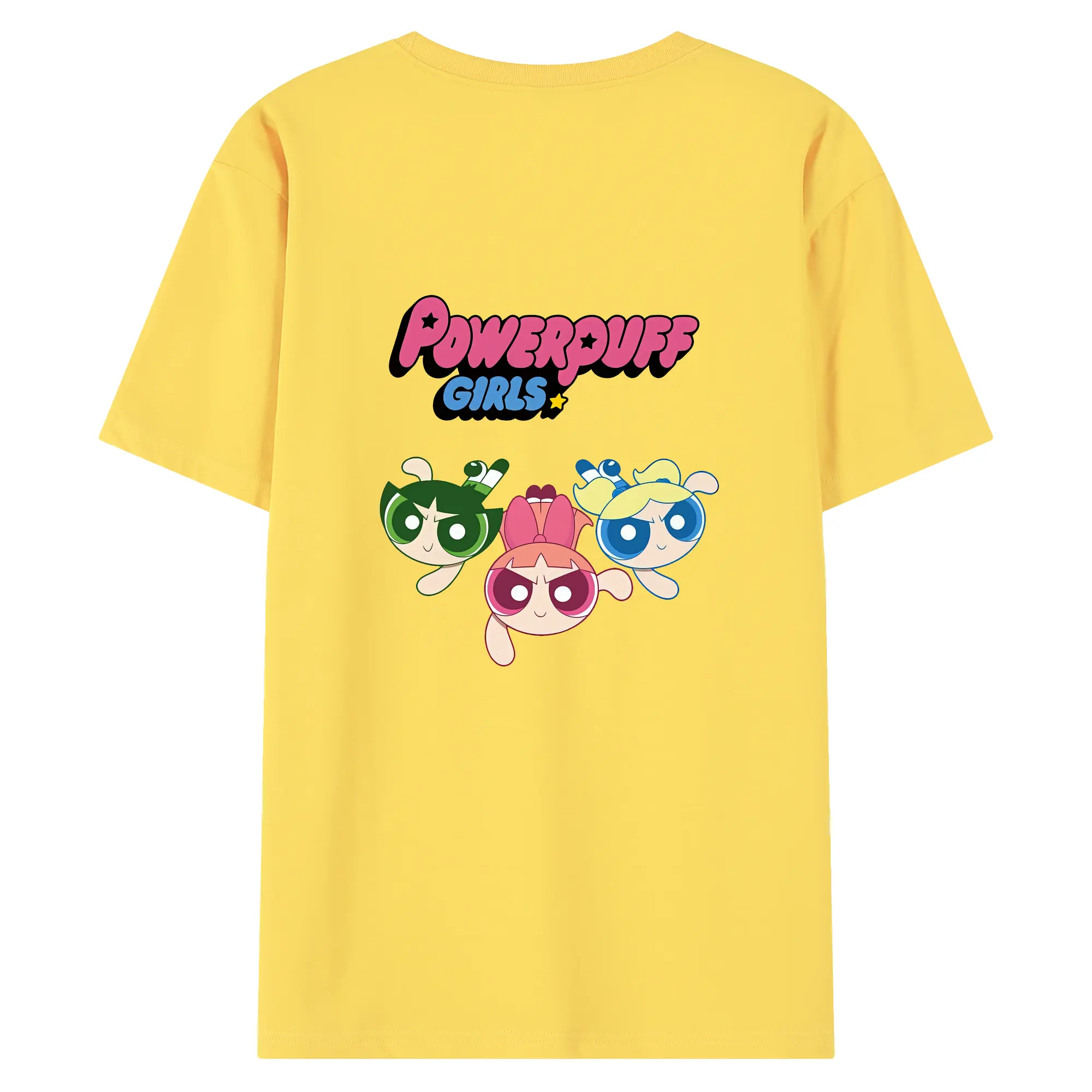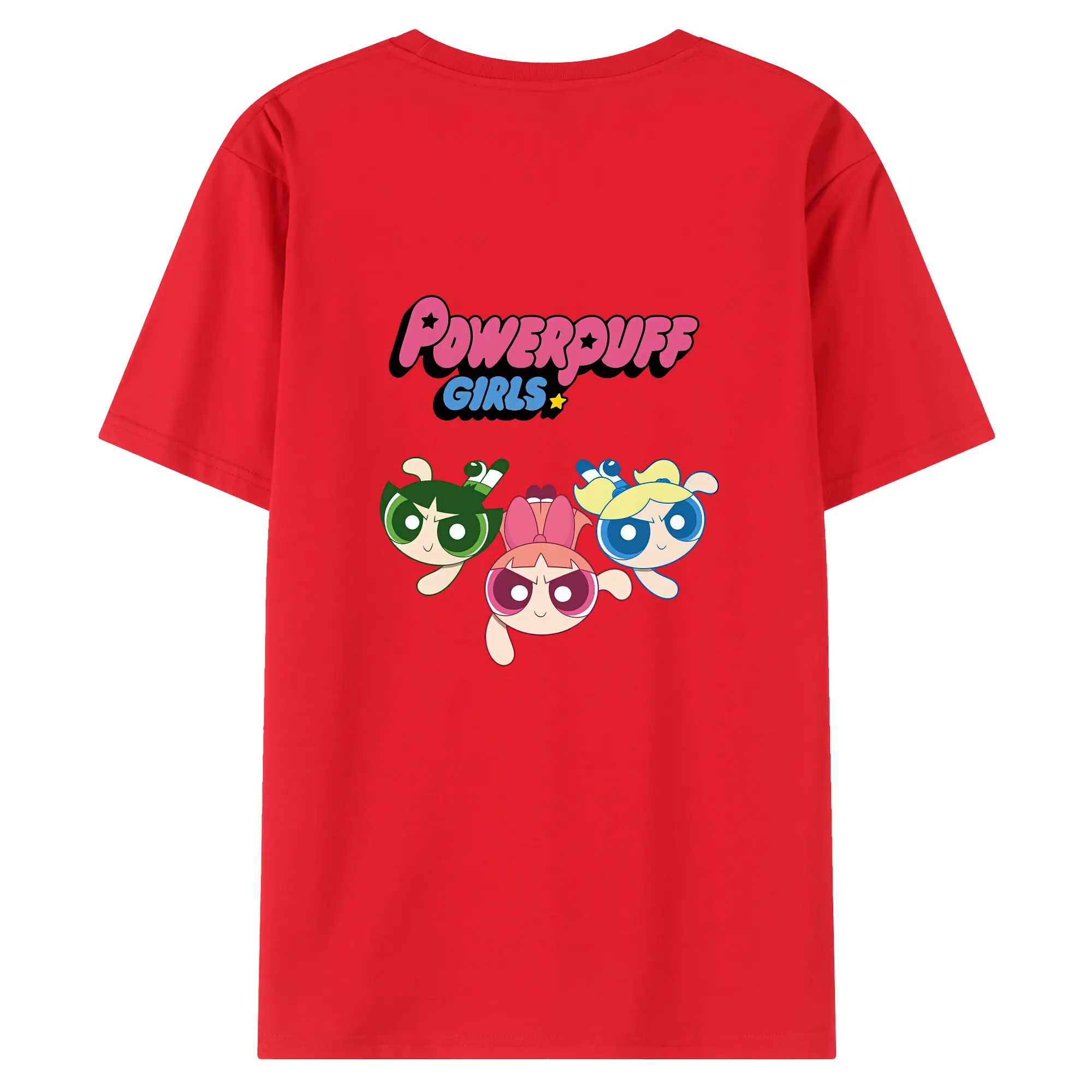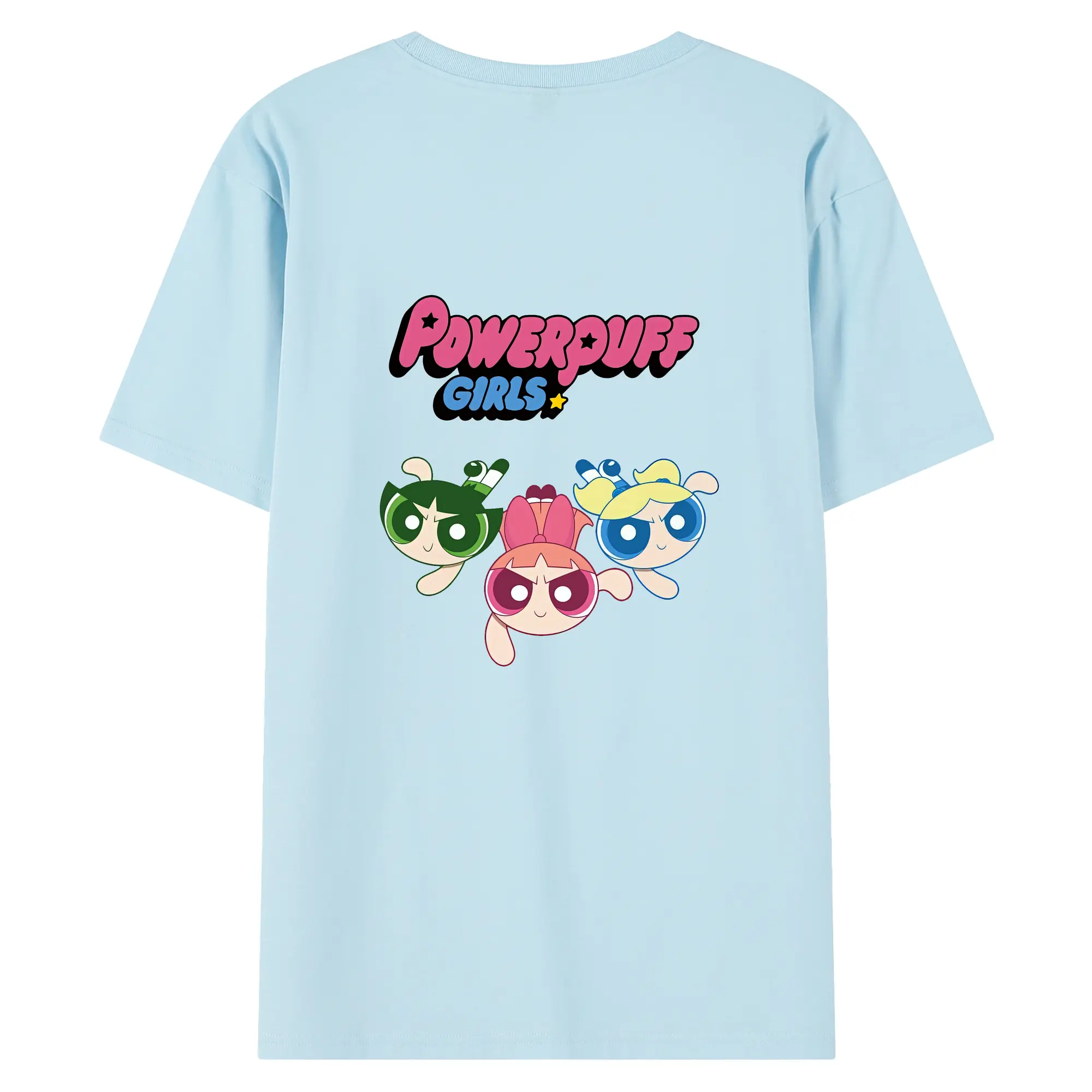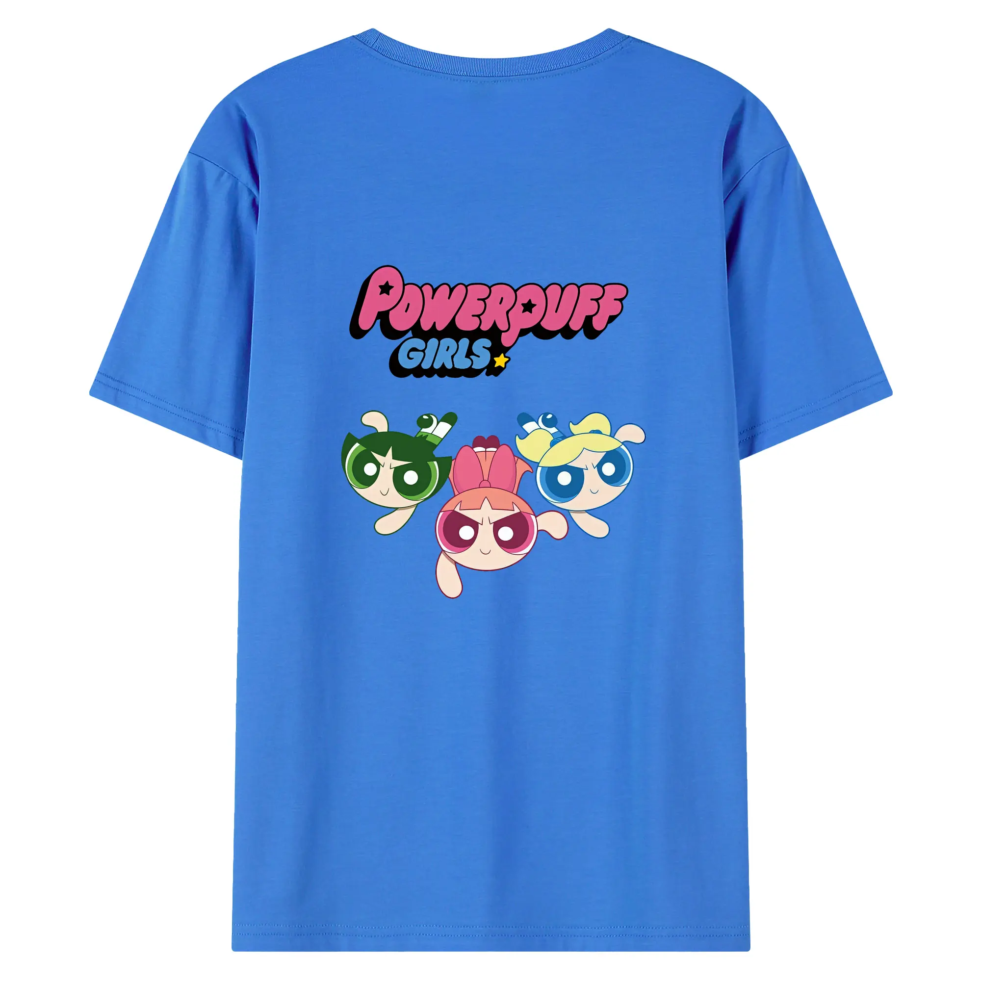 パワパフガールズ グッズ ブロッサム - 綿100% 半袖Tシャツ ・ フロントプリント ・ 快適 通気性 ・ 日常使い 散歩 スポーツ用