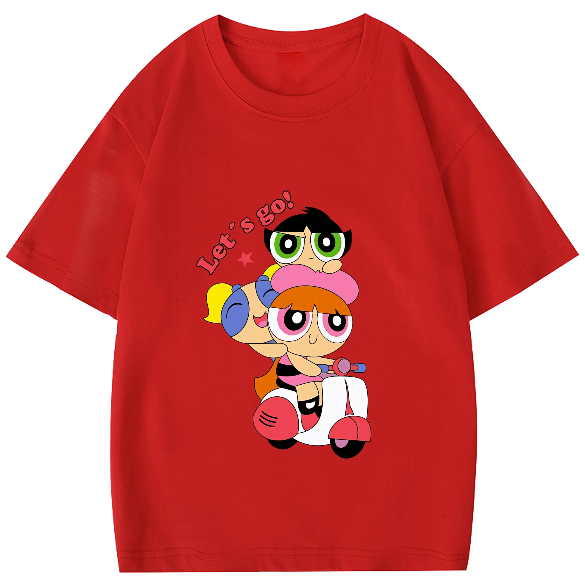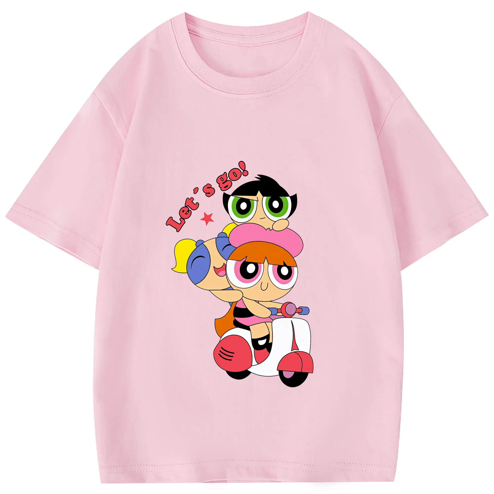 パワパフガールズ グッズ ブロッサム - 綿100% 半袖Tシャツ ・ バックプリント ・ 快適 通気性 ・ 日常使い 散歩 スポーツ用