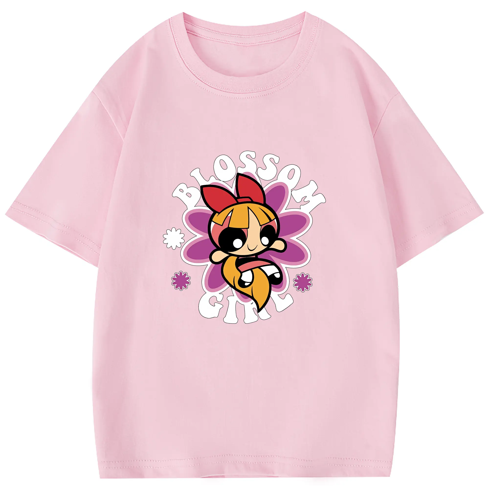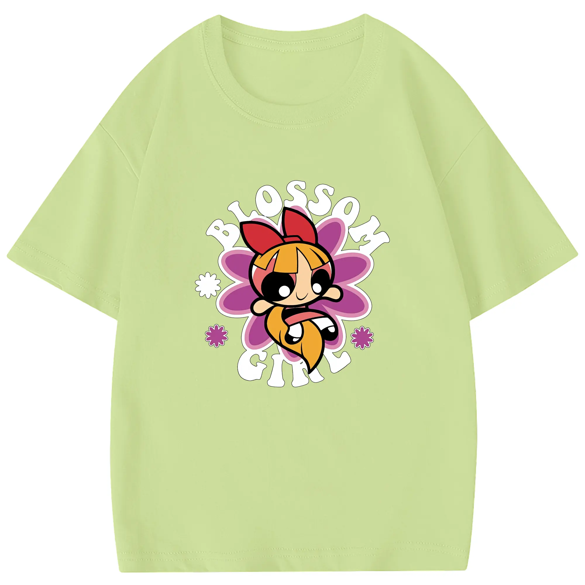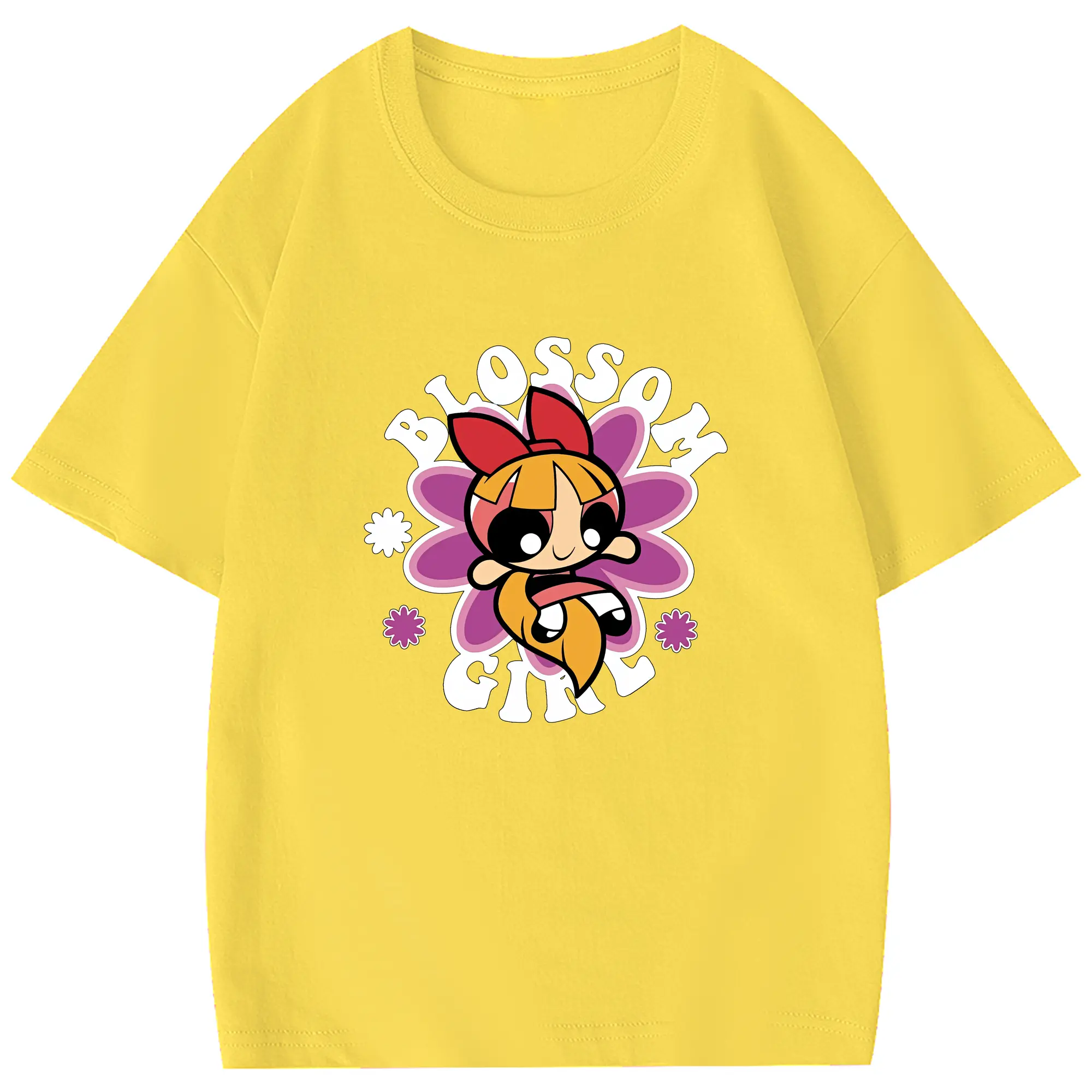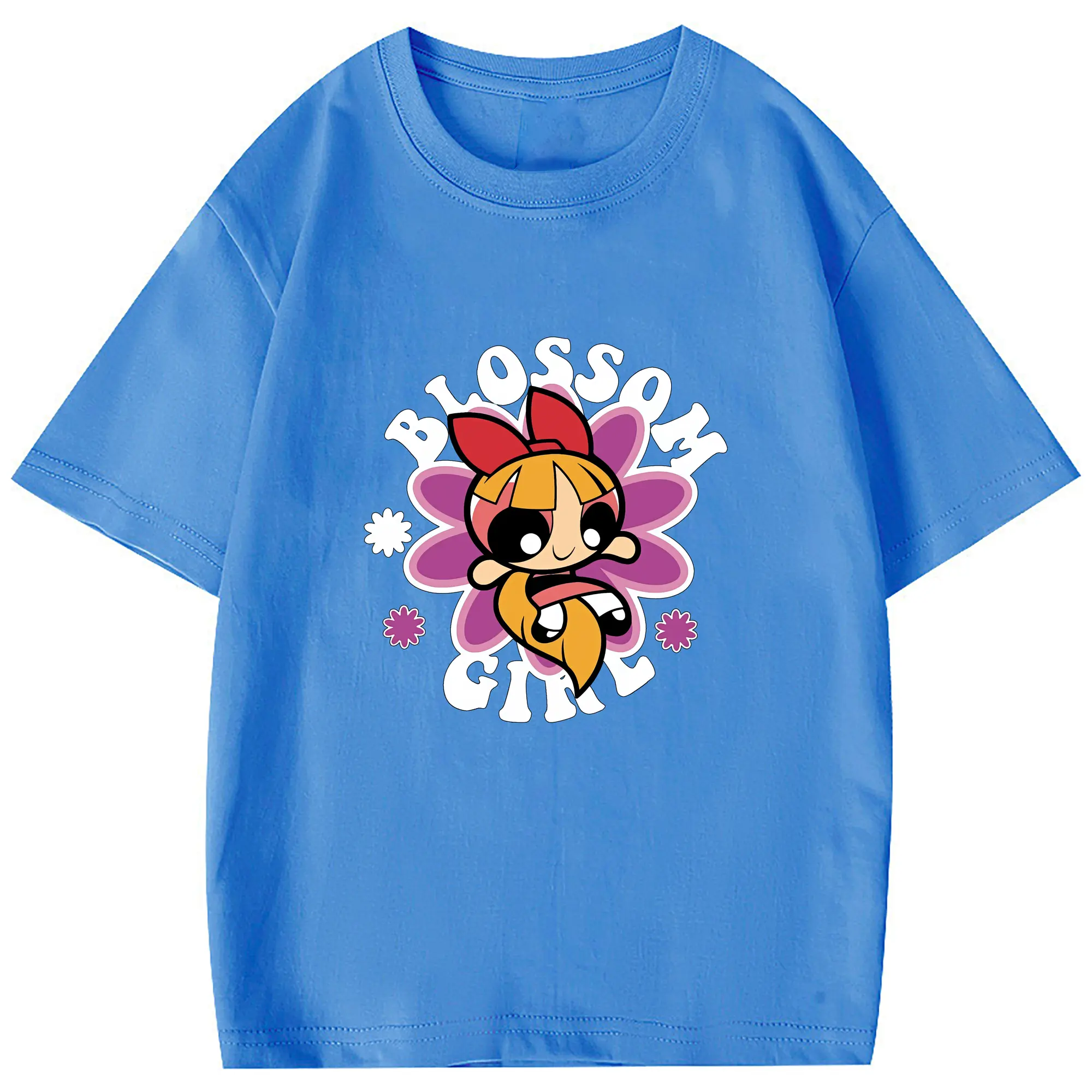 パワパフガールズ グッズ ブロッサム - 綿100% 半袖Tシャツ ・ フロントプリント ・ 快適 通気性 ・ 日常使い 散歩 スポーツ用
