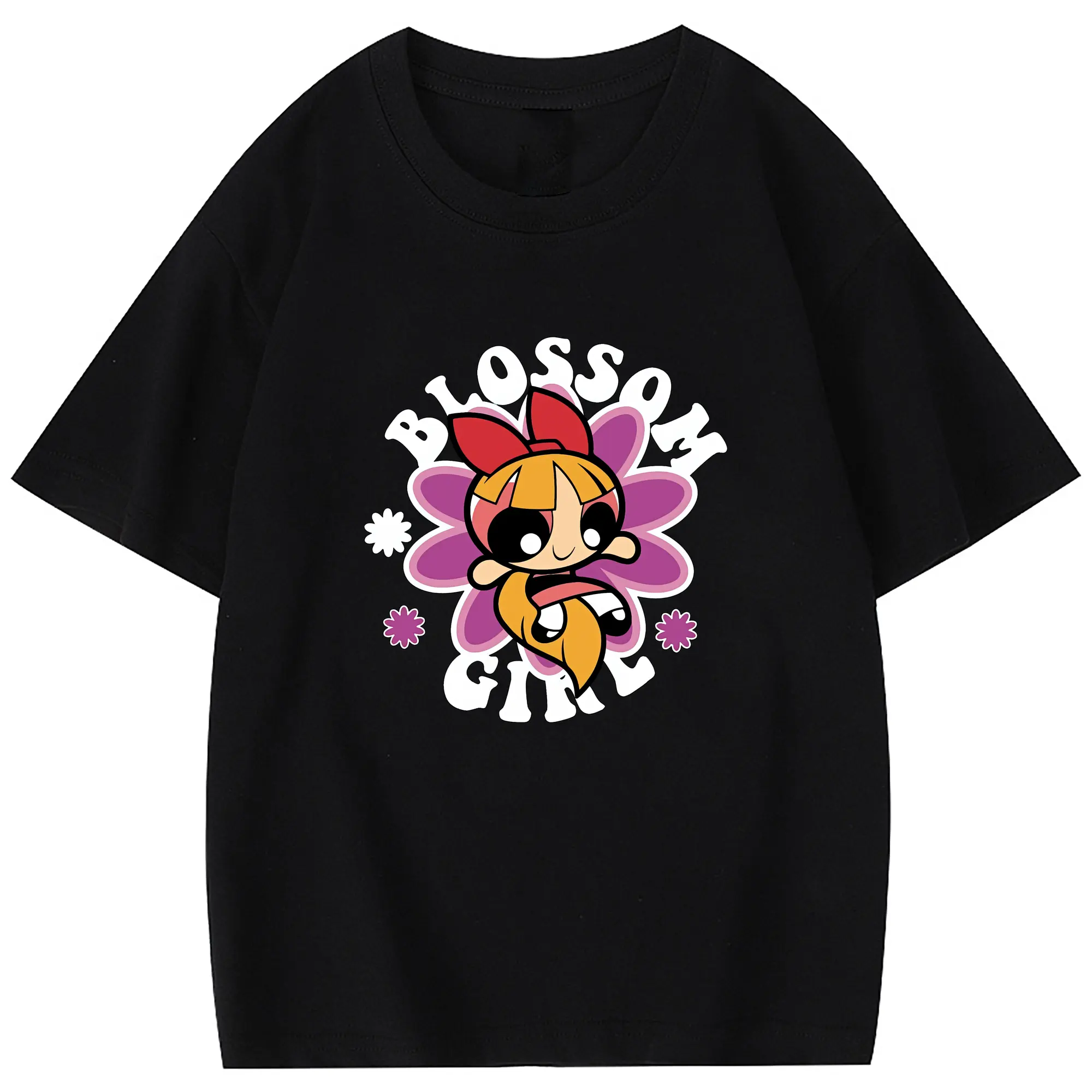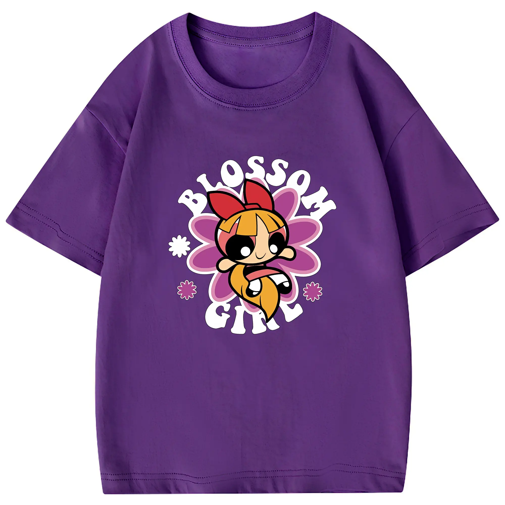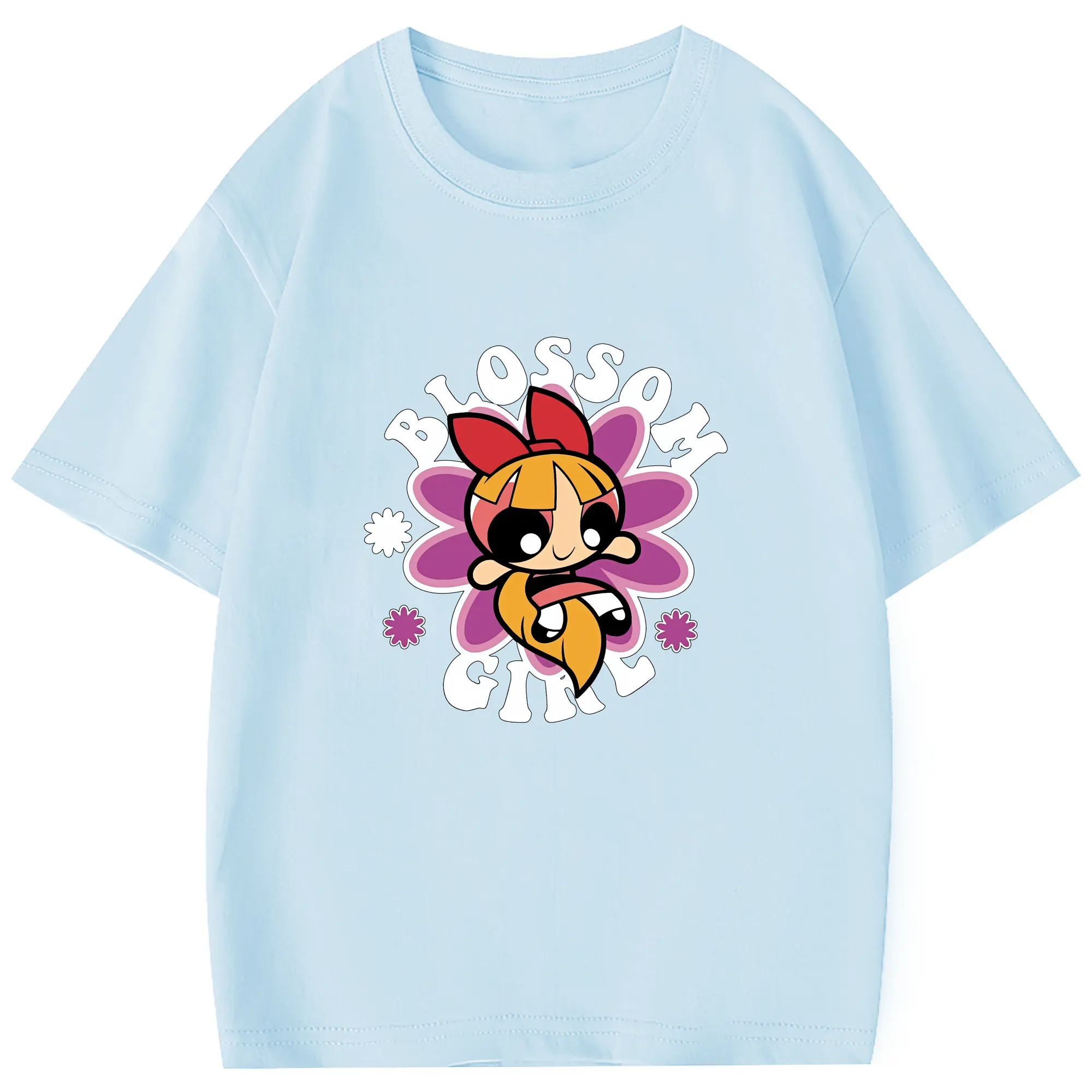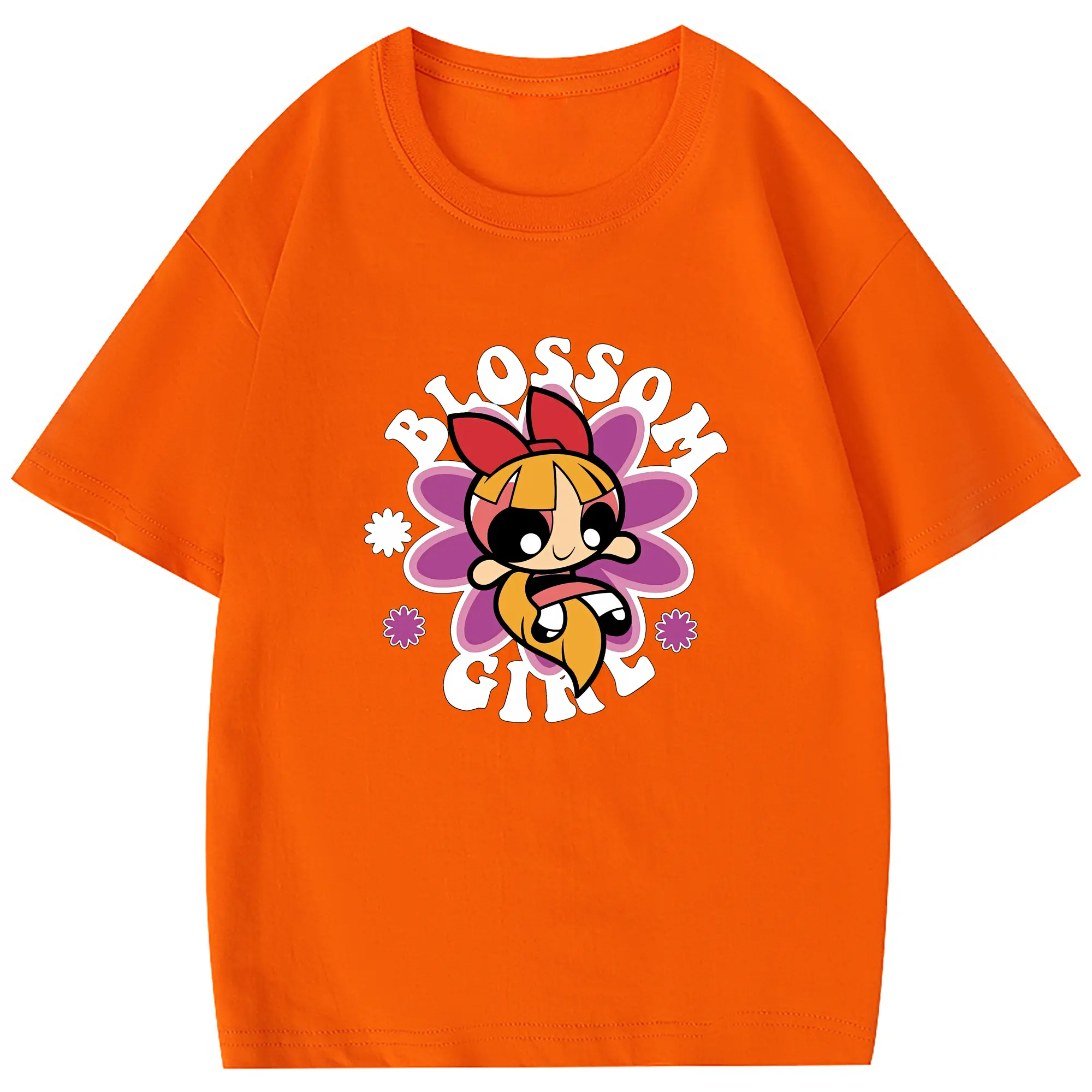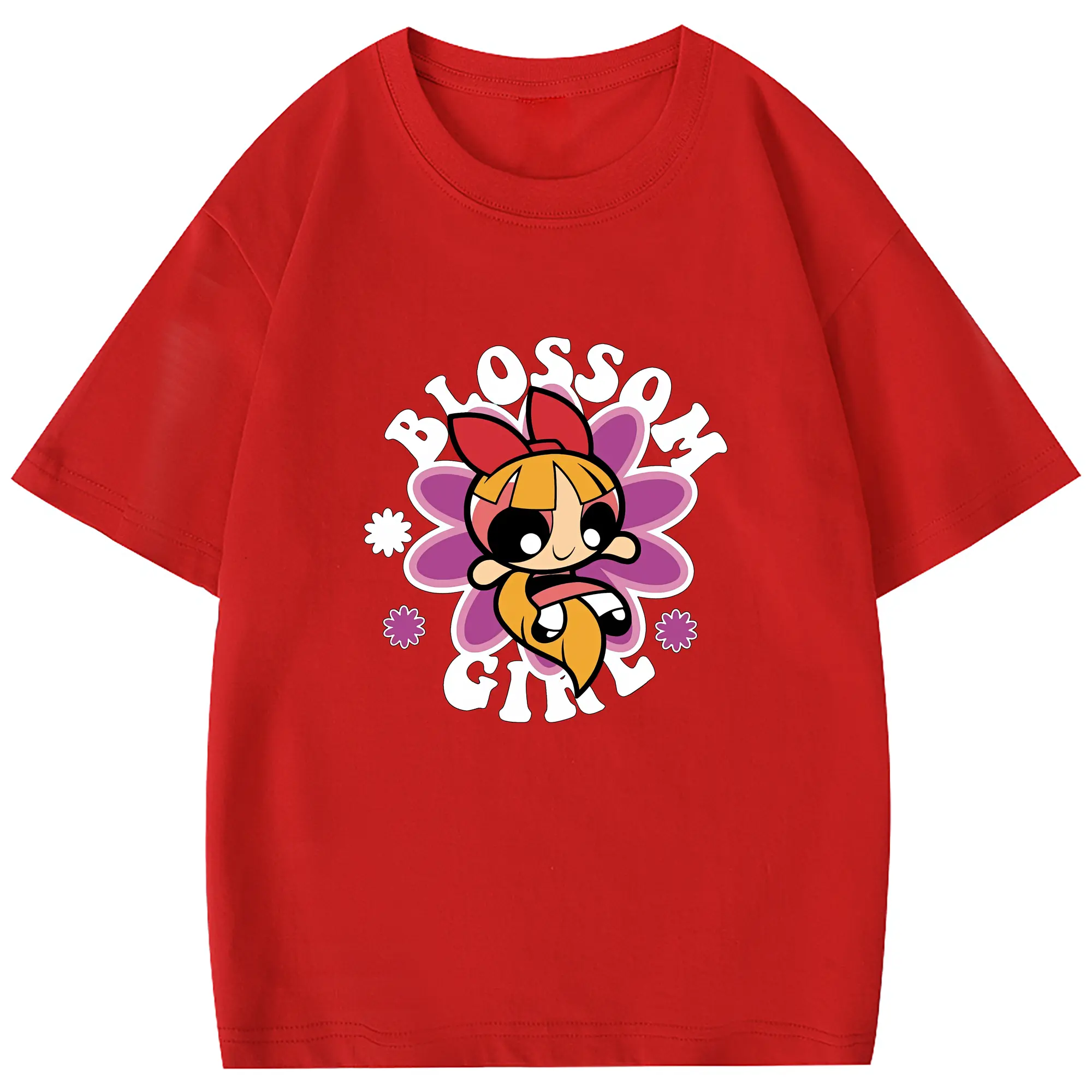 パワパフガールズ グッズ ブロッサム - 綿100% 半袖Tシャツ ・ フロントプリント ・ 快適 通気性 ・ 日常使い 散歩 スポーツ用