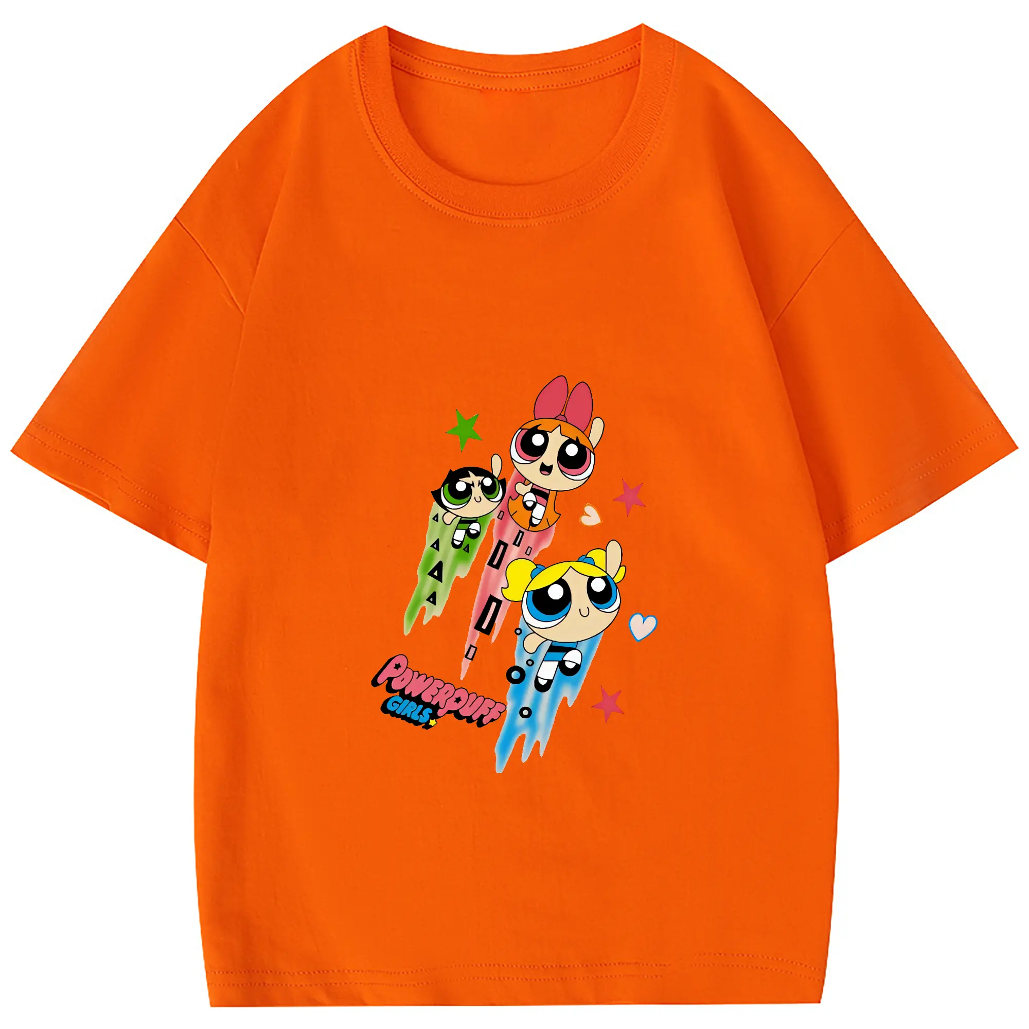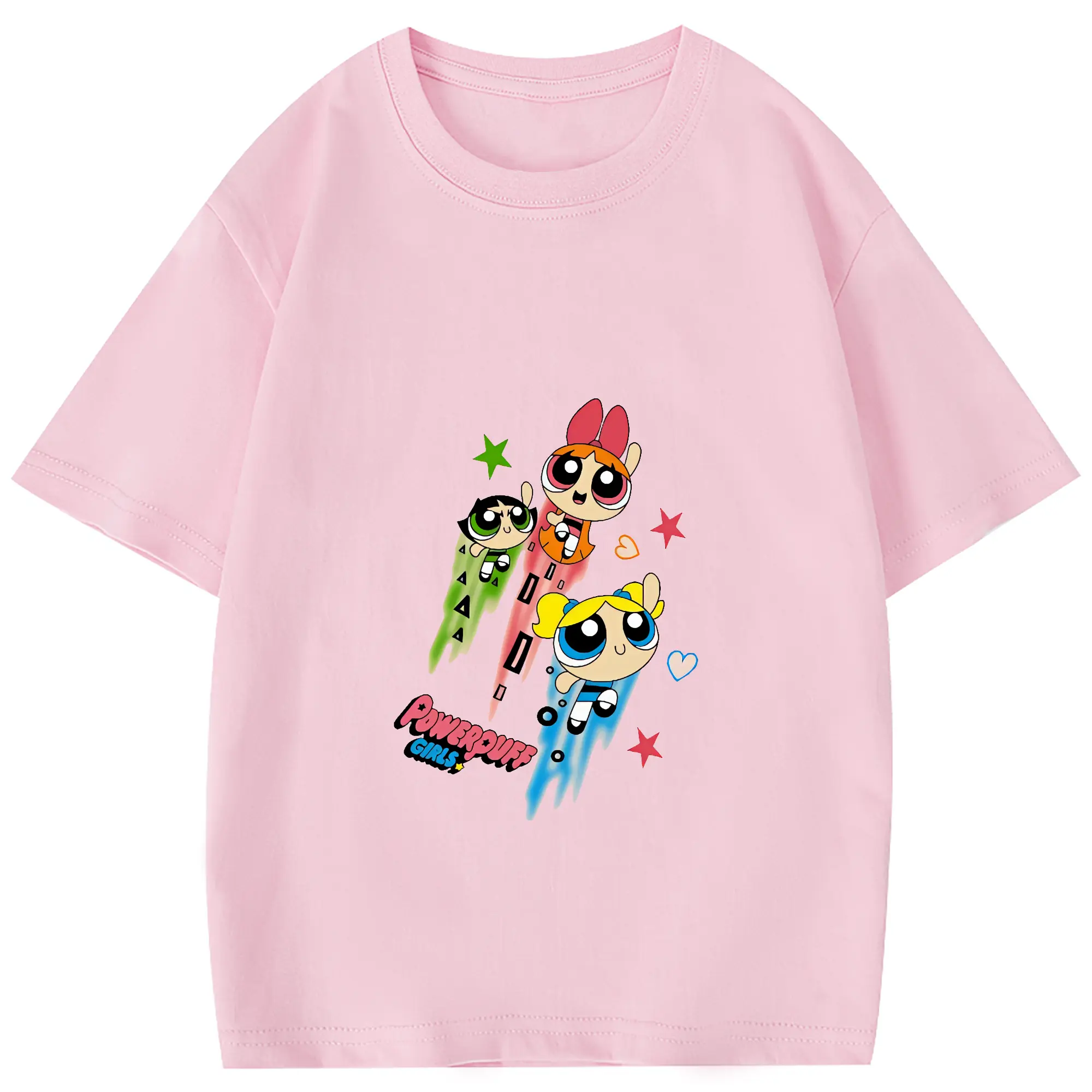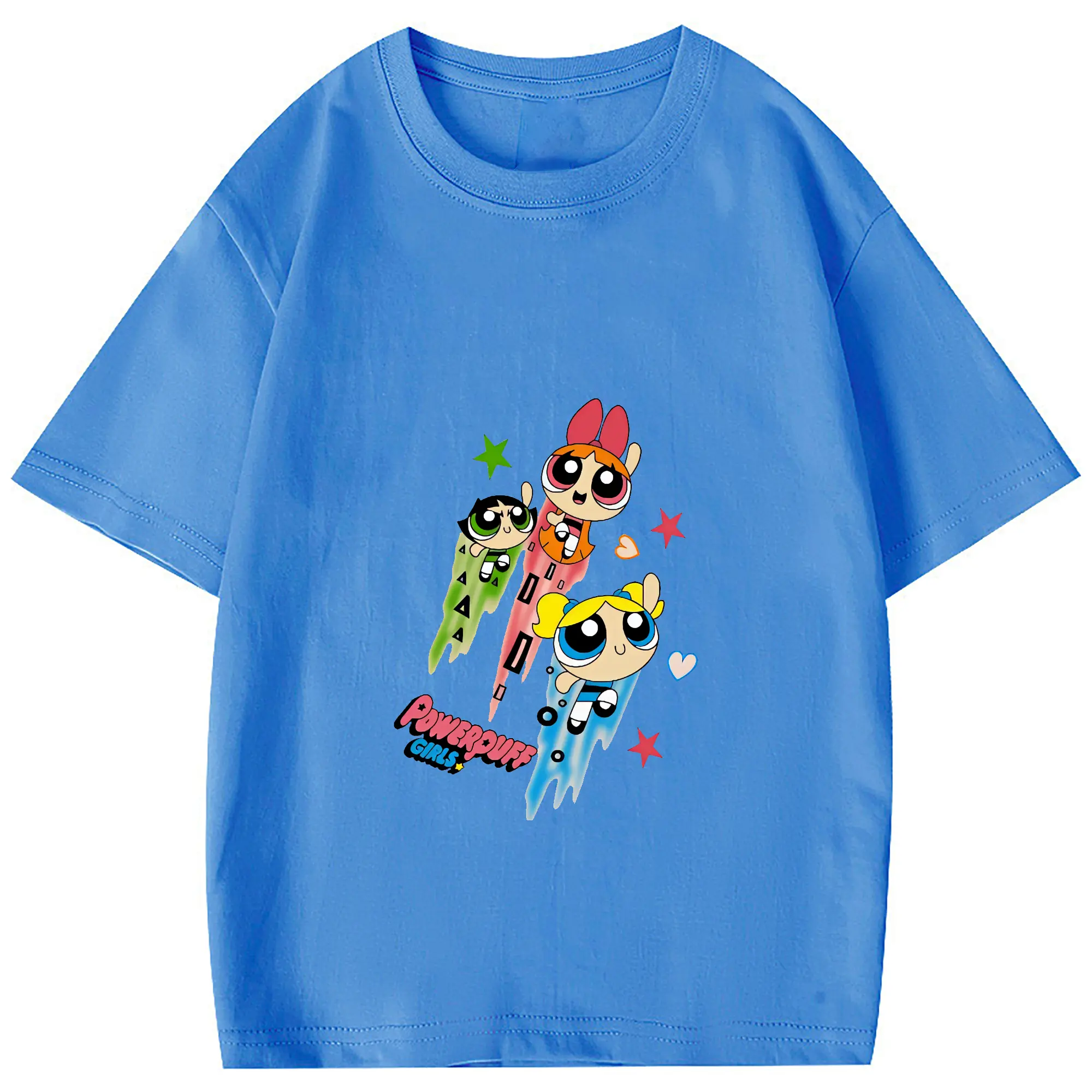 パワパフガールズ グッズ ブロッサム - 綿100% 半袖Tシャツ ・ フロントプリント ・ 快適 通気性 ・ 日常使い 散歩 スポーツ用