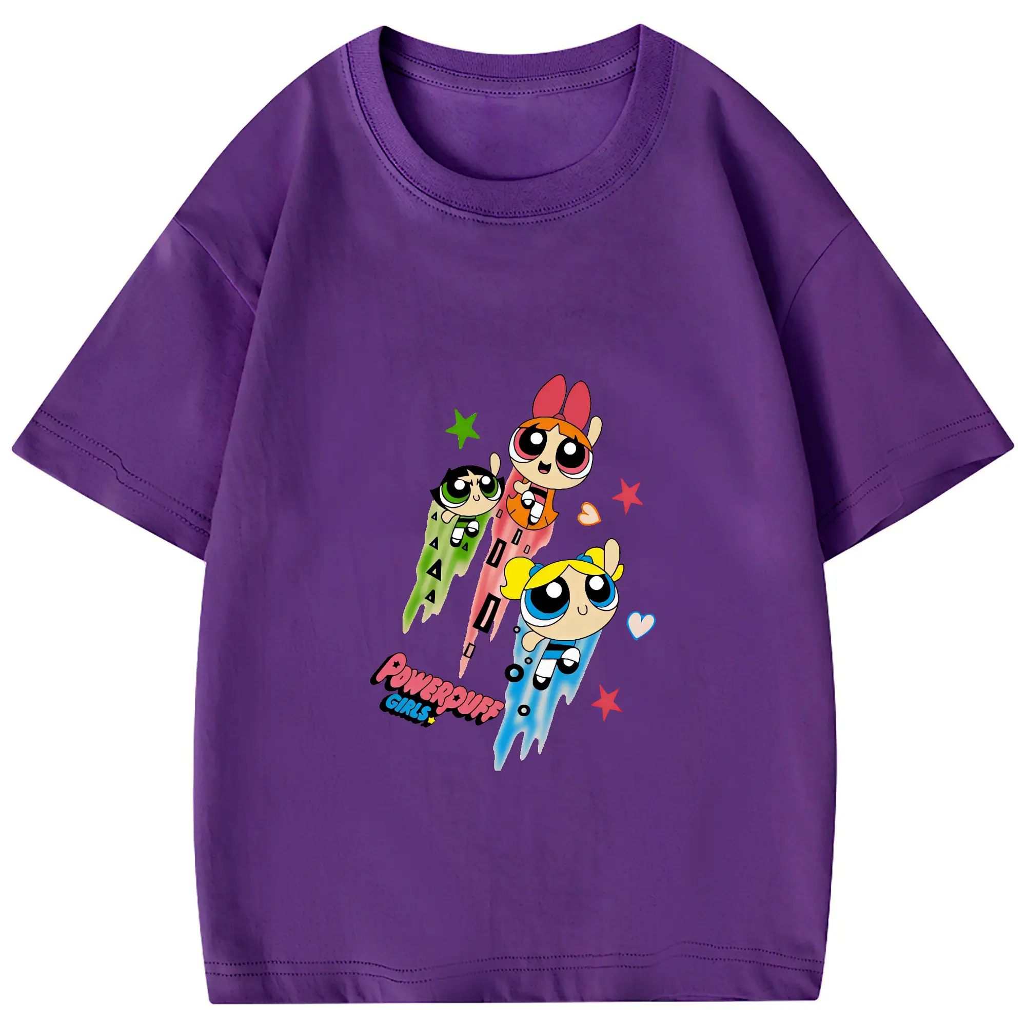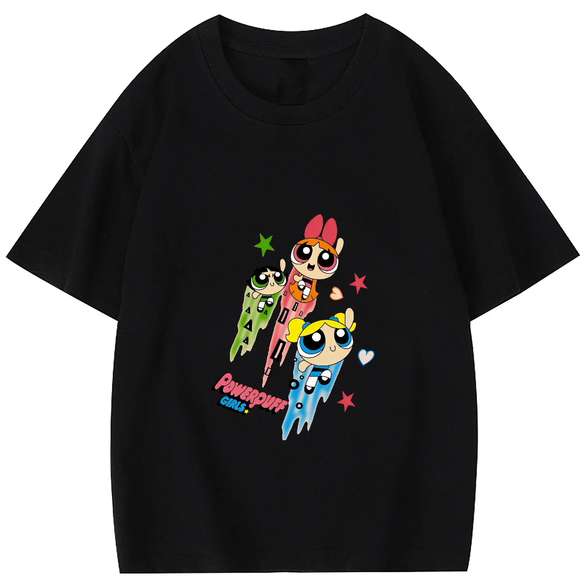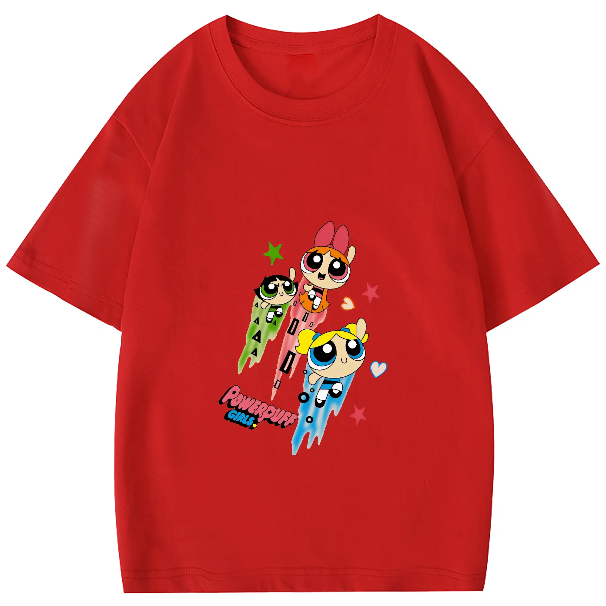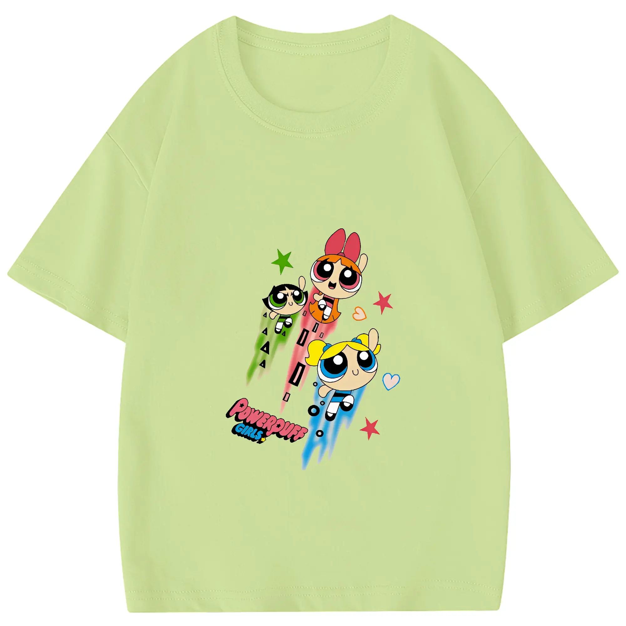 パワパフガールズ グッズ ブロッサム - 綿100% 半袖Tシャツ ・ フロントプリント ・ 快適 通気性 ・ 日常使い 散歩 スポーツ用