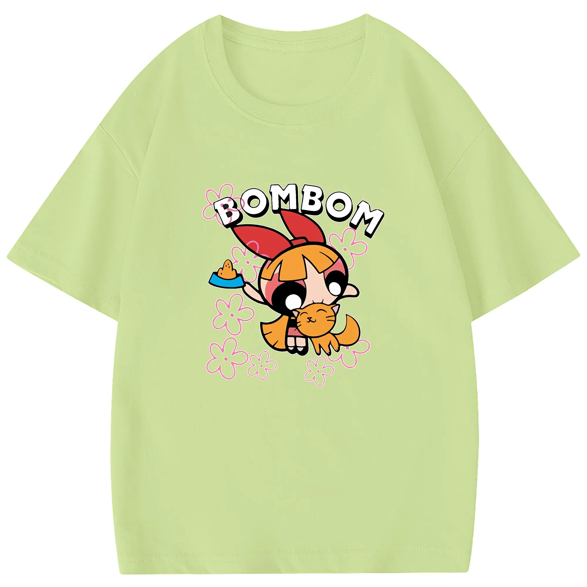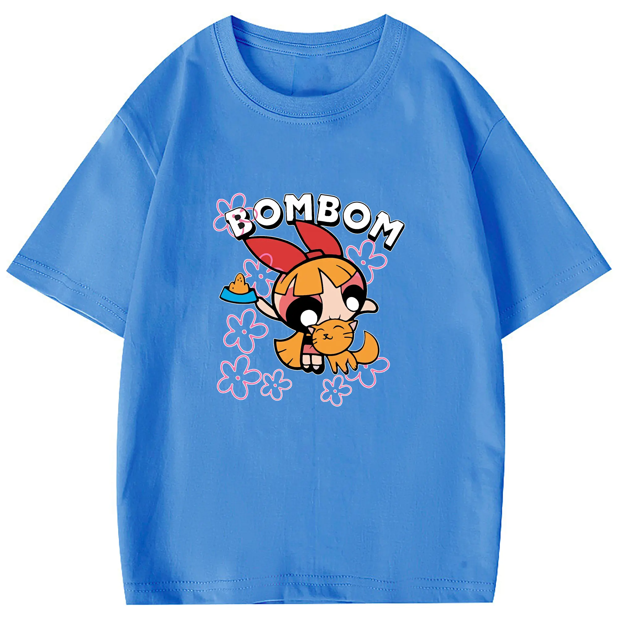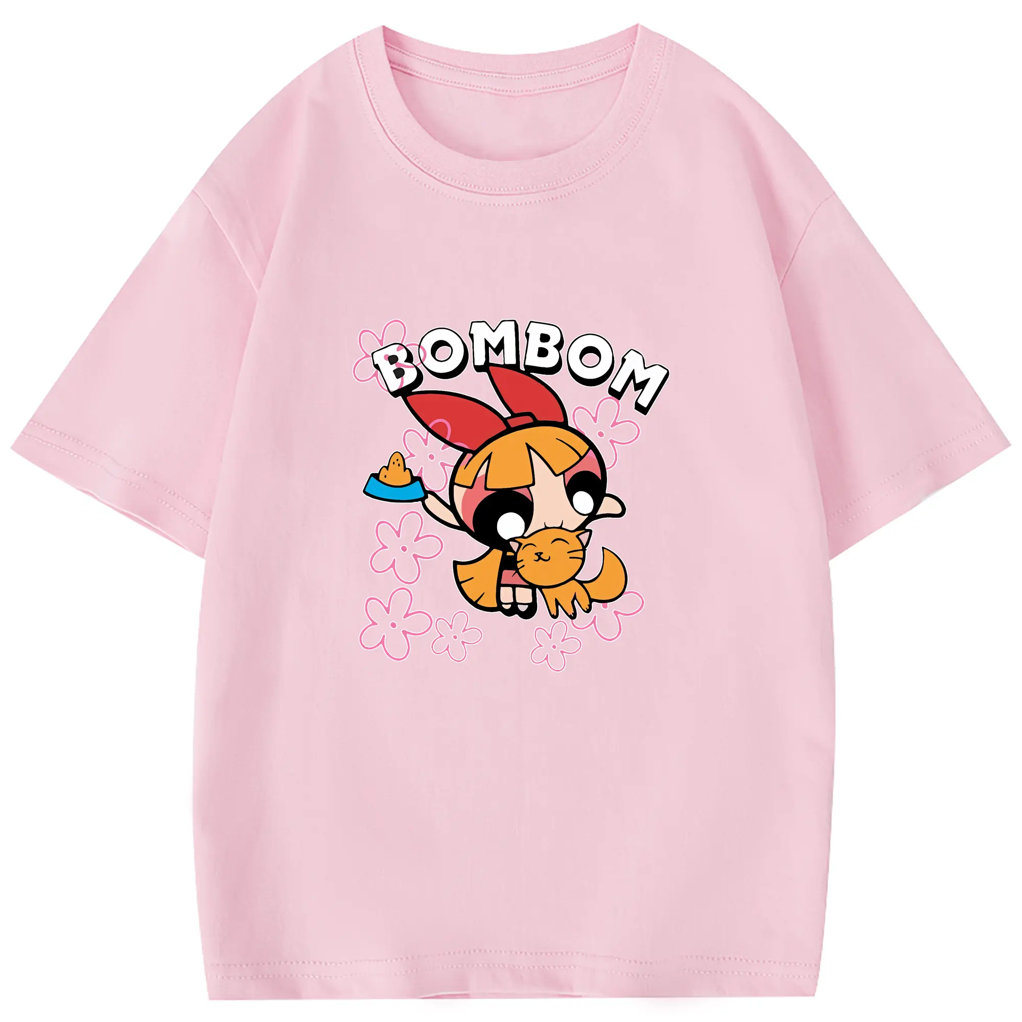 パワパフガールズ グッズ ブロッサム - 綿100% 半袖Tシャツ ・ フロントプリント ・ 快適 通気性 ・ 日常使い 散歩 スポーツ用