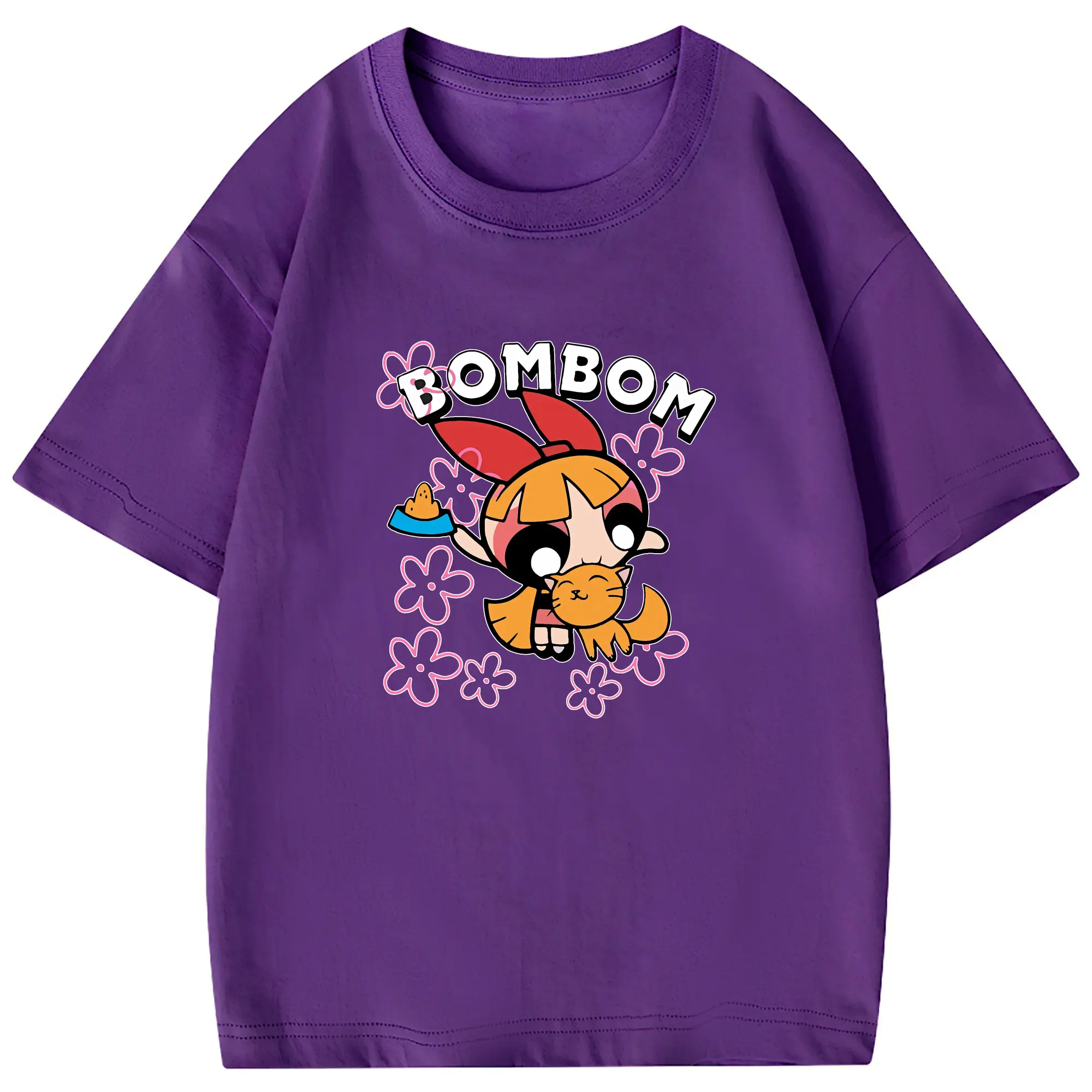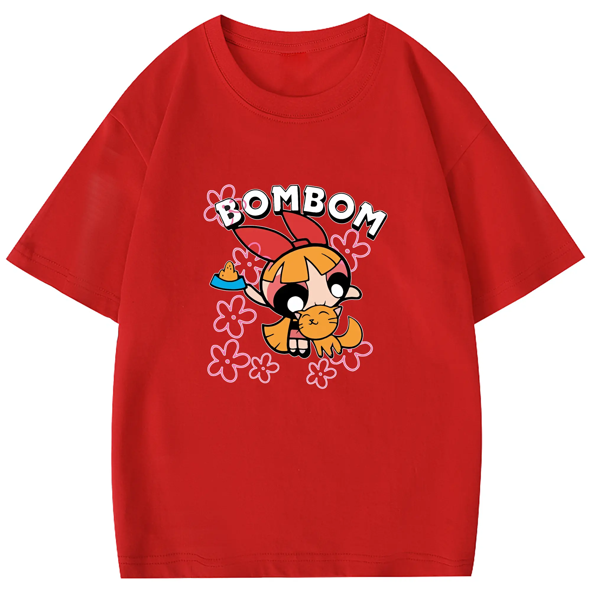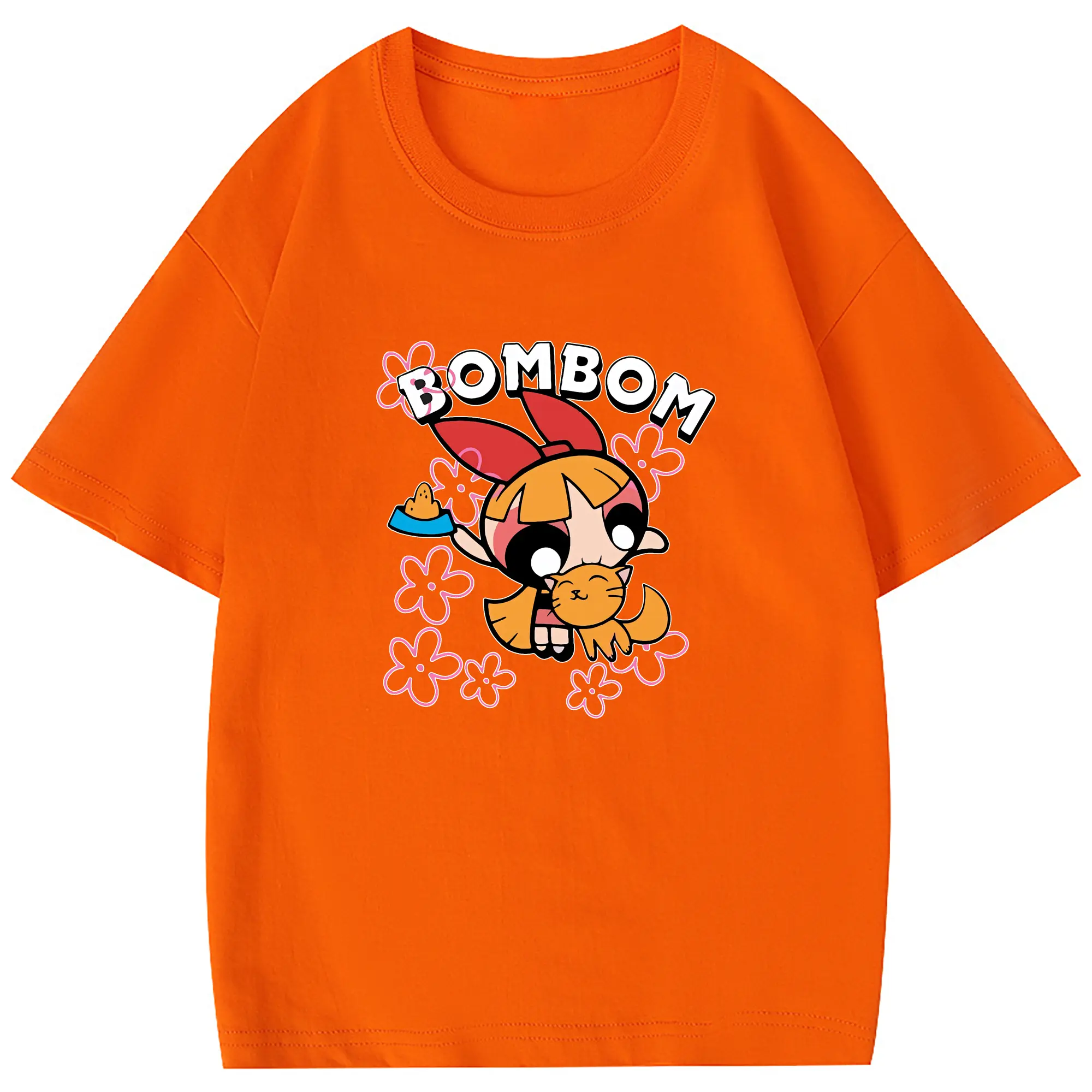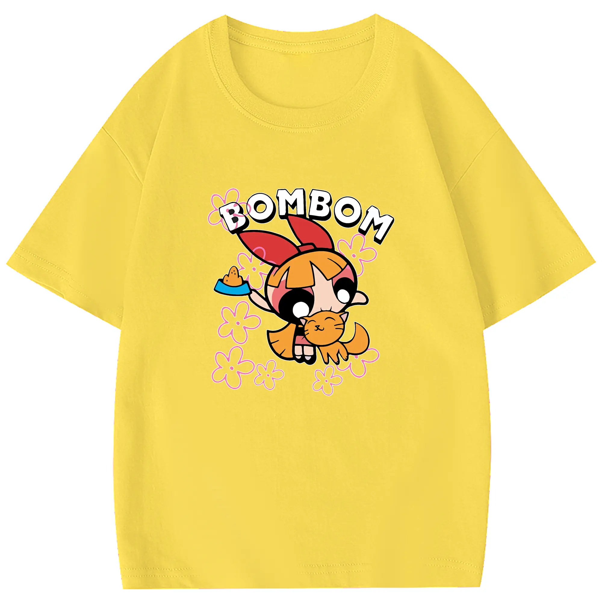パワパフガールズ グッズ ブロッサム - 綿100% 半袖Tシャツ ・ フロントプリント ・ 快適 通気性 ・ 日常使い 散歩 スポーツ用