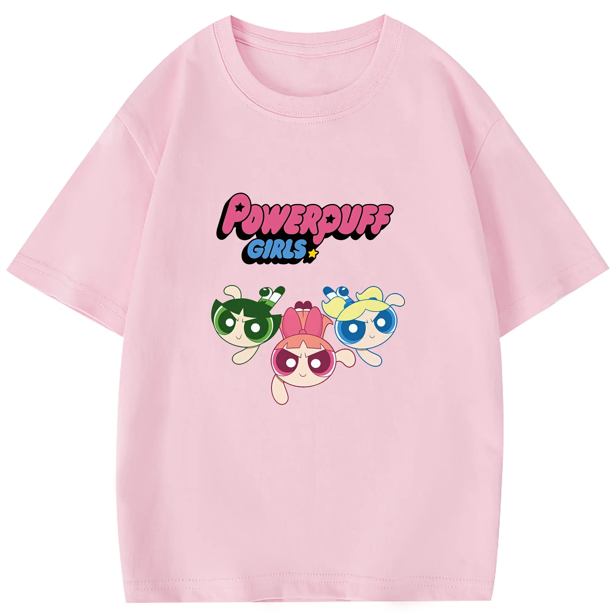 パワパフガールズ グッズ ブロッサム - 綿100% 半袖Tシャツ ・ バックプリント ・ 快適 通気性 ・ 日常使い 散歩 スポーツ用
