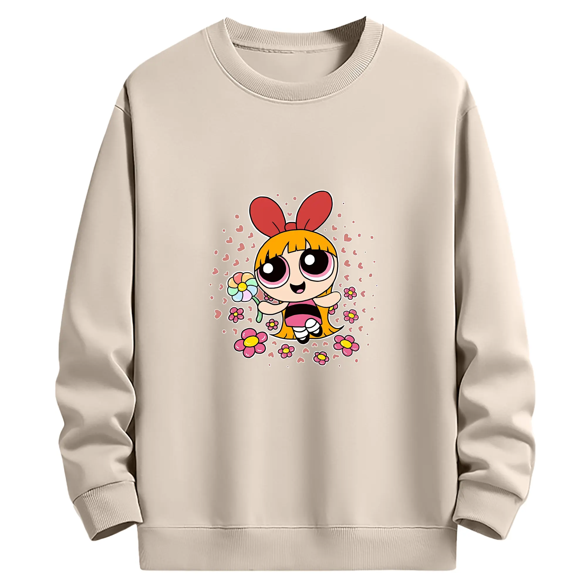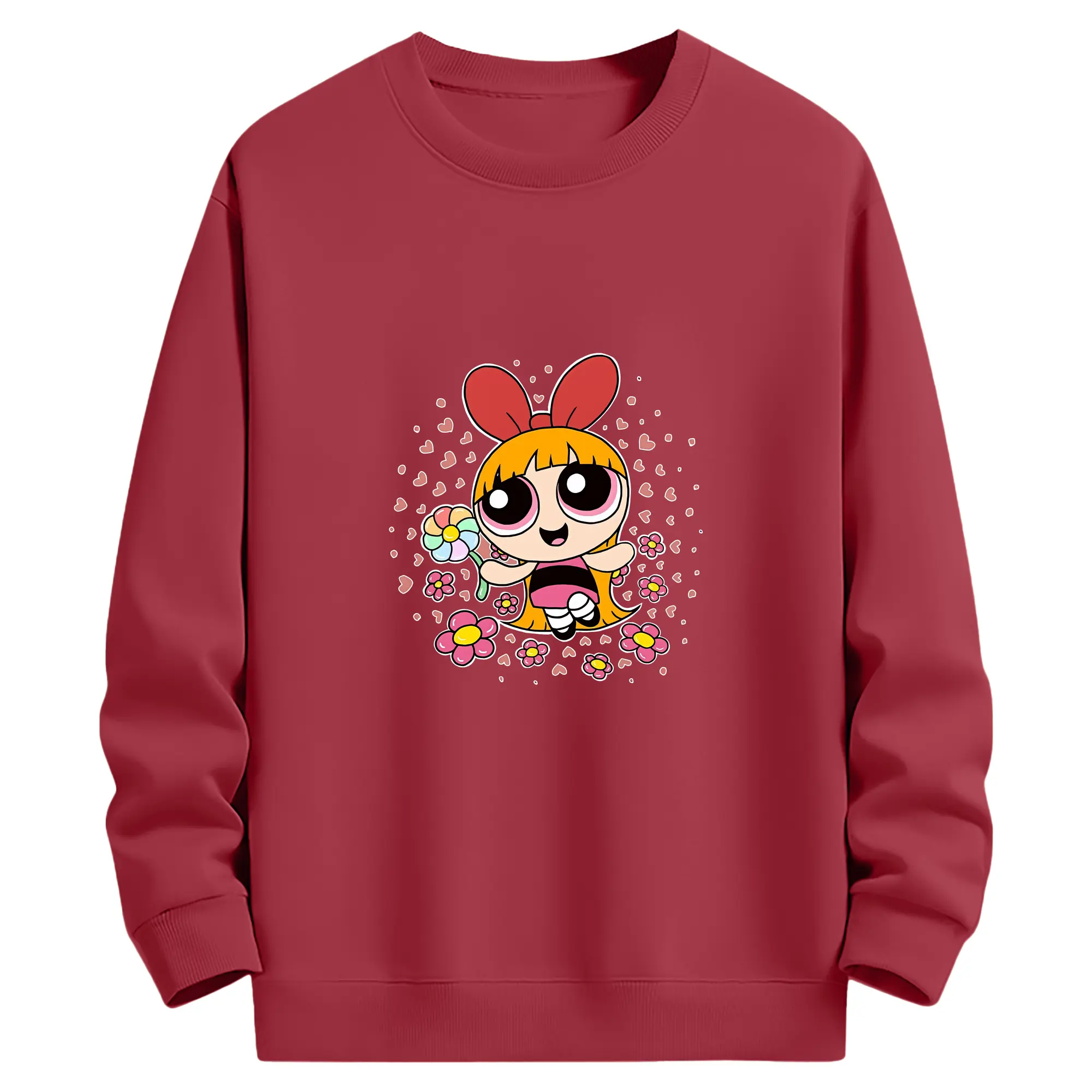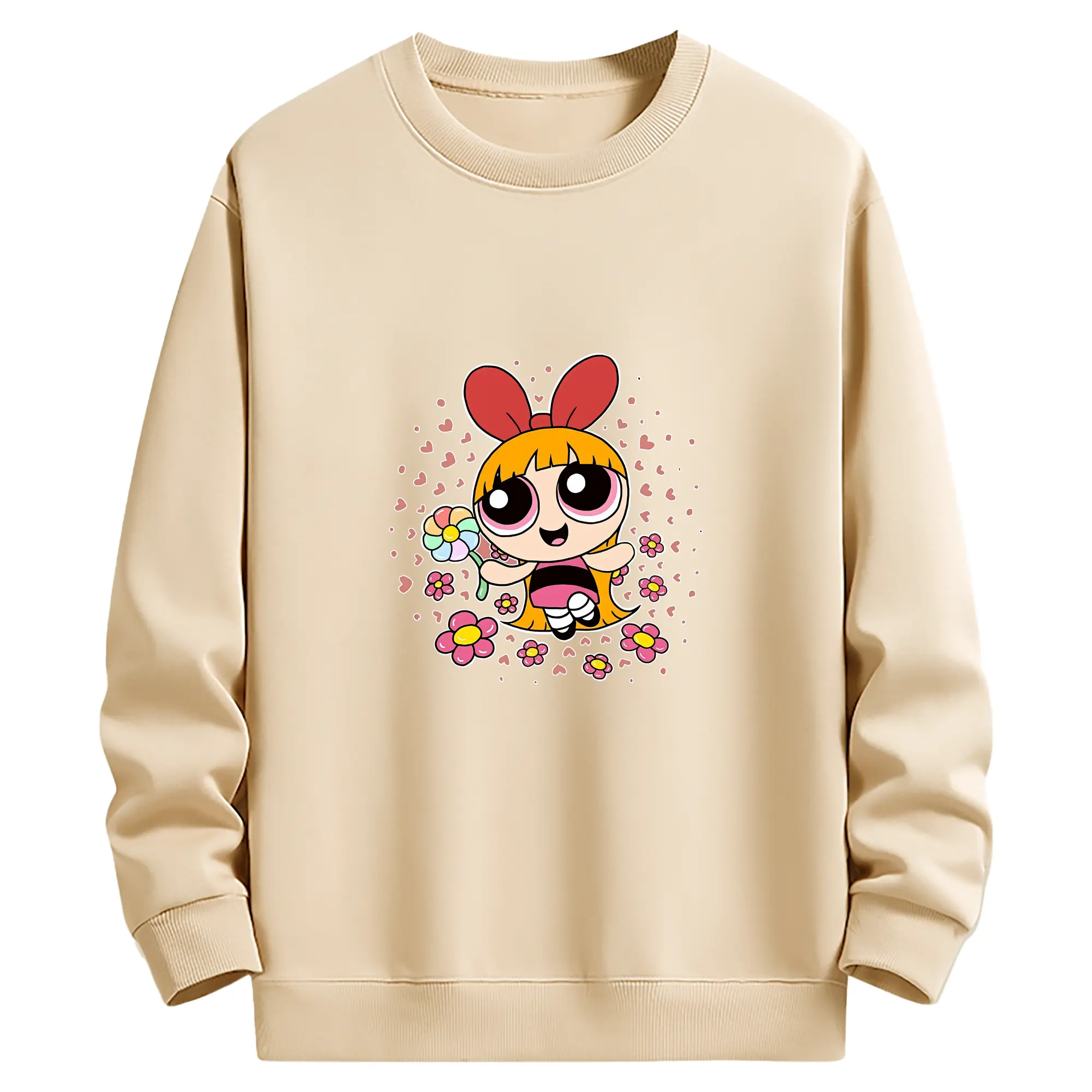 パワパフガールズ グッズ ブロッサム - 薄手 クルーネック スウェット 裏毛260g · ポリエステル 春秋向け カジュアル 男女兼用 · トレーナー デイリー スポーツ 散歩に最適