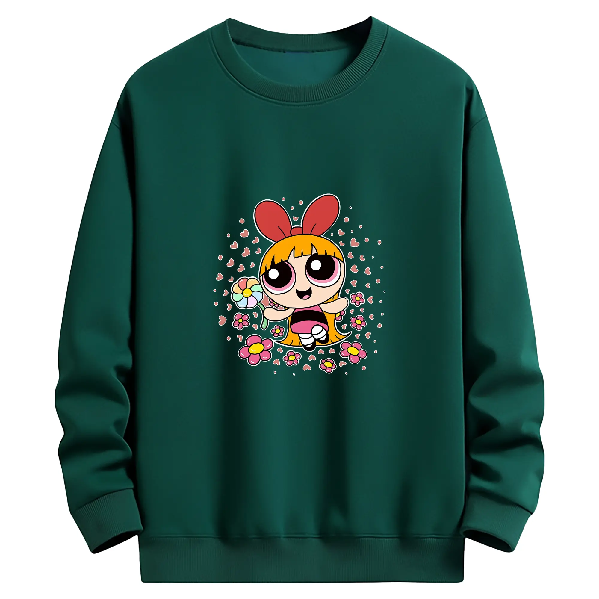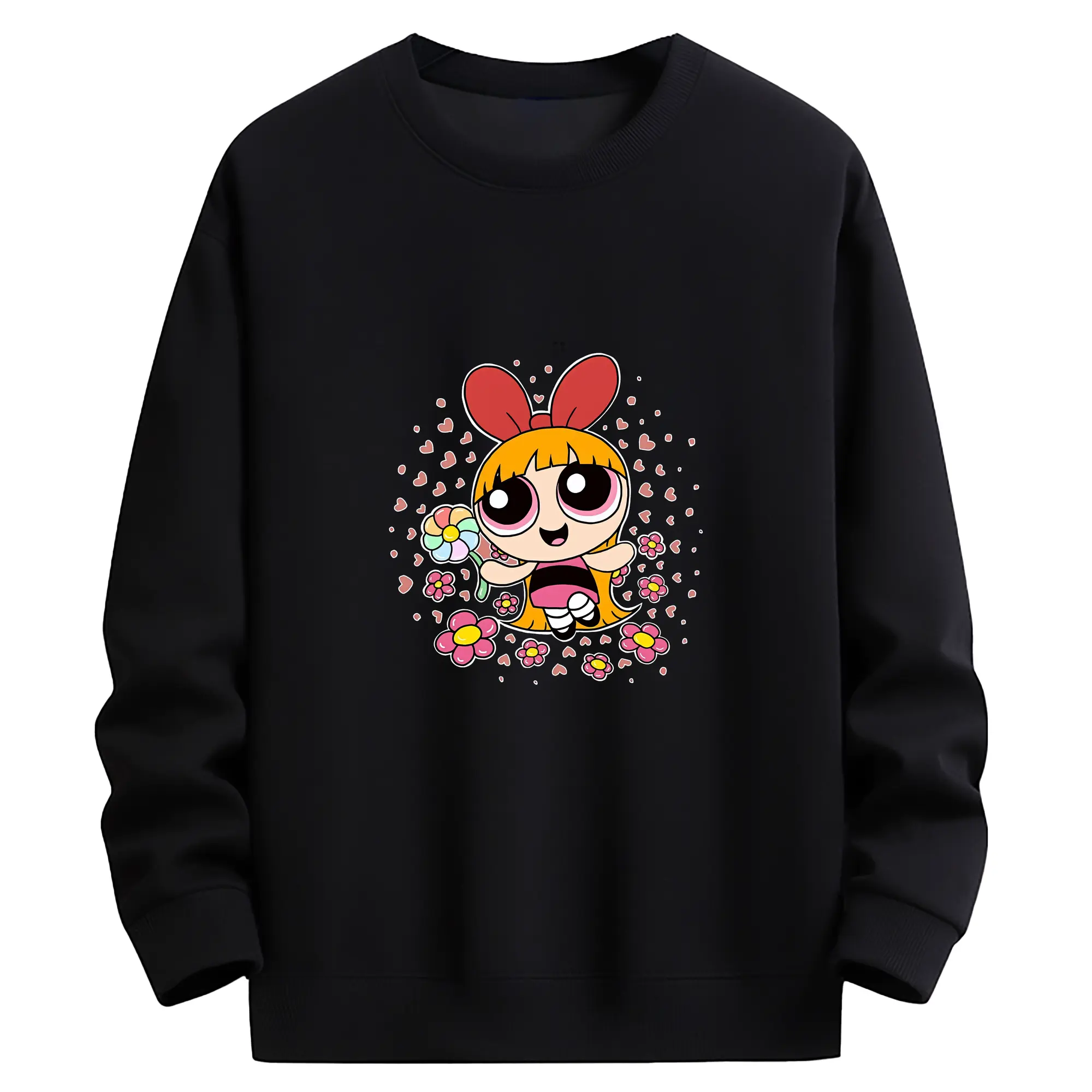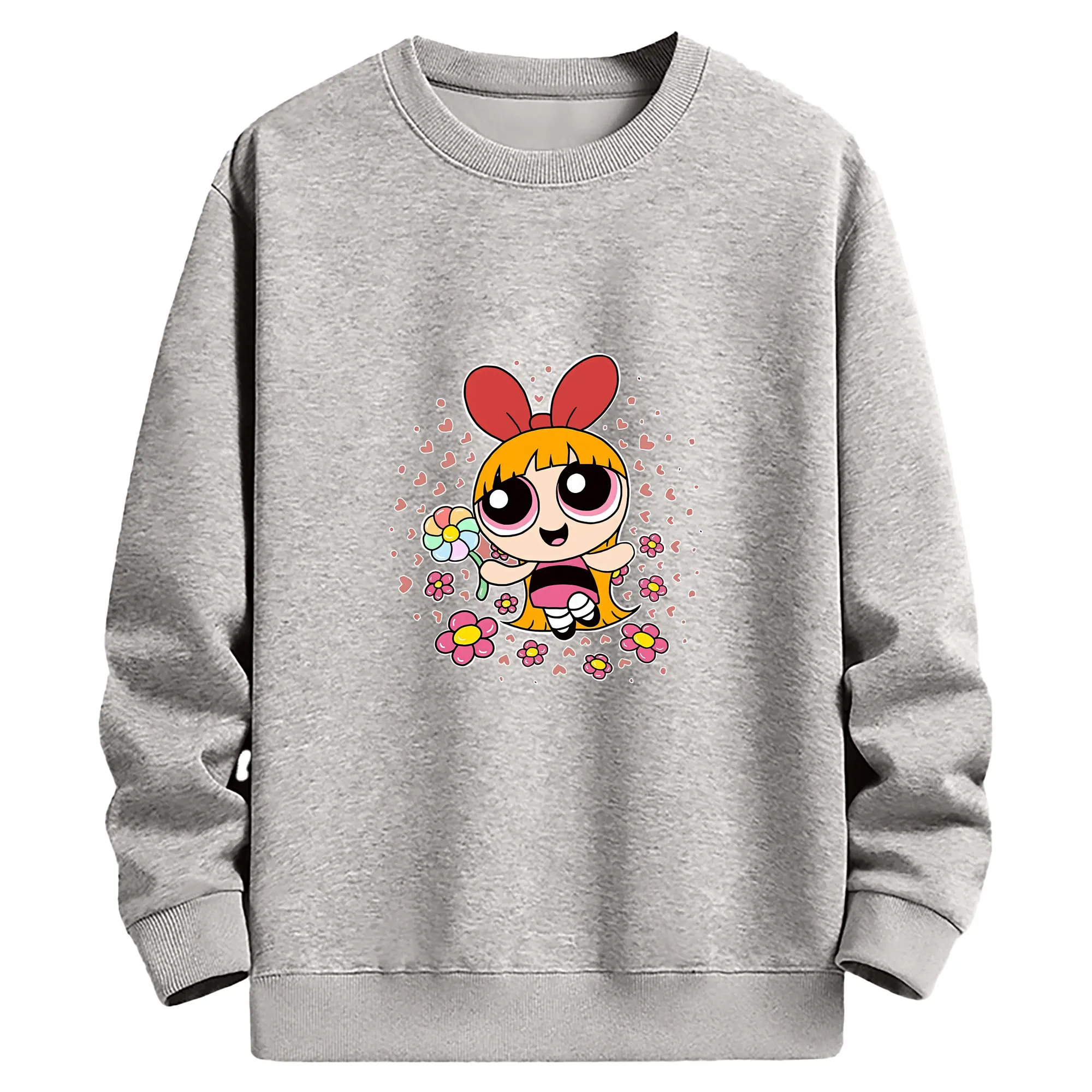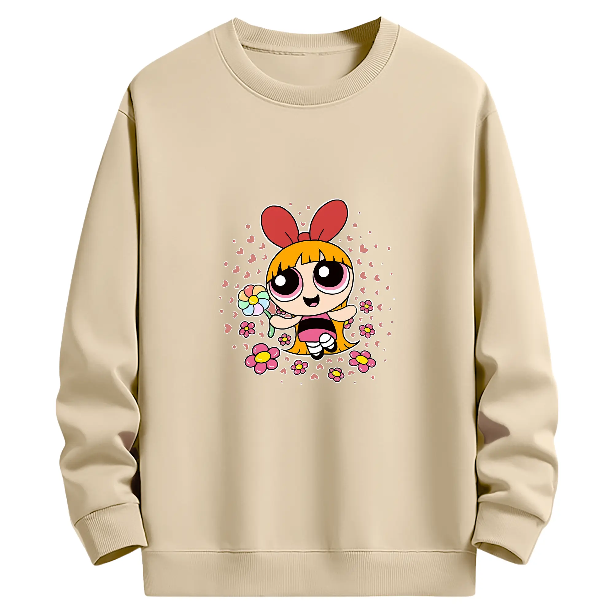 パワパフガールズ グッズ ブロッサム - 薄手 クルーネック スウェット 裏毛260g · ポリエステル 春秋向け カジュアル 男女兼用 · トレーナー デイリー スポーツ 散歩に最適