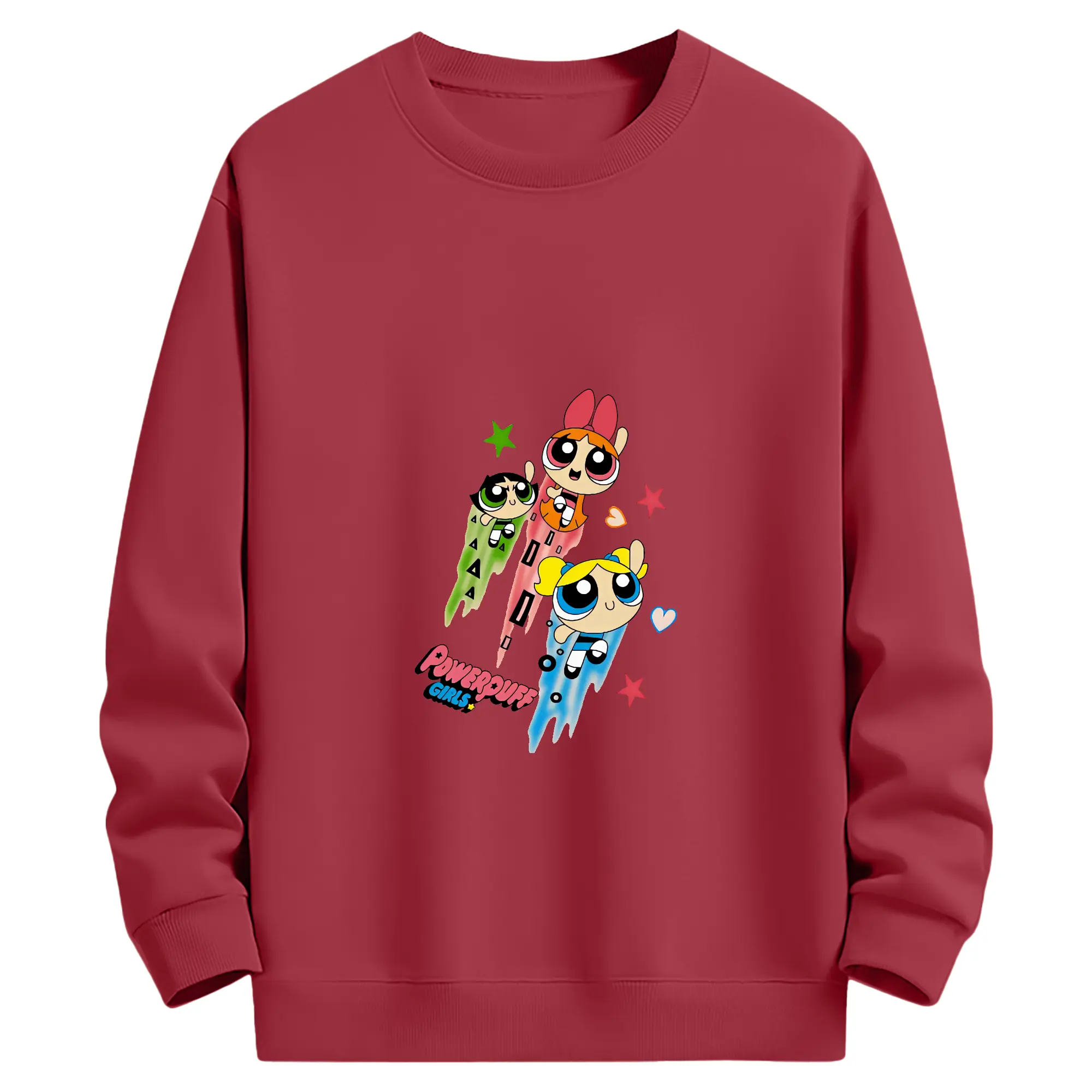 パワパフガールズ グッズ ブロッサム - 薄手 クルーネック スウェット 裏毛260g · ポリエステル 春秋向け カジュアル 男女兼用 · トレーナー デイリー スポーツ 散歩に最適