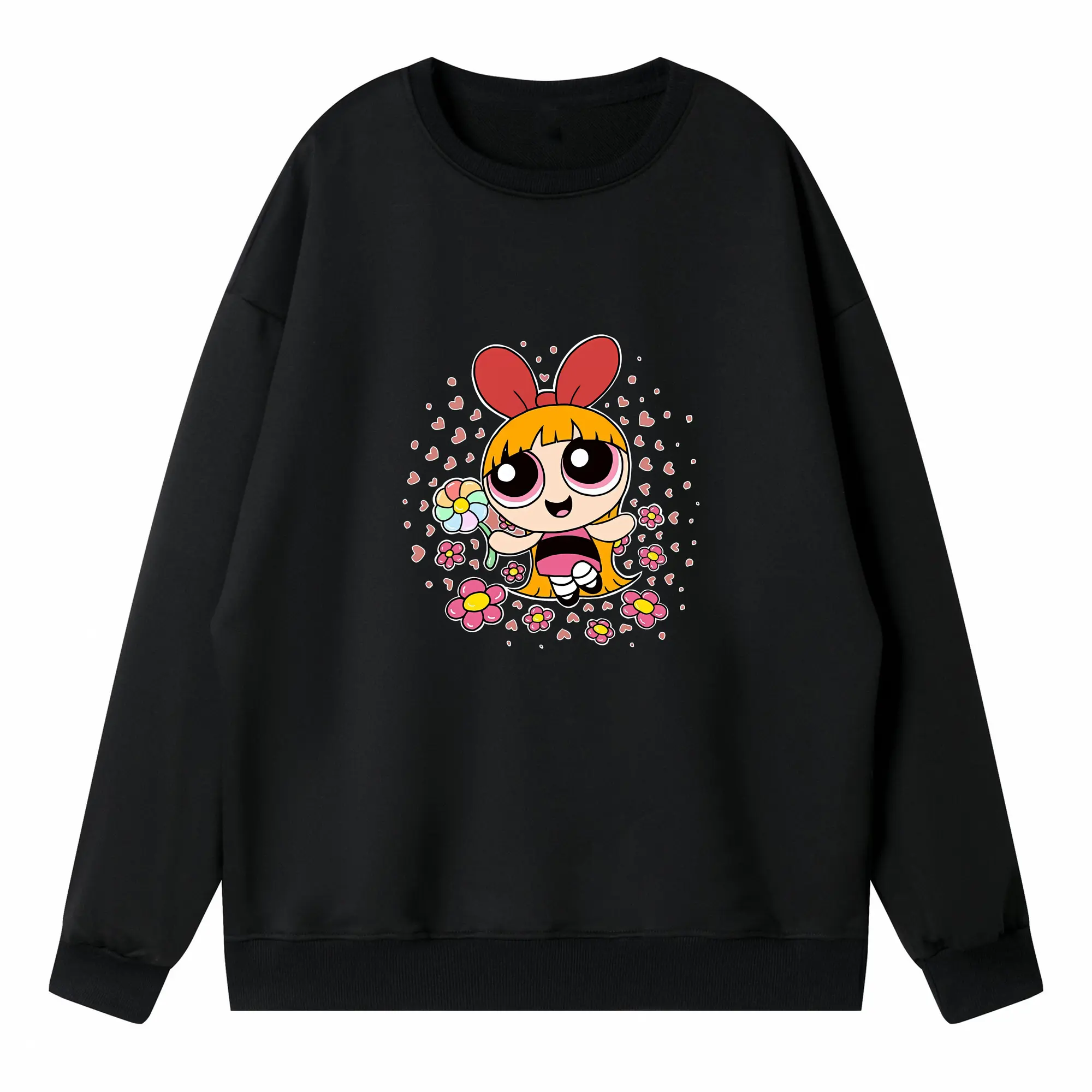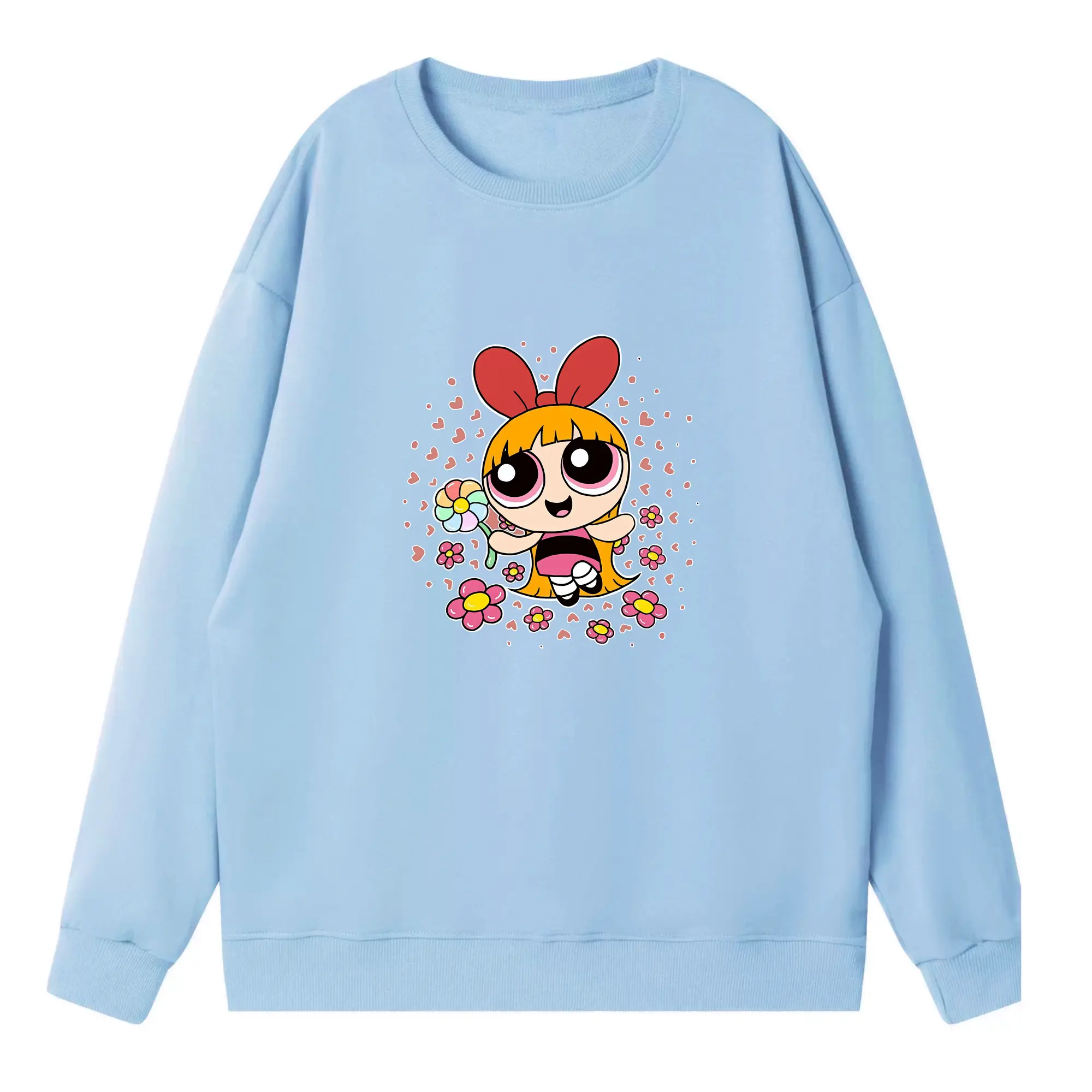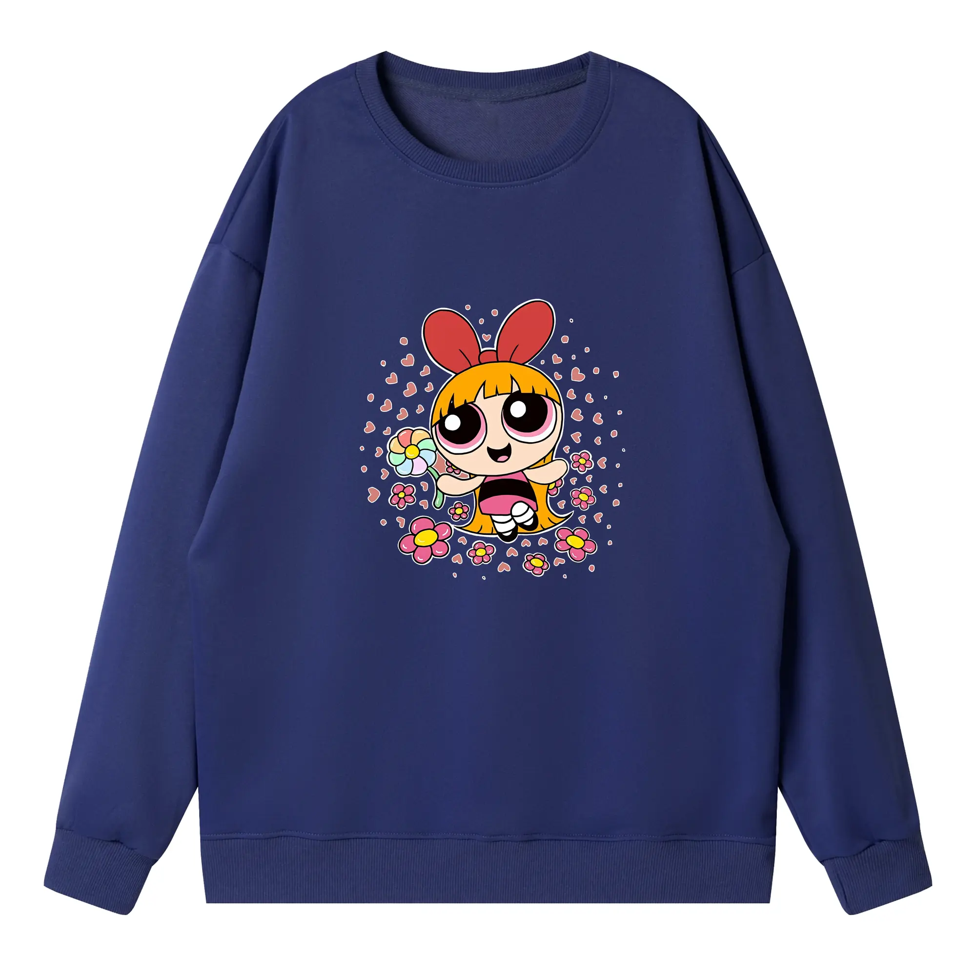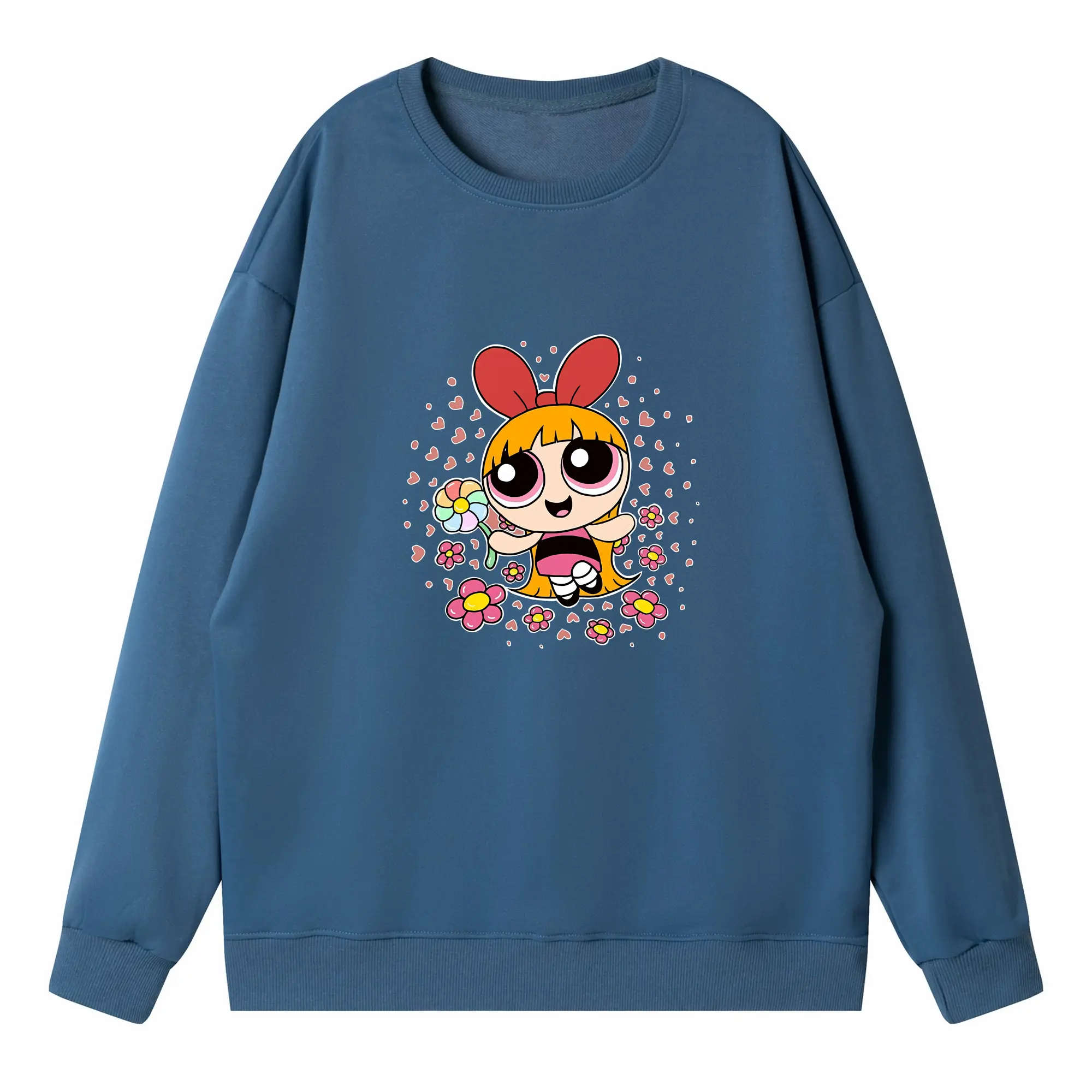 パワパフガールズ グッズ ブロッサム - 高品質 クルーネック スウェット ・ コットン59% ポリエステル41% ・ ユニセックス 長袖 トレーナー ・ カジュアル デイリー スポーツ 散歩用