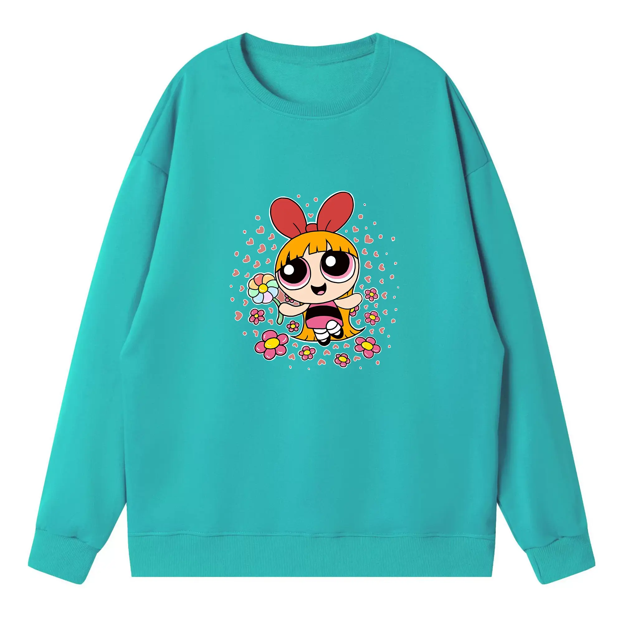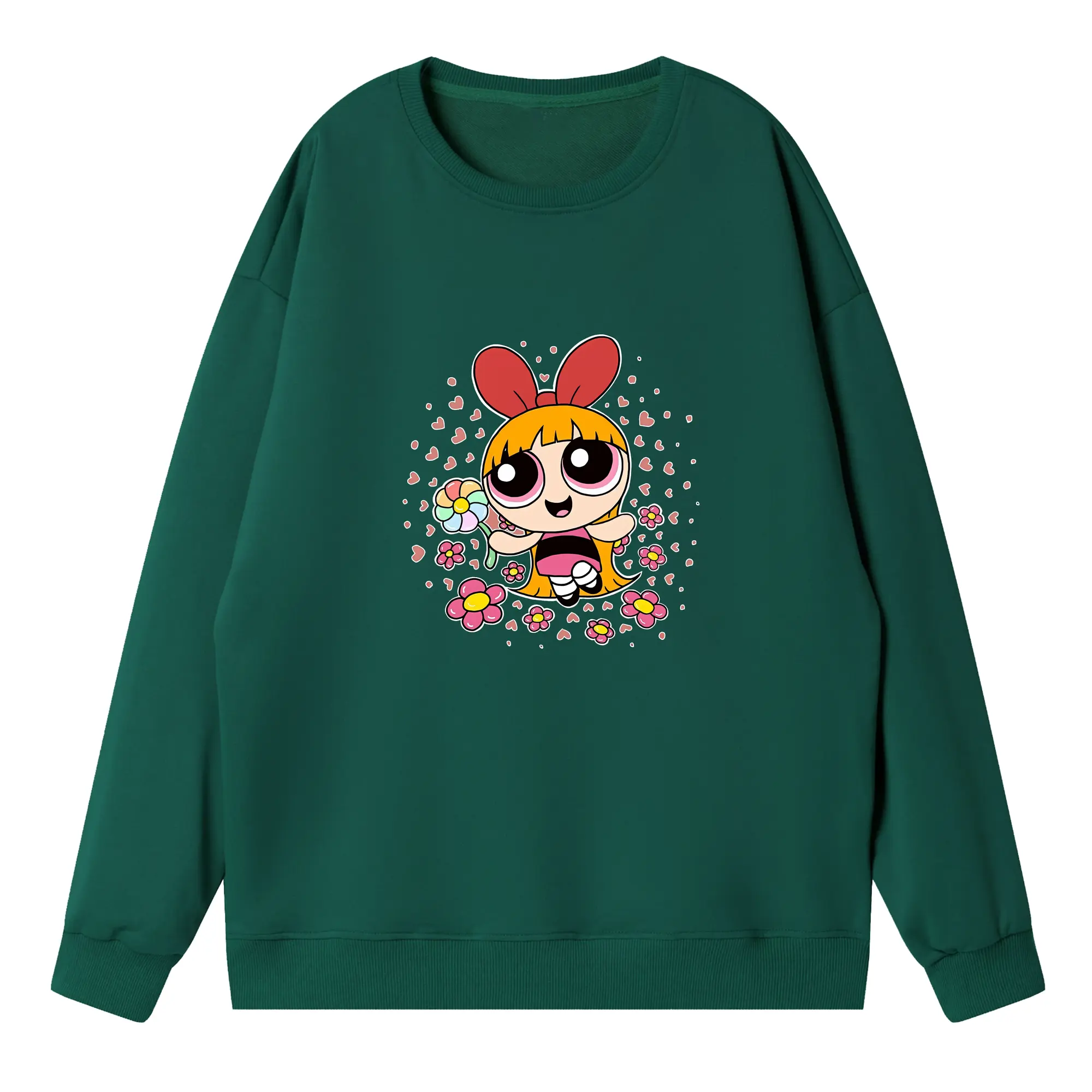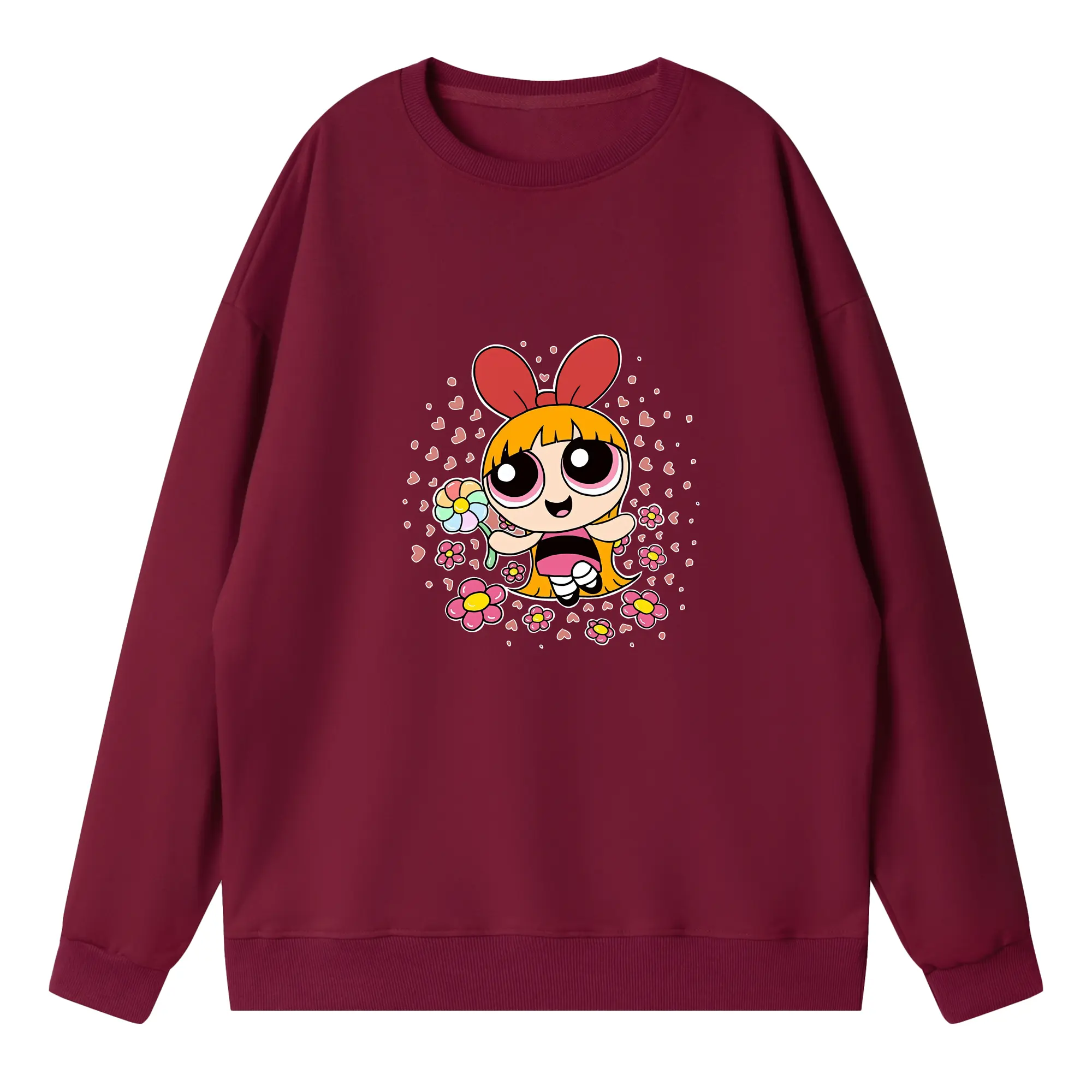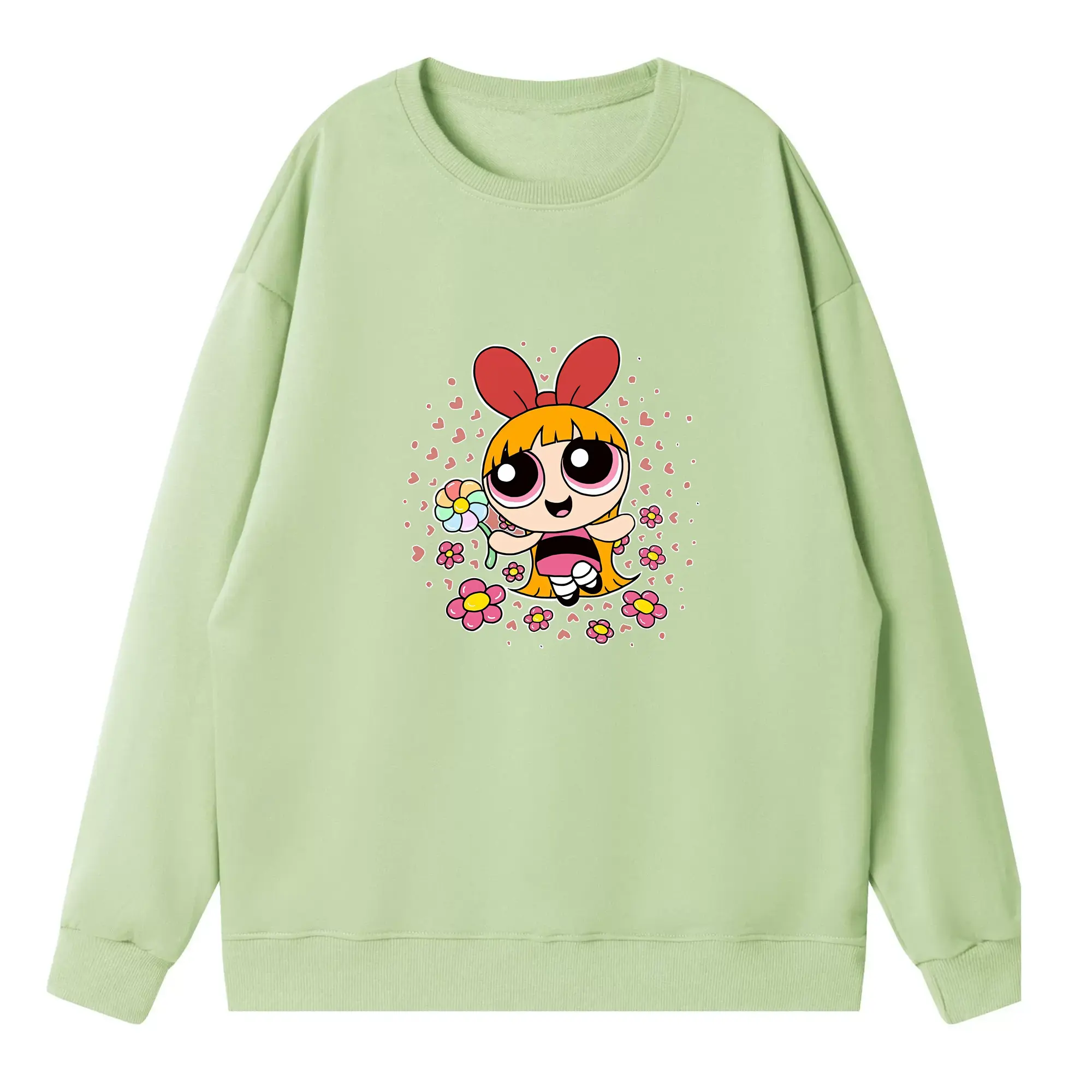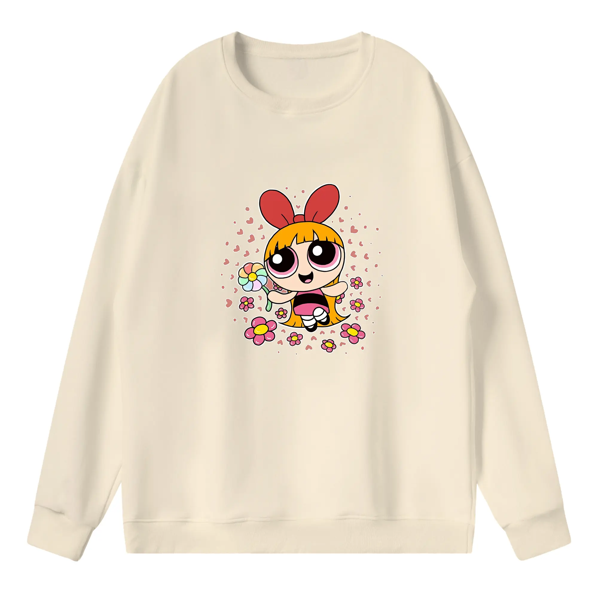 パワパフガールズ グッズ ブロッサム - 高品質 クルーネック スウェット ・ コットン59% ポリエステル41% ・ ユニセックス 長袖 トレーナー ・ カジュアル デイリー スポーツ 散歩用