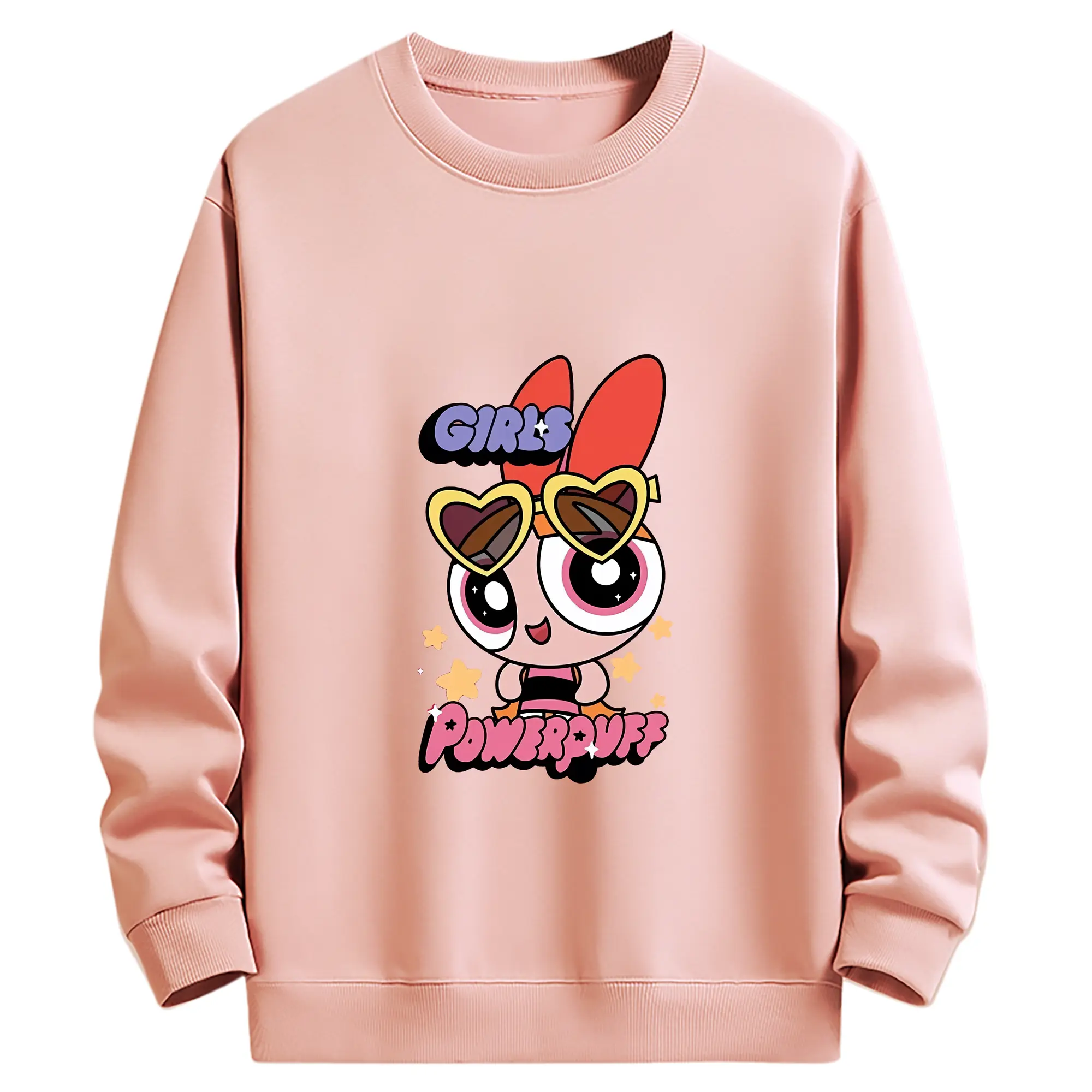 パワパフガールズ グッズ ブロッサム - 薄手 クルーネック スウェット 裏毛260g · ポリエステル 春秋向け カジュアル 男女兼用 · トレーナー デイリー スポーツ 散歩に最適