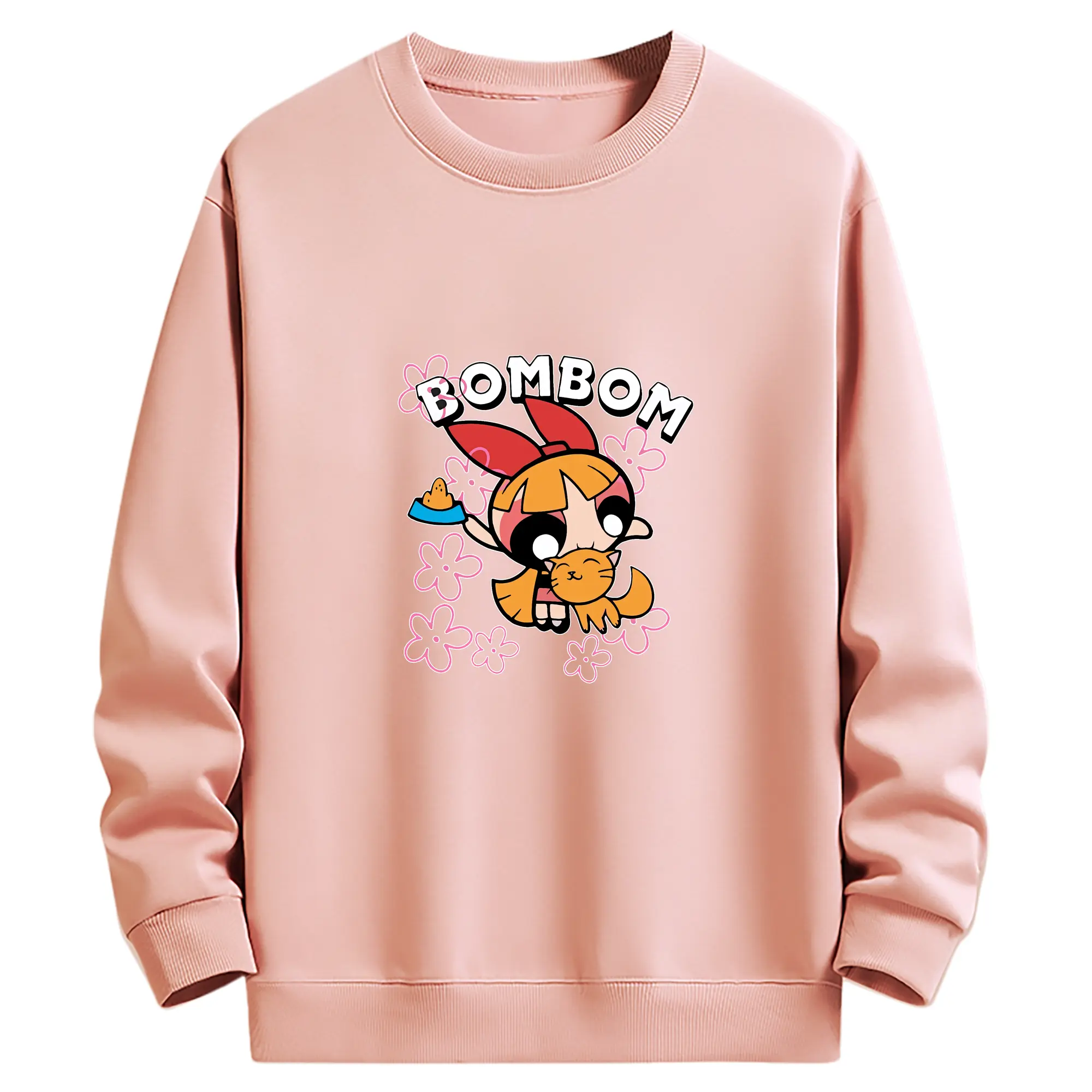 パワパフガールズ グッズ ブロッサム - 薄手 クルーネック スウェット 裏毛260g · ポリエステル 春秋向け カジュアル 男女兼用 · トレーナー デイリー スポーツ 散歩に最適