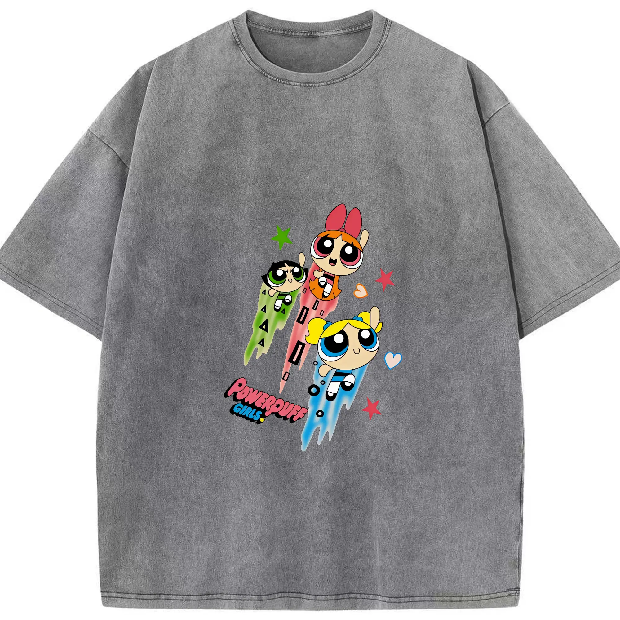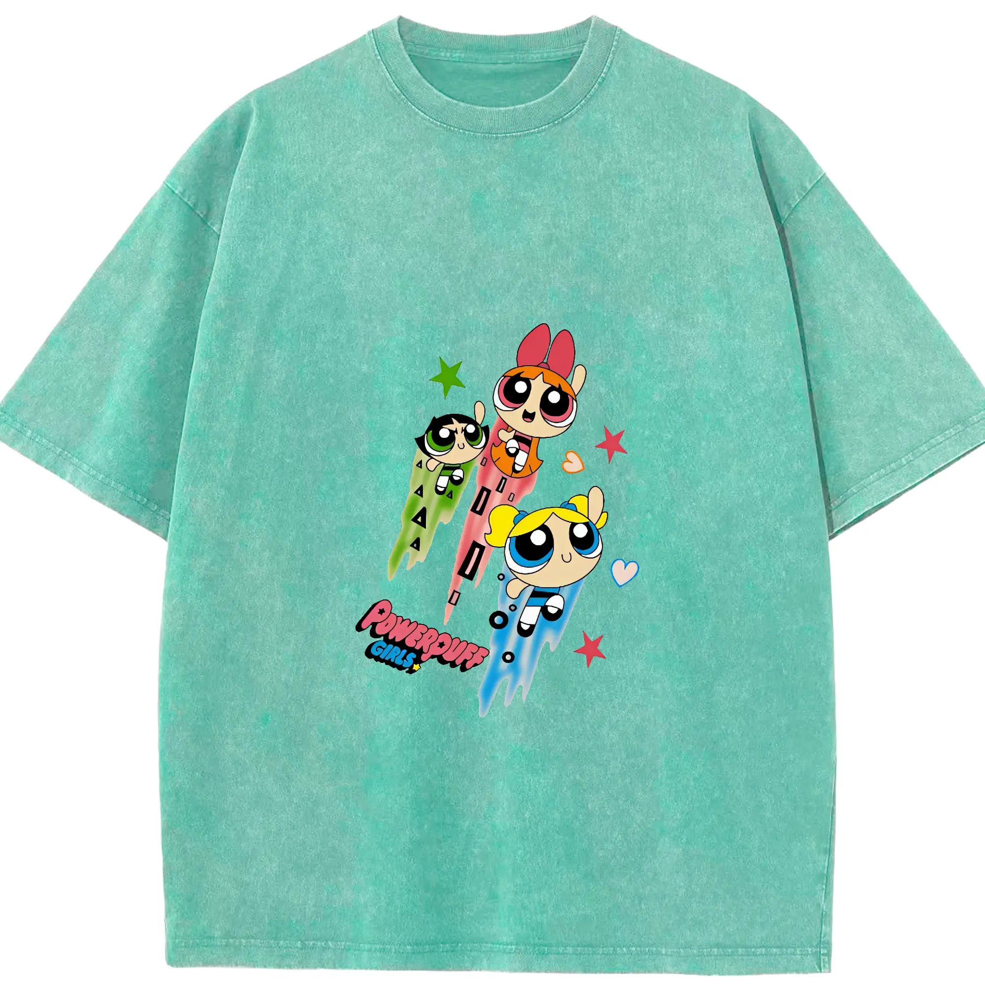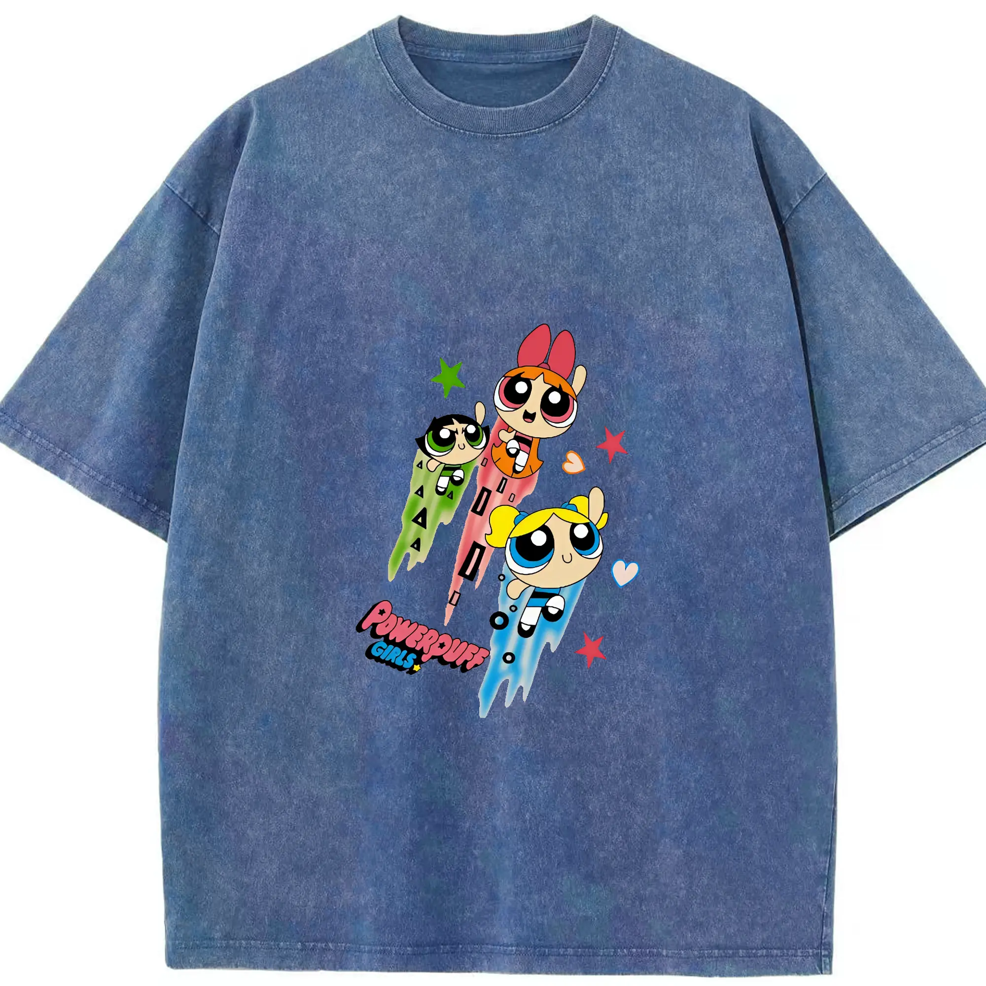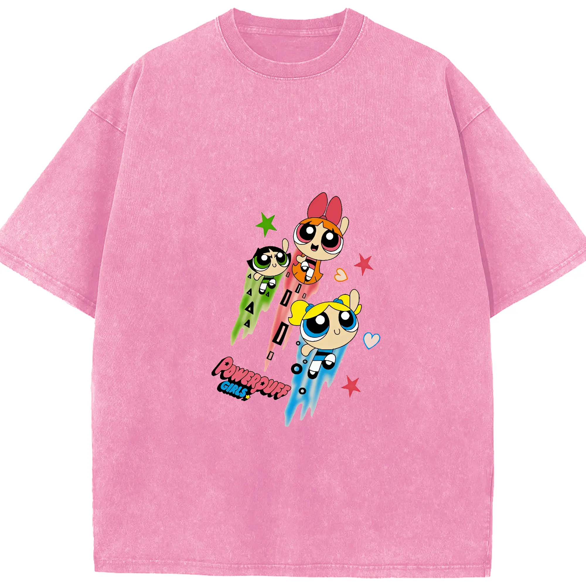 パワパフガールズ グッズ ブロッサム - 綿100% ヴィンテージ風 半袖Tシャツ ・ 背面プリント ・ 柔らか肌触り ・ 通気性 快適 ・ スポーツ カジュアル 外出用