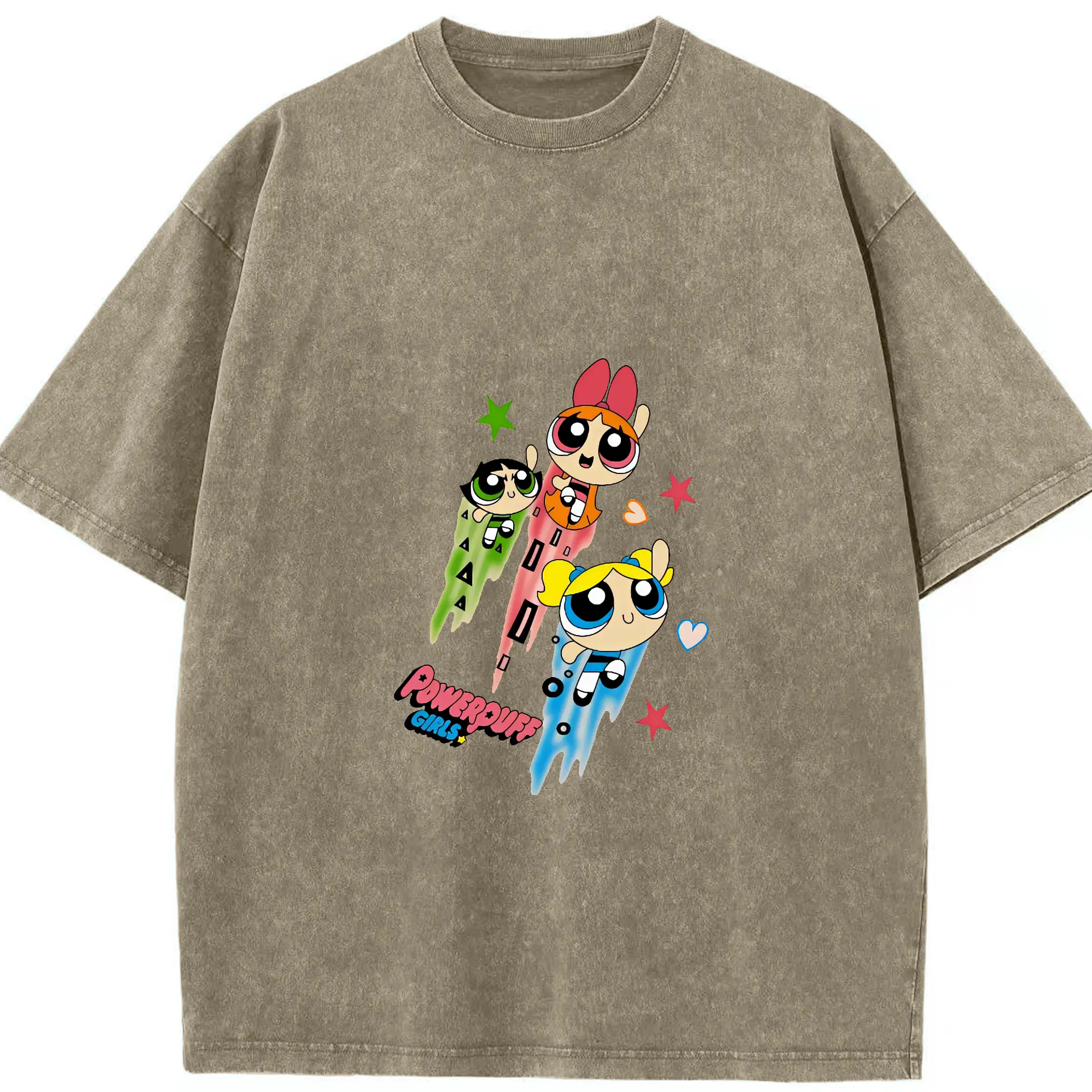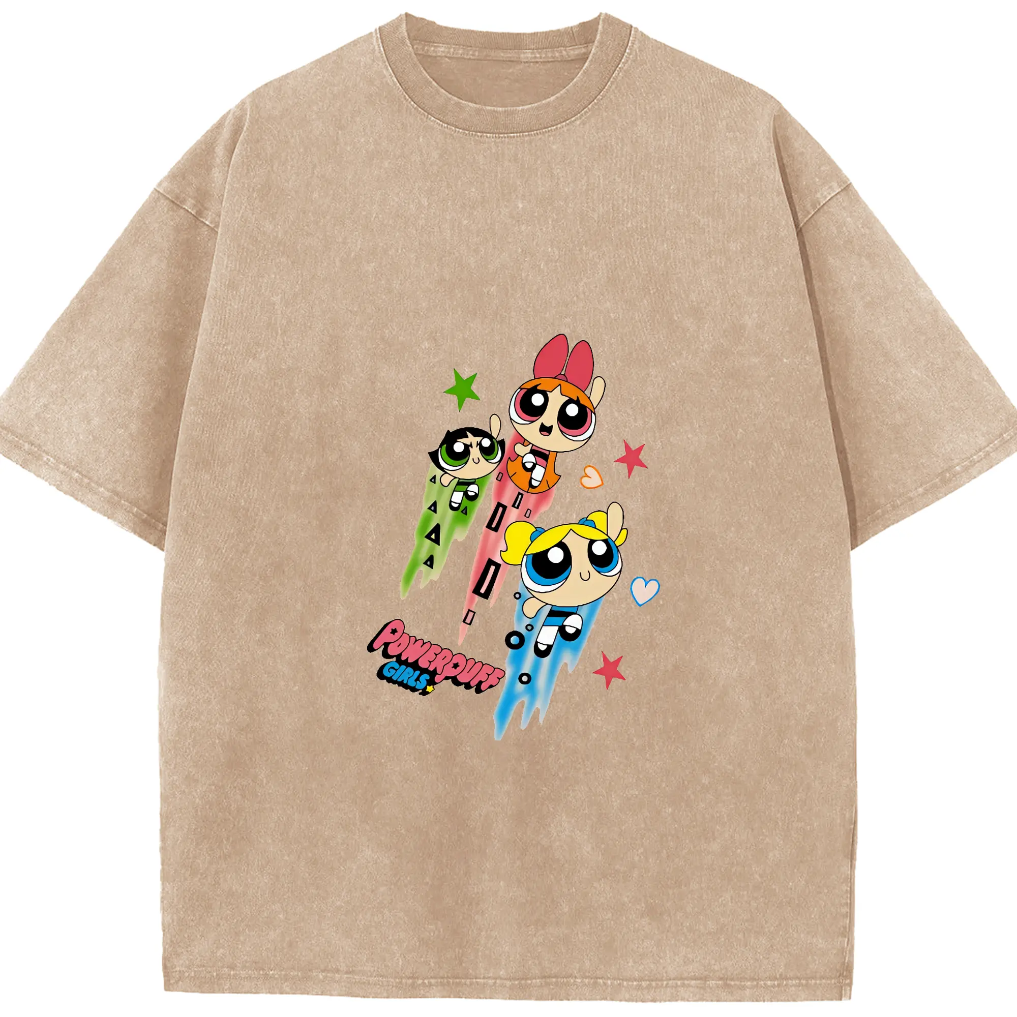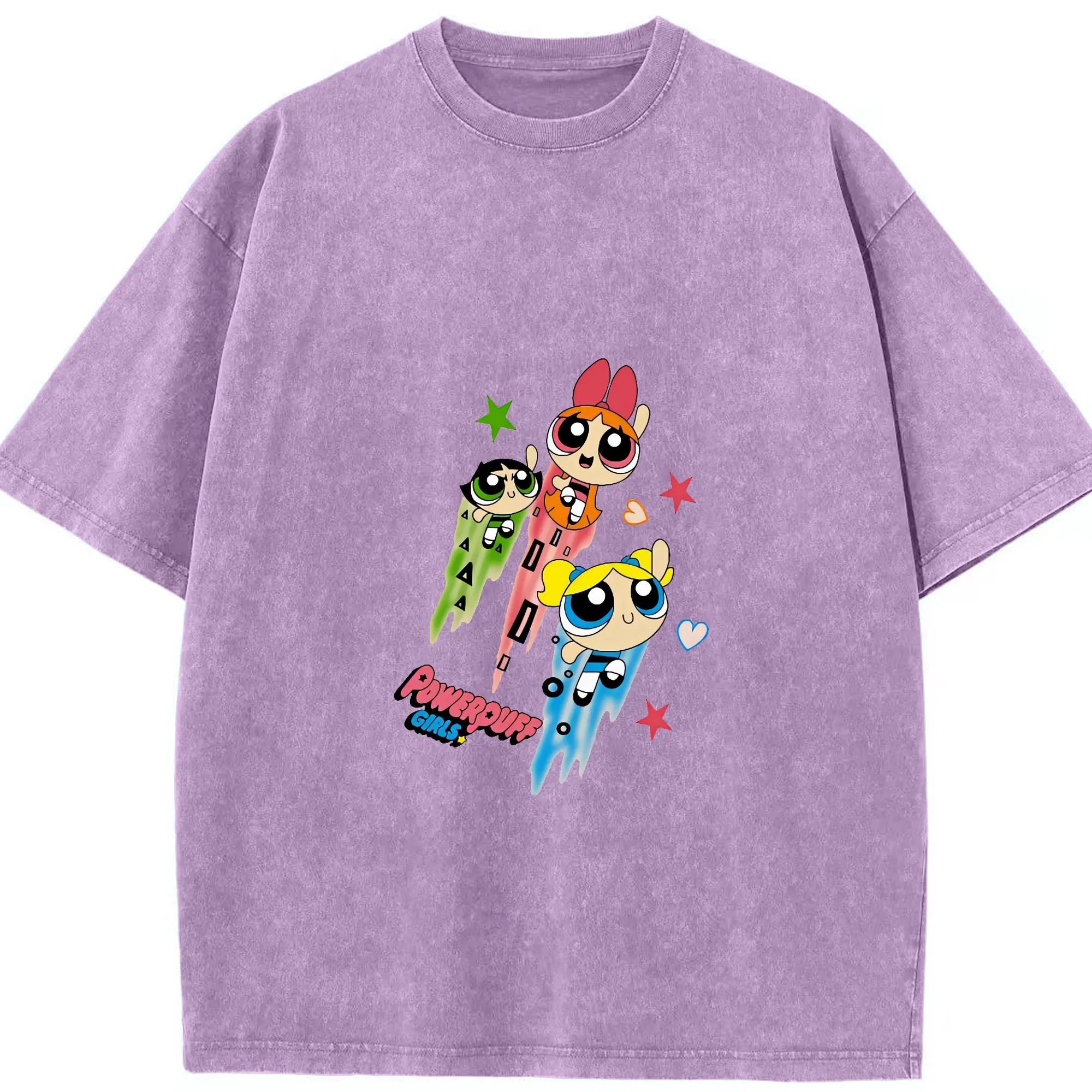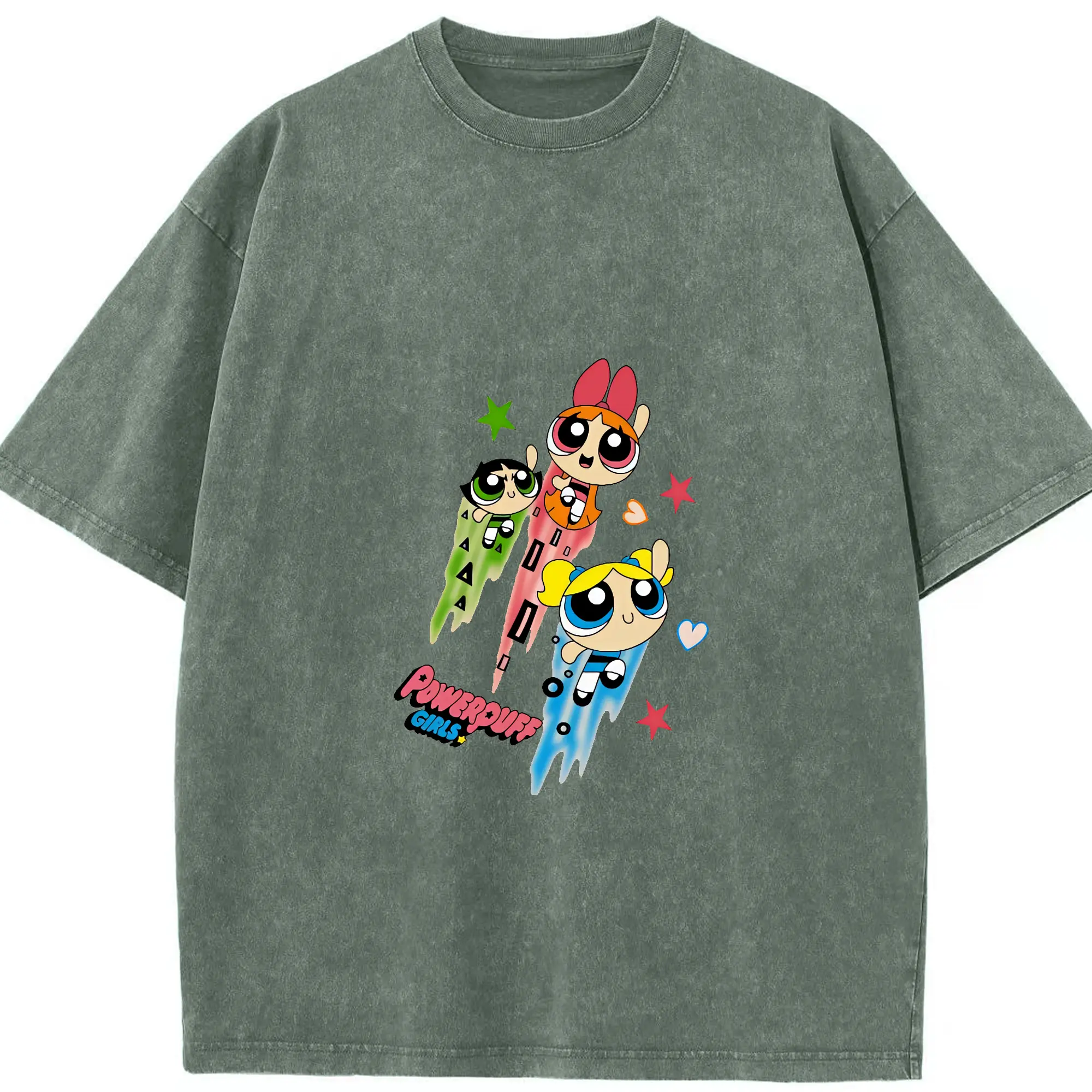 パワパフガールズ グッズ ブロッサム - 綿100% ヴィンテージ風 半袖Tシャツ ・ 背面プリント ・ 柔らか肌触り ・ 通気性 快適 ・ スポーツ カジュアル 外出用