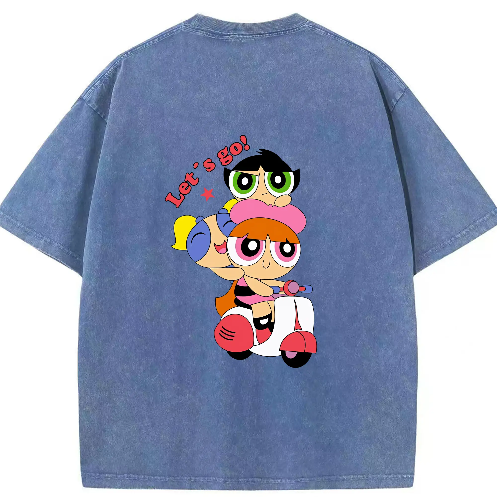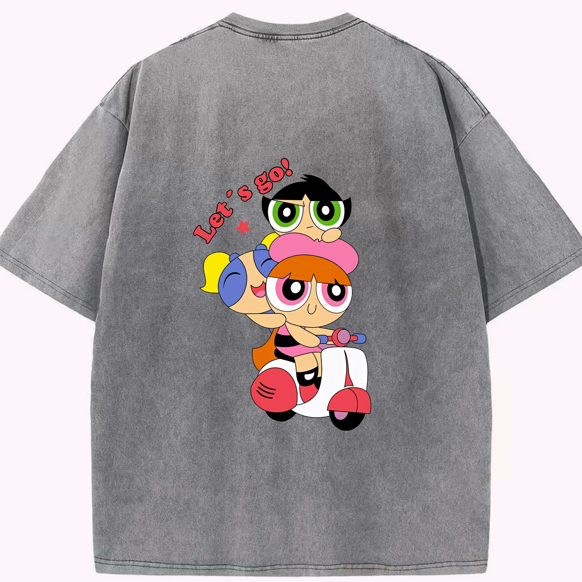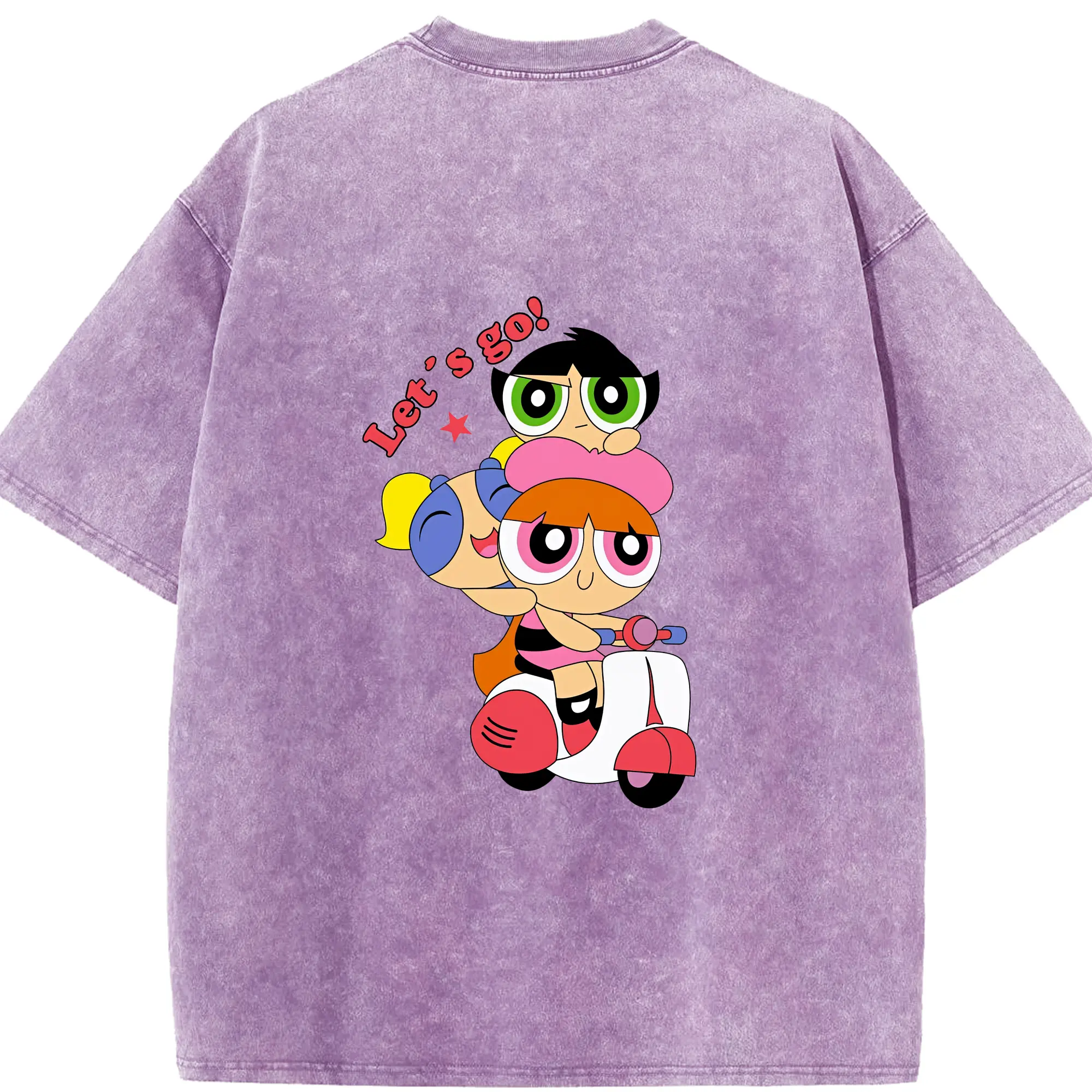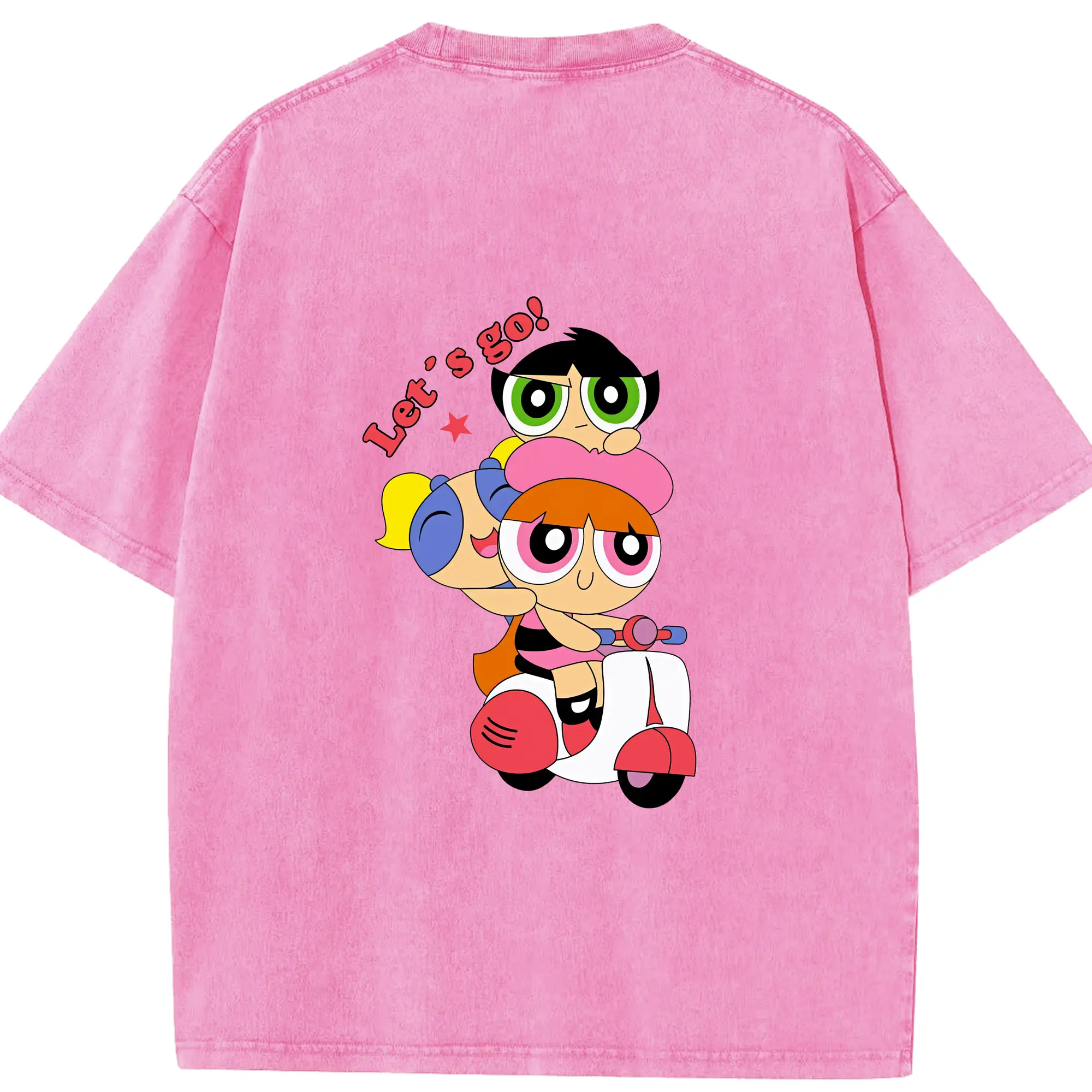 パワパフガールズ グッズ ブロッサム - 綿100% ヴィンテージ風 半袖Tシャツ ・ フロントプリント ・ 柔らか肌触り ・ 通気性 快適 ・ スポーツ カジュアル 外出用