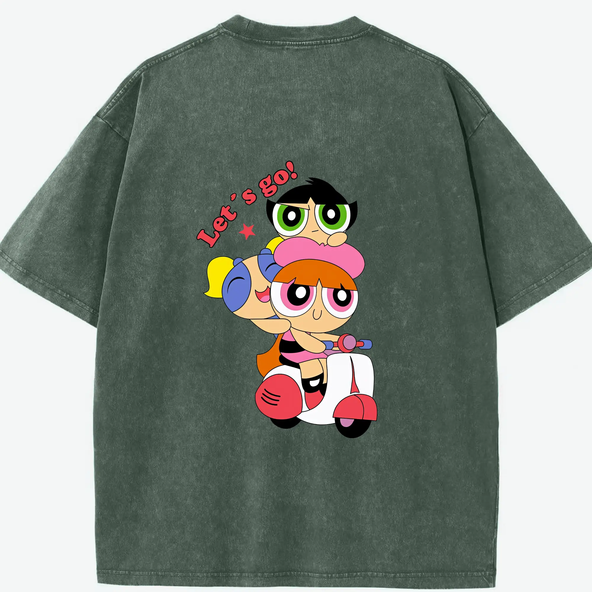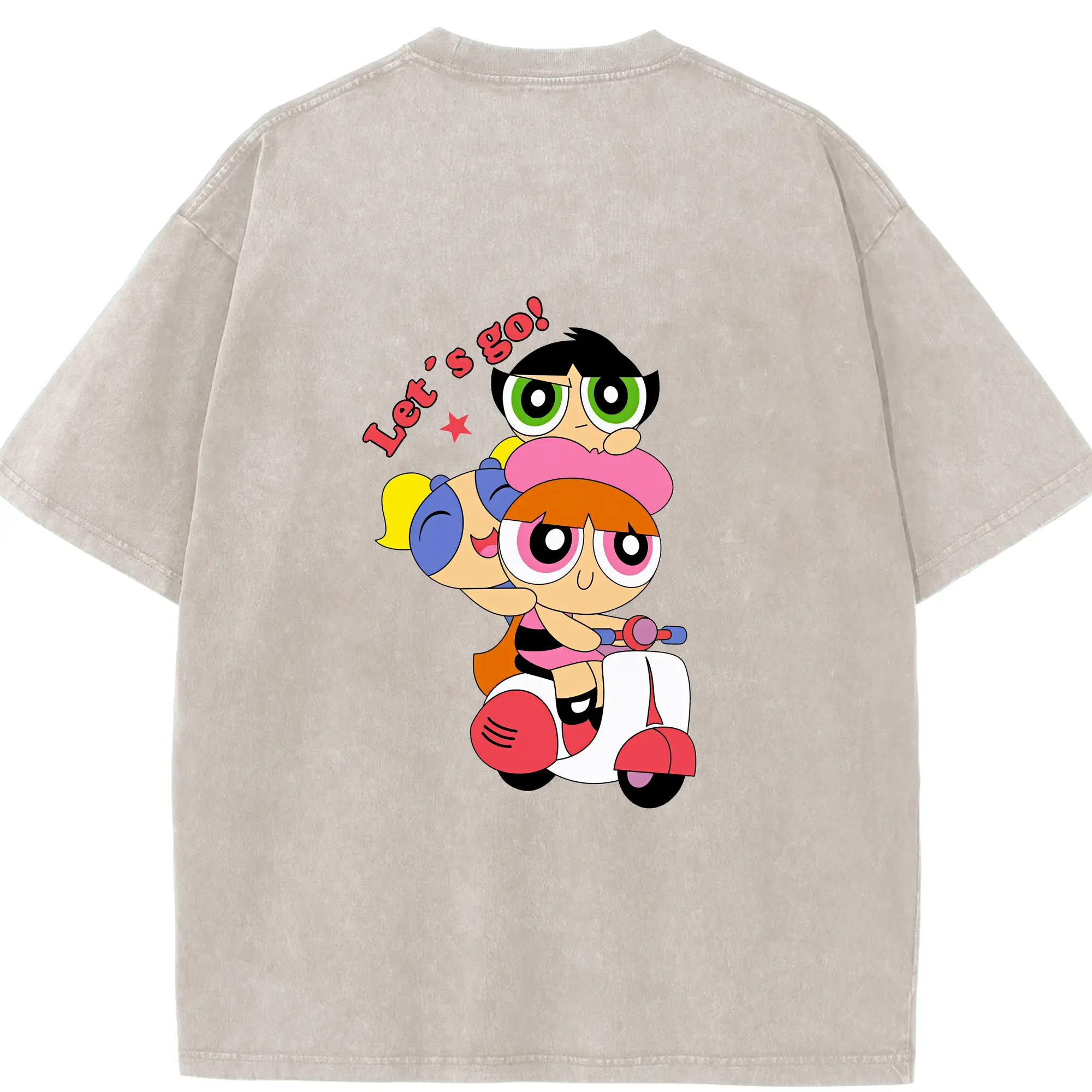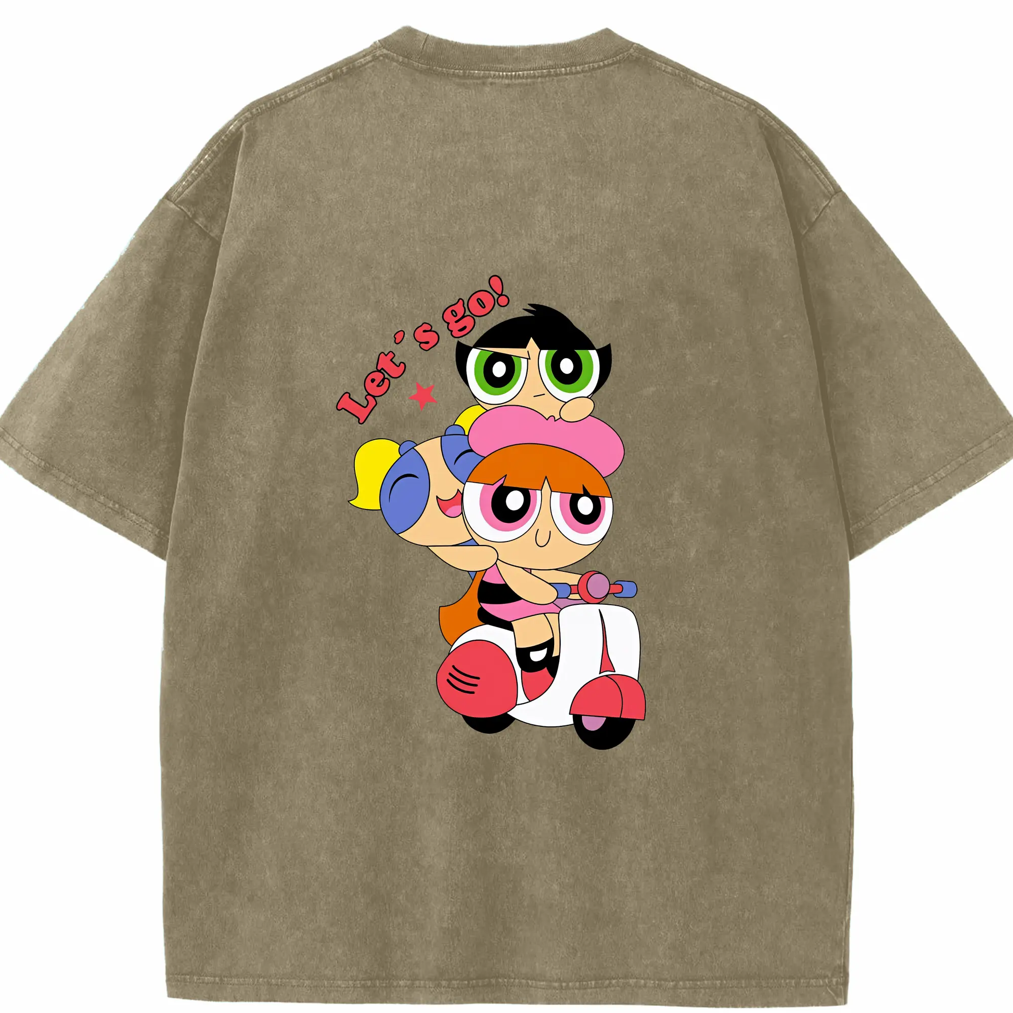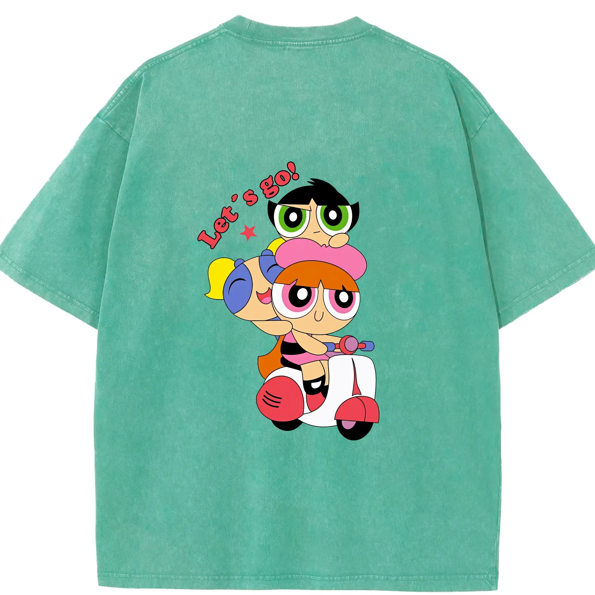 パワパフガールズ グッズ ブロッサム - 綿100% ヴィンテージ風 半袖Tシャツ ・ フロントプリント ・ 柔らか肌触り ・ 通気性 快適 ・ スポーツ カジュアル 外出用