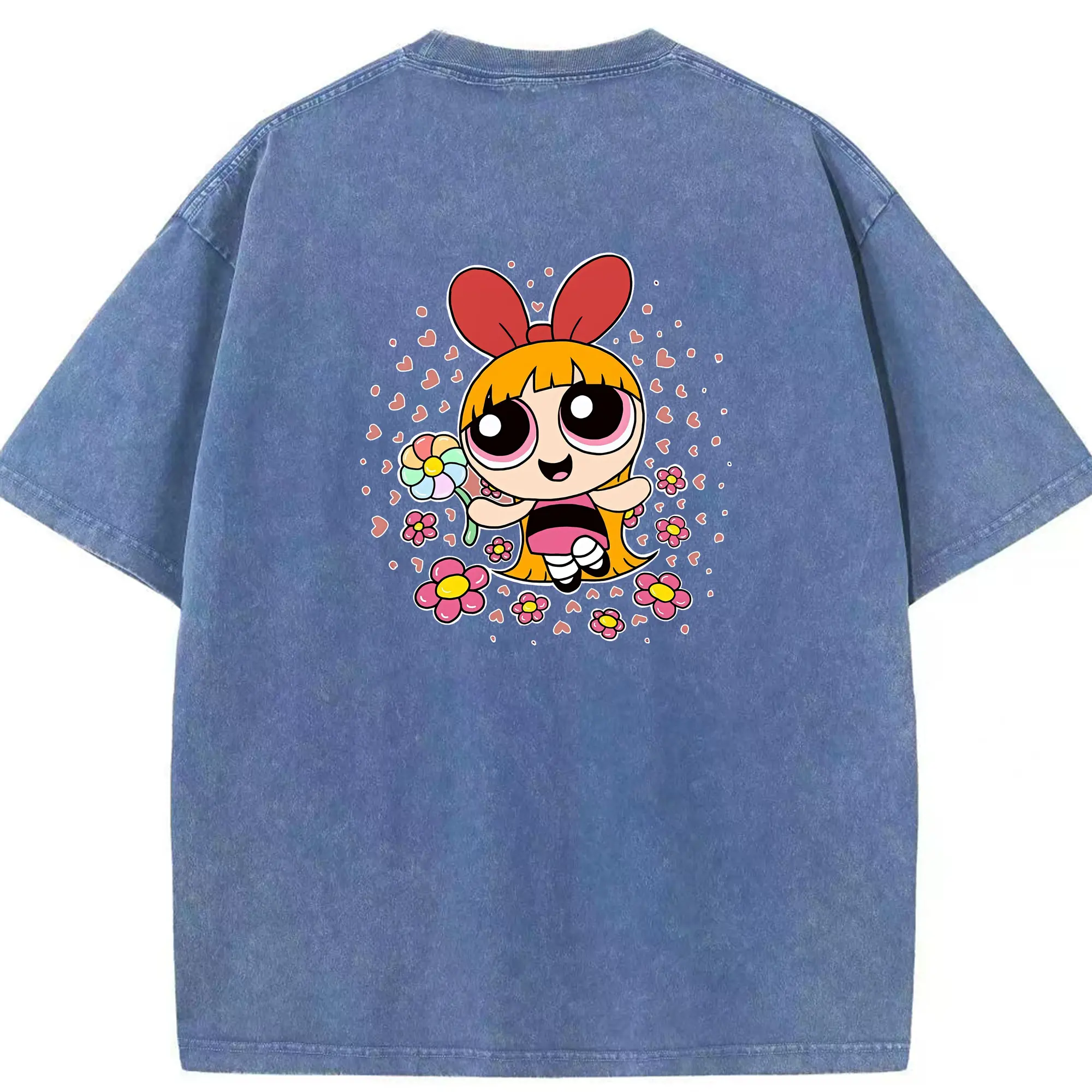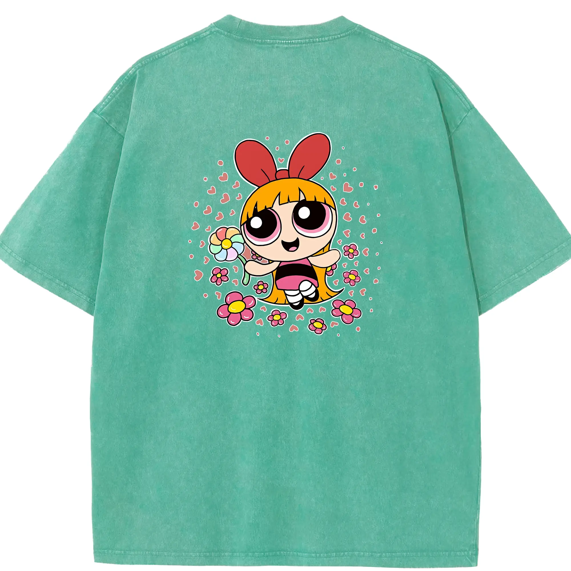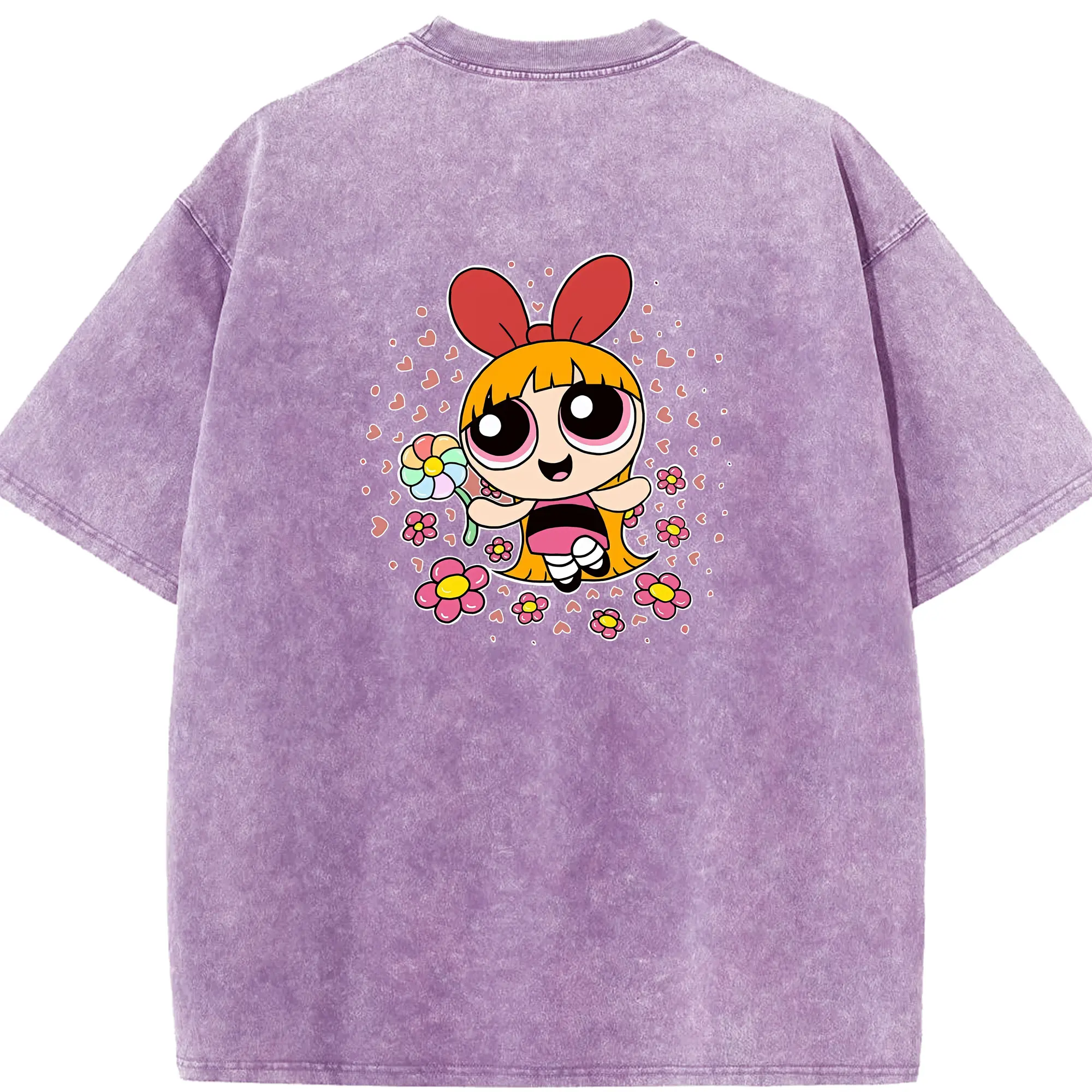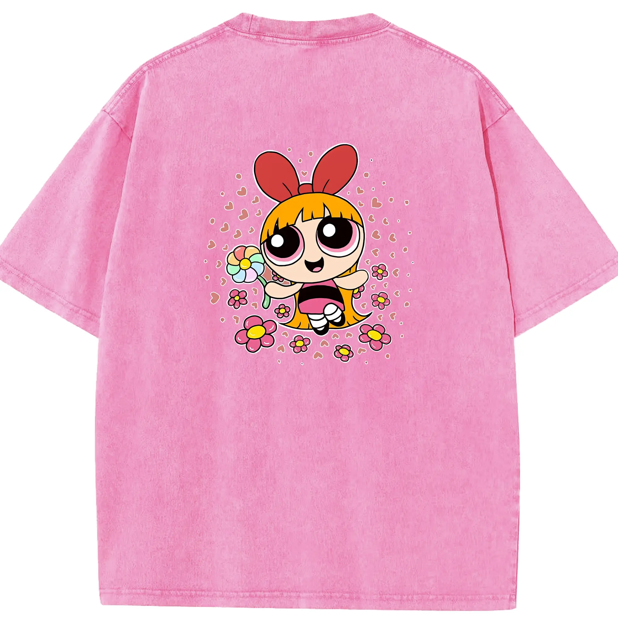 パワパフガールズ グッズ ブロッサム - 綿100% ヴィンテージ風 半袖Tシャツ ・ フロントプリント ・ 柔らか肌触り ・ 通気性 快適 ・ スポーツ カジュアル 外出用