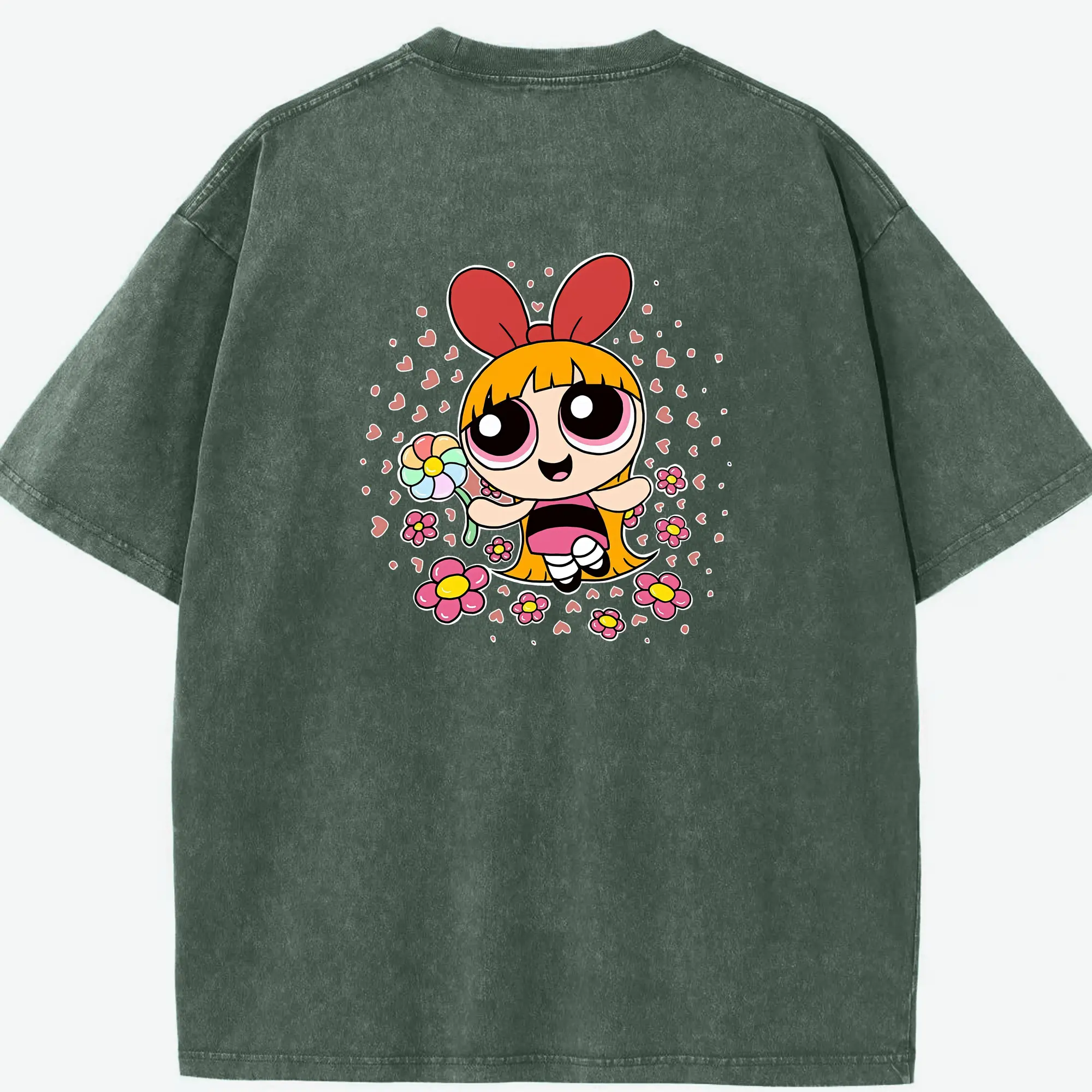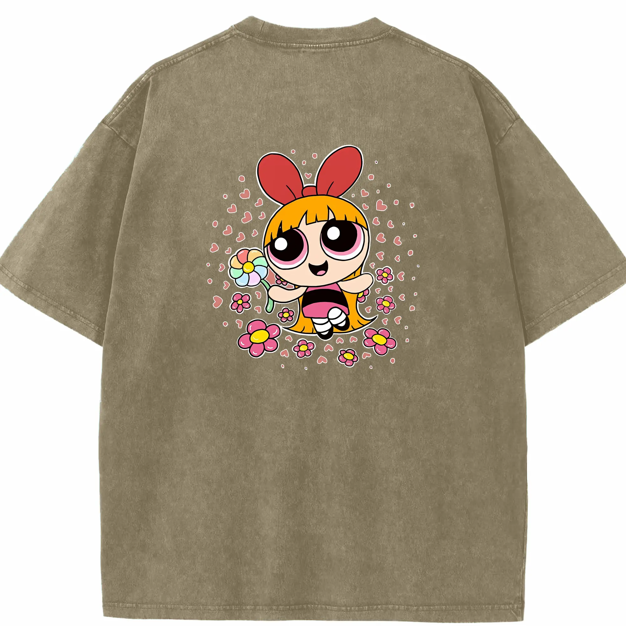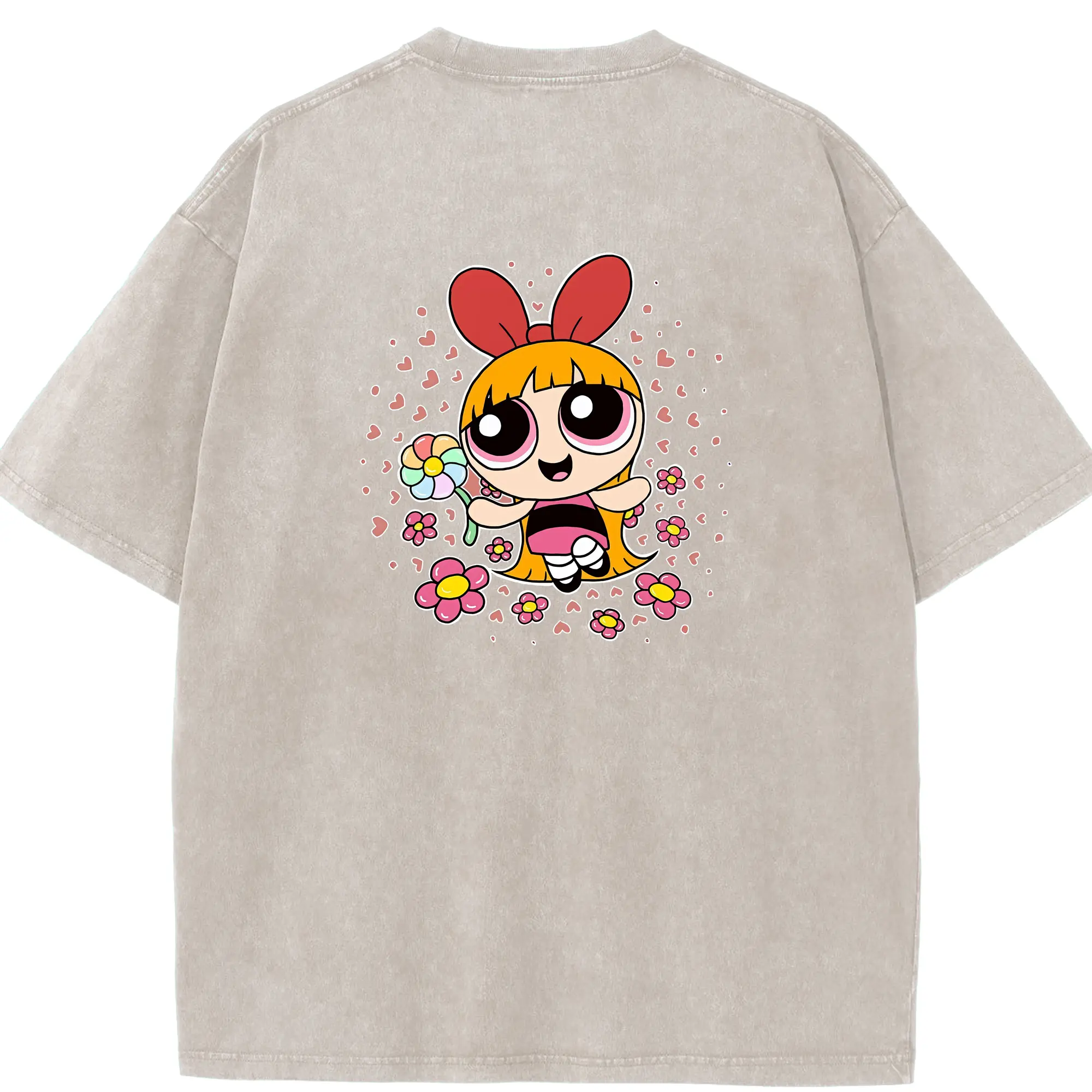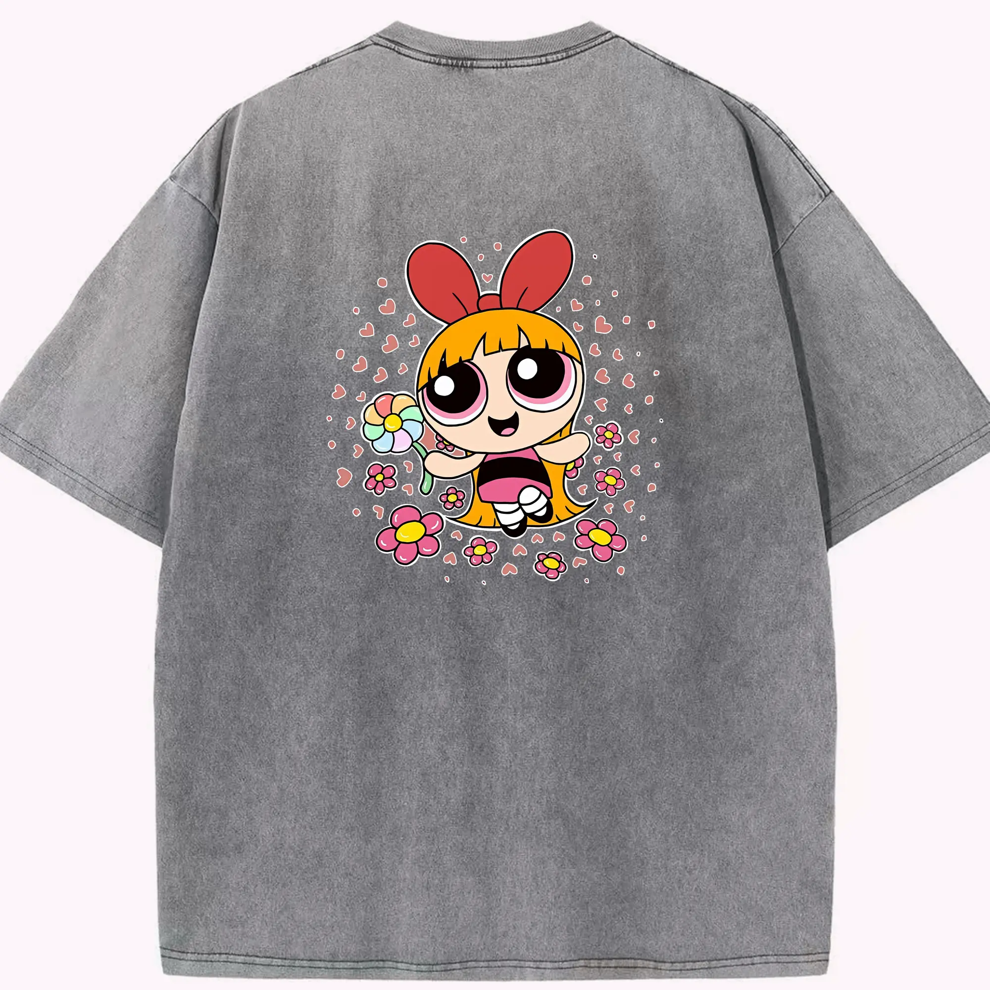 パワパフガールズ グッズ ブロッサム - 綿100% ヴィンテージ風 半袖Tシャツ ・ フロントプリント ・ 柔らか肌触り ・ 通気性 快適 ・ スポーツ カジュアル 外出用