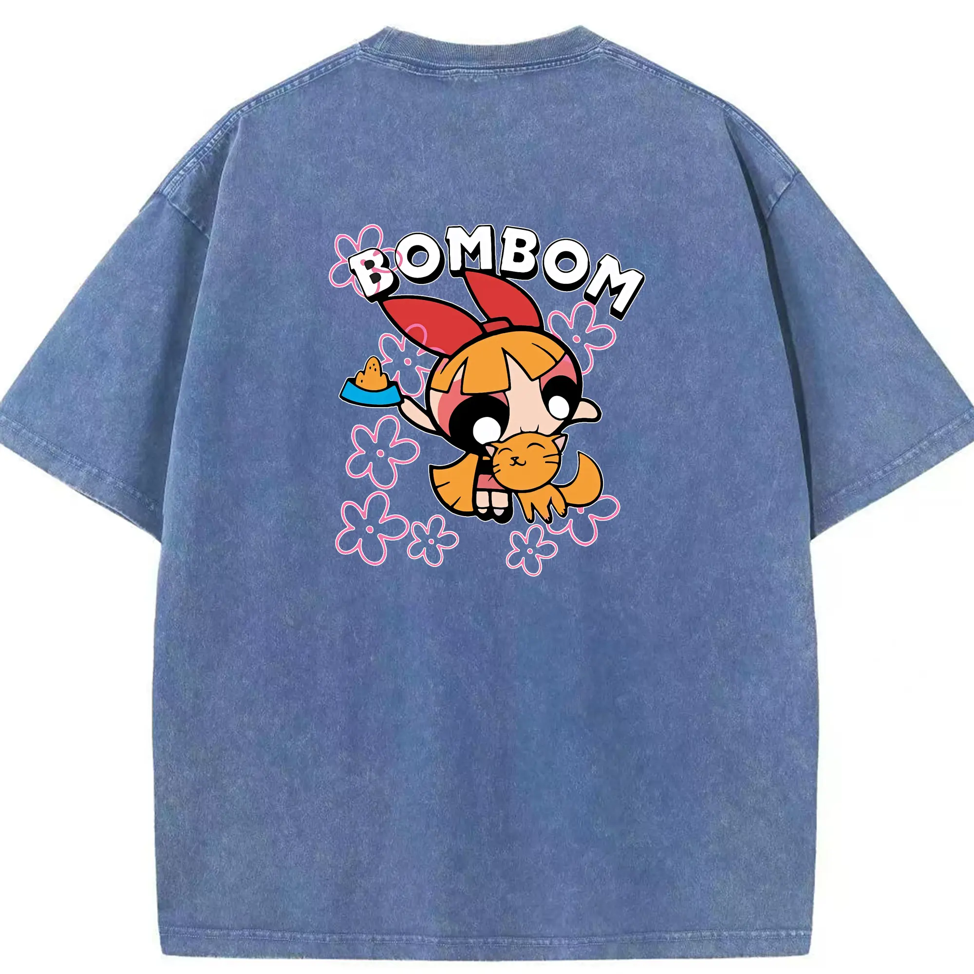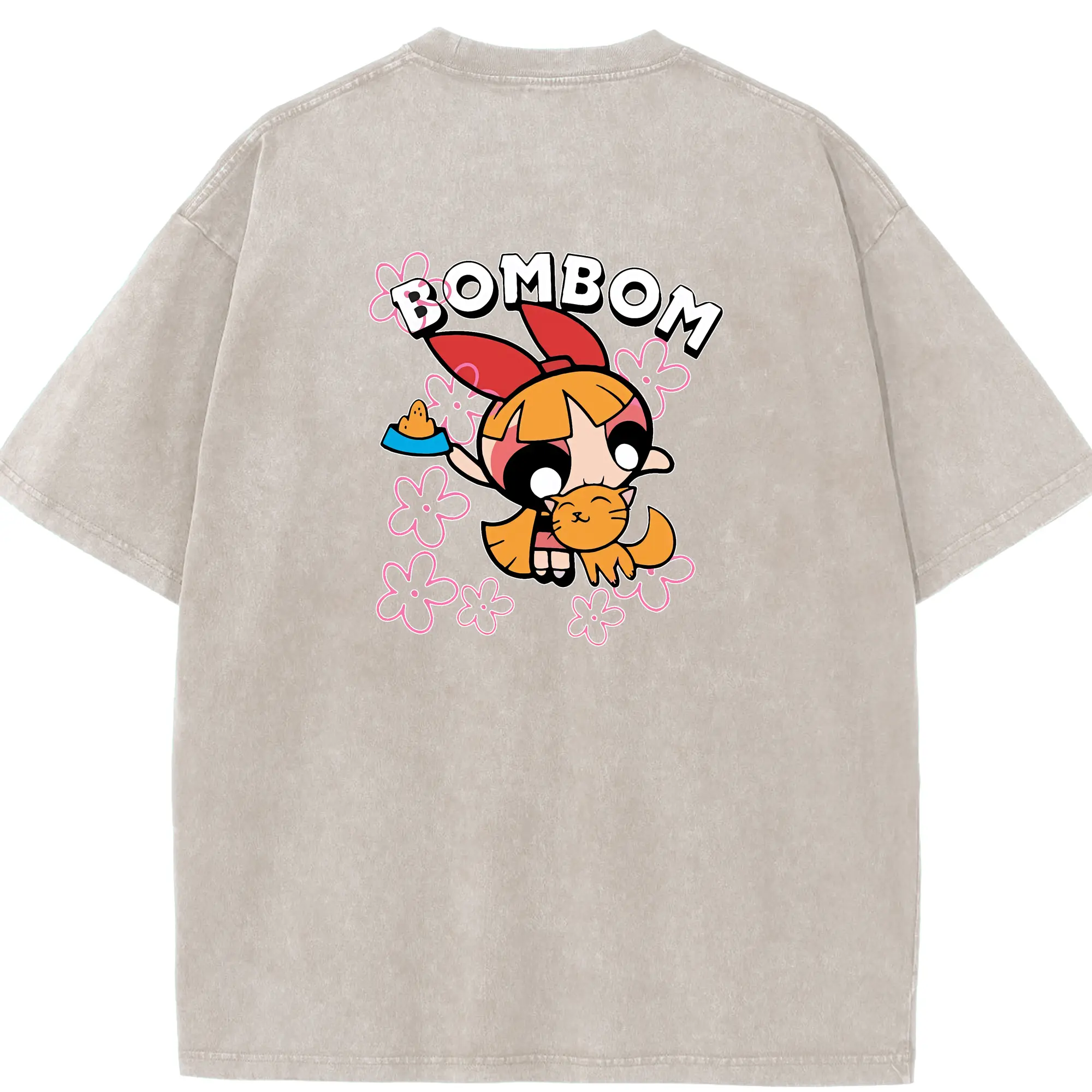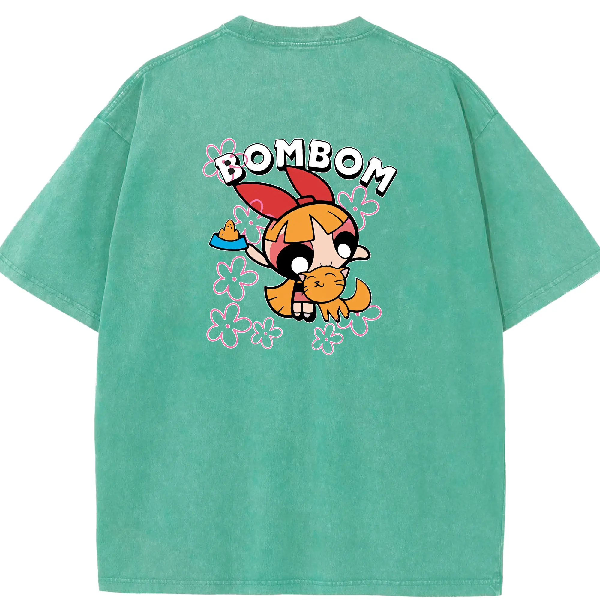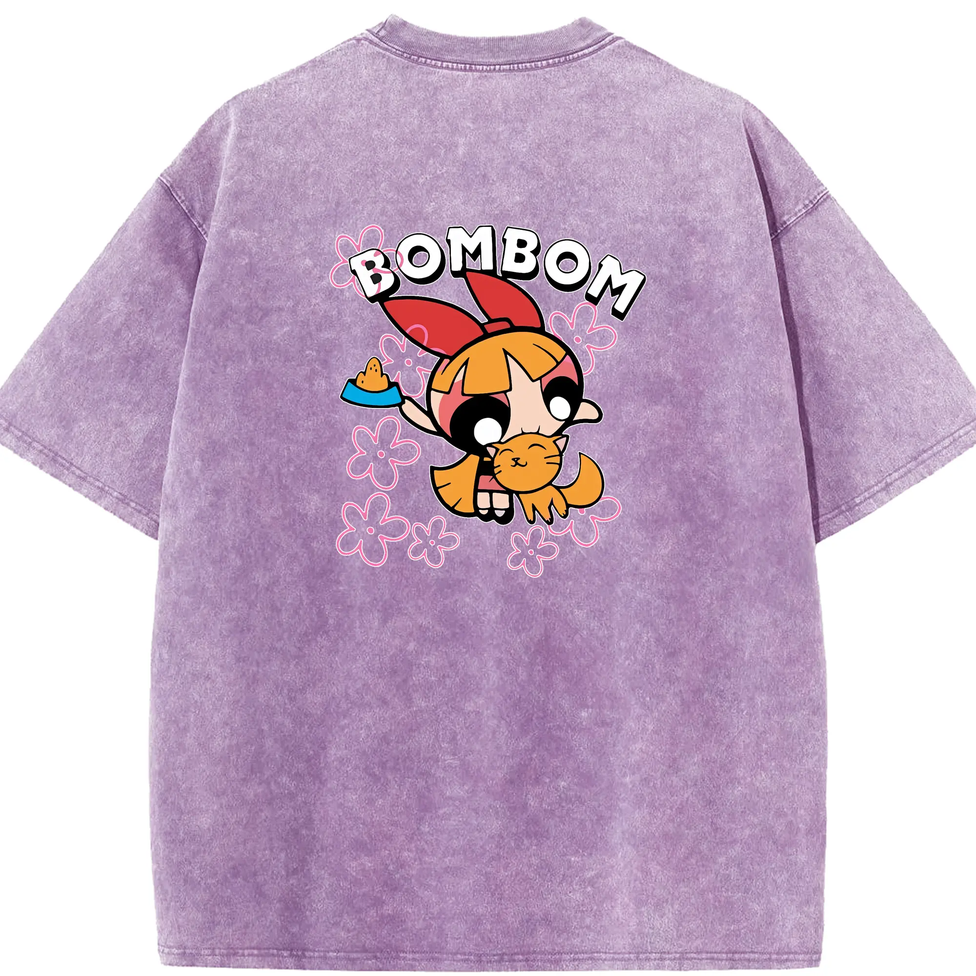 パワパフガールズ グッズ ブロッサム - 綿100% ヴィンテージ風 半袖Tシャツ ・ フロントプリント ・ 柔らか肌触り ・ 通気性 快適 ・ スポーツ カジュアル 外出用