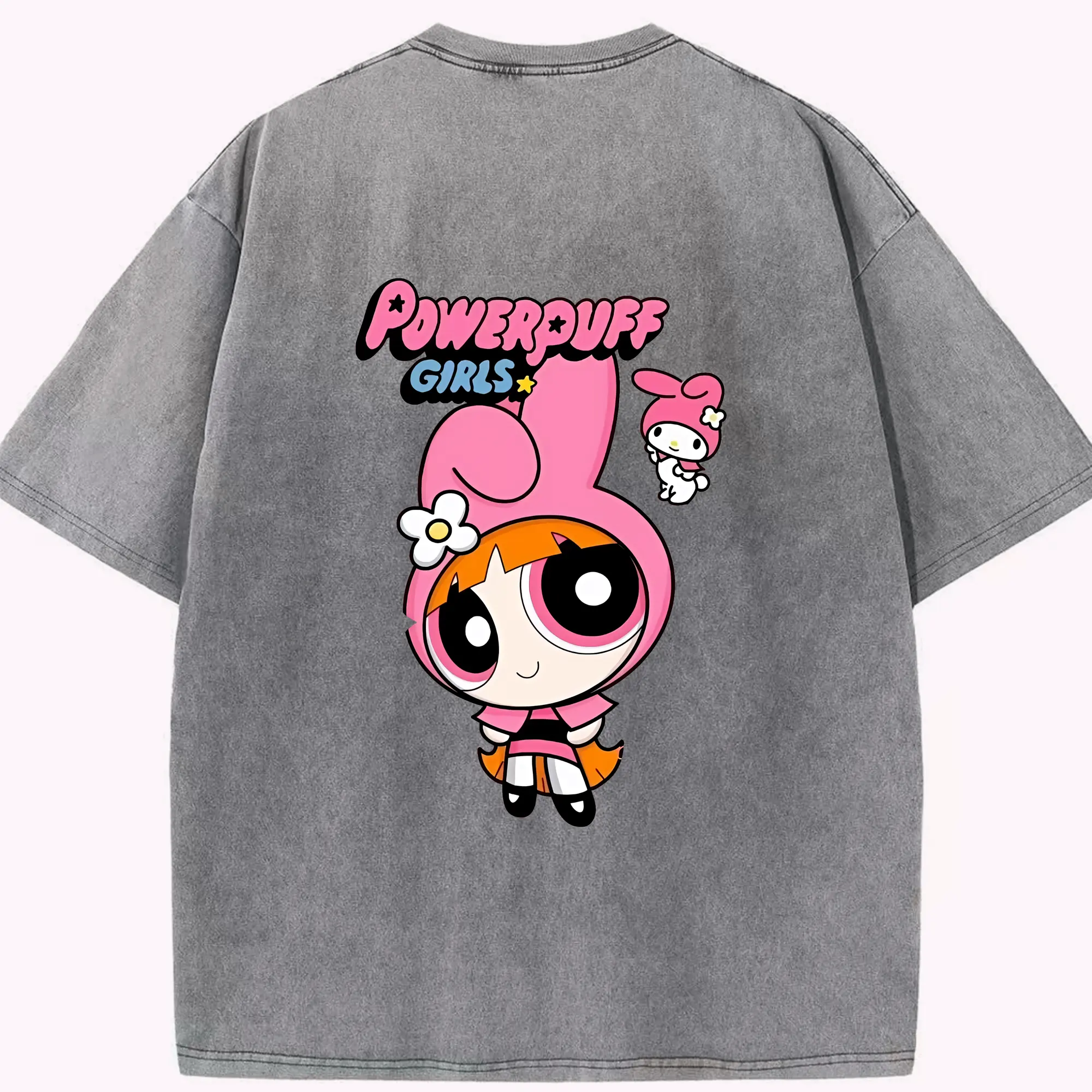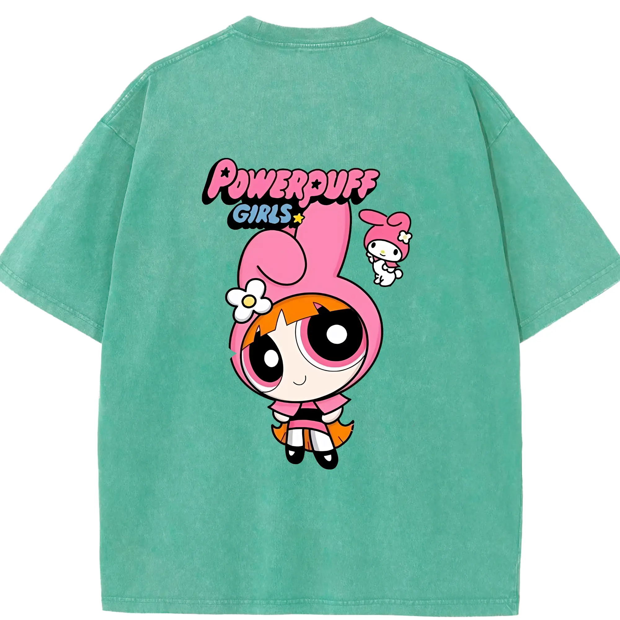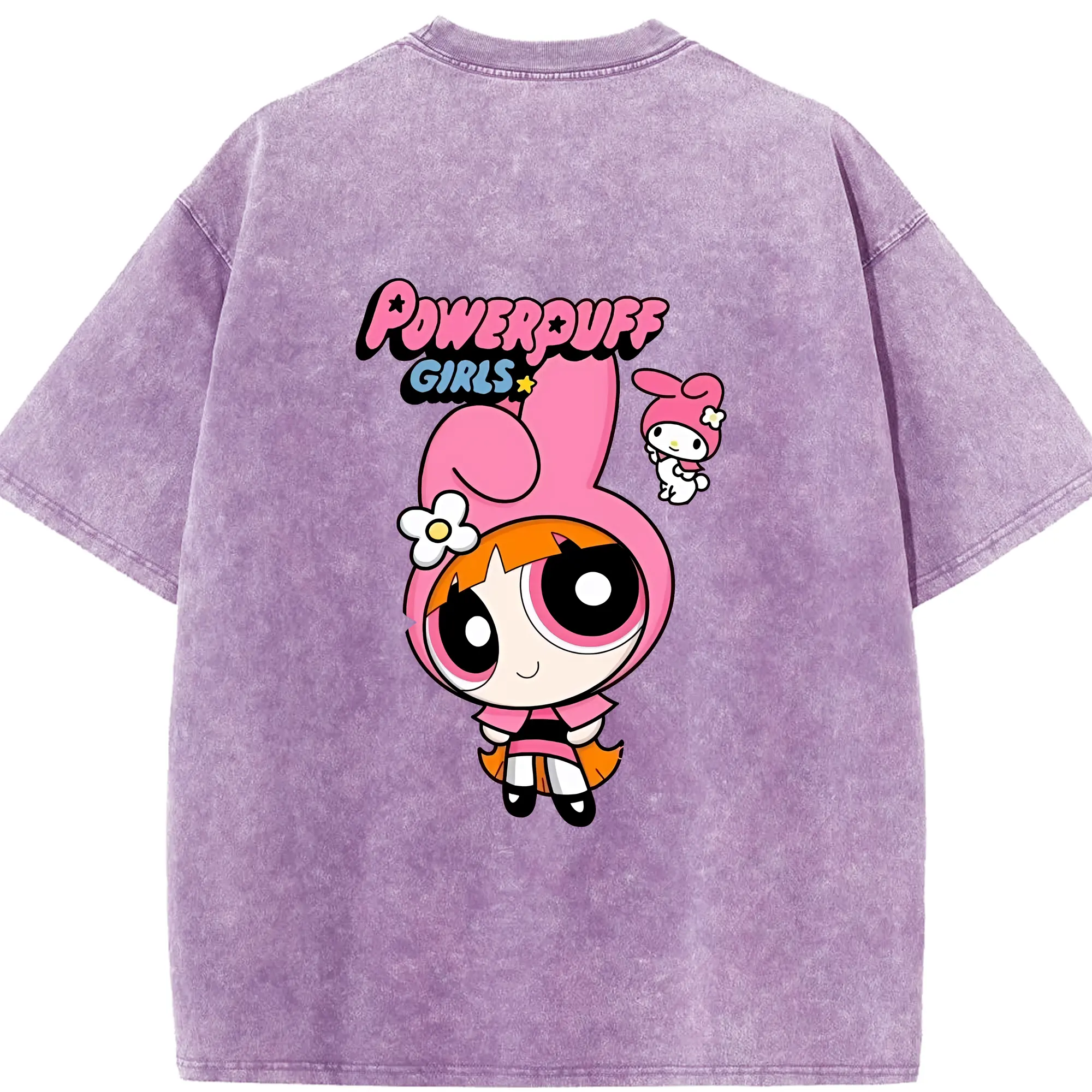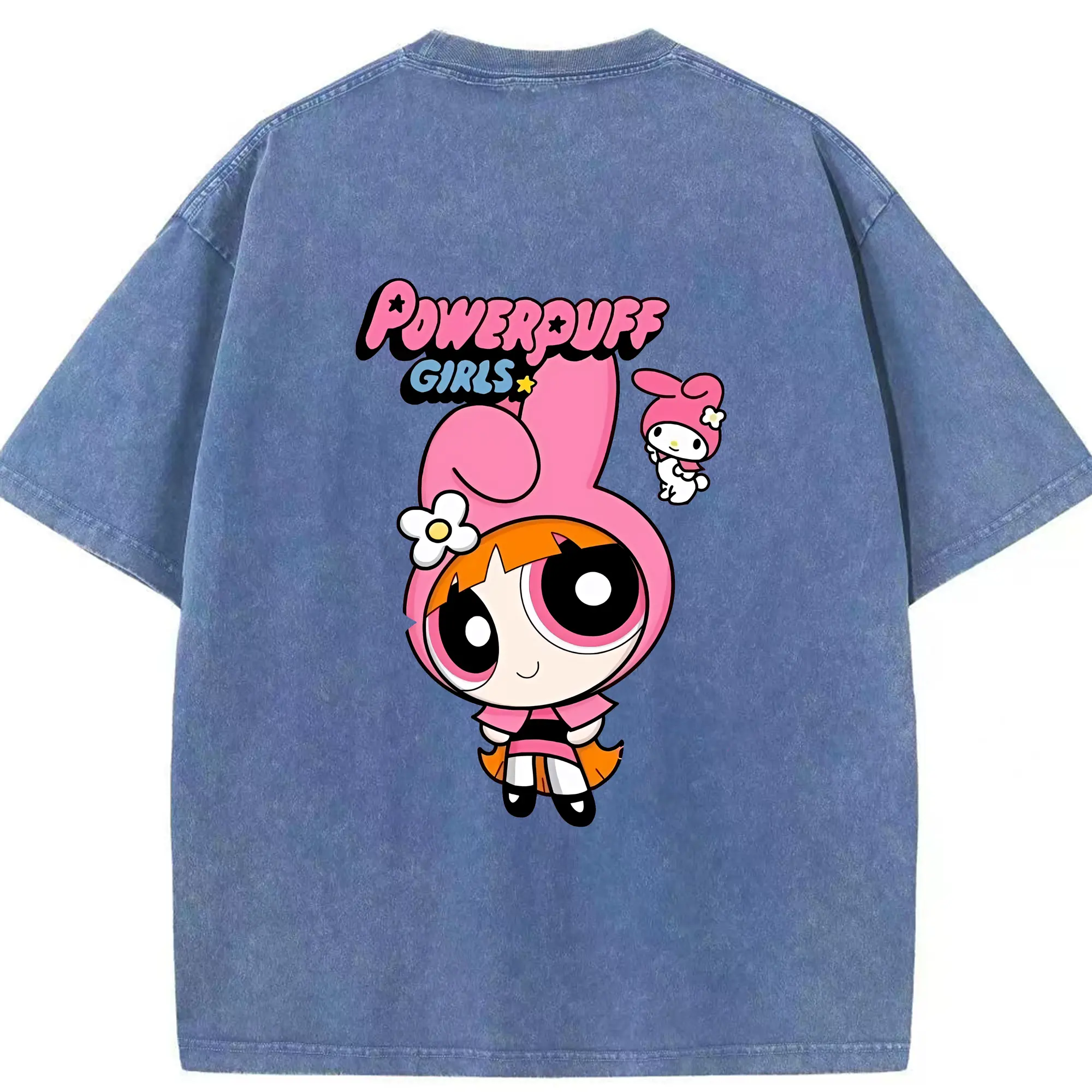 パワパフガールズ グッズ ブロッサム - 綿100% ヴィンテージ風 半袖Tシャツ ・ フロントプリント ・ 柔らか肌触り ・ 通気性 快適 ・ スポーツ カジュアル 外出用
