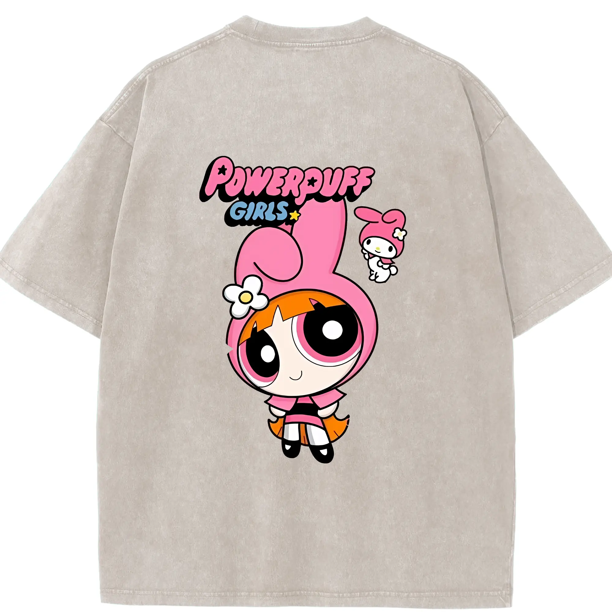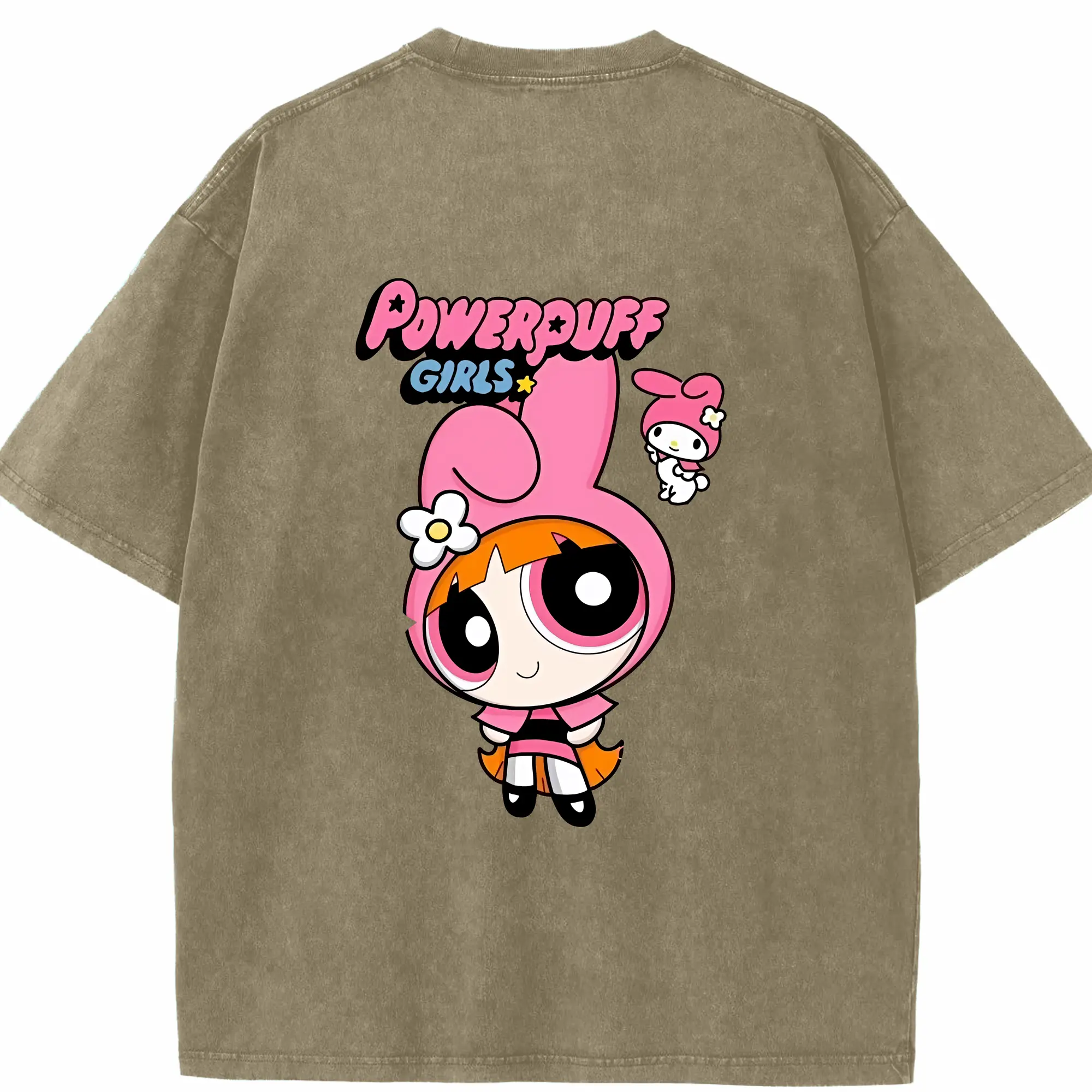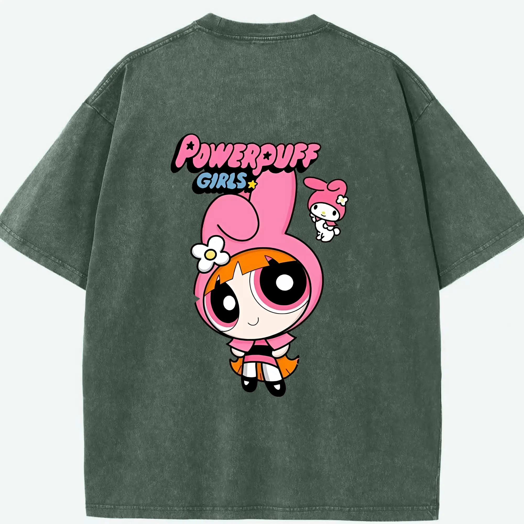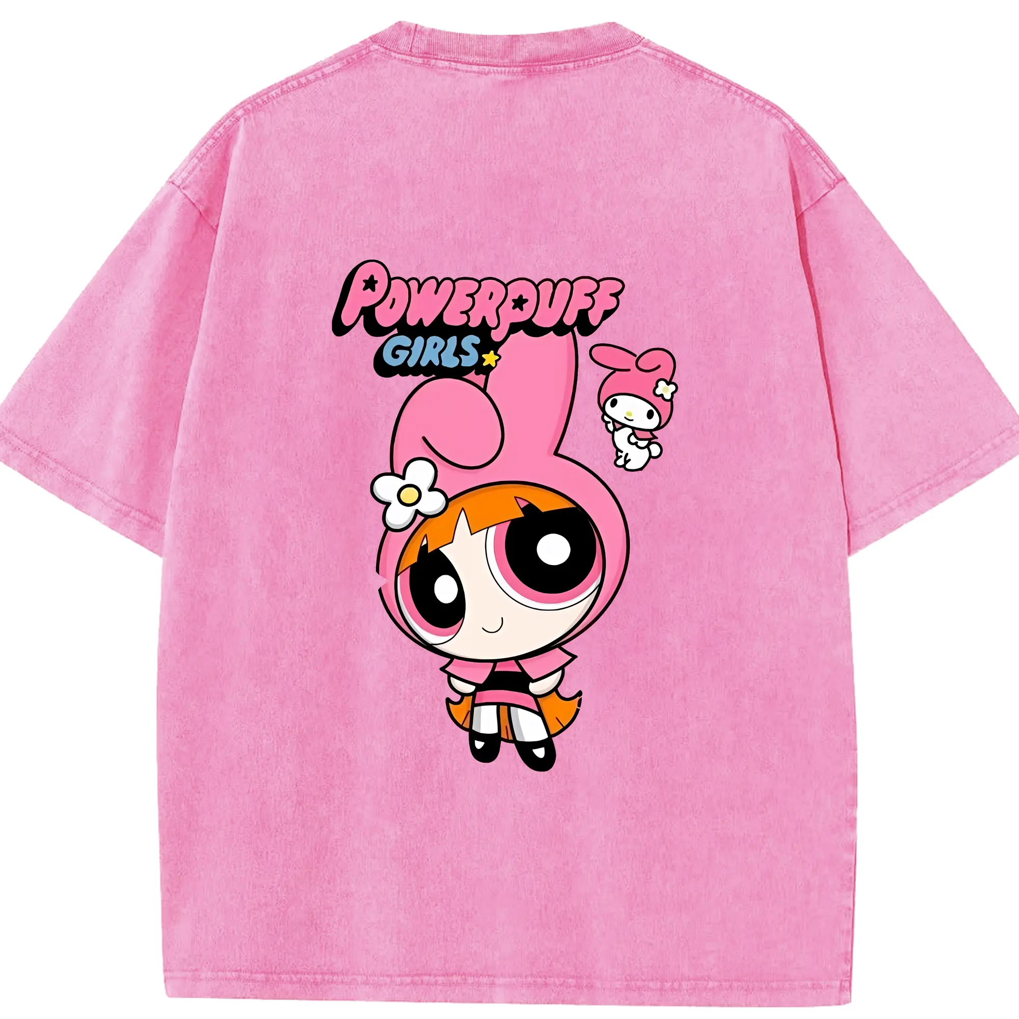 パワパフガールズ グッズ ブロッサム - 綿100% ヴィンテージ風 半袖Tシャツ ・ フロントプリント ・ 柔らか肌触り ・ 通気性 快適 ・ スポーツ カジュアル 外出用