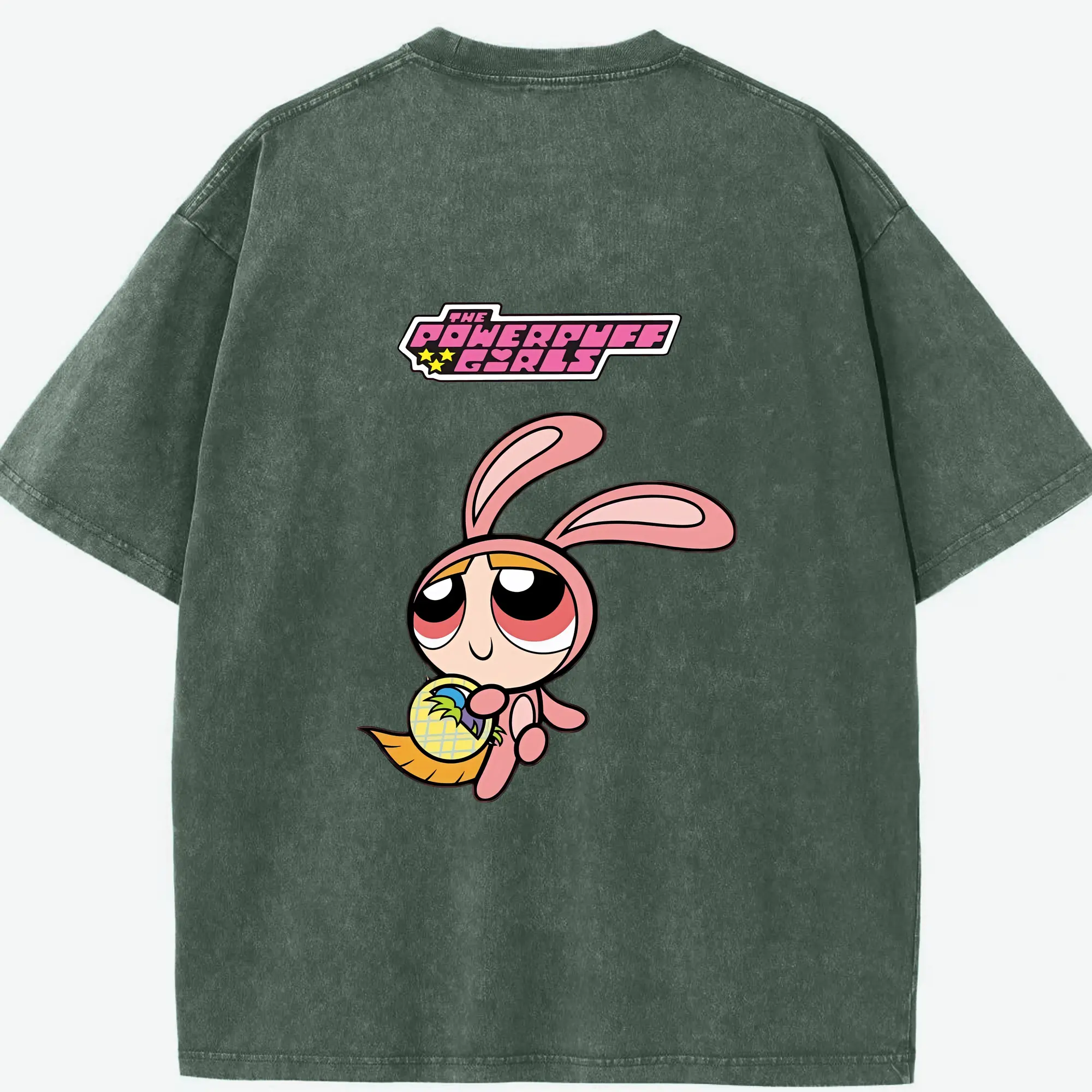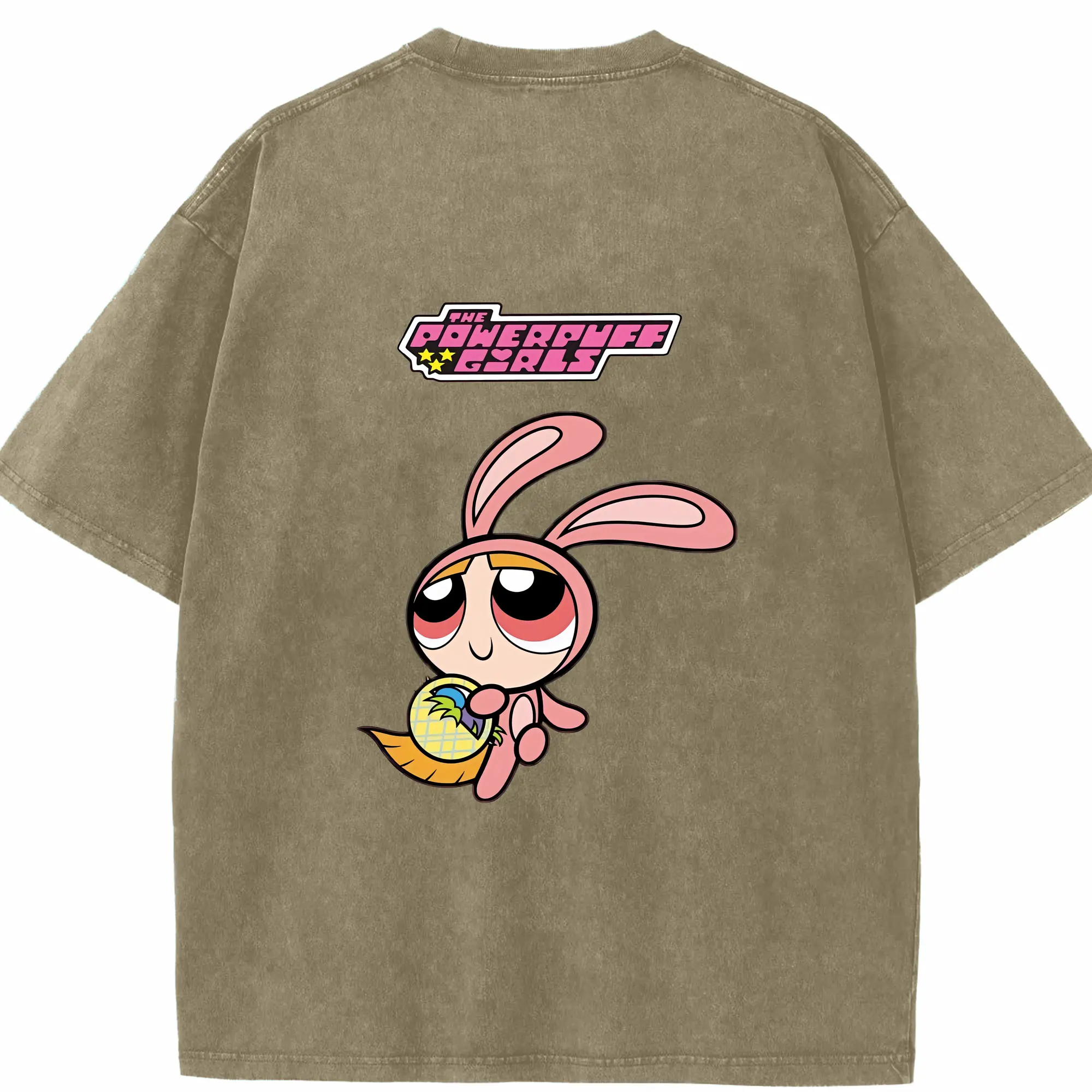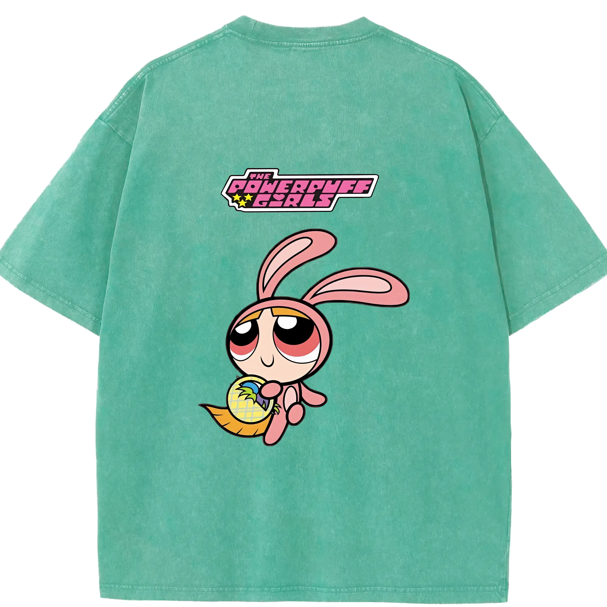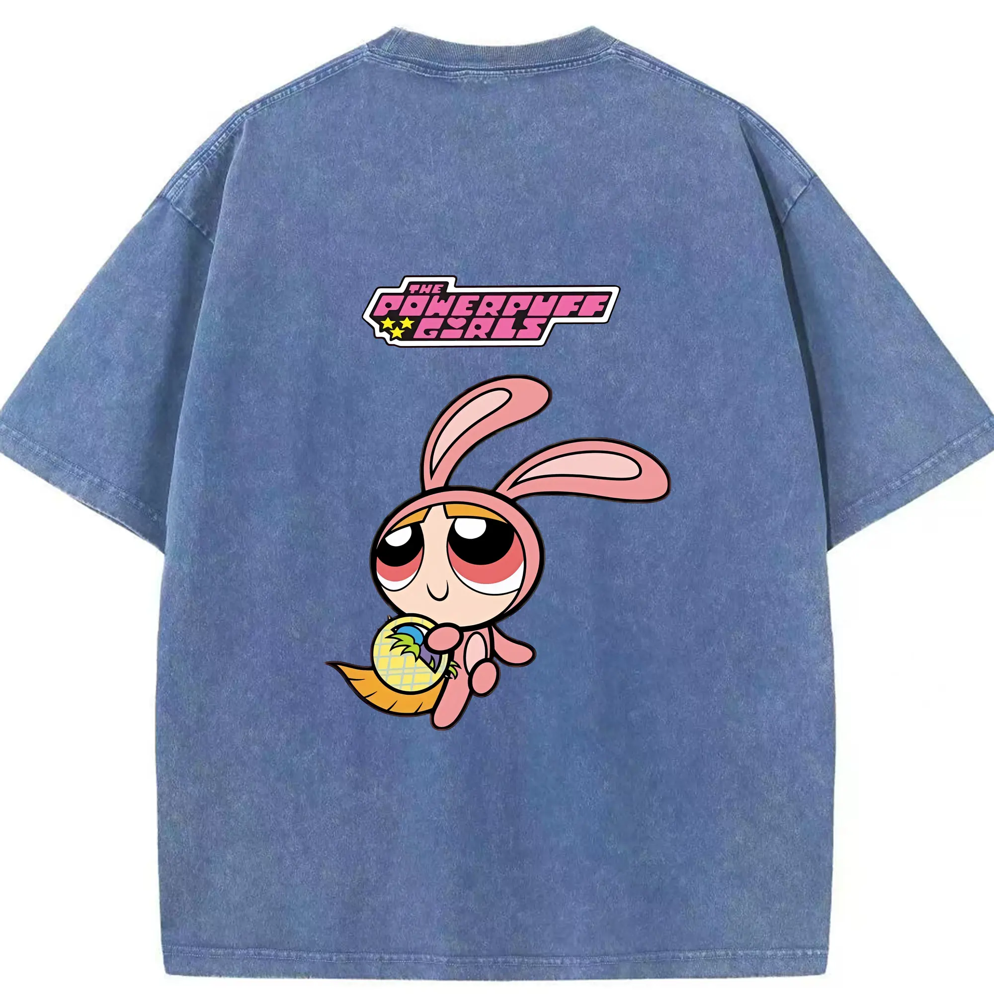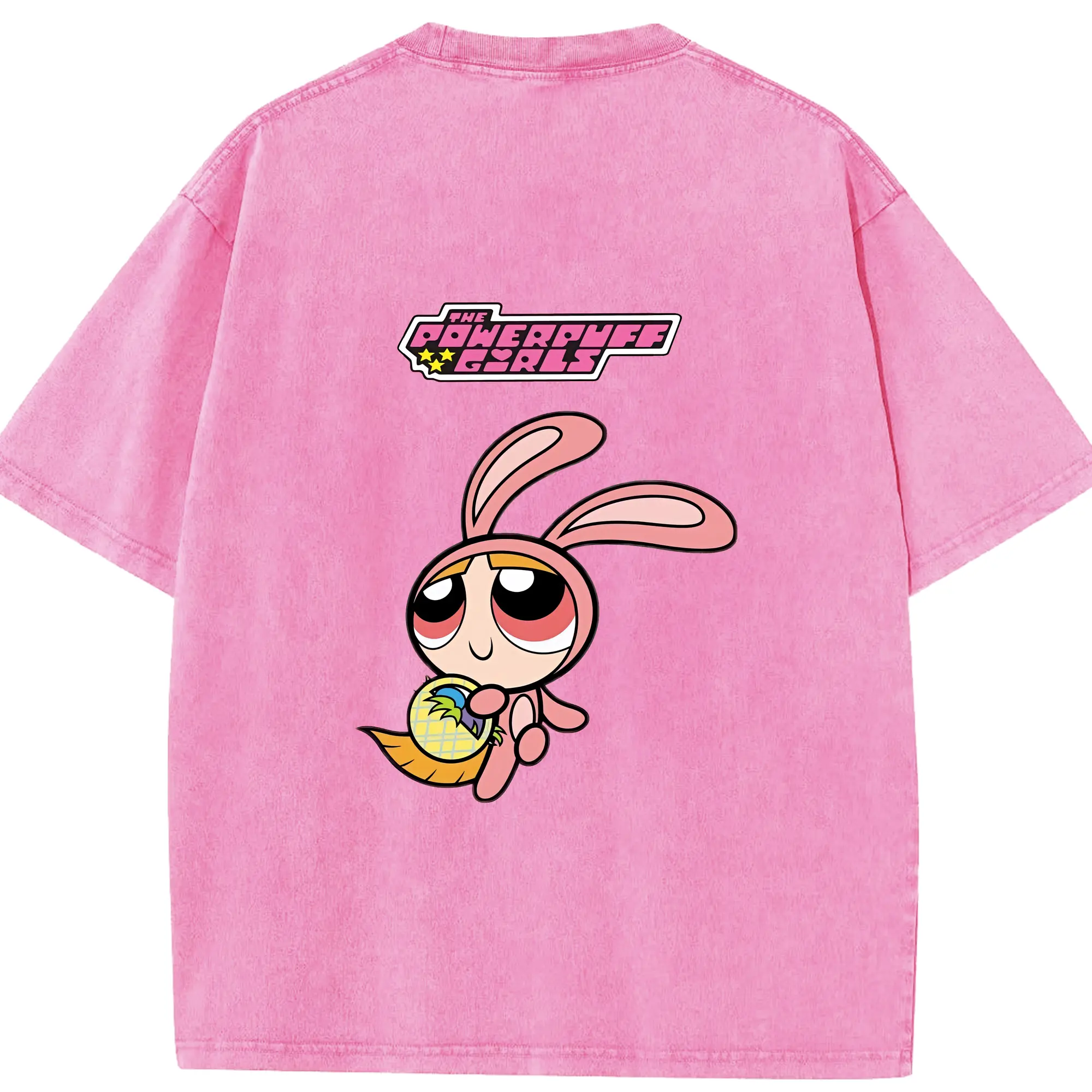 パワパフガールズ グッズ ブロッサム - 綿100% ヴィンテージ風 半袖Tシャツ ・ フロントプリント ・ 柔らか肌触り ・ 通気性 快適 ・ スポーツ カジュアル 外出用