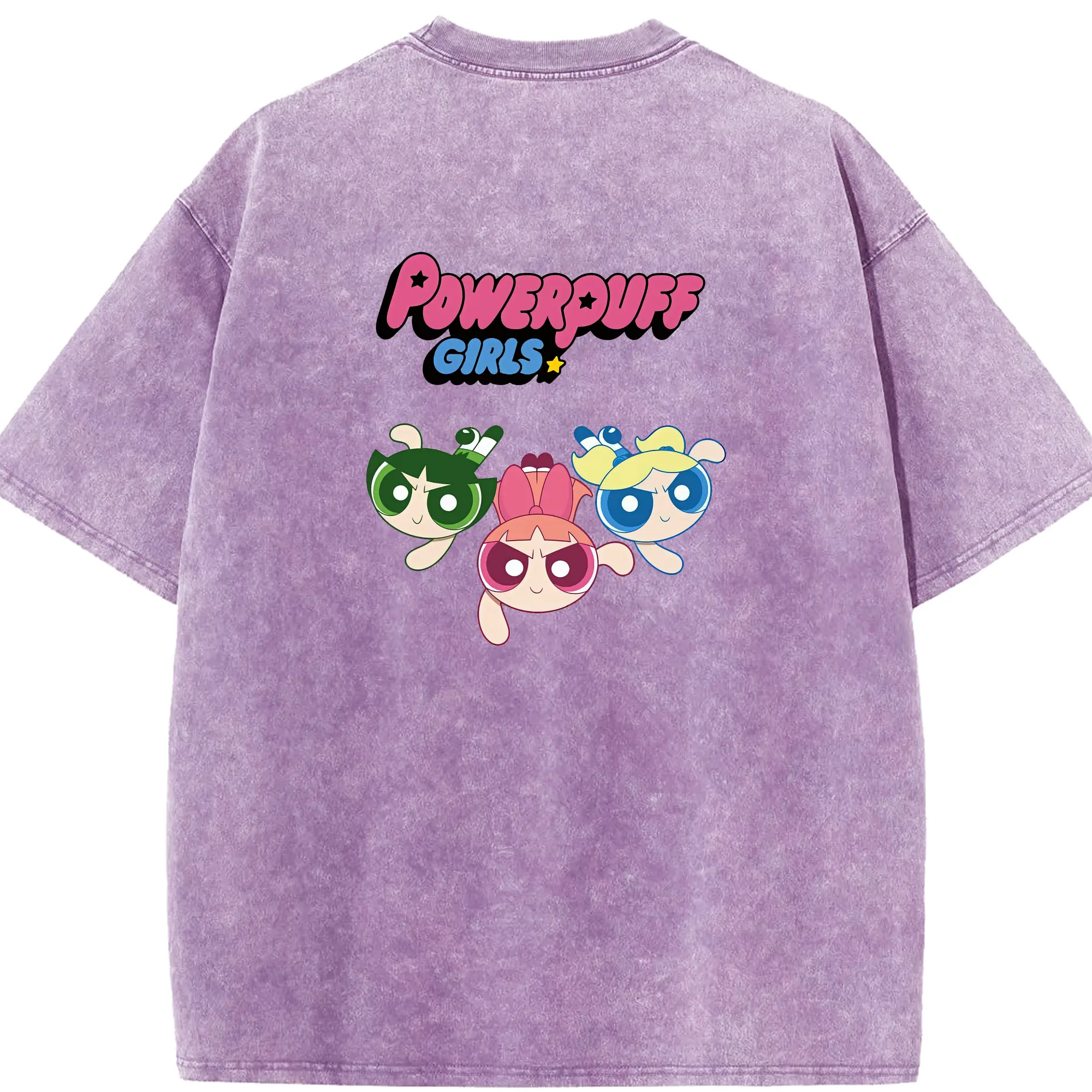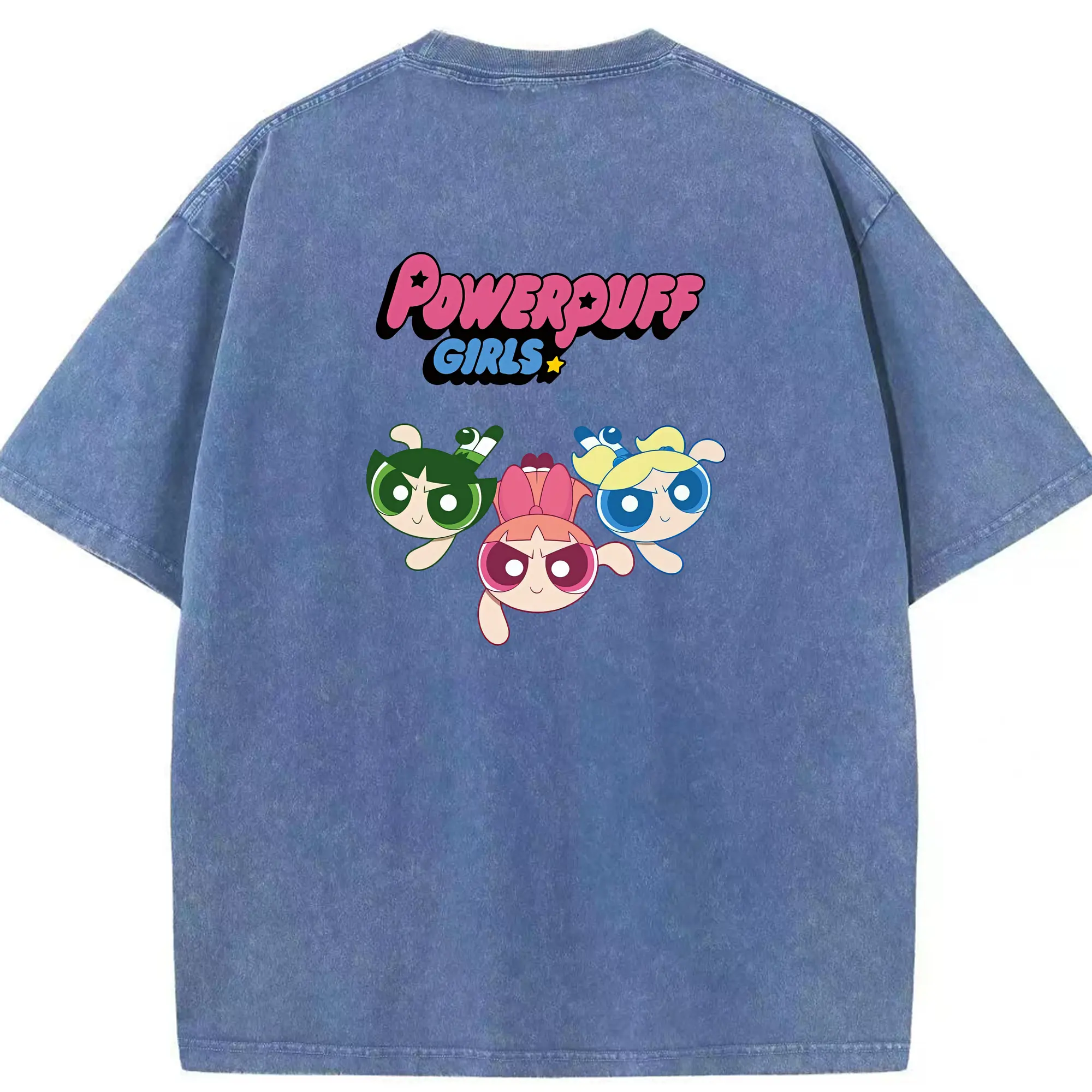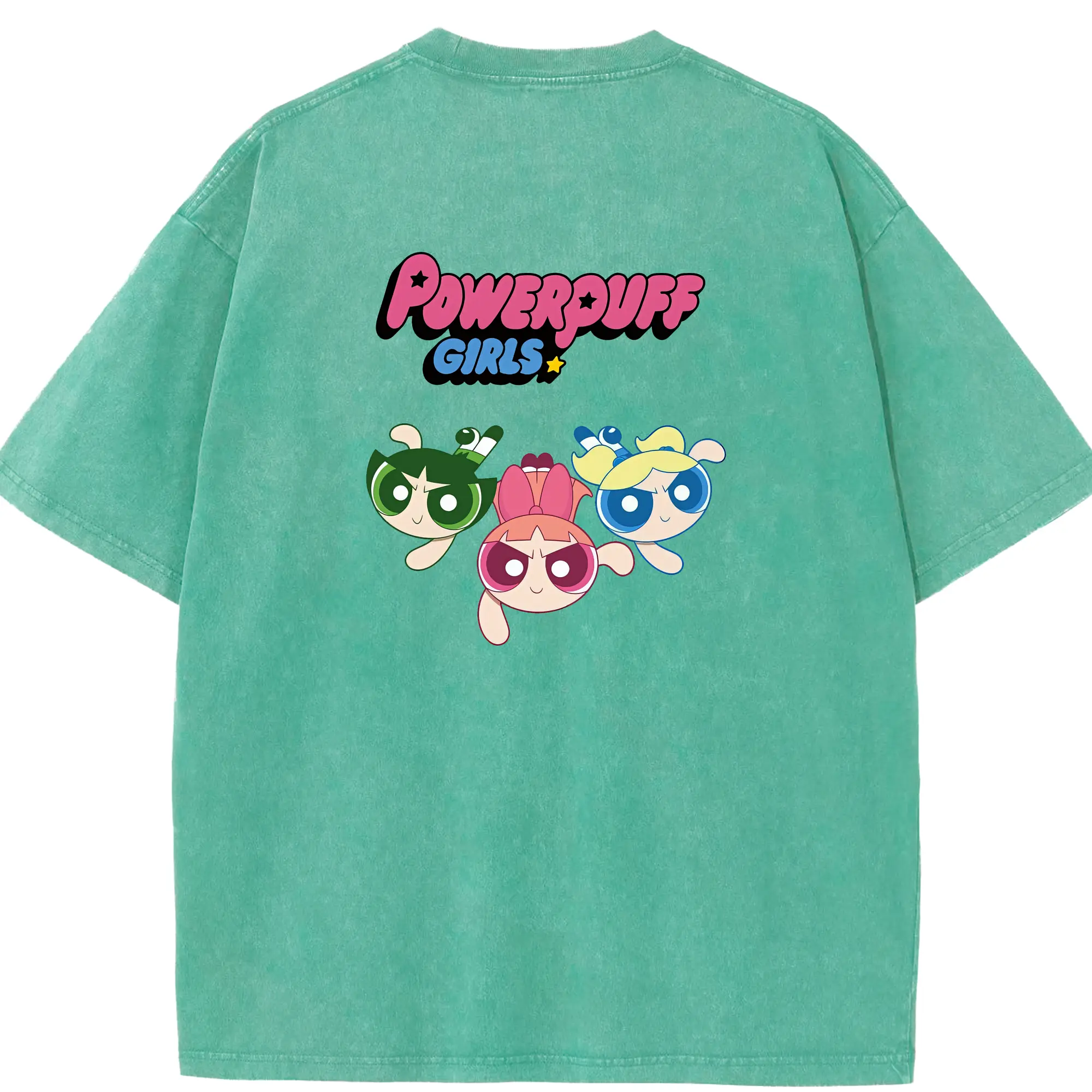 パワパフガールズ グッズ ブロッサム - 綿100% ヴィンテージ風 半袖Tシャツ ・ フロントプリント ・ 柔らか肌触り ・ 通気性 快適 ・ スポーツ カジュアル 外出用