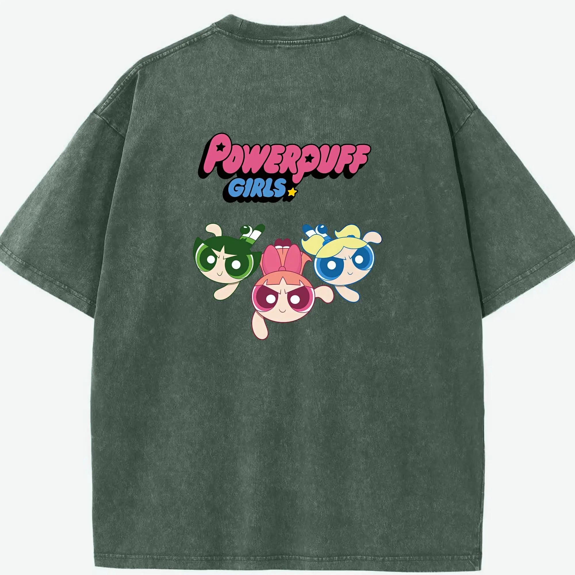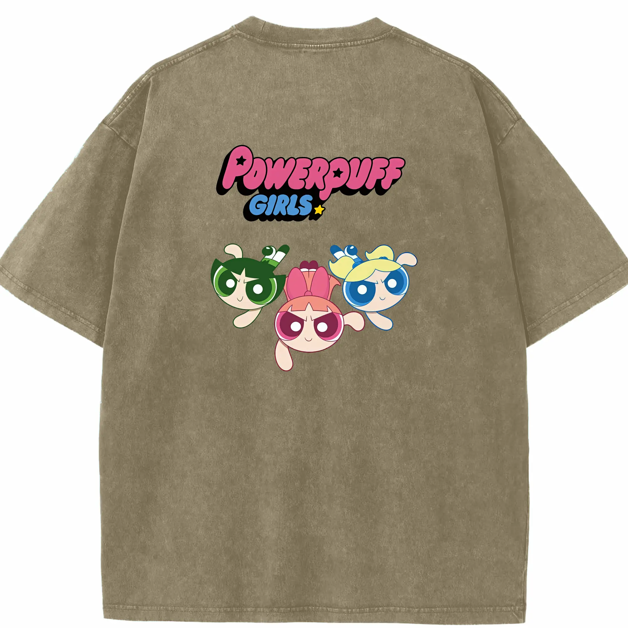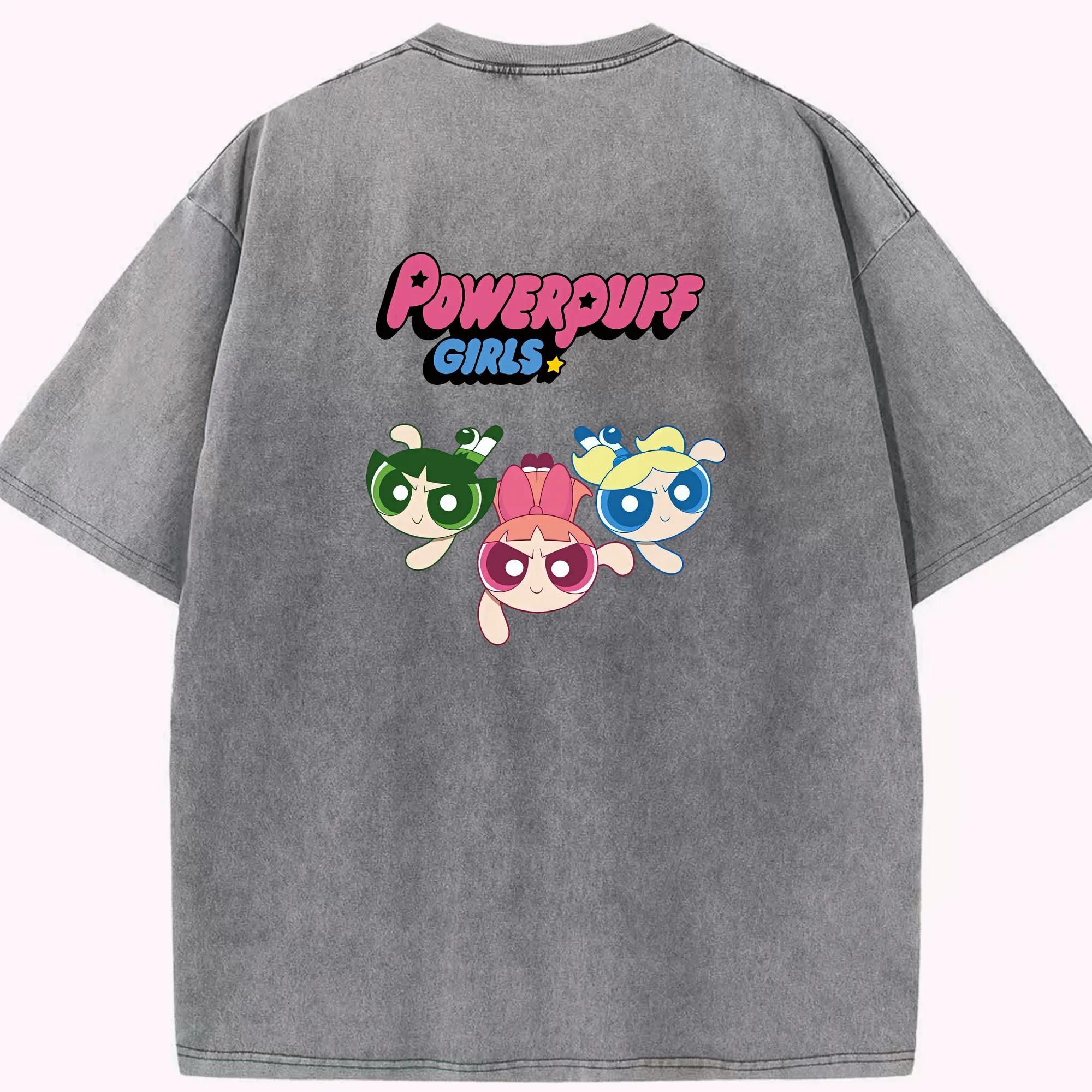 パワパフガールズ グッズ ブロッサム - 綿100% ヴィンテージ風 半袖Tシャツ ・ フロントプリント ・ 柔らか肌触り ・ 通気性 快適 ・ スポーツ カジュアル 外出用