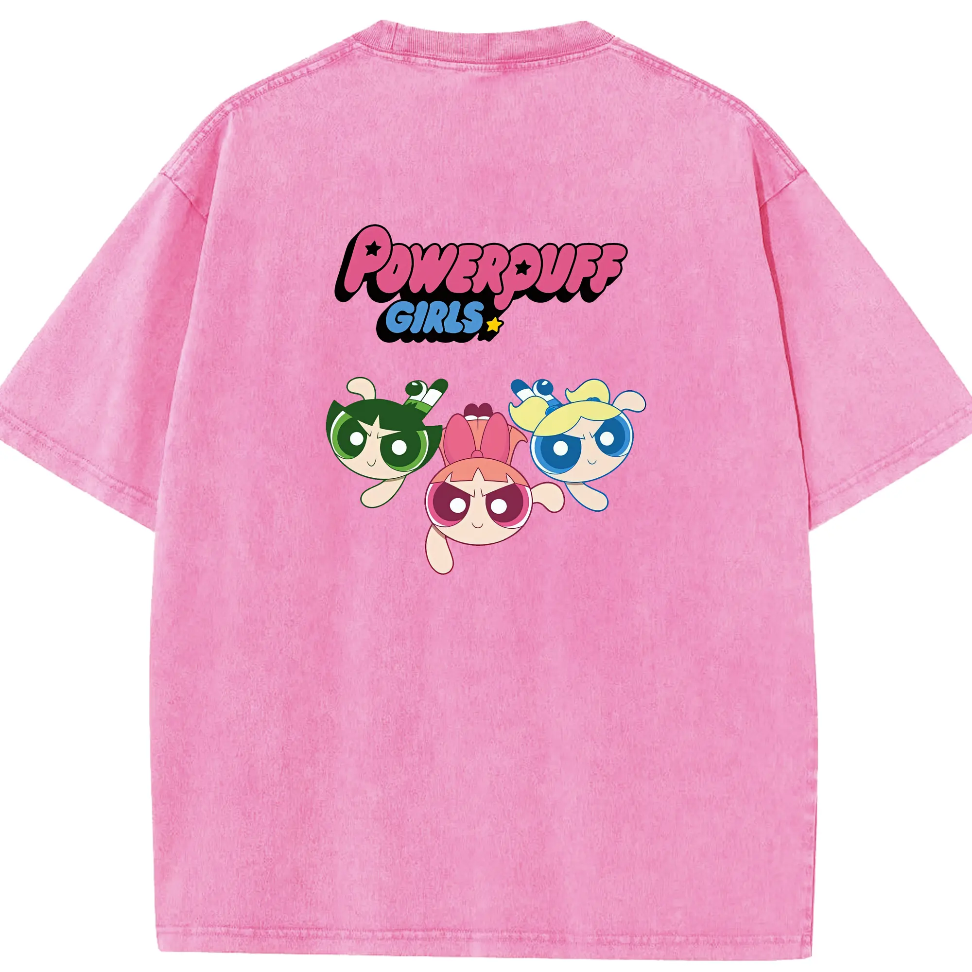 パワパフガールズ グッズ ブロッサム - 綿100% 半袖Tシャツ ・ バックプリント ・ 快適 通気性 ・ 日常使い 散歩 スポーツ用