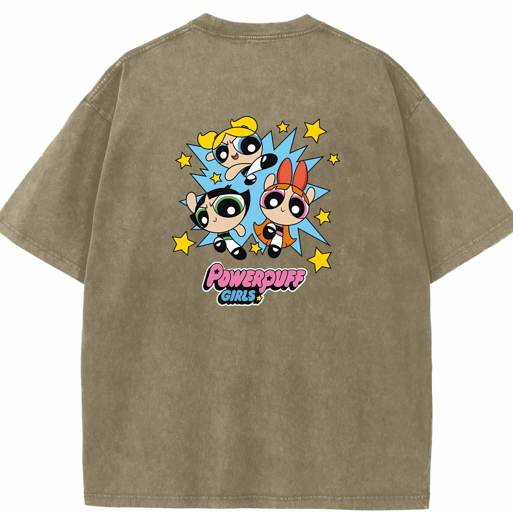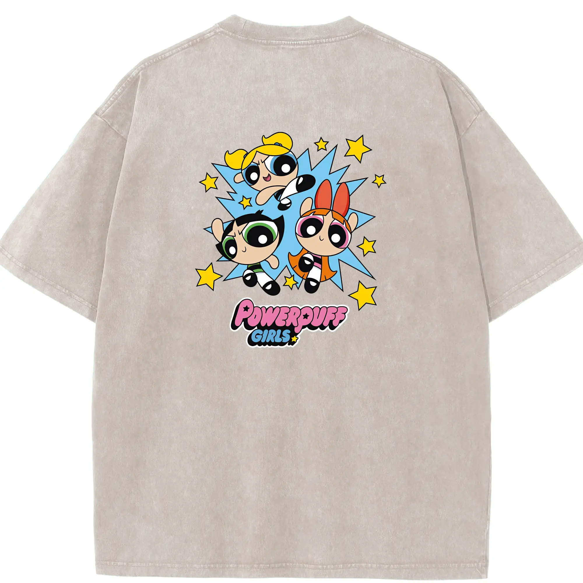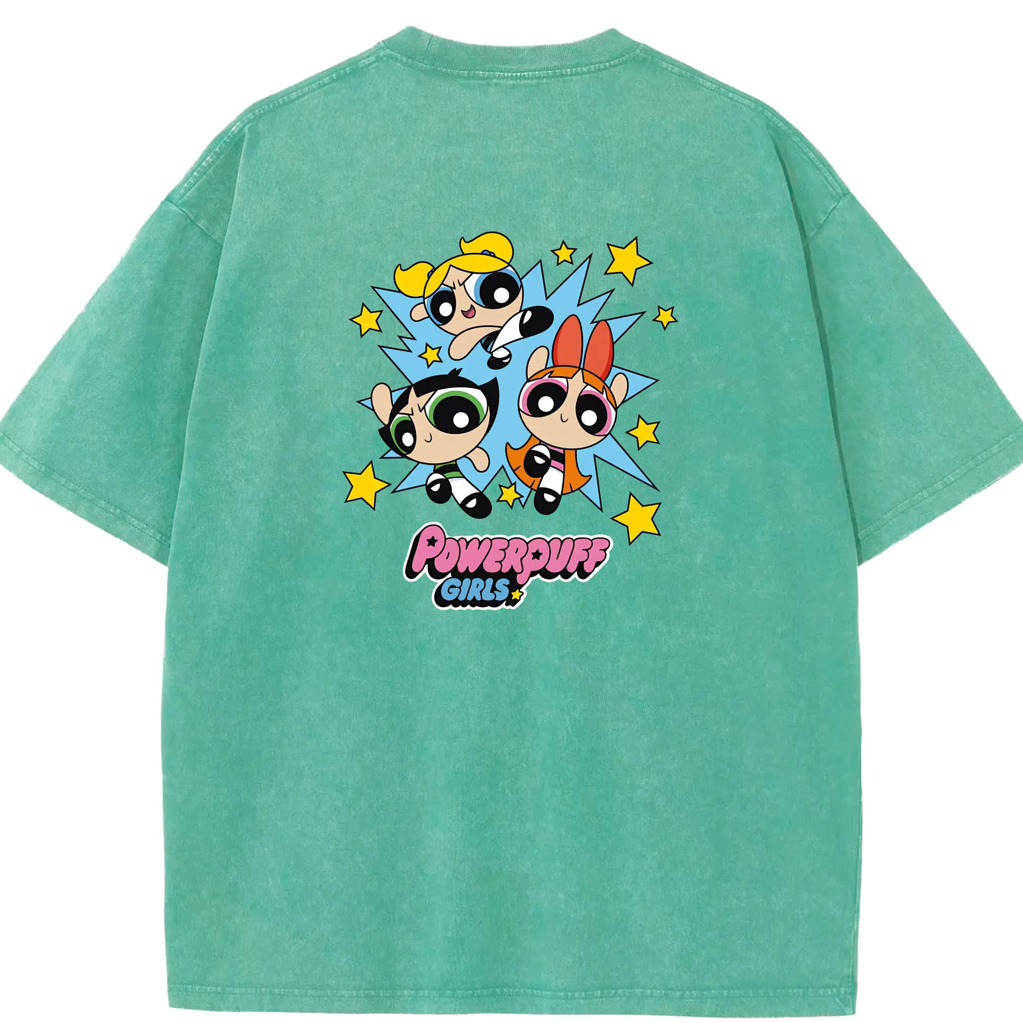 パワパフガールズ グッズ ブロッサム - 綿100% ヴィンテージ風 半袖Tシャツ ・ フロントプリント ・ 柔らか肌触り ・ 通気性 快適 ・ スポーツ カジュアル 外出用