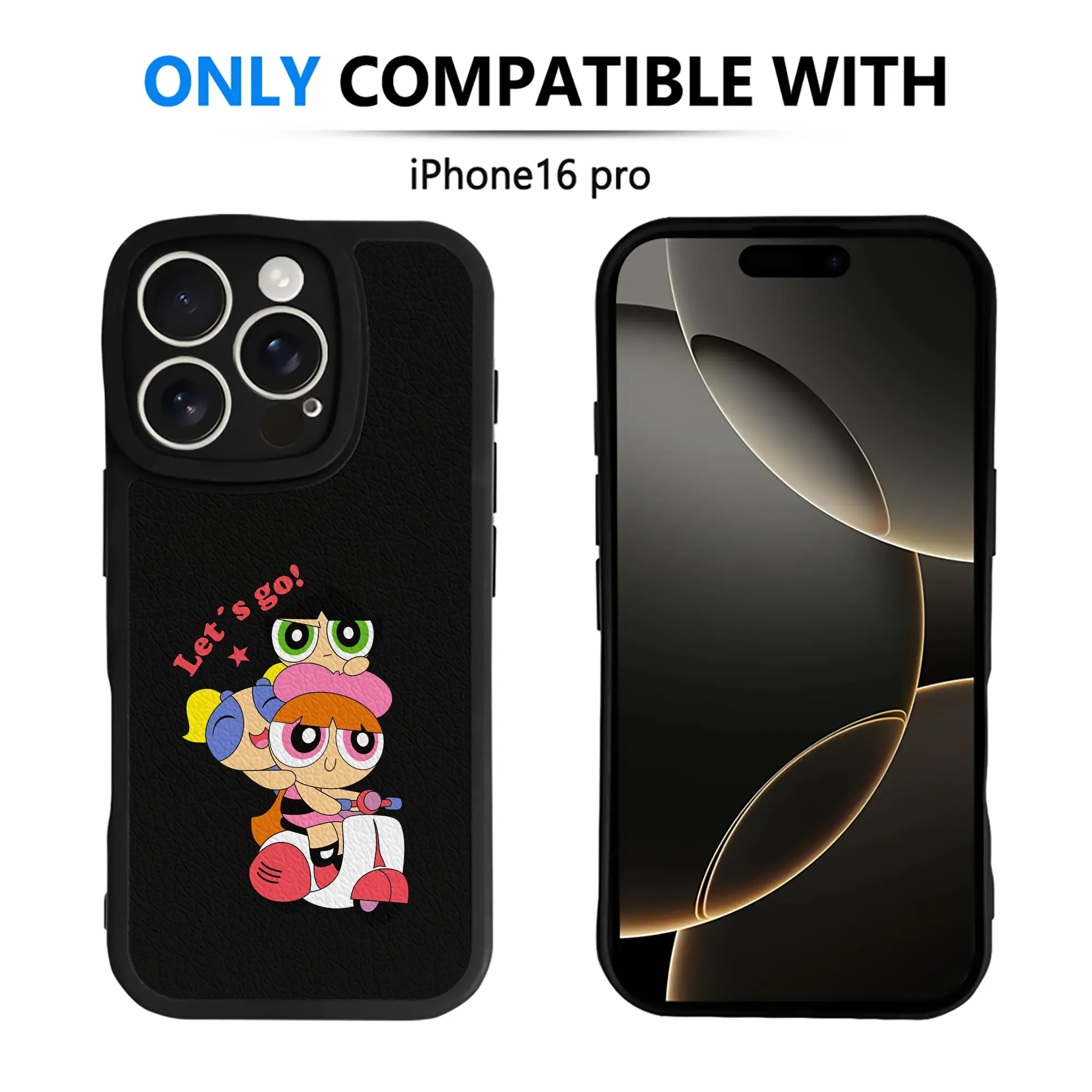 パワパフガールズ グッズ ブロッサム - IPhone 16シリーズ対応 ・ シリコンスマホケース ・ レザー調 ・ 高精度フィット ・ 耐衝撃 ・ ワイヤレス充電対応 ・ 精密カット
