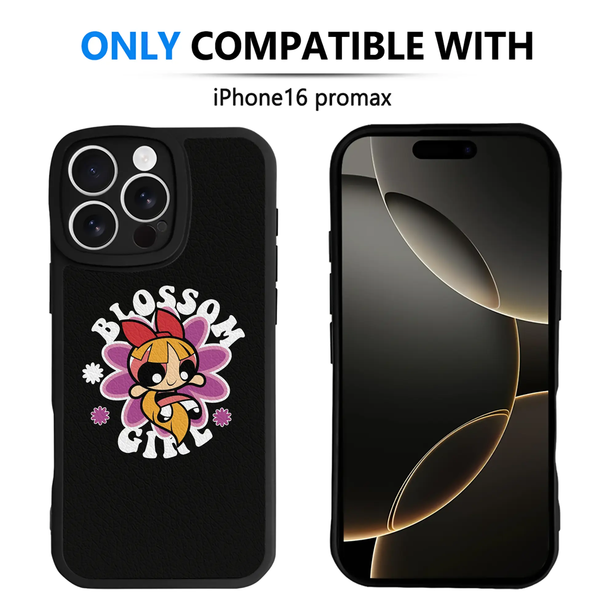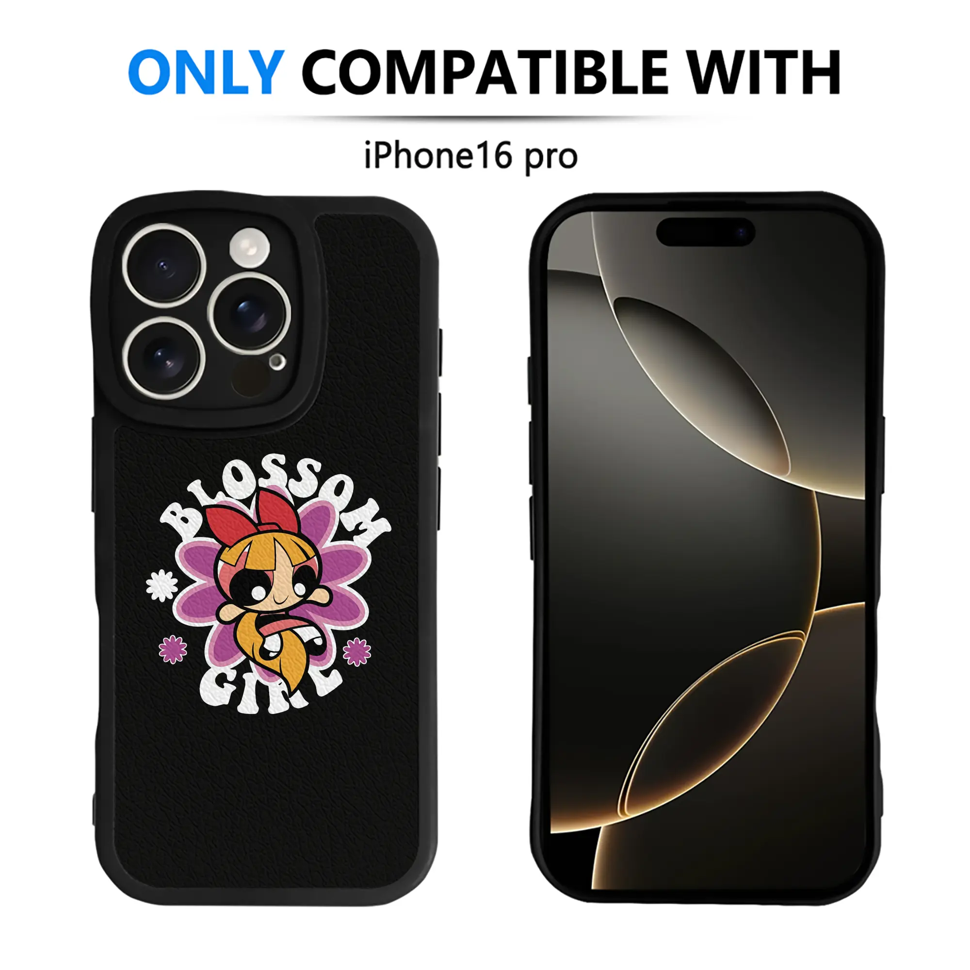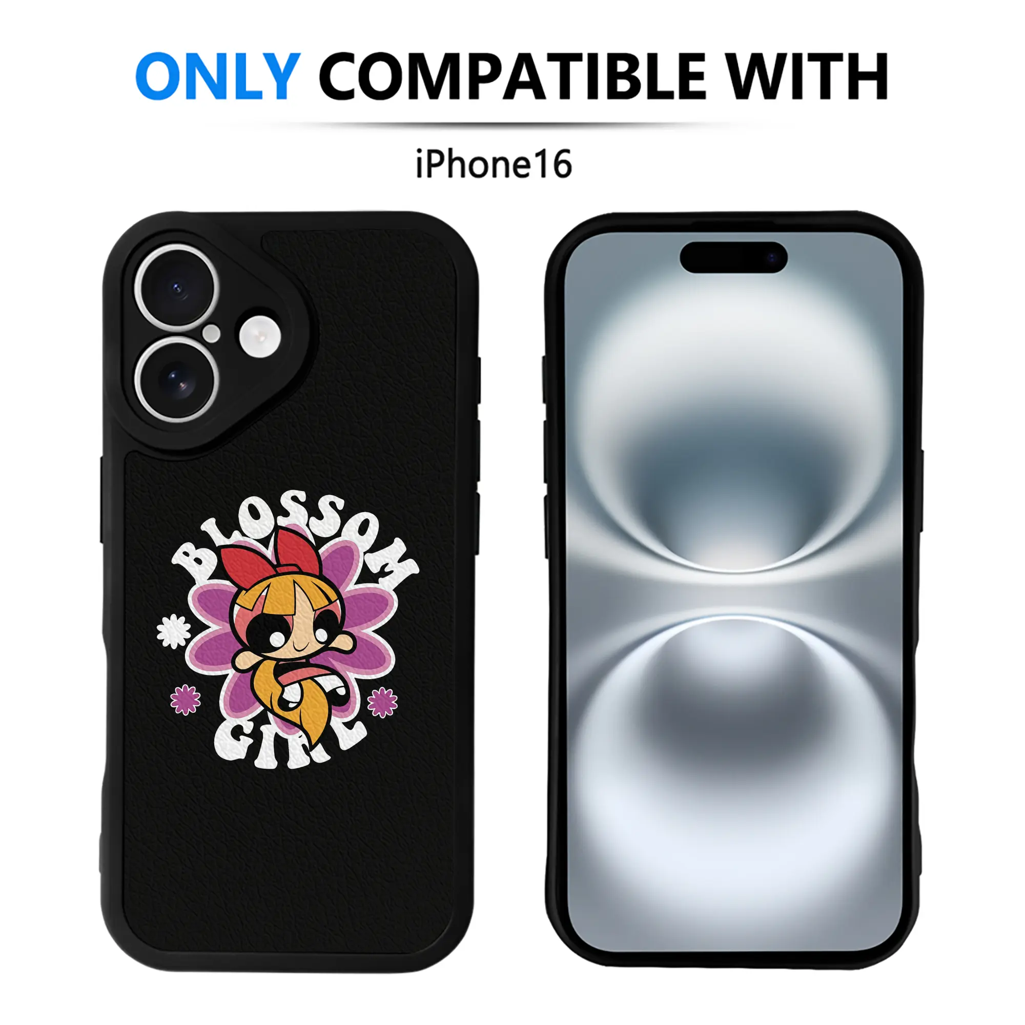 パワパフガールズ グッズ ブロッサム - IPhone 16シリーズ対応 ・ シリコンスマホケース ・ レザー調 ・ 高精度フィット ・ 耐衝撃 ・ ワイヤレス充電対応 ・ 精密カット