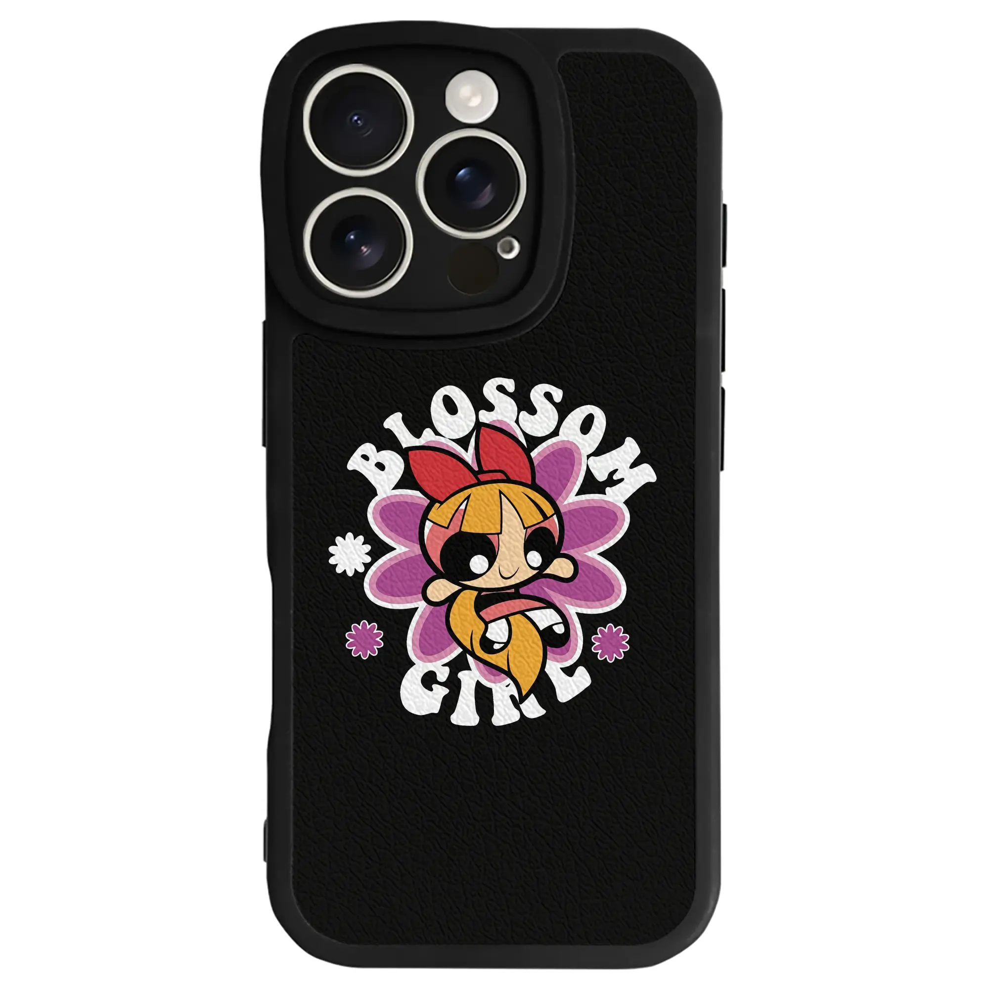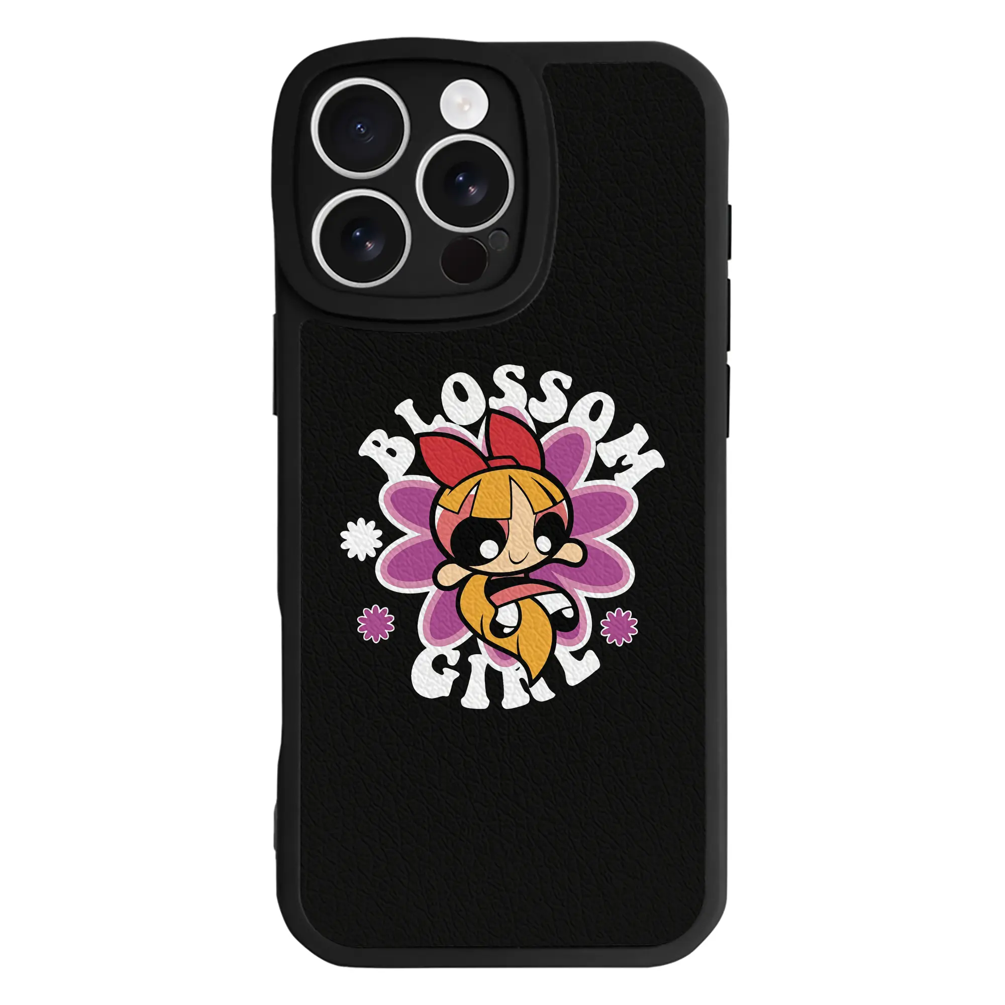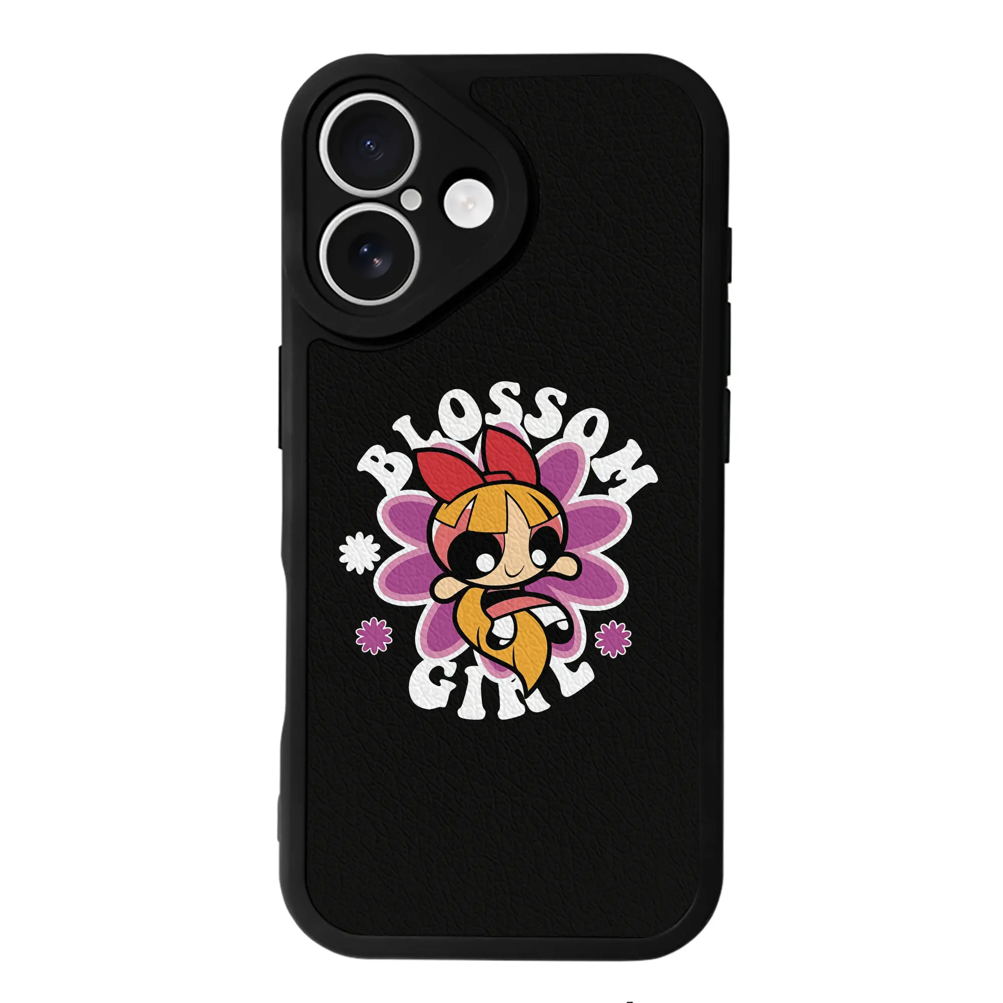 パワパフガールズ グッズ ブロッサム - IPhone 16シリーズ対応 ・ シリコンスマホケース ・ レザー調 ・ 高精度フィット ・ 耐衝撃 ・ ワイヤレス充電対応 ・ 精密カット