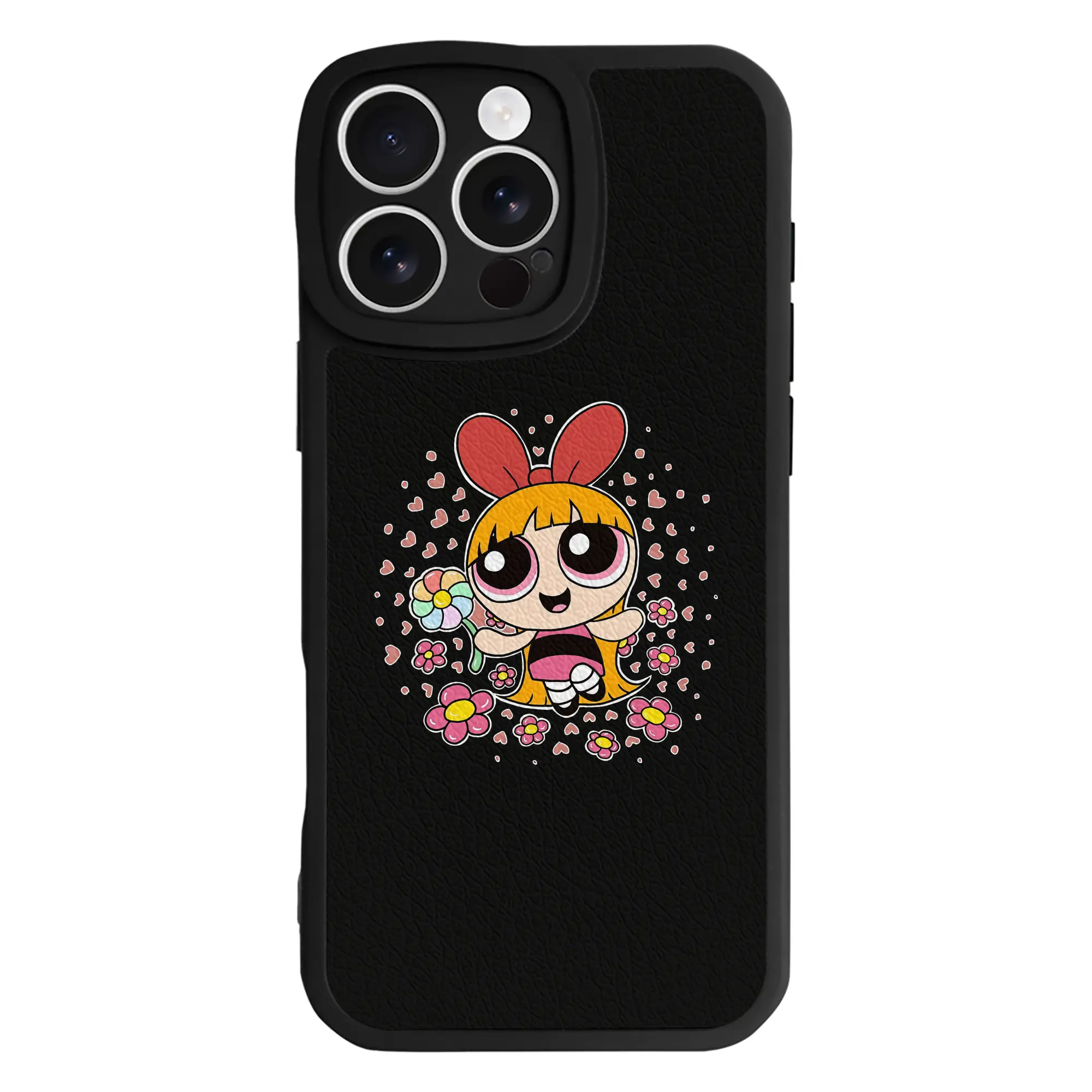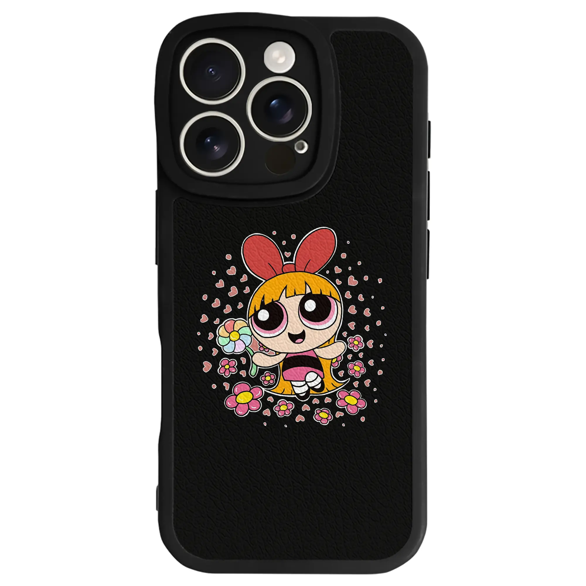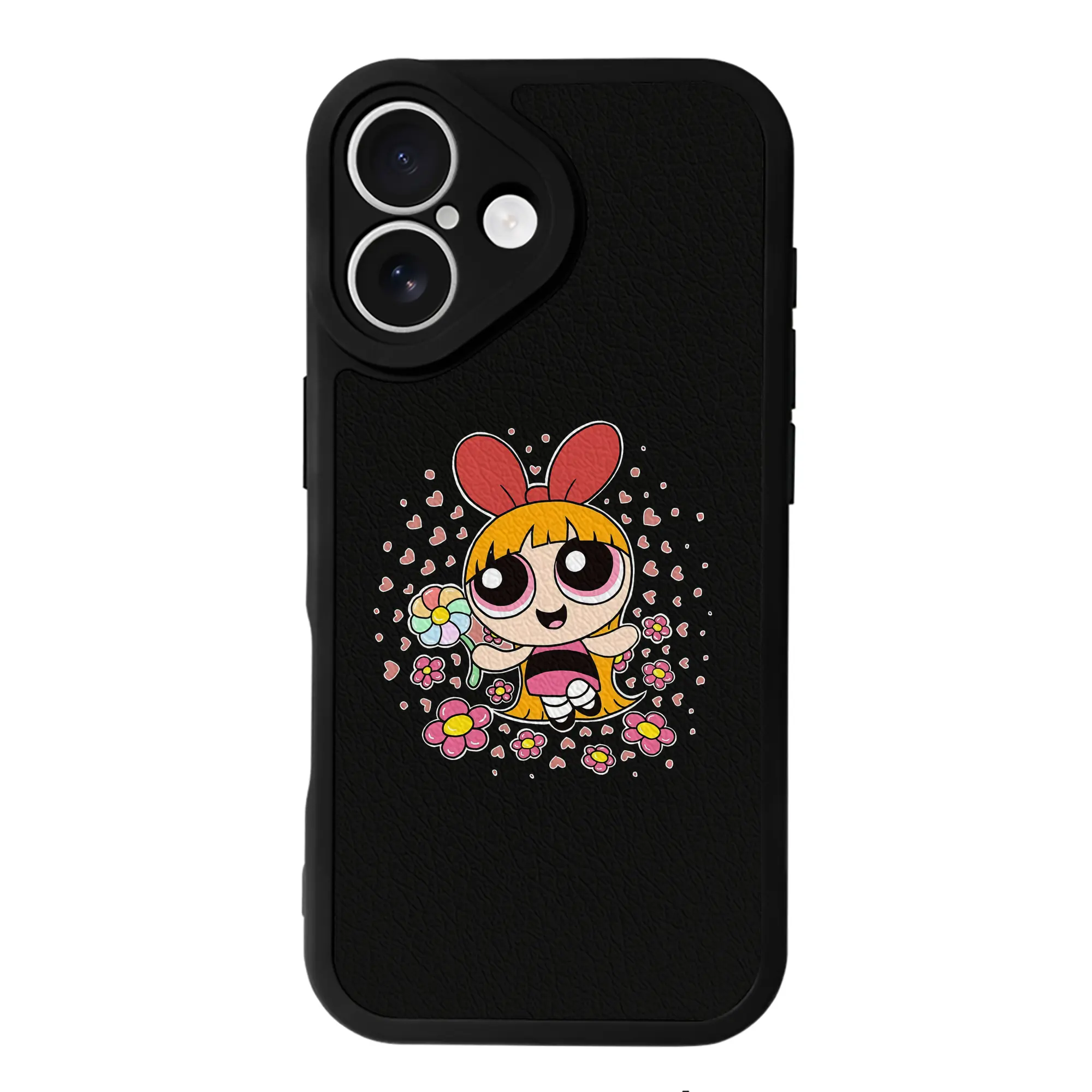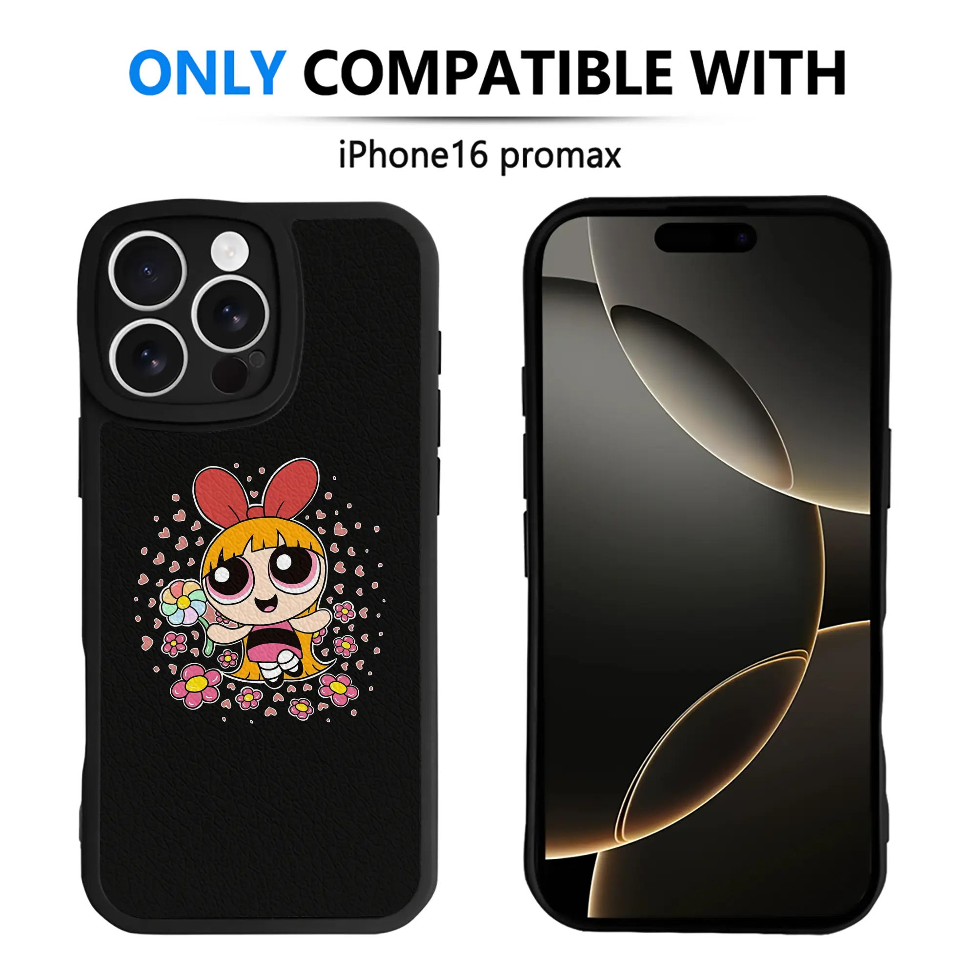 パワパフガールズ グッズ ブロッサム - IPhone 16シリーズ対応 ・ シリコンスマホケース ・ レザー調 ・ 高精度フィット ・ 耐衝撃 ・ ワイヤレス充電対応 ・ 精密カット