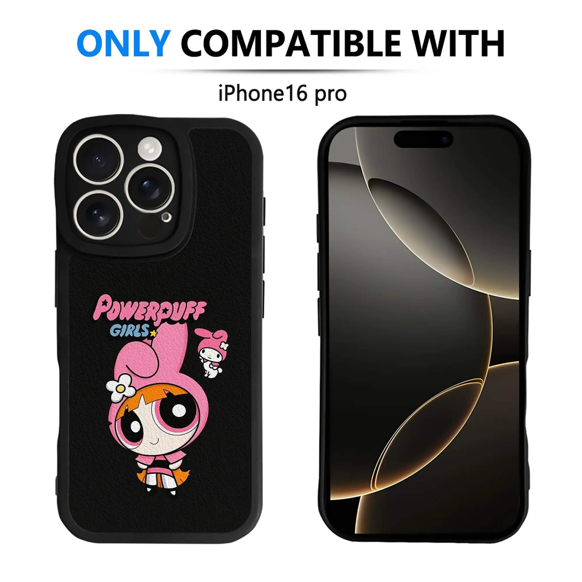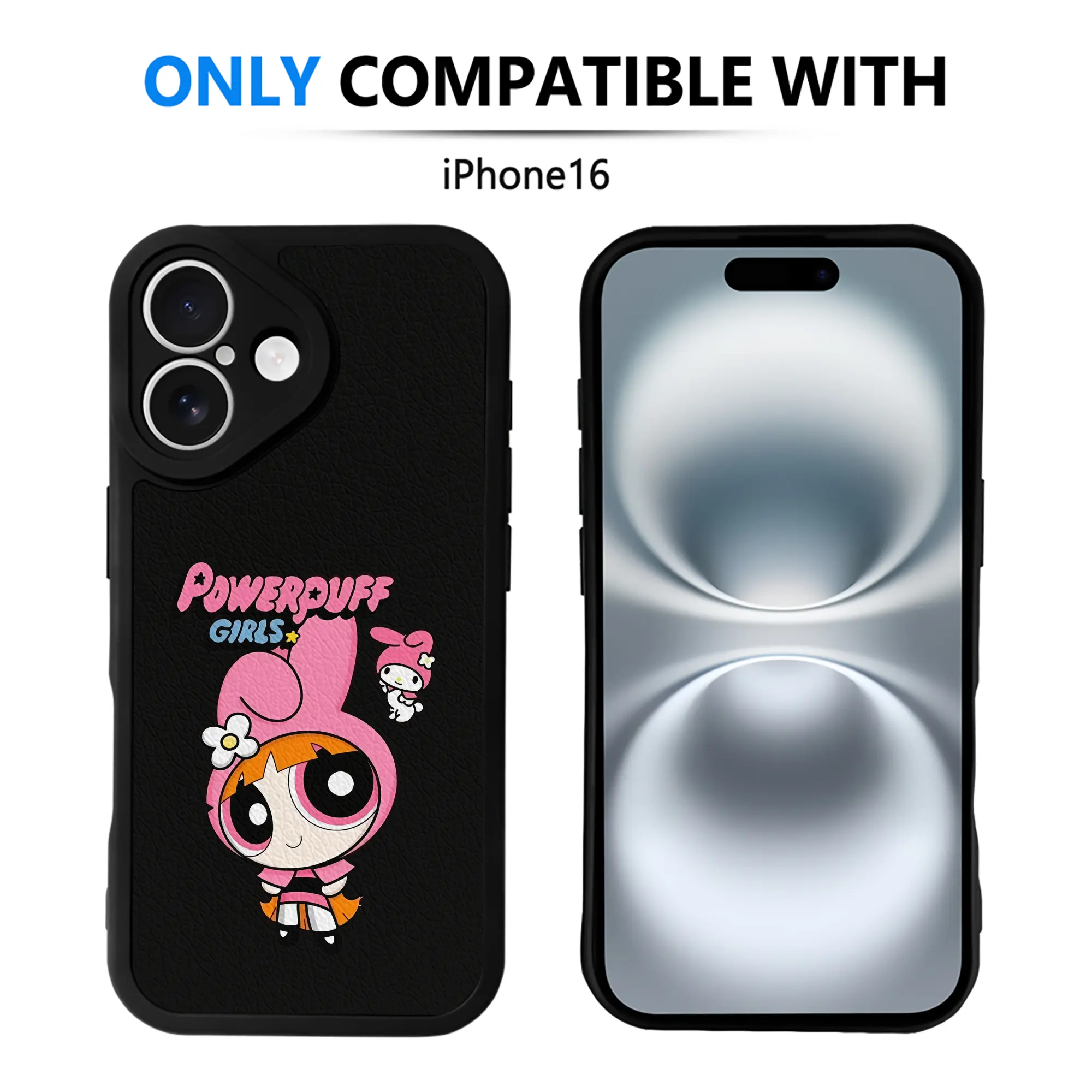 パワパフガールズ グッズ ブロッサム - IPhone 16シリーズ対応 ・ シリコンスマホケース ・ レザー調 ・ 高精度フィット ・ 耐衝撃 ・ ワイヤレス充電対応 ・ 精密カット