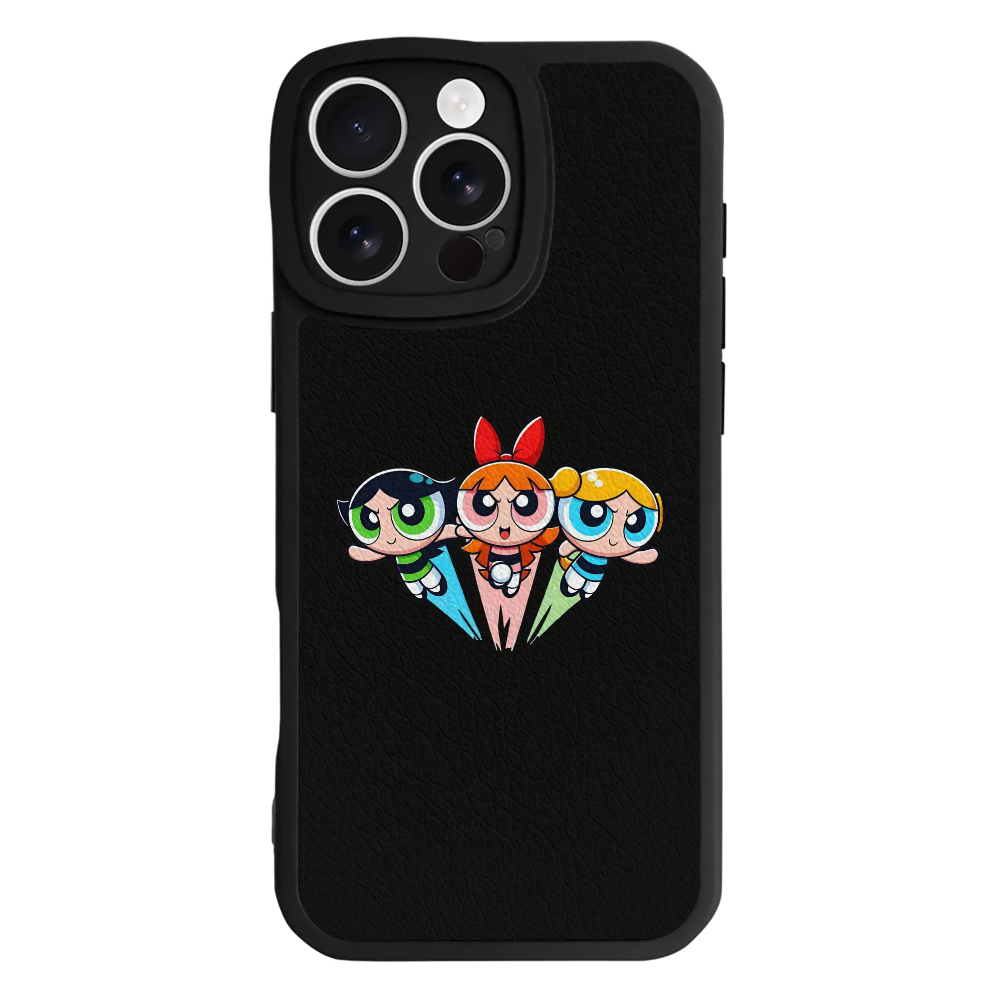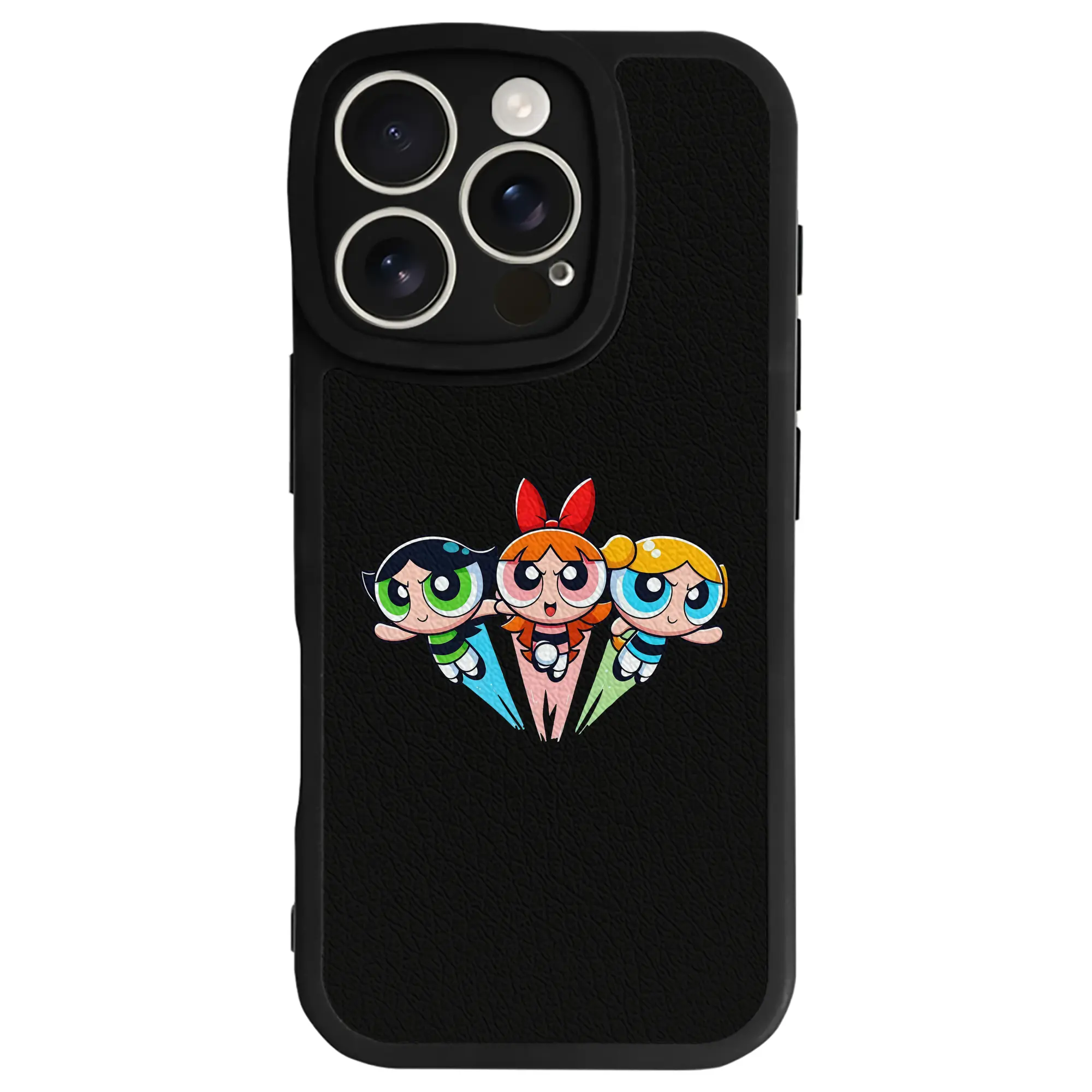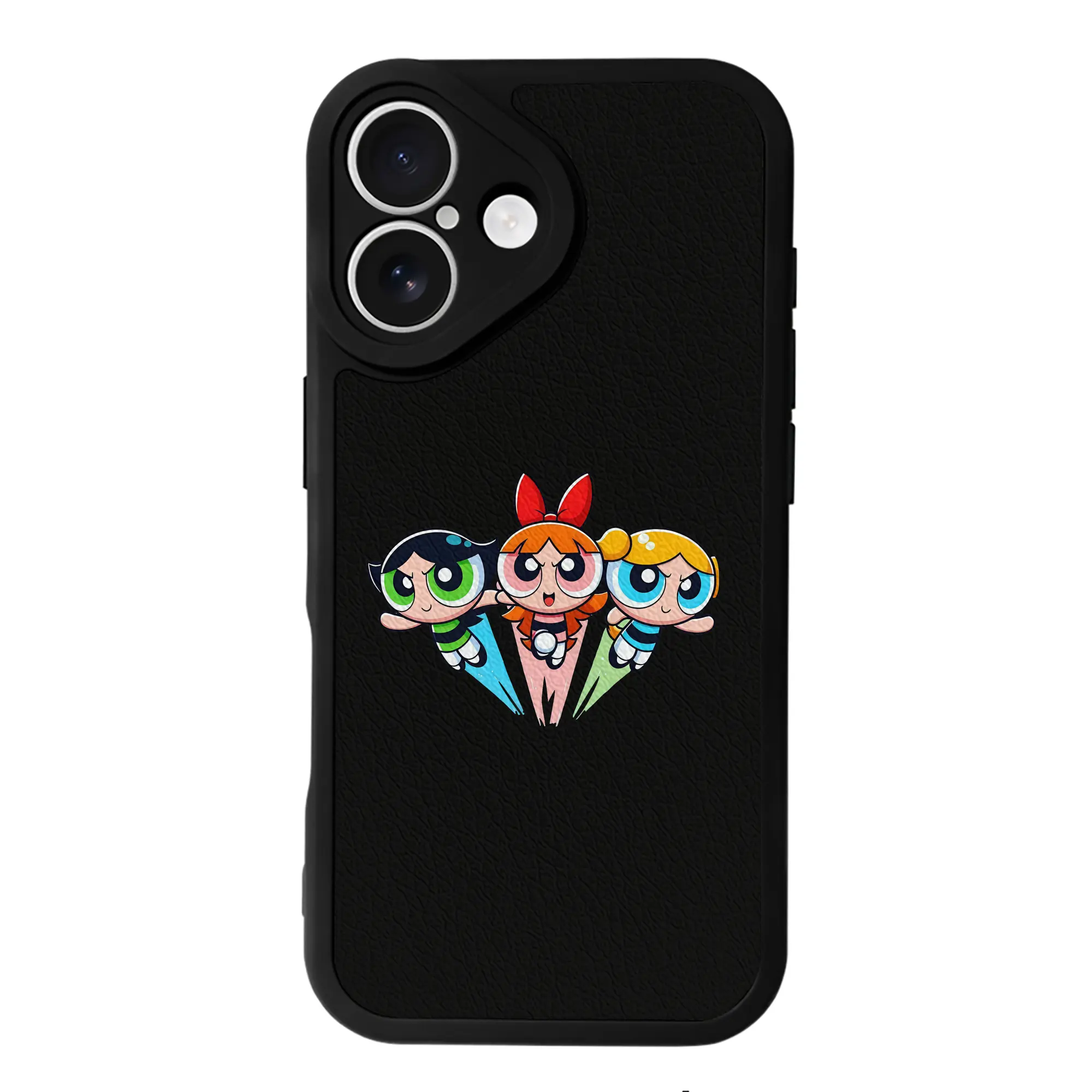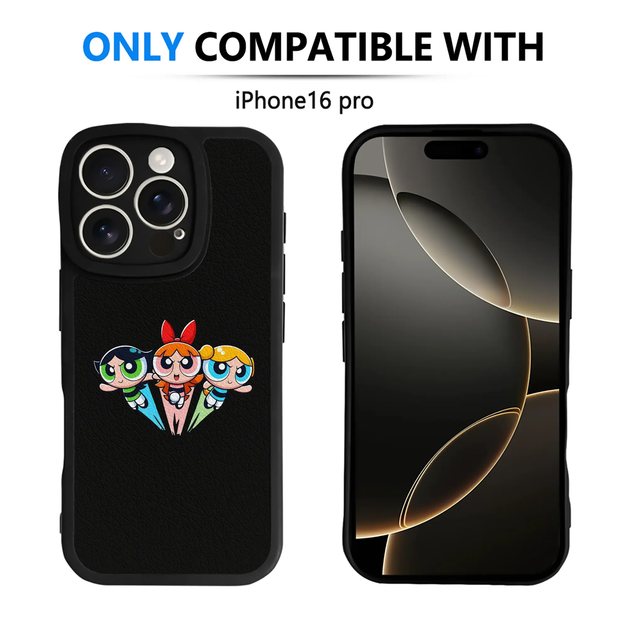 パワパフガールズ グッズ バターカップ - IPhone 16シリーズ対応 ・ シリコンスマホケース ・ レザー調 ・ 高精度フィット ・ 耐衝撃 ・ ワイヤレス充電対応 ・ 精密カット