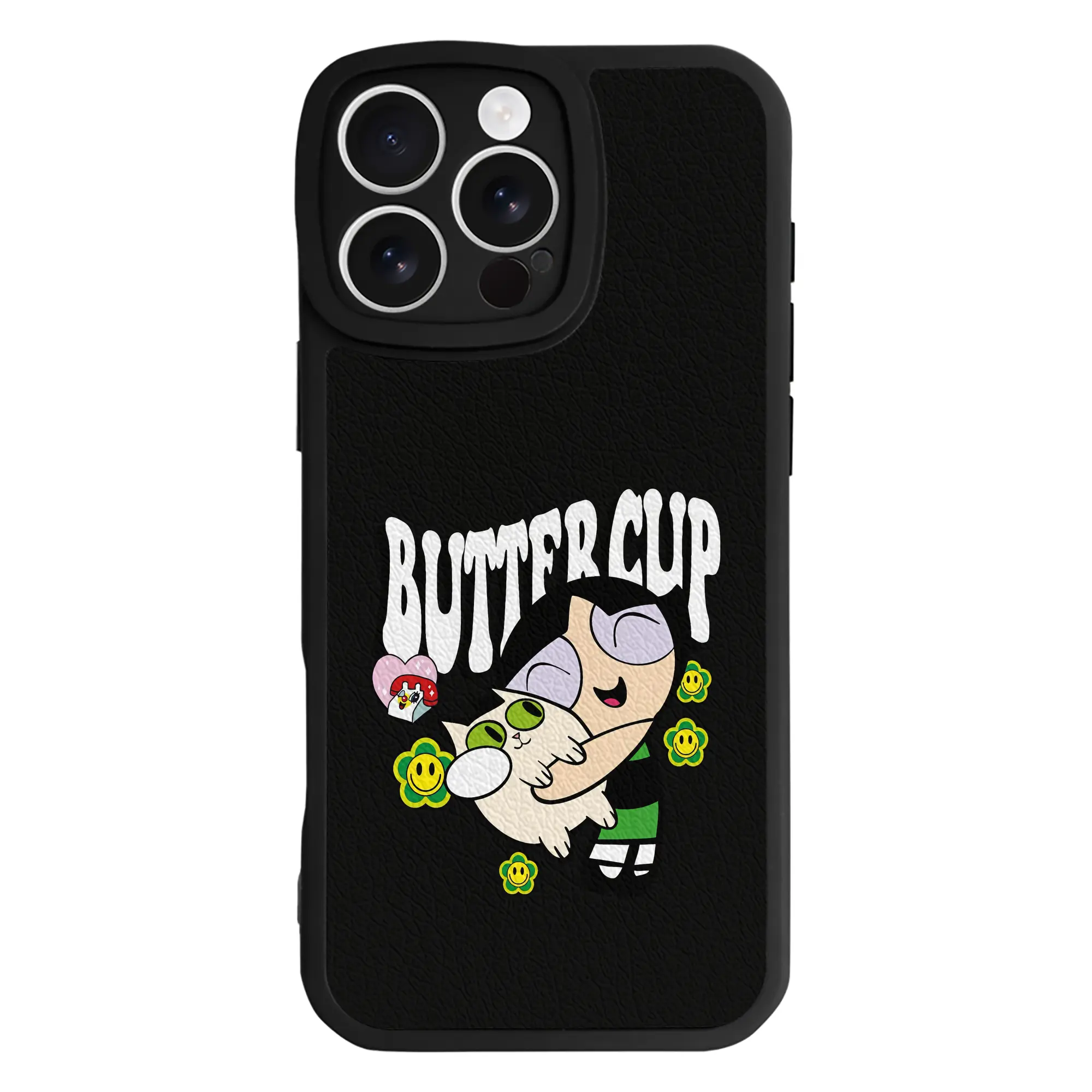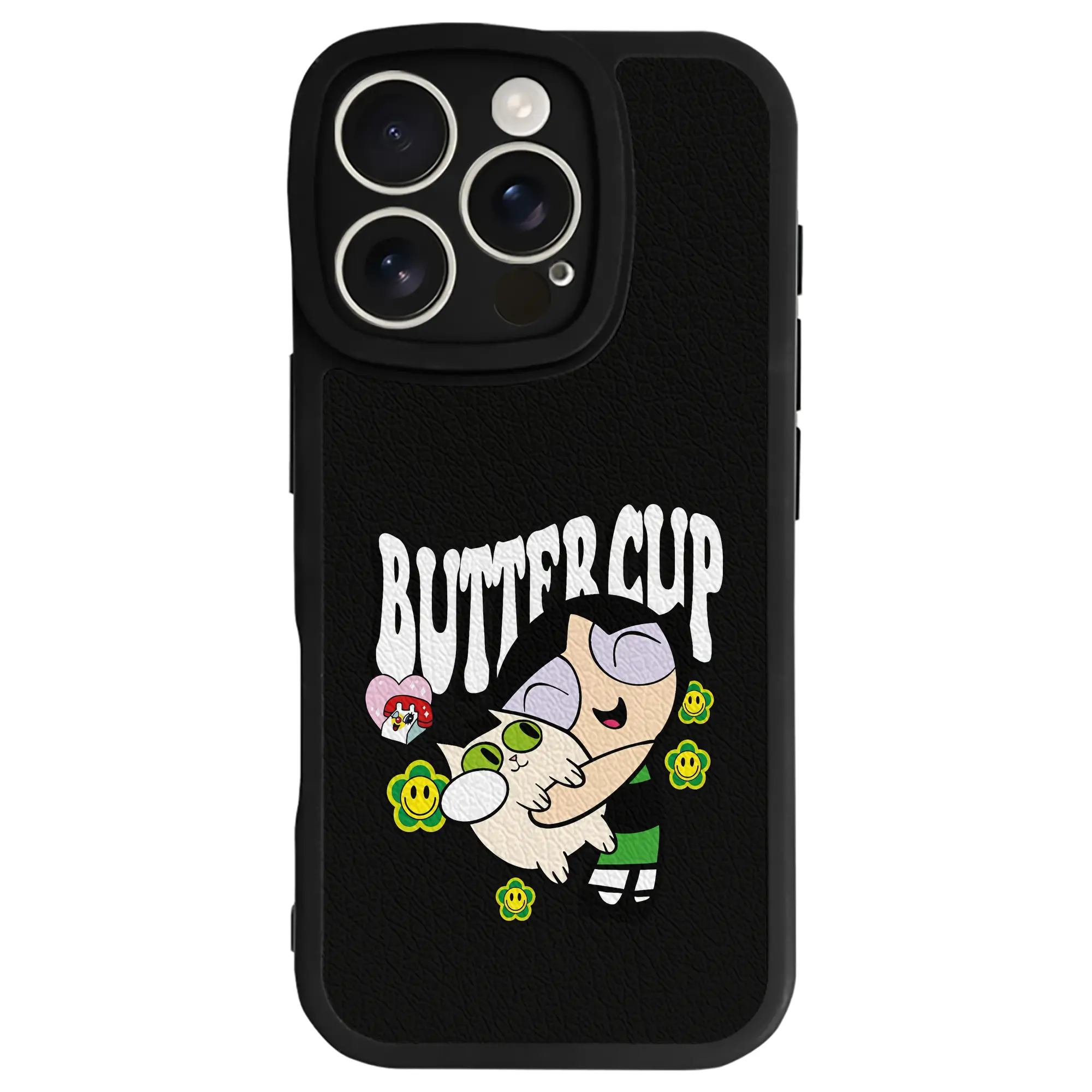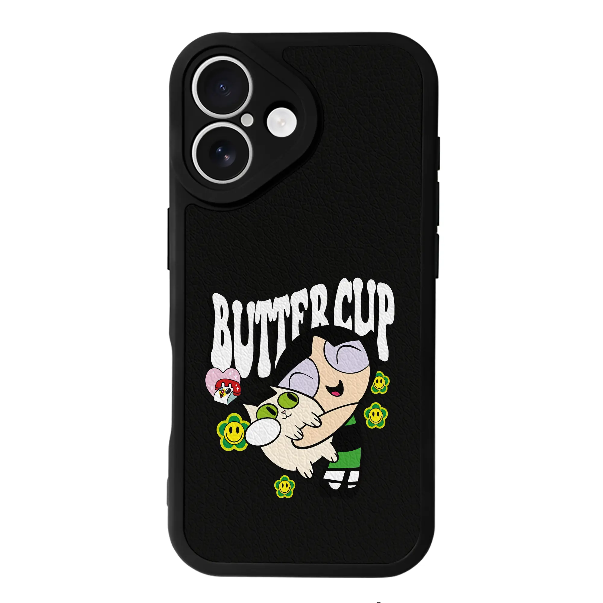 パワパフガールズ グッズ バターカップ - IPhone 16シリーズ対応 ・ シリコンスマホケース ・ レザー調 ・ 高精度フィット ・ 耐衝撃 ・ ワイヤレス充電対応 ・ 精密カット