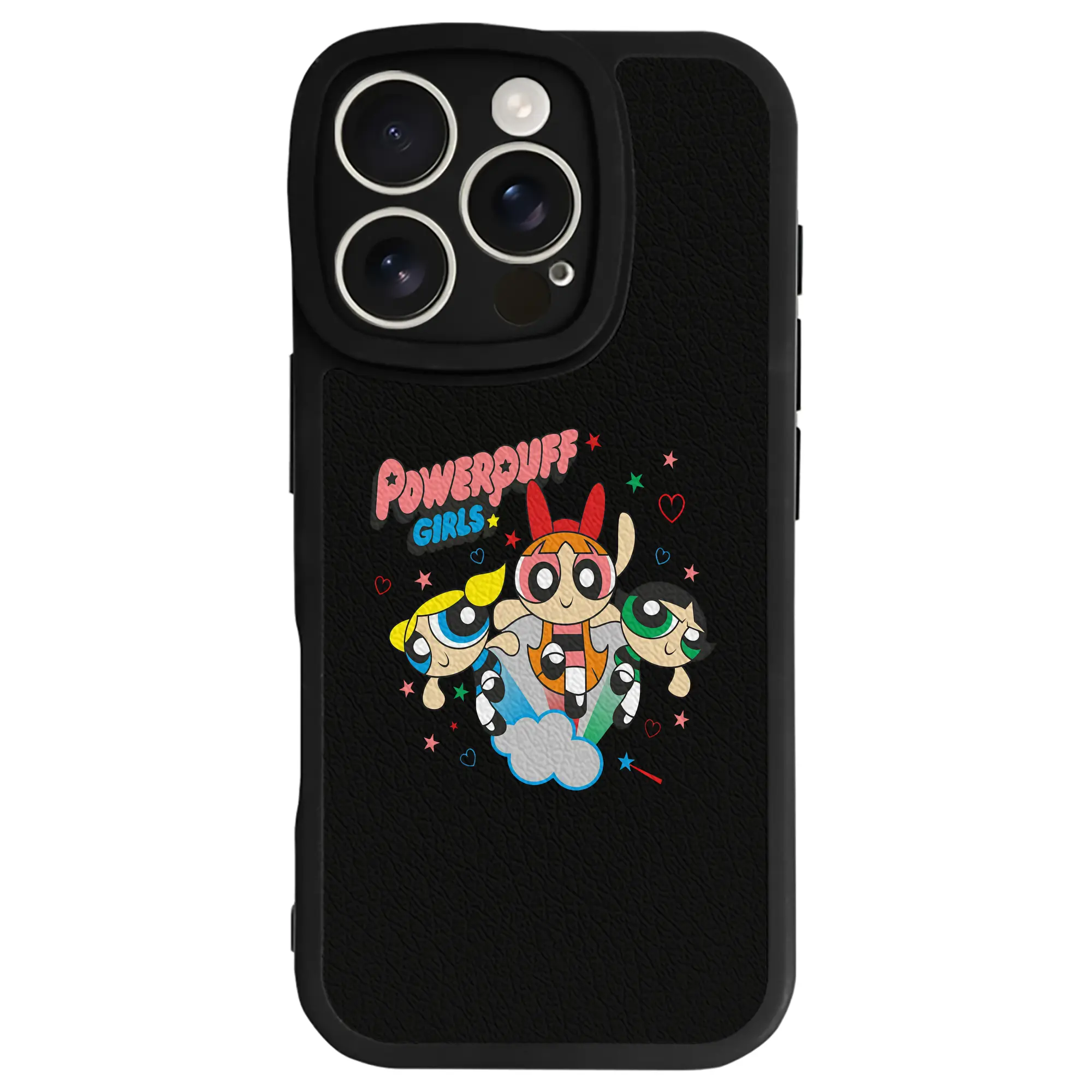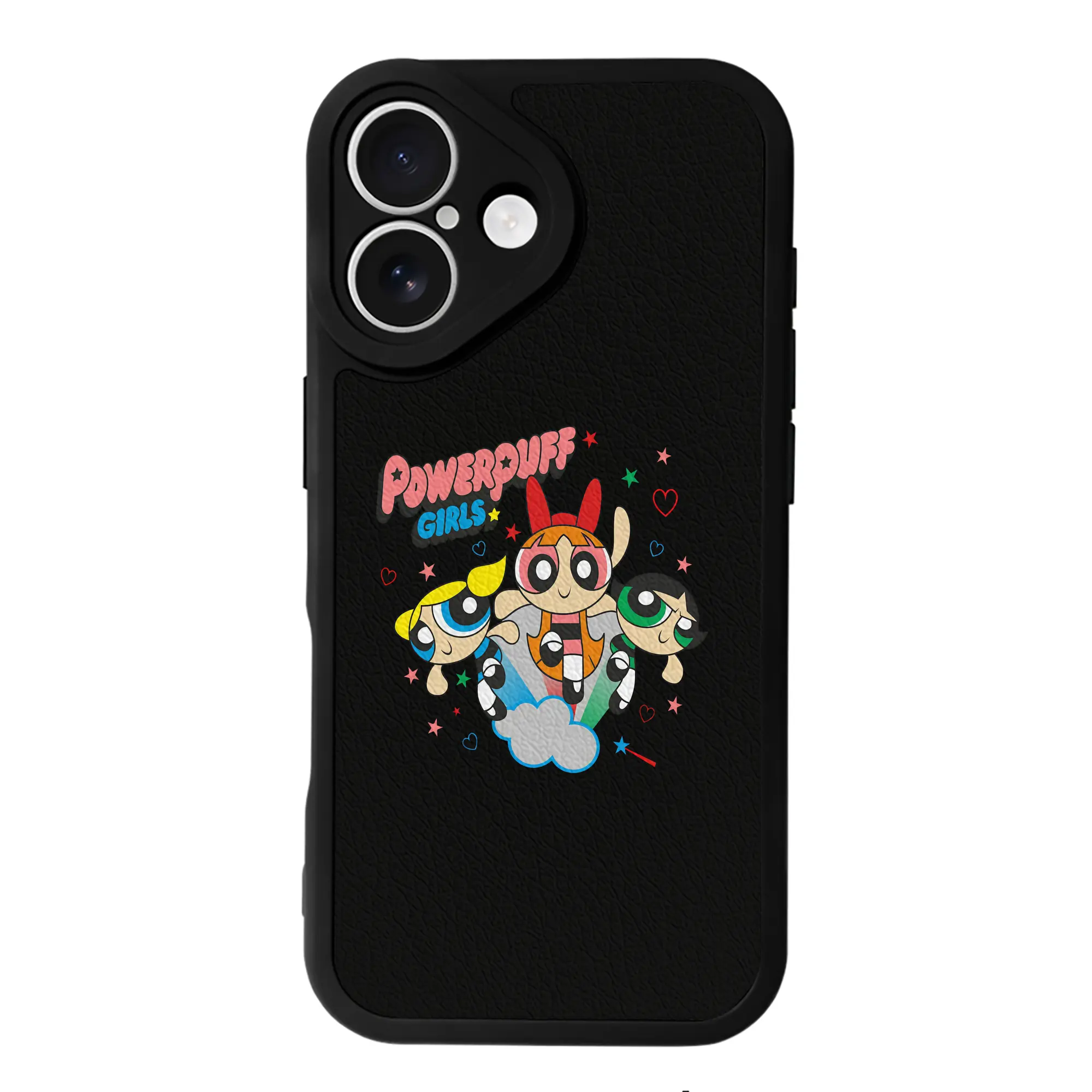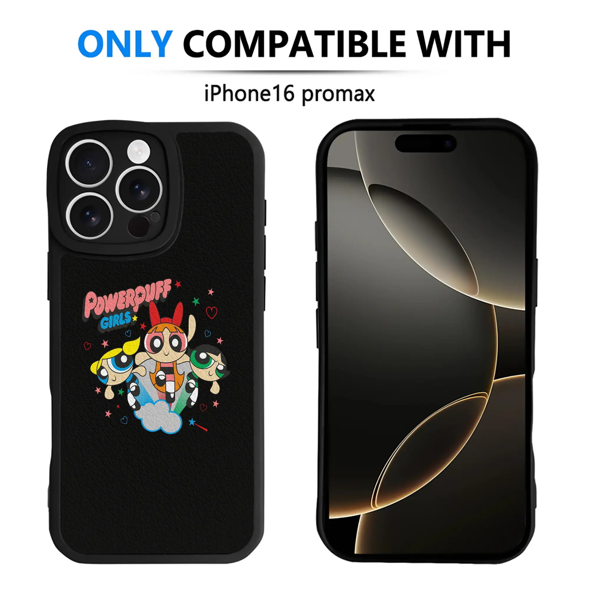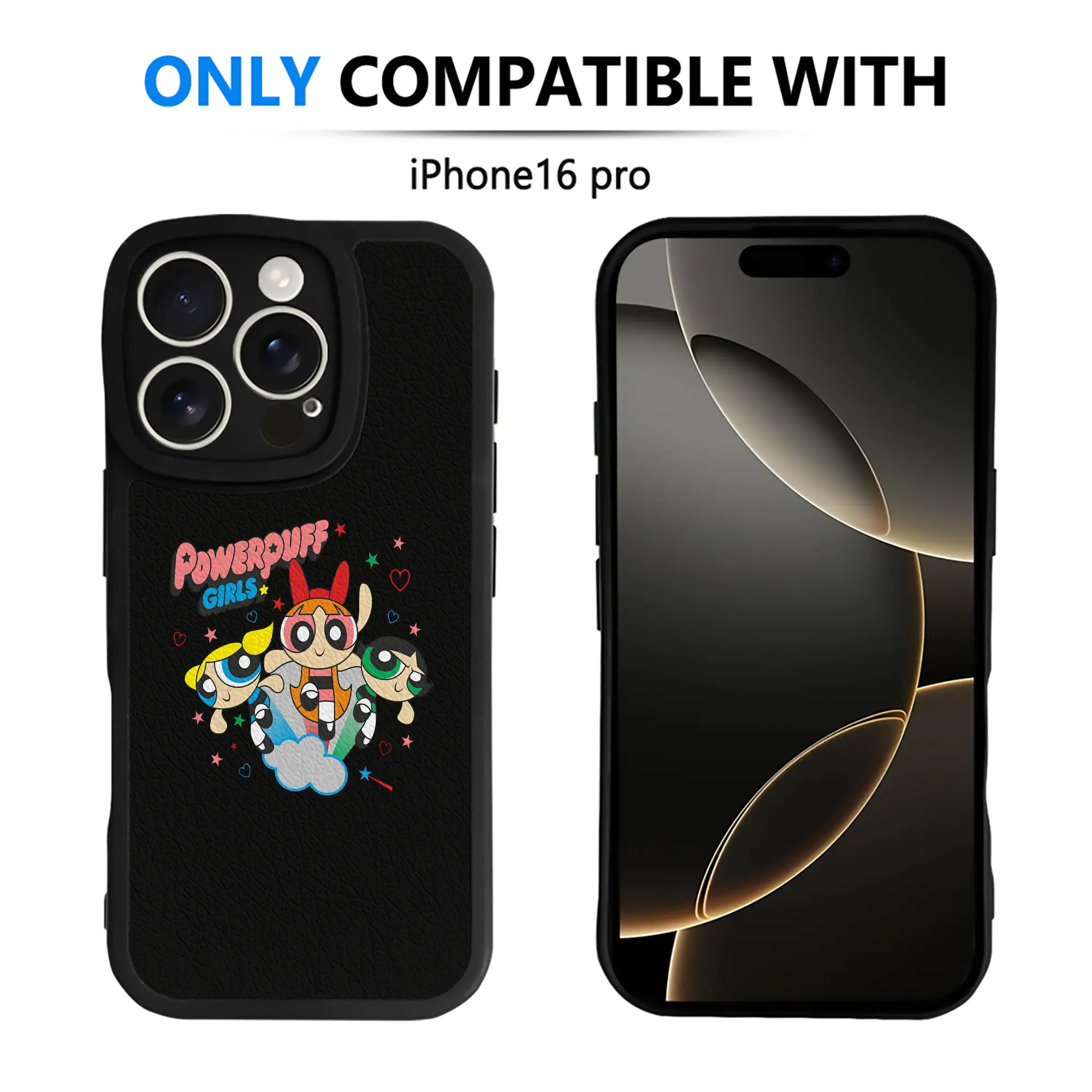 パワパフガールズ グッズ バターカップ - IPhone 16シリーズ対応 ・ シリコンスマホケース ・ レザー調 ・ 高精度フィット ・ 耐衝撃 ・ ワイヤレス充電対応 ・ 精密カット