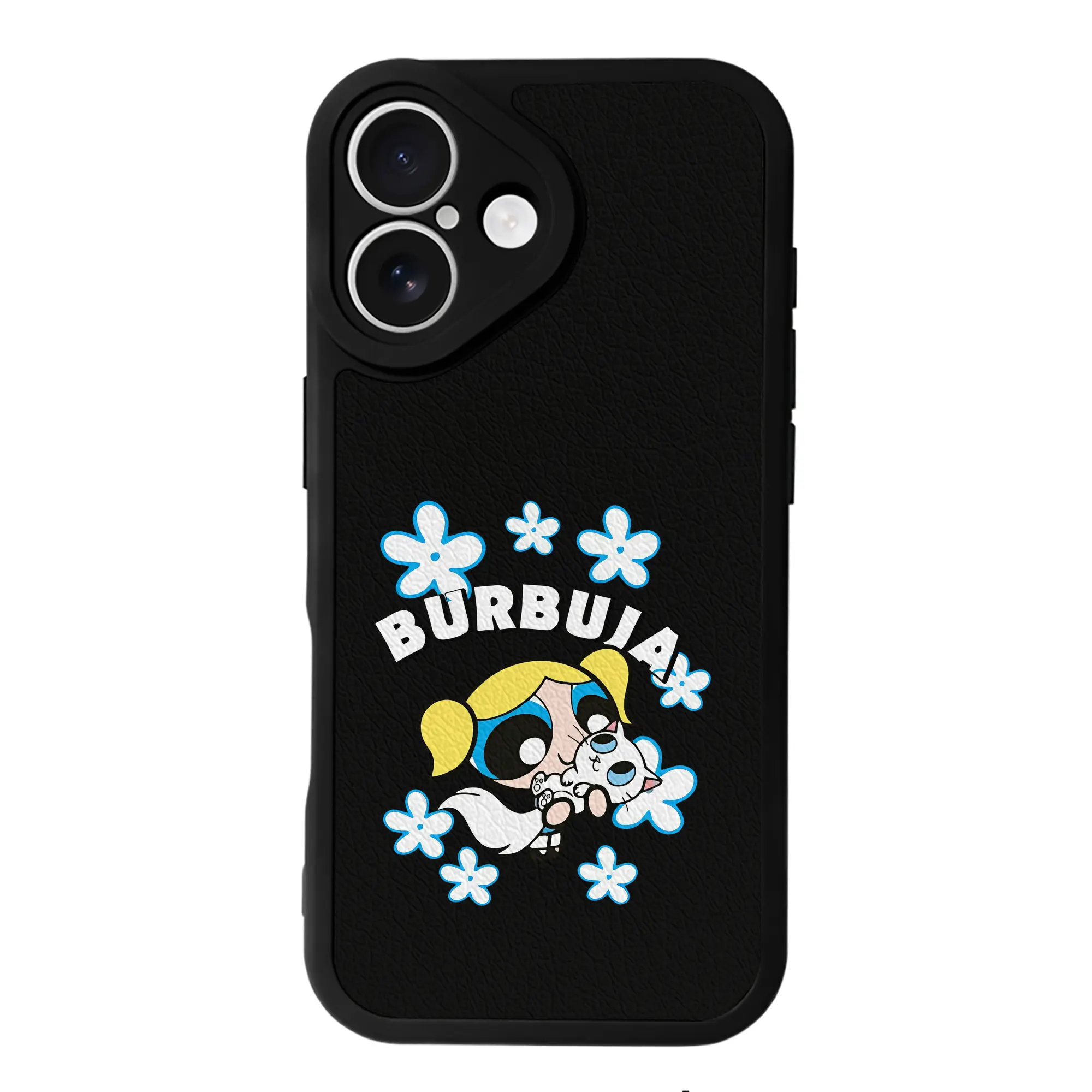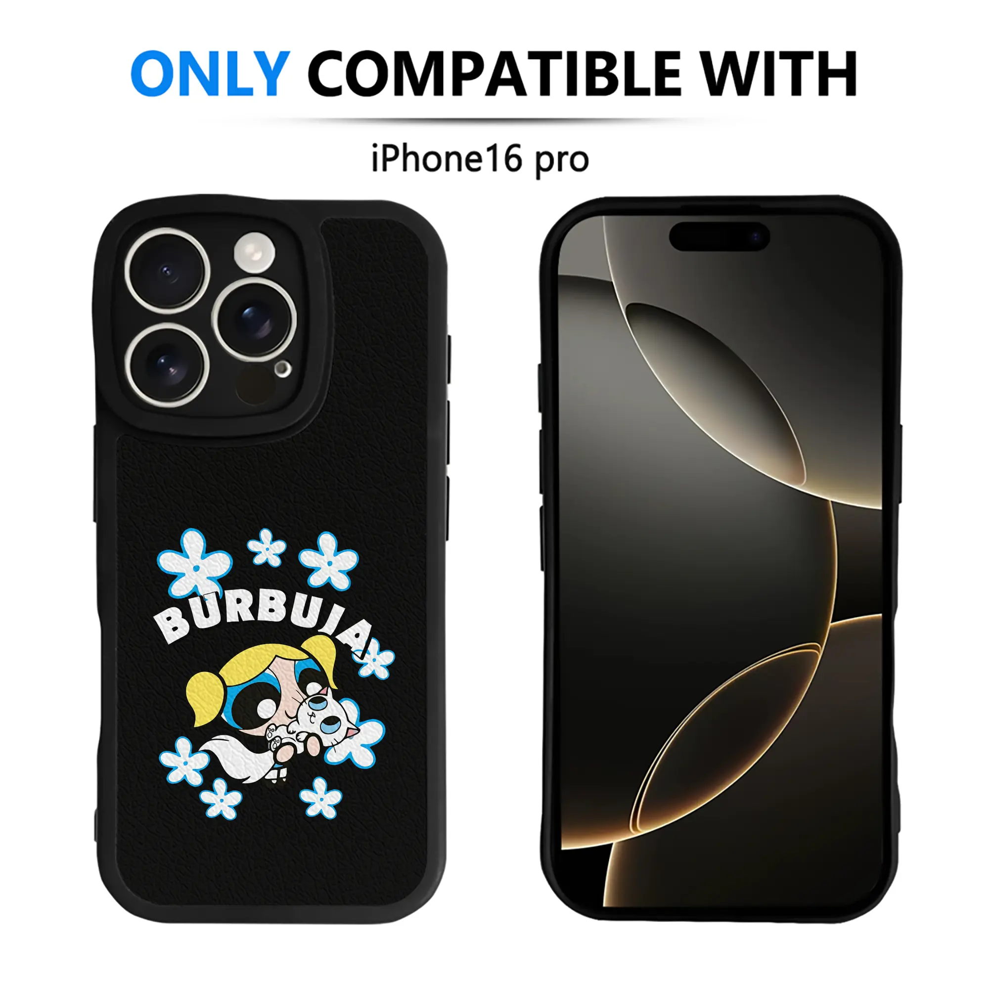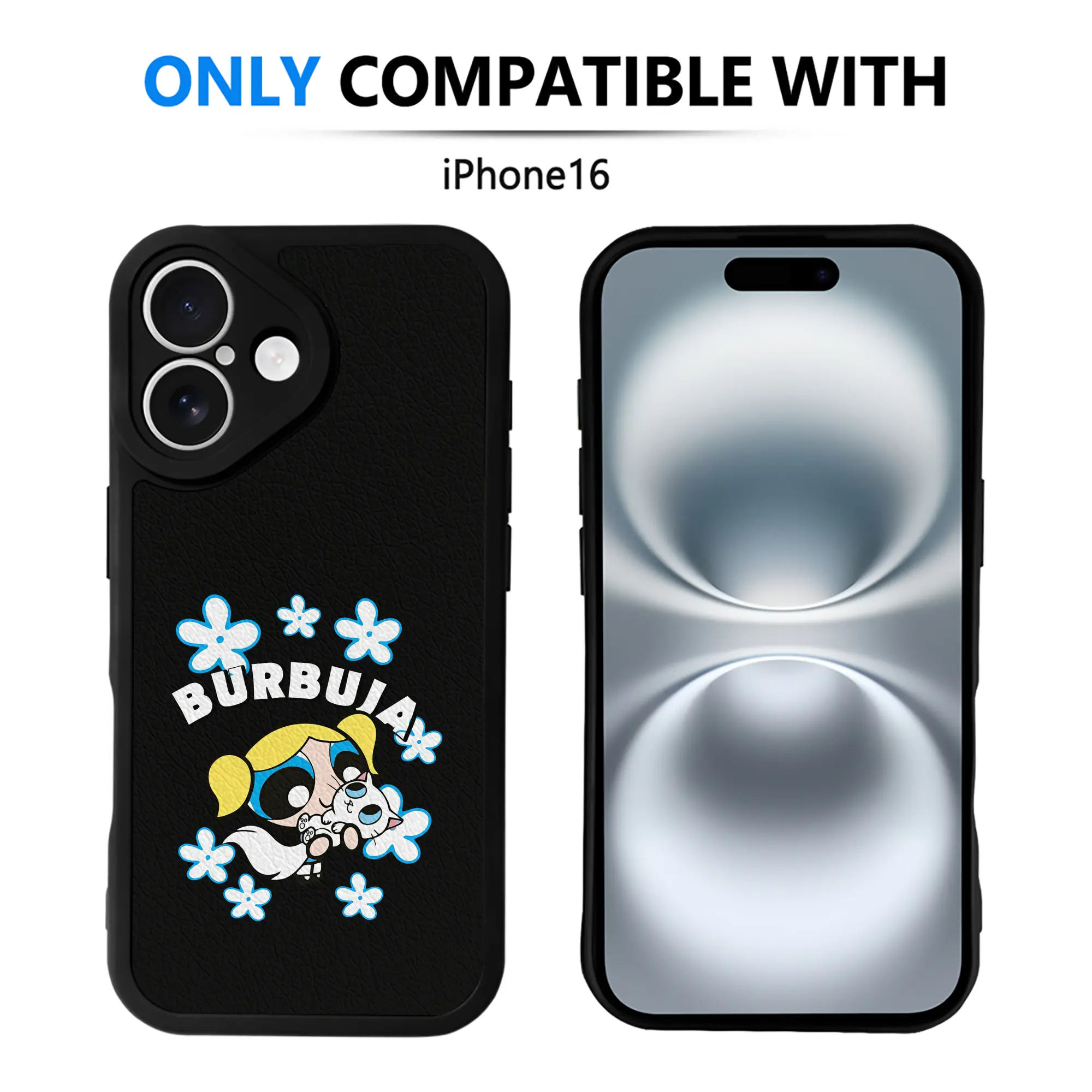 パワパフガールズ グッズ バブルス - IPhone 16シリーズ対応 ・ シリコンスマホケース ・ レザー調 ・ 高精度フィット ・ 耐衝撃 ・ ワイヤレス充電対応 ・ 精密カット