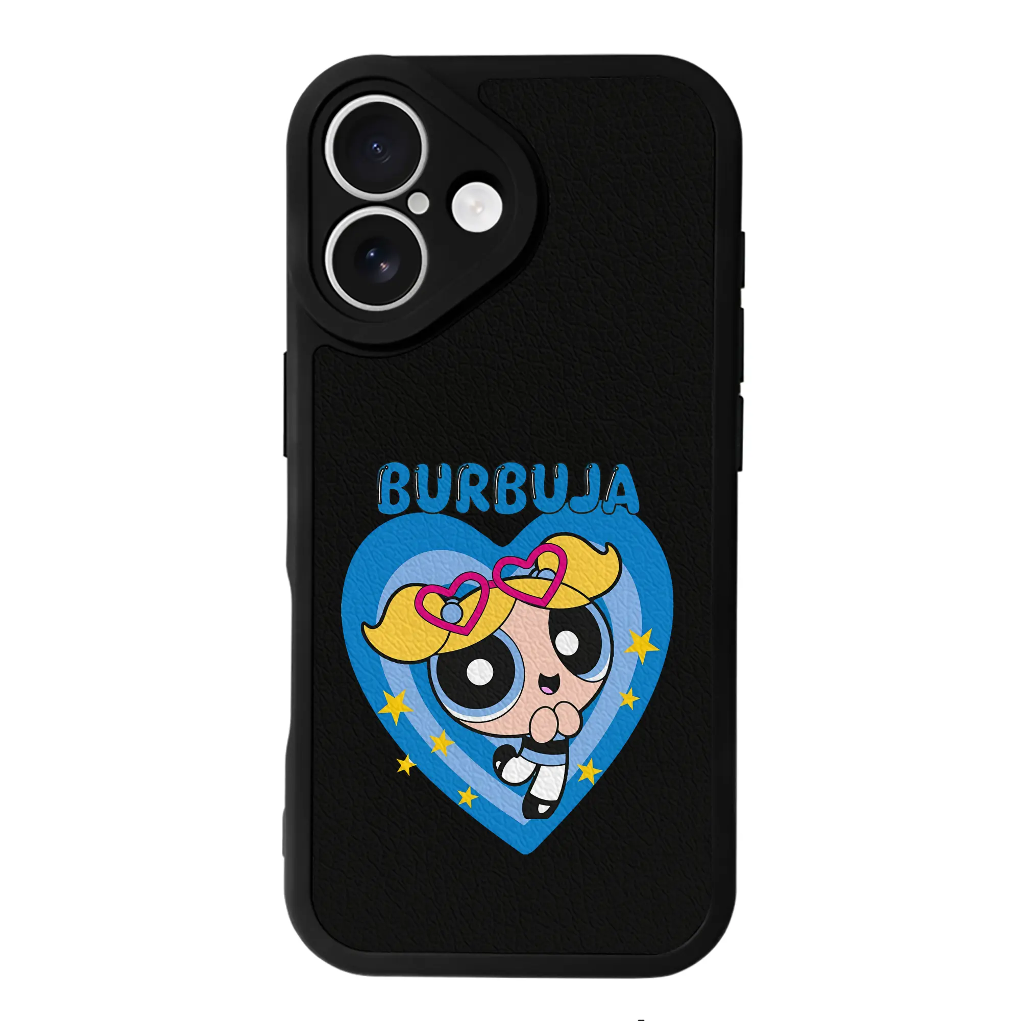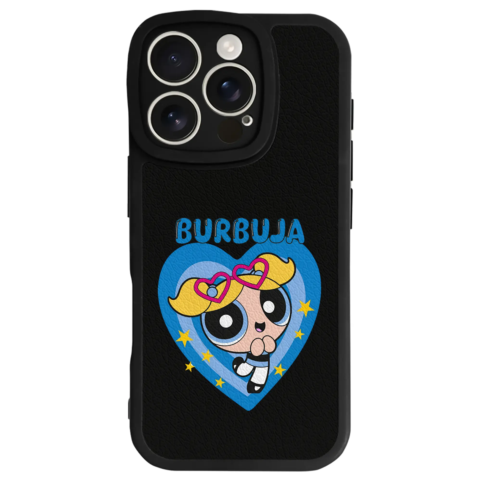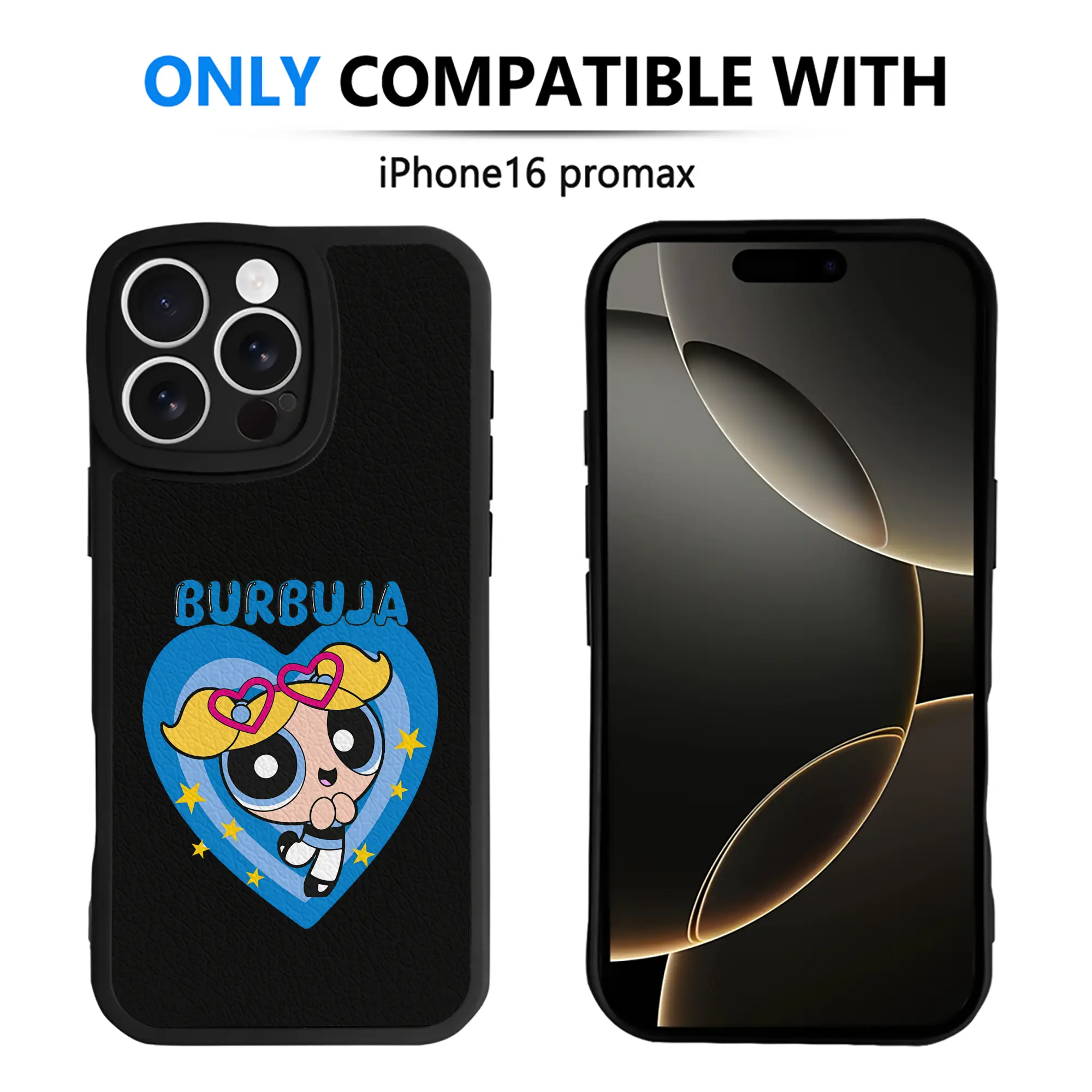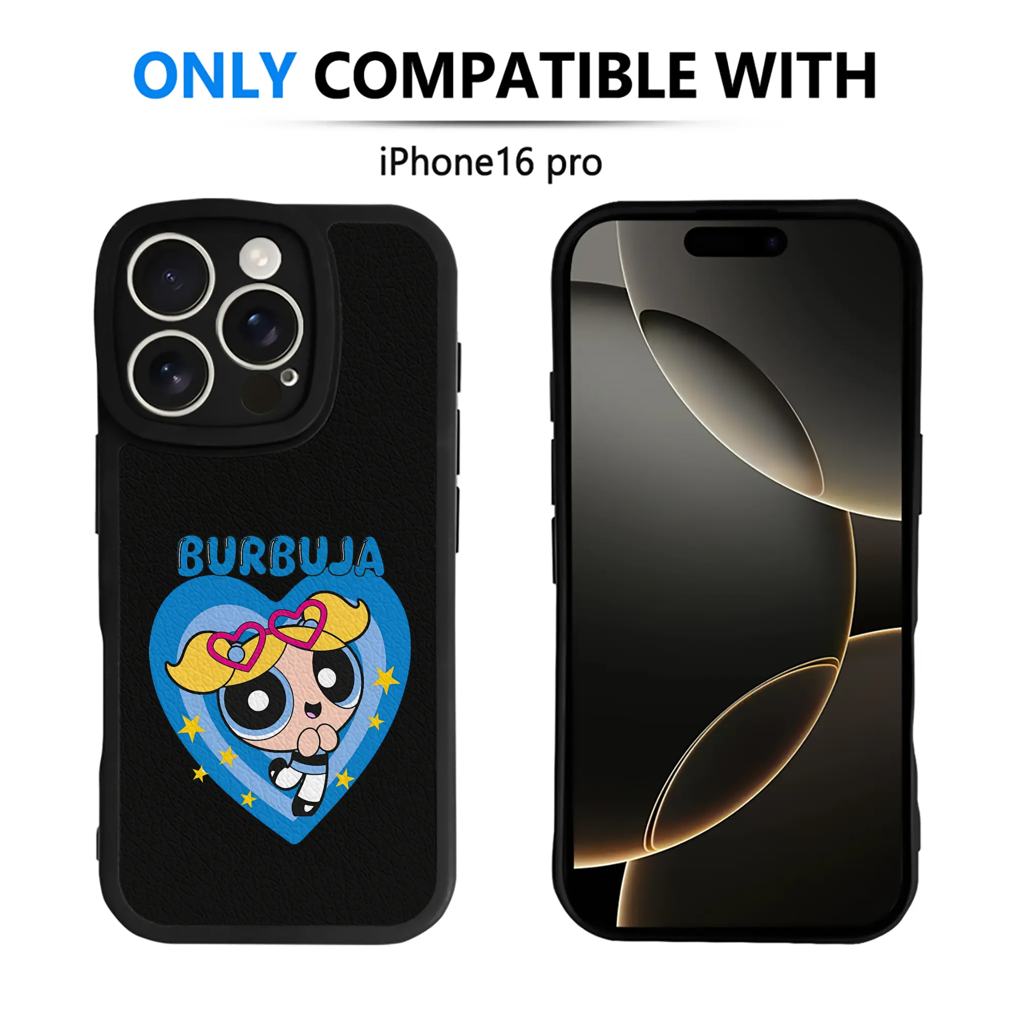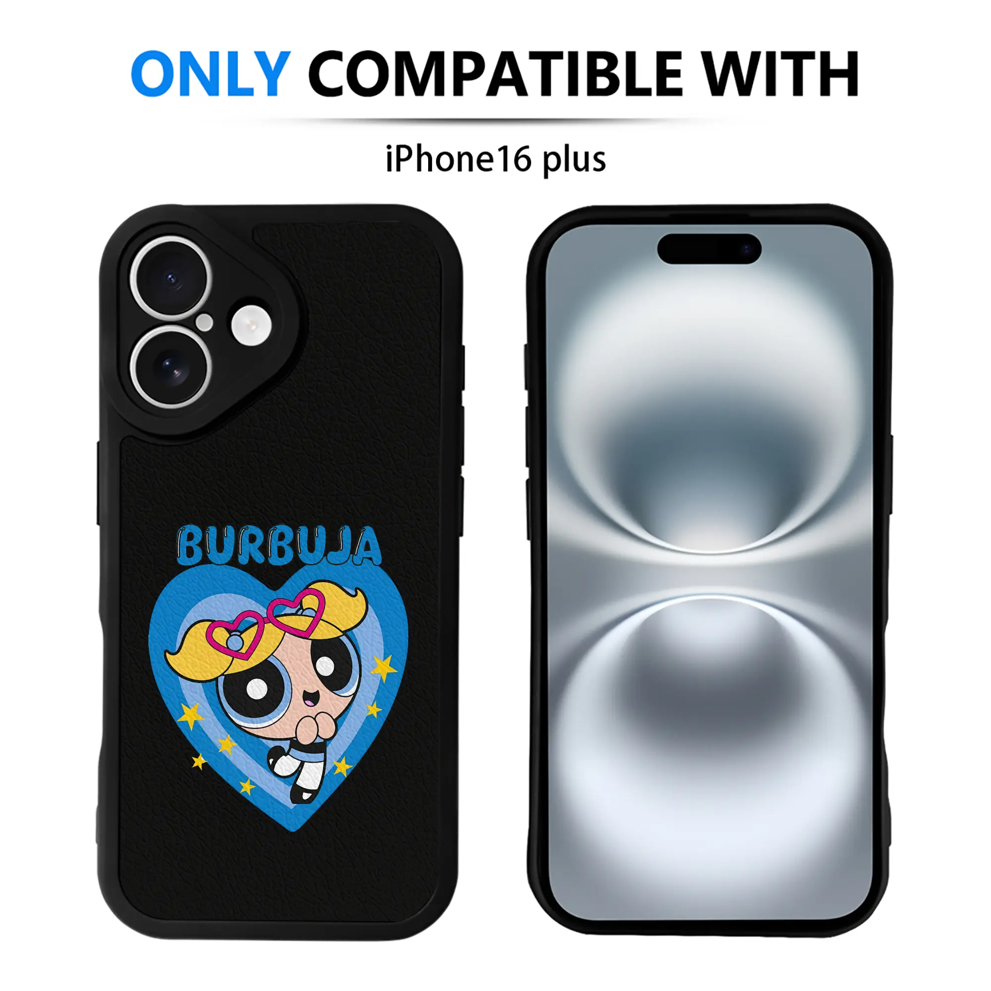 パワパフガールズ グッズ バブルス - IPhone 16シリーズ対応 ・ シリコンスマホケース ・ レザー調 ・ 高精度フィット ・ 耐衝撃 ・ ワイヤレス充電対応 ・ 精密カット